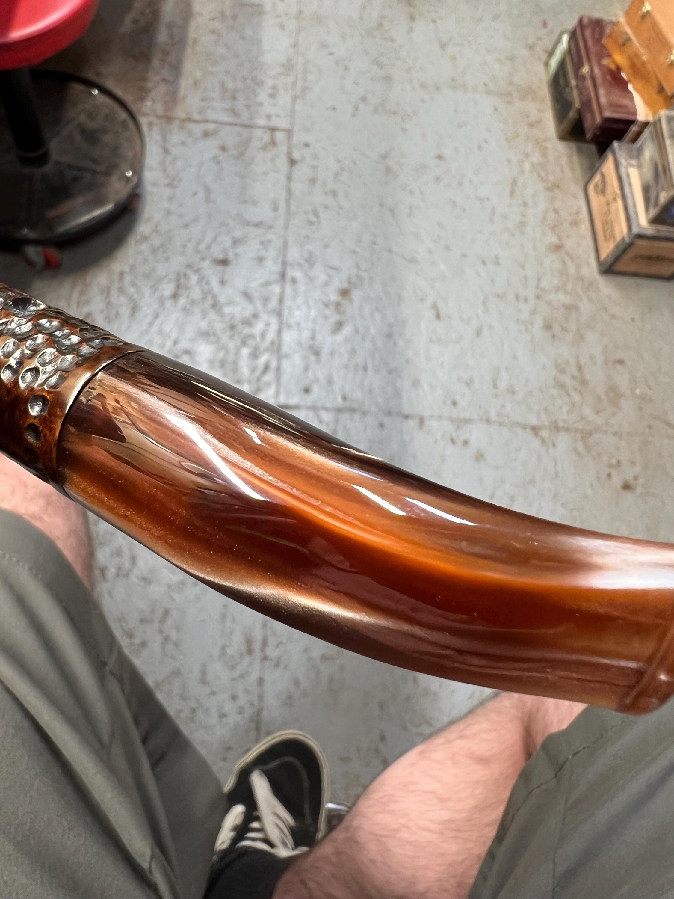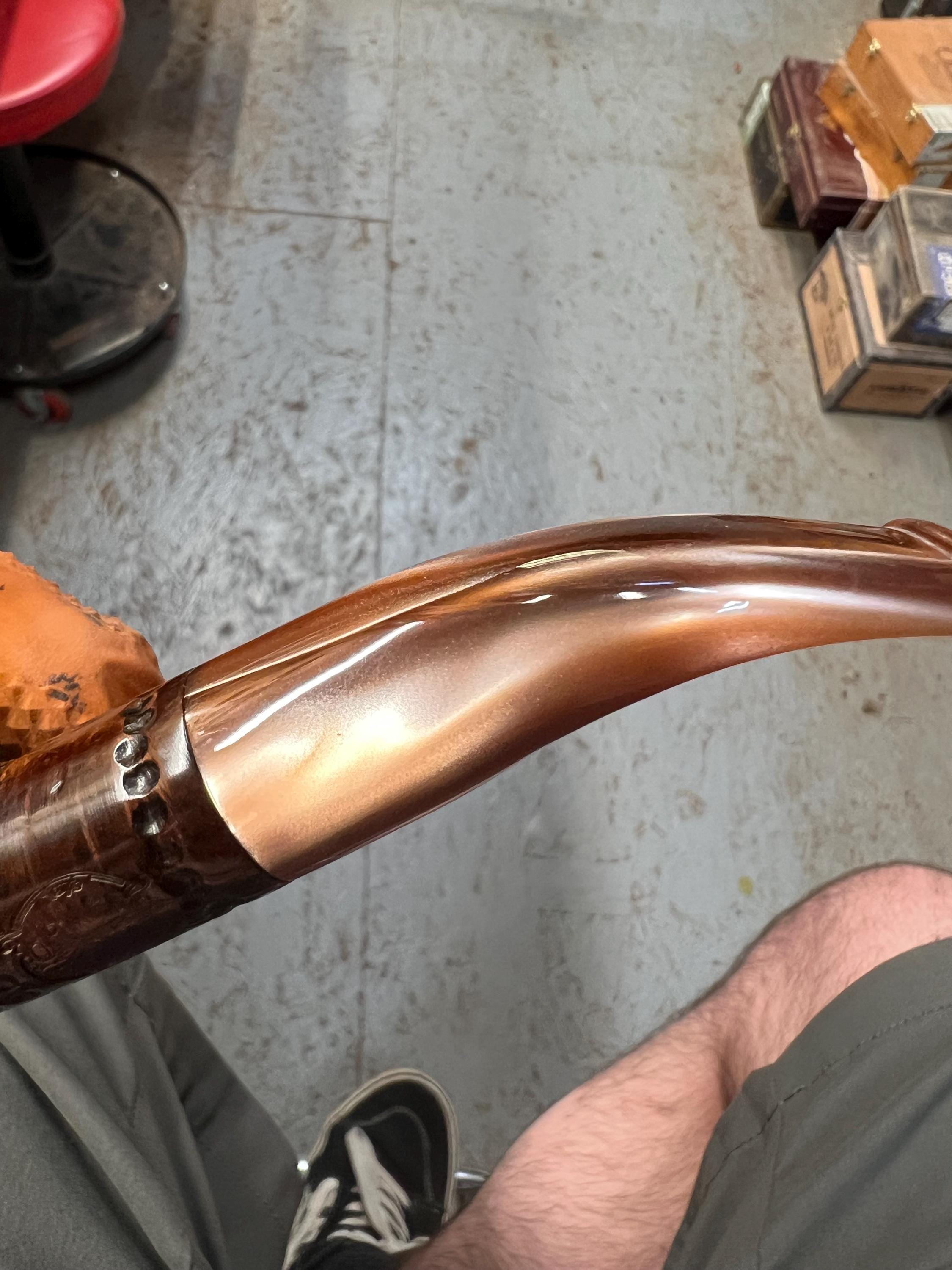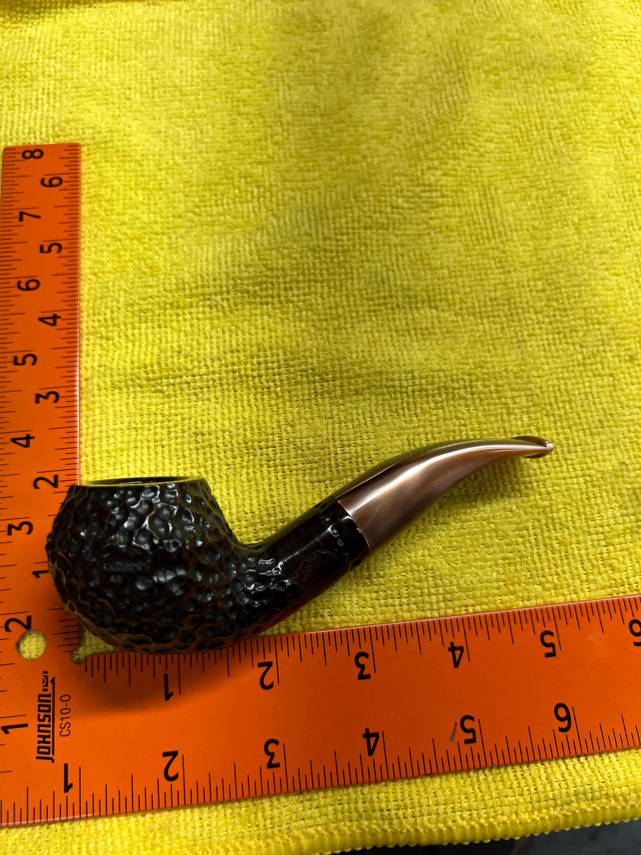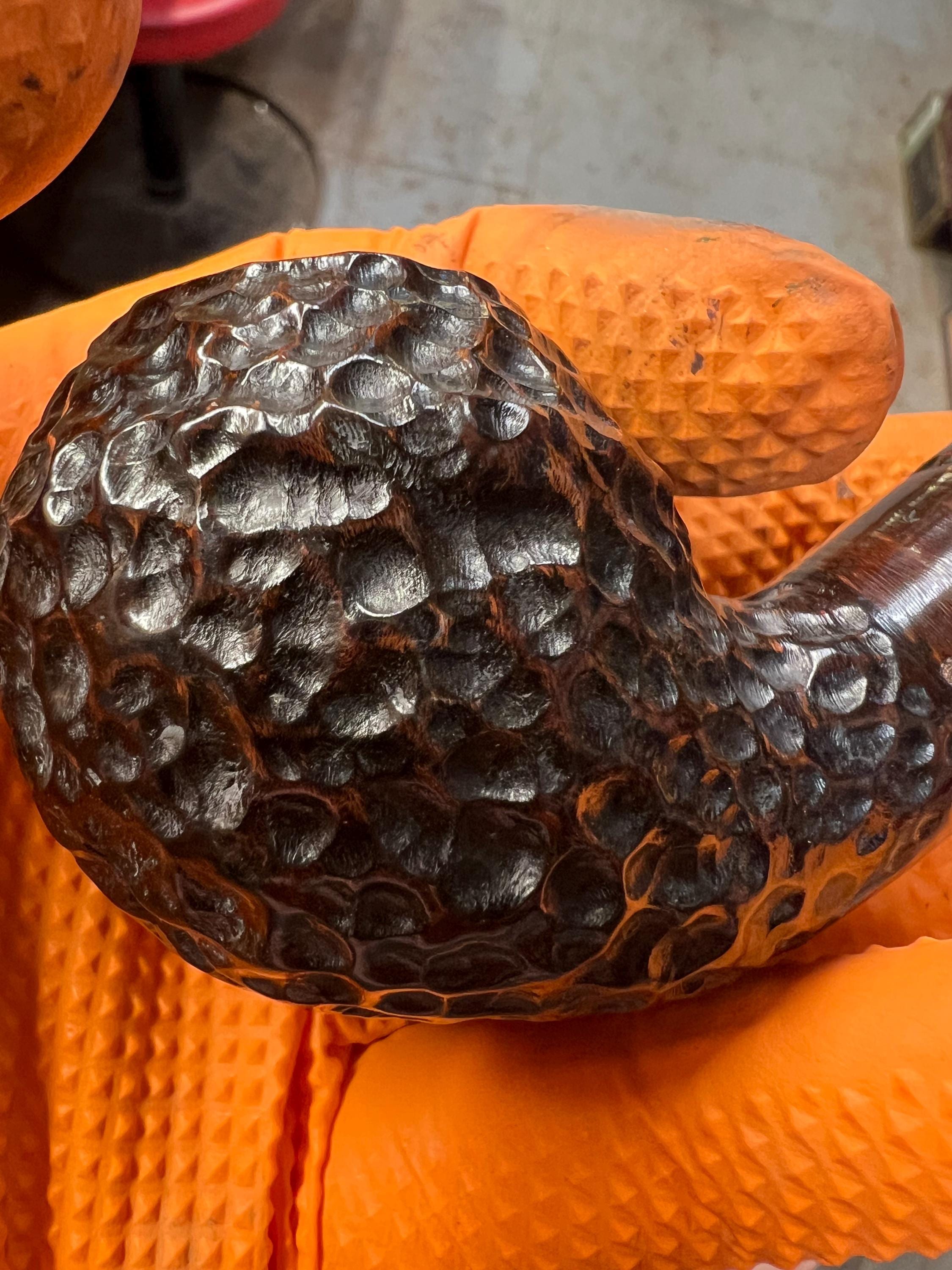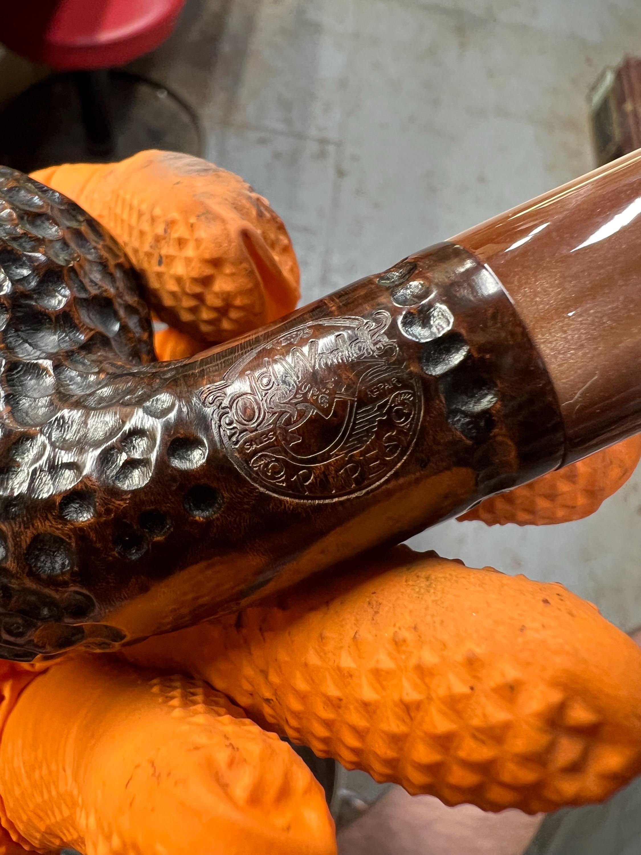 This is a handmade briar pipe that has been meticulously carved and polished. Acrylic custom made stem. 9mm cartridge filter. A very nice daily smoker.