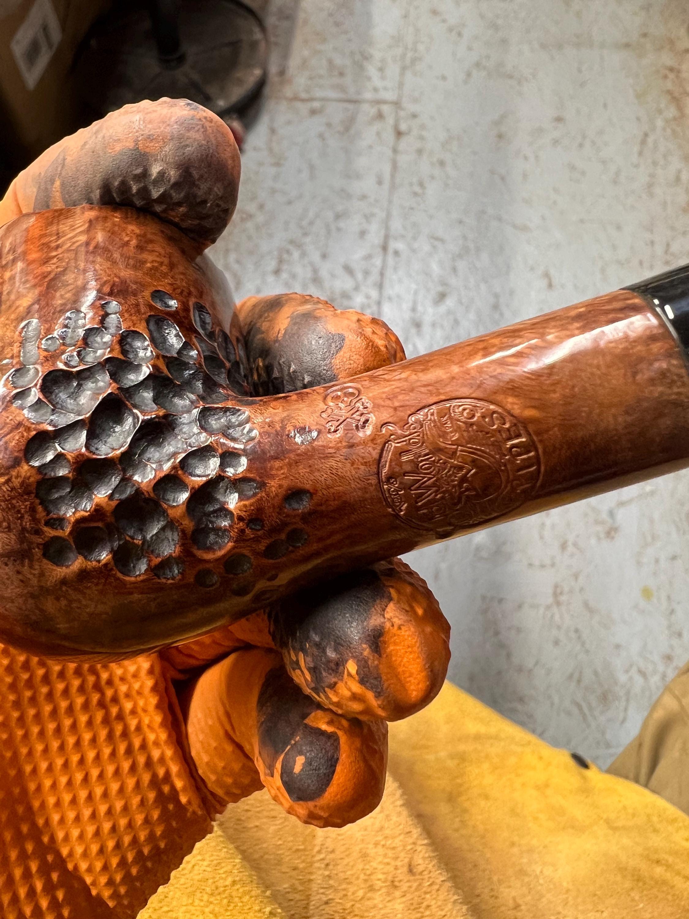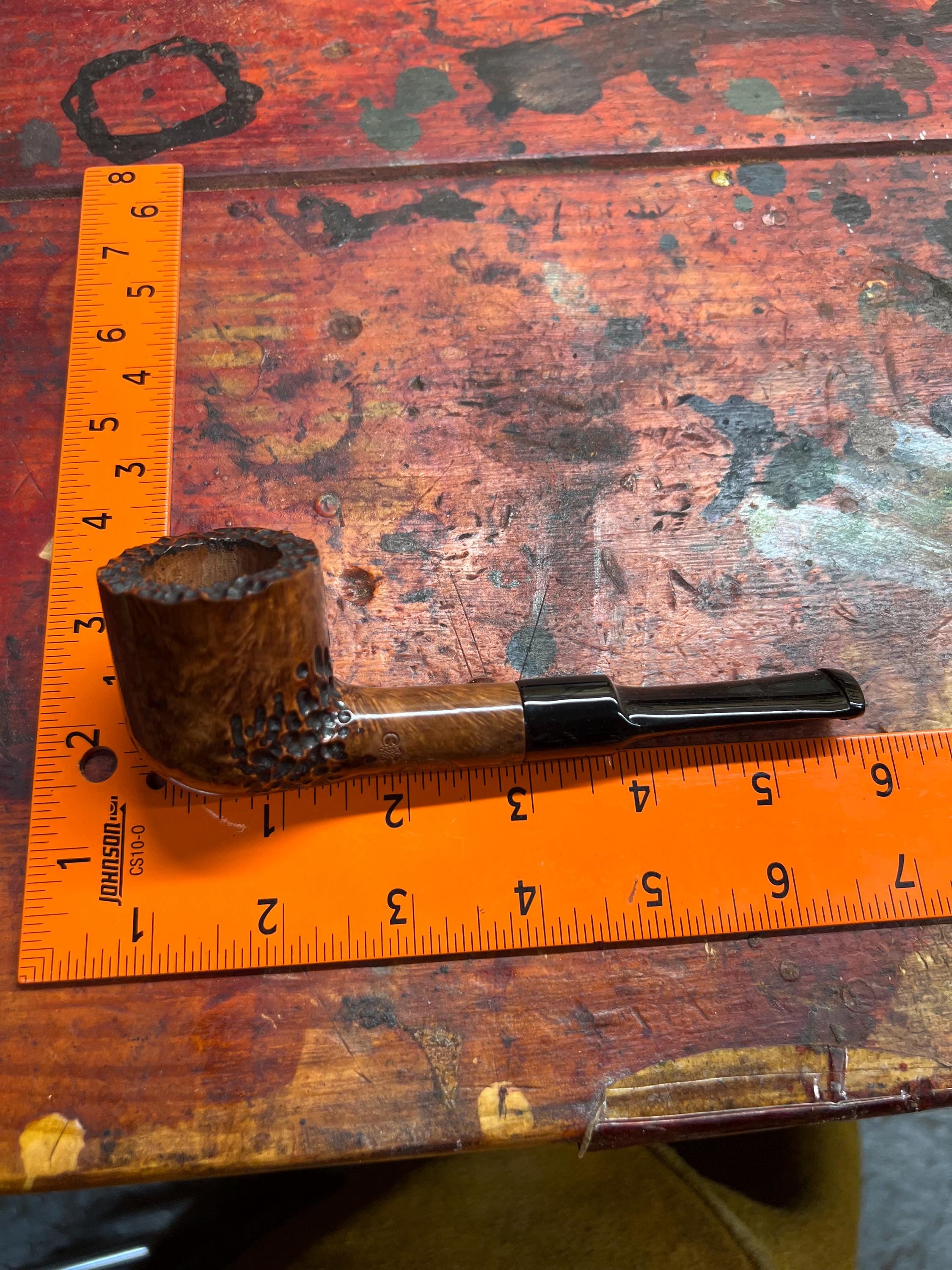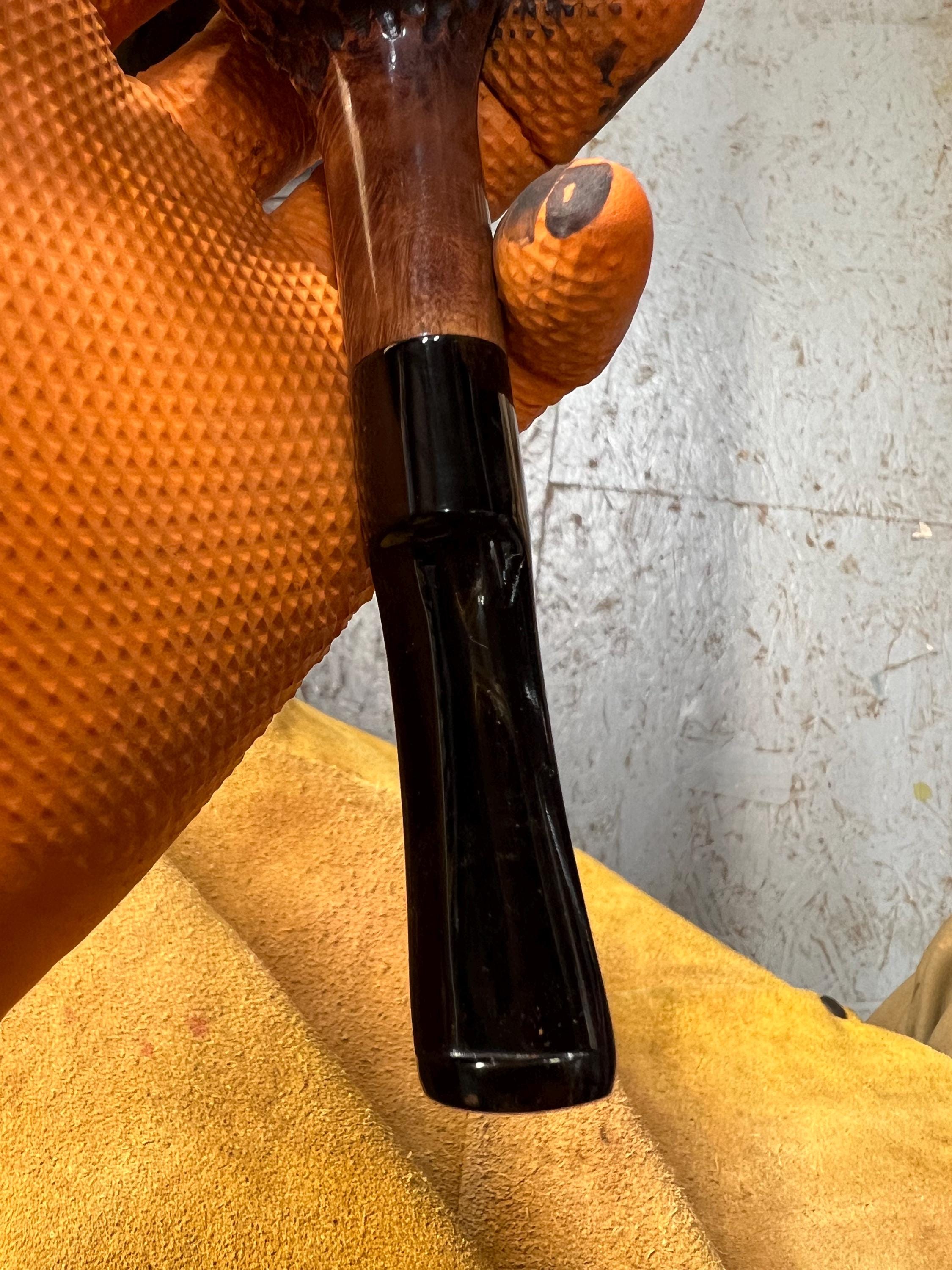 This is a handmade briar pipe that has been meticulously carved and polished. Vulcanite custom made stem. This one is non filtered. A very nice daily smoker.