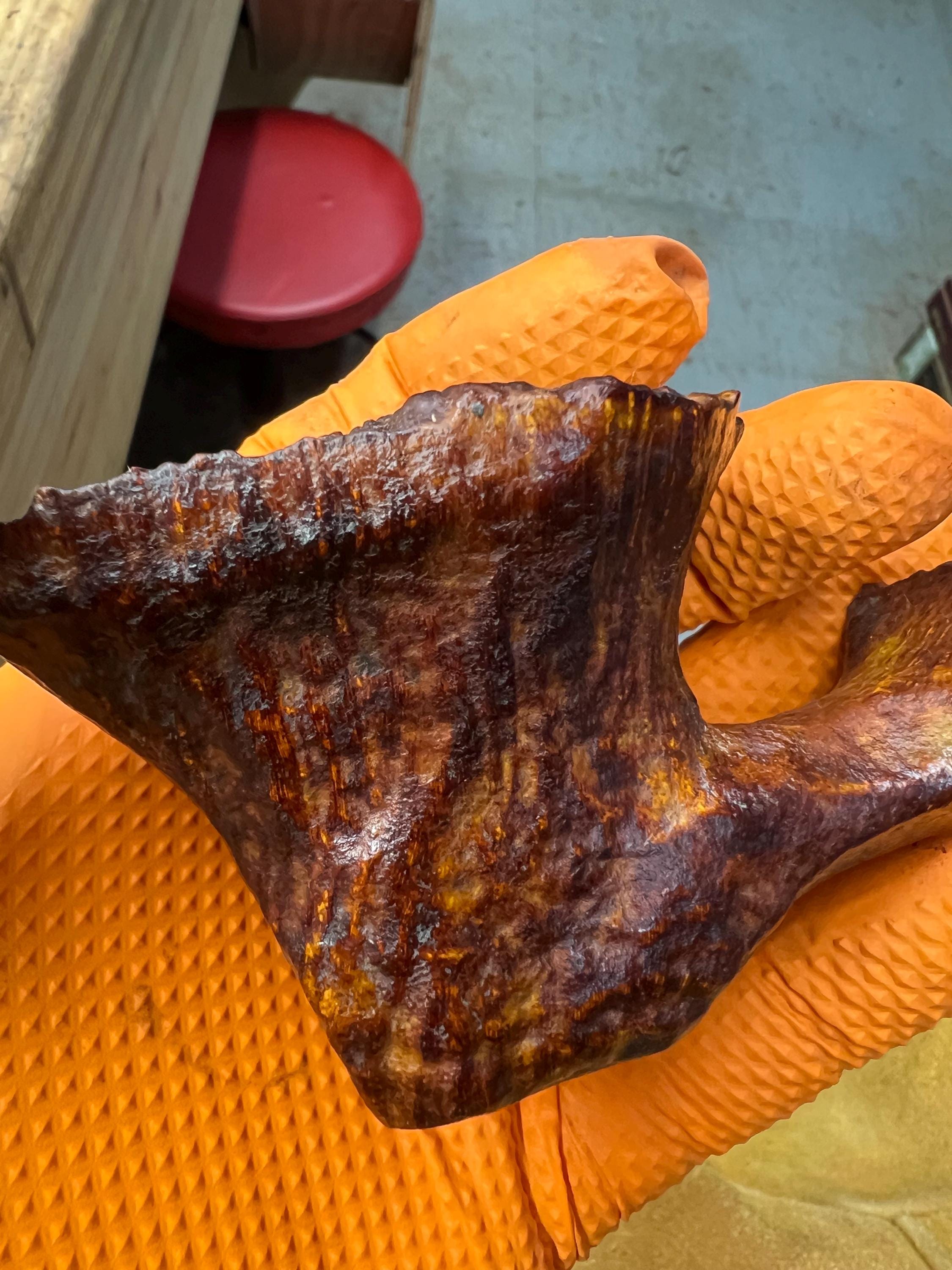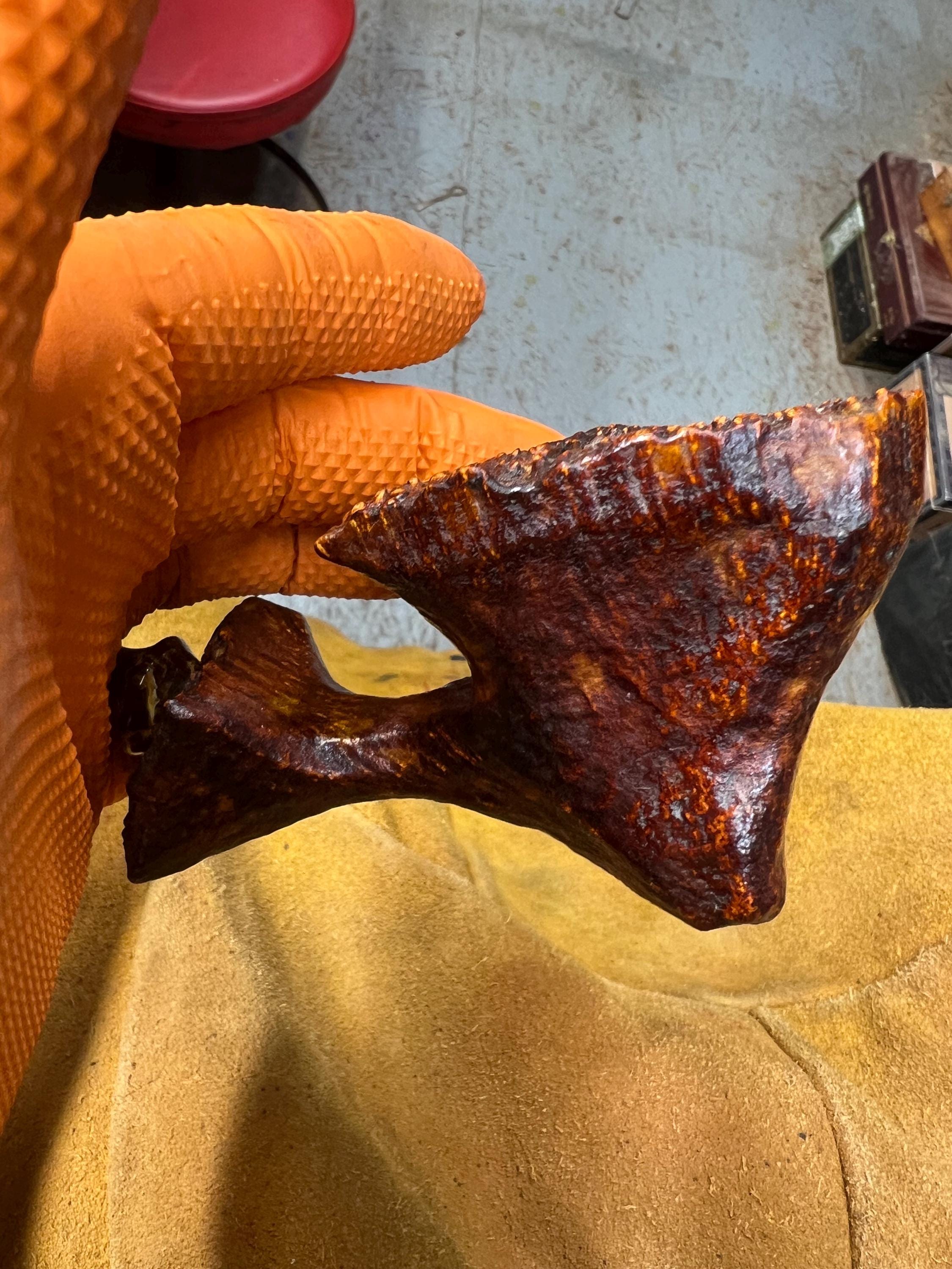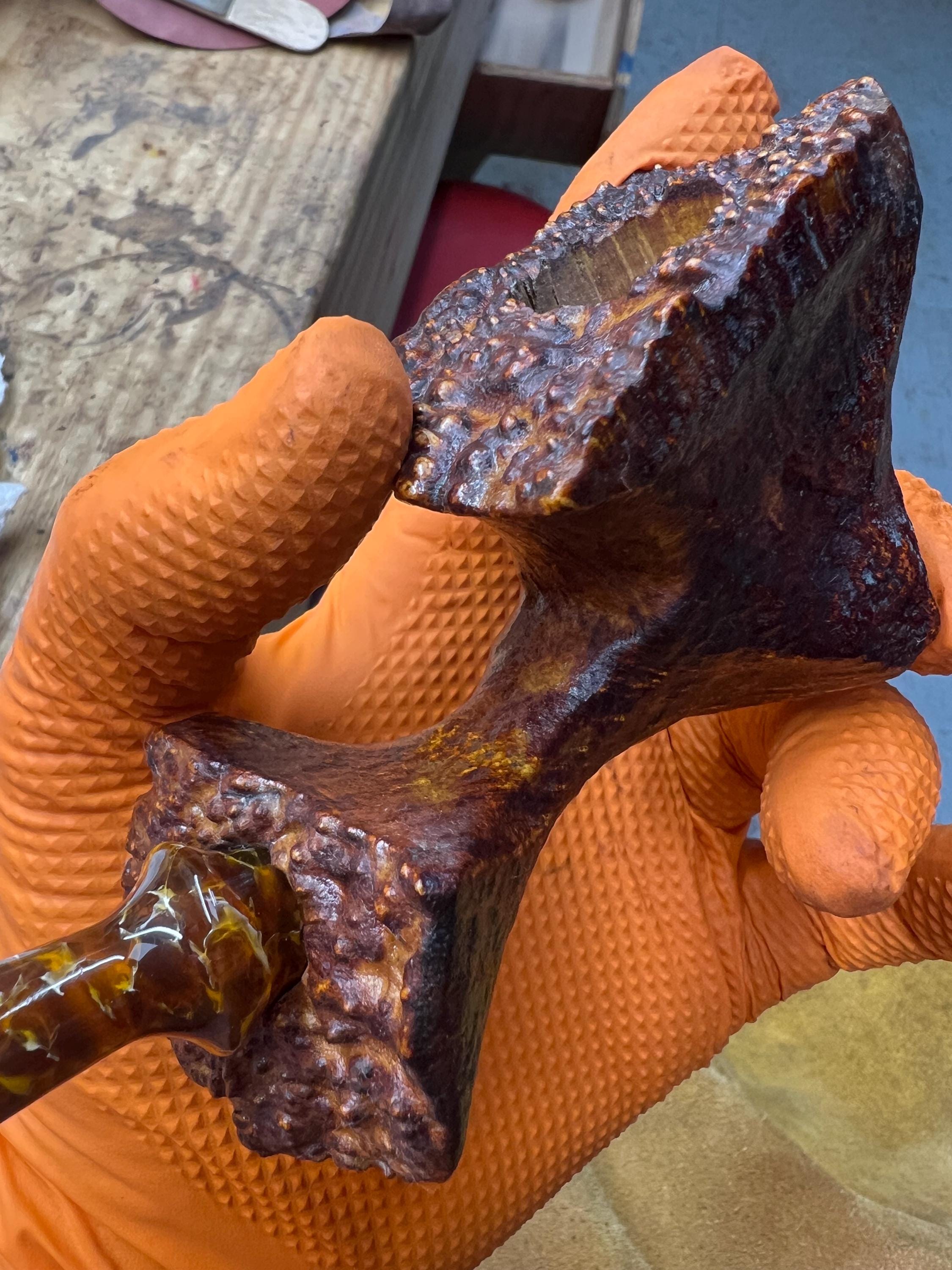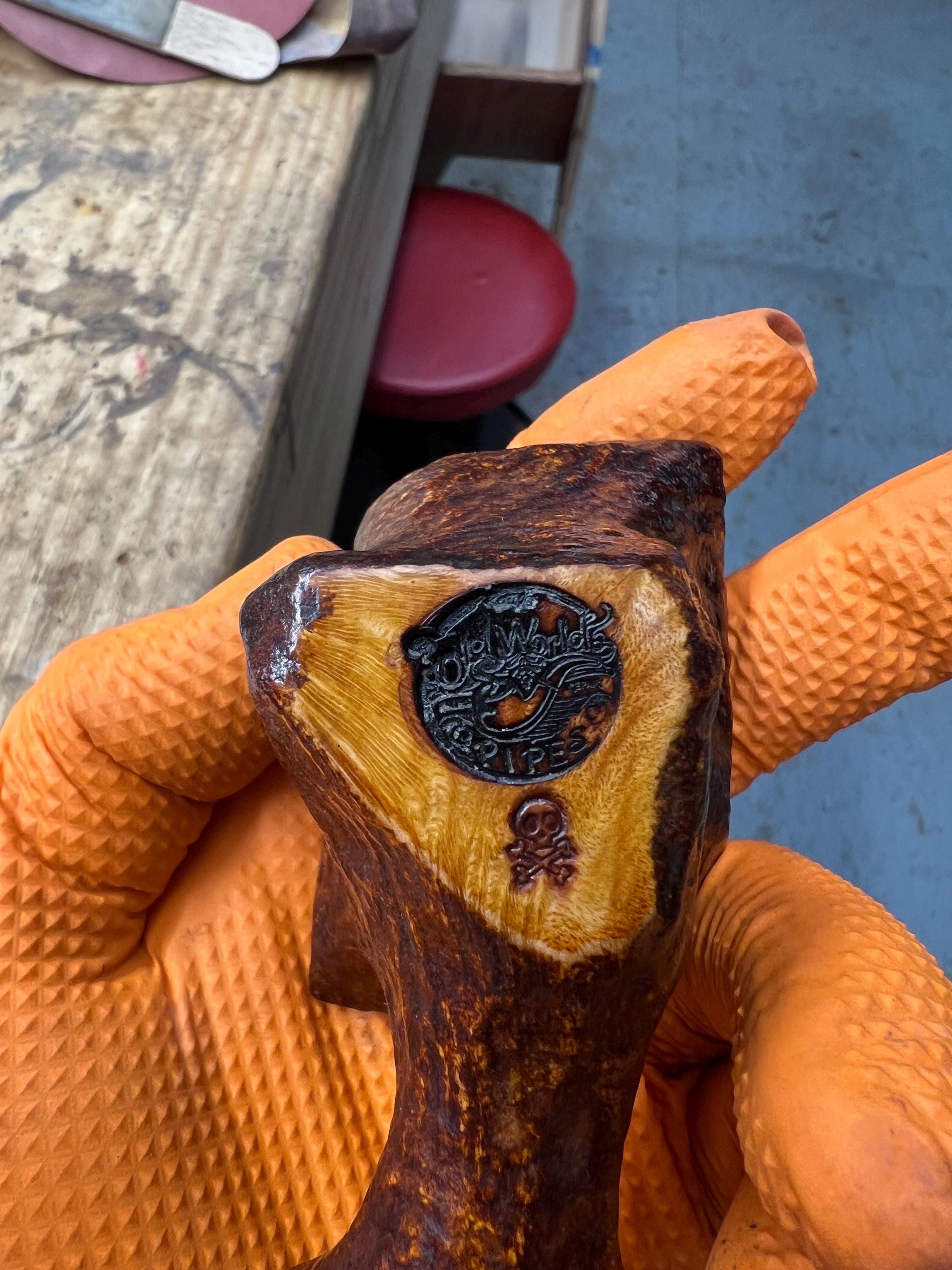 This is a handmade briar pipe that has been freehand carved and polished. A nice custom acrylic stem that’s slightly bent. These are built to be beautiful but also for every day smoking. This one is a medium to large pipe. 7/8 x1.5 deep bowl. mimmo briar