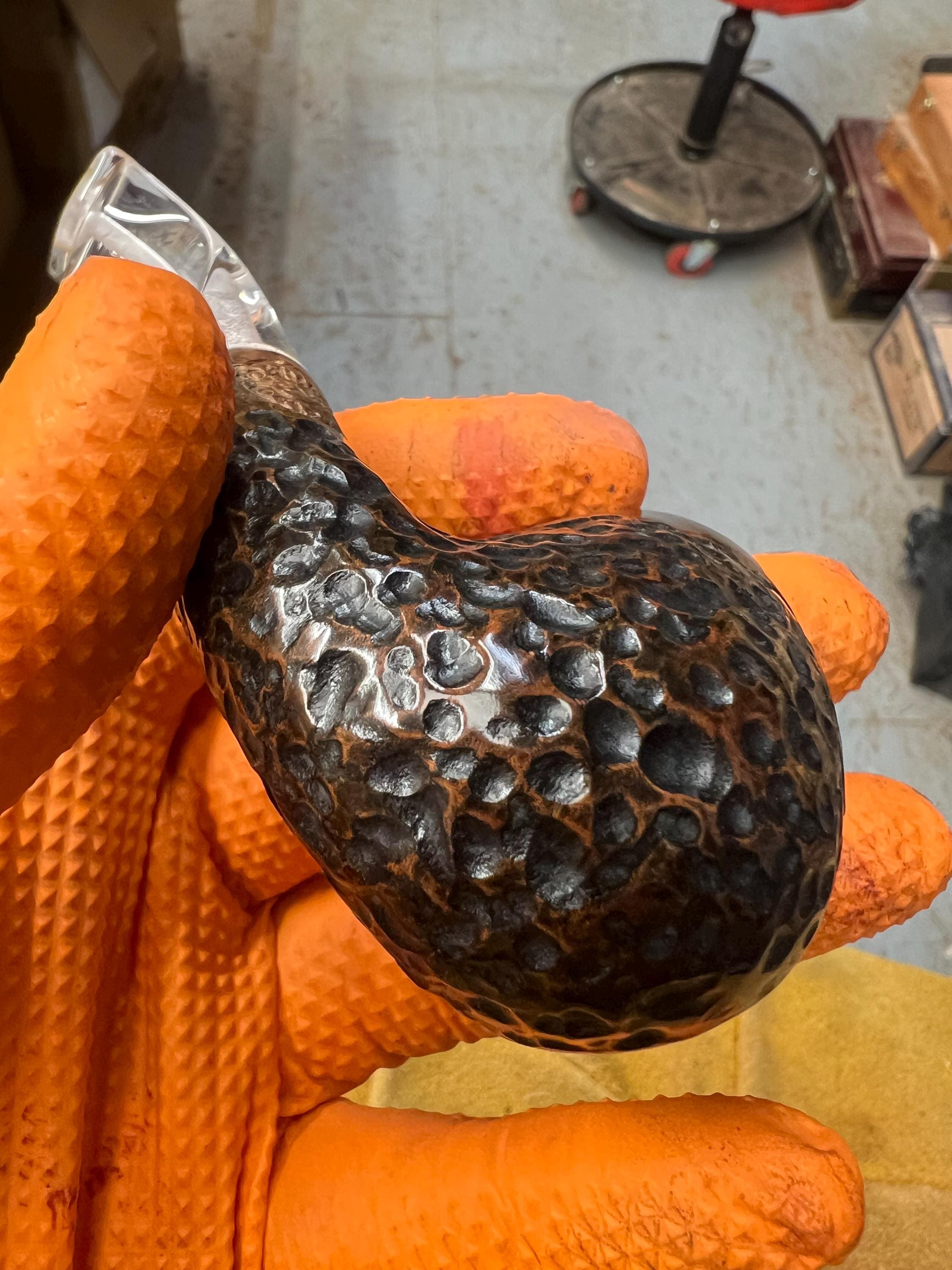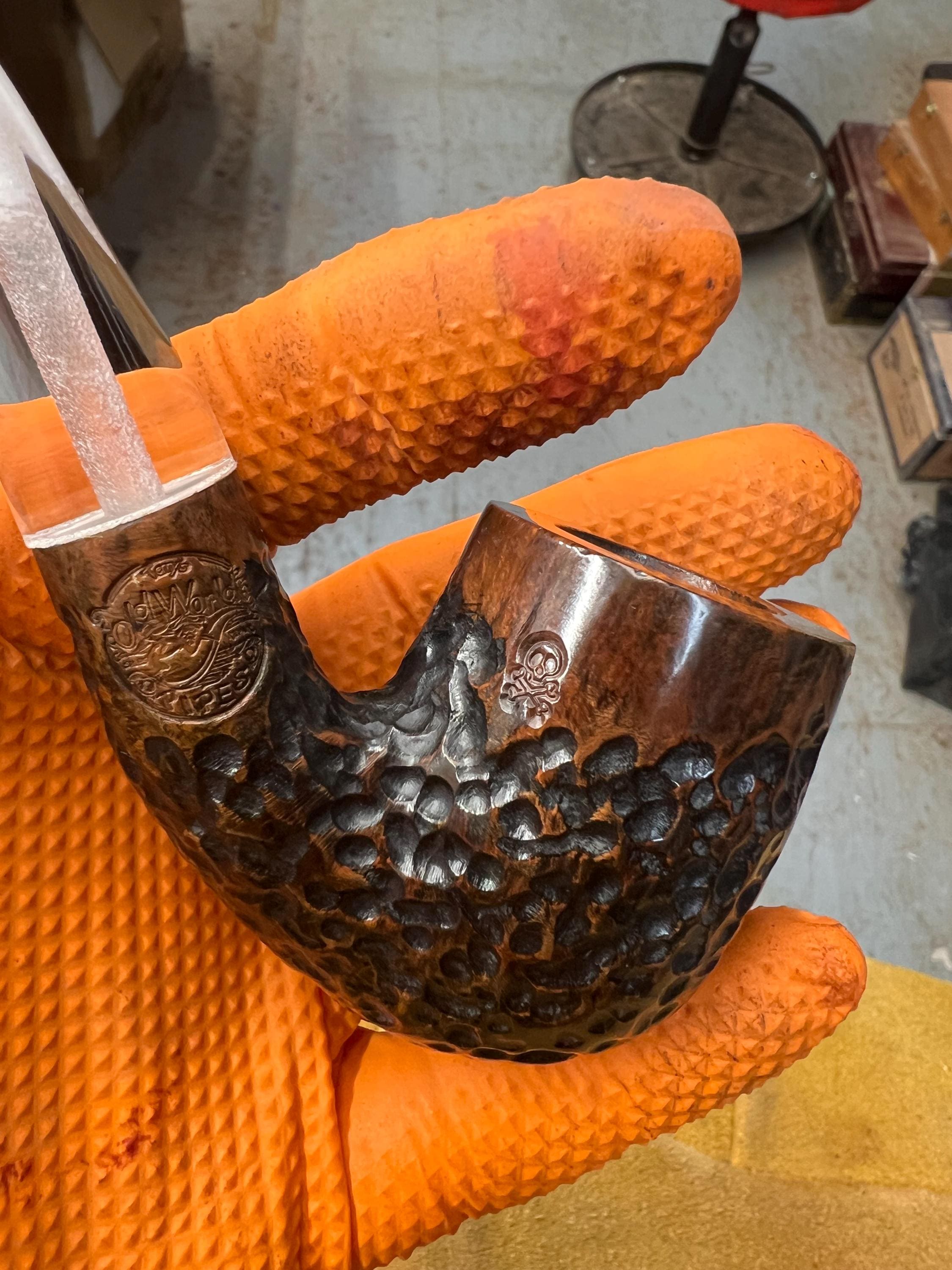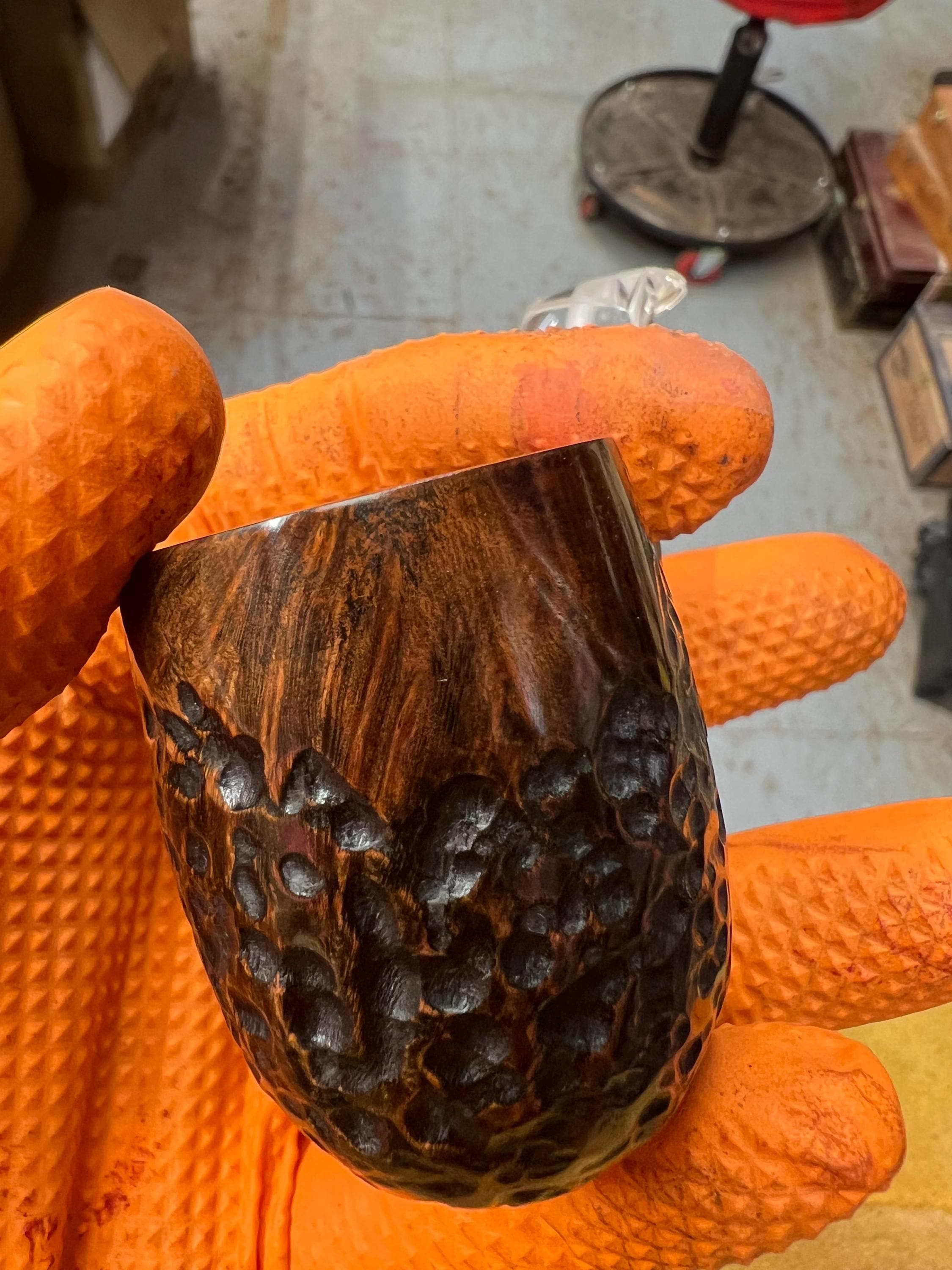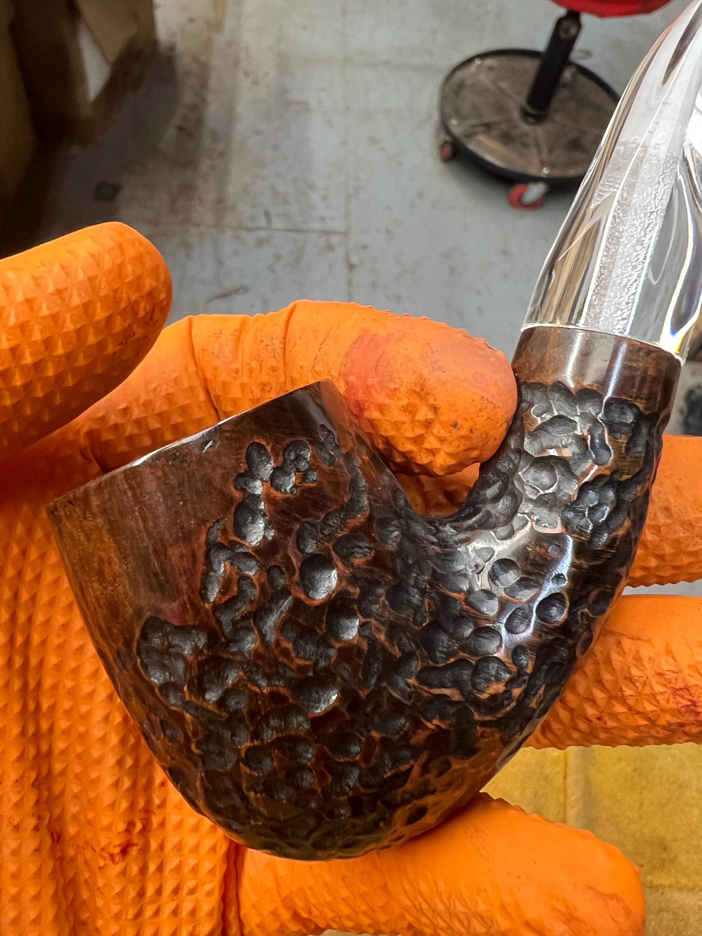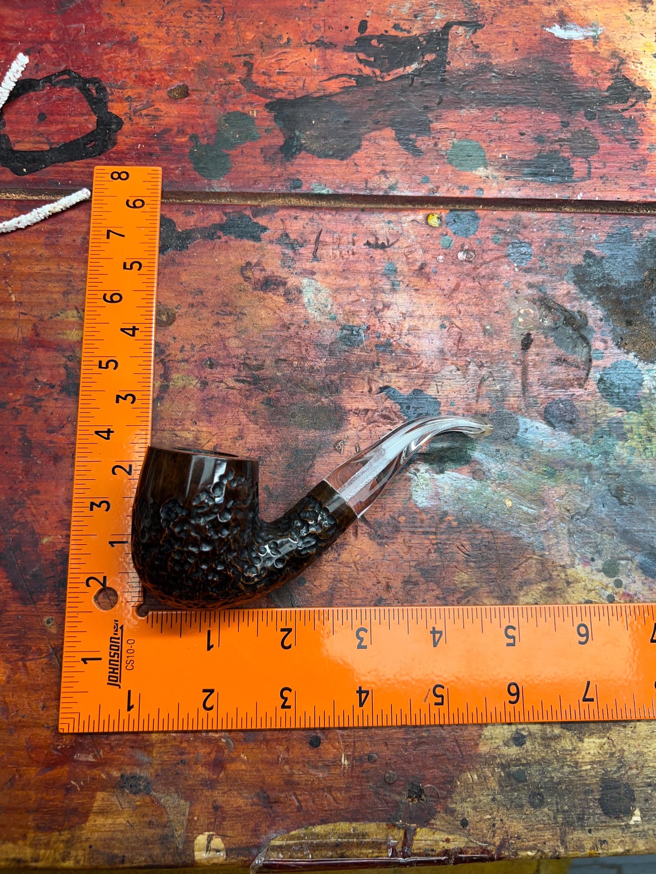 This is a handmade briar pipe that has been meticulously carved and polished. Acrylic clear custom made stem. This one is non filtered. A very nice daily smoker.