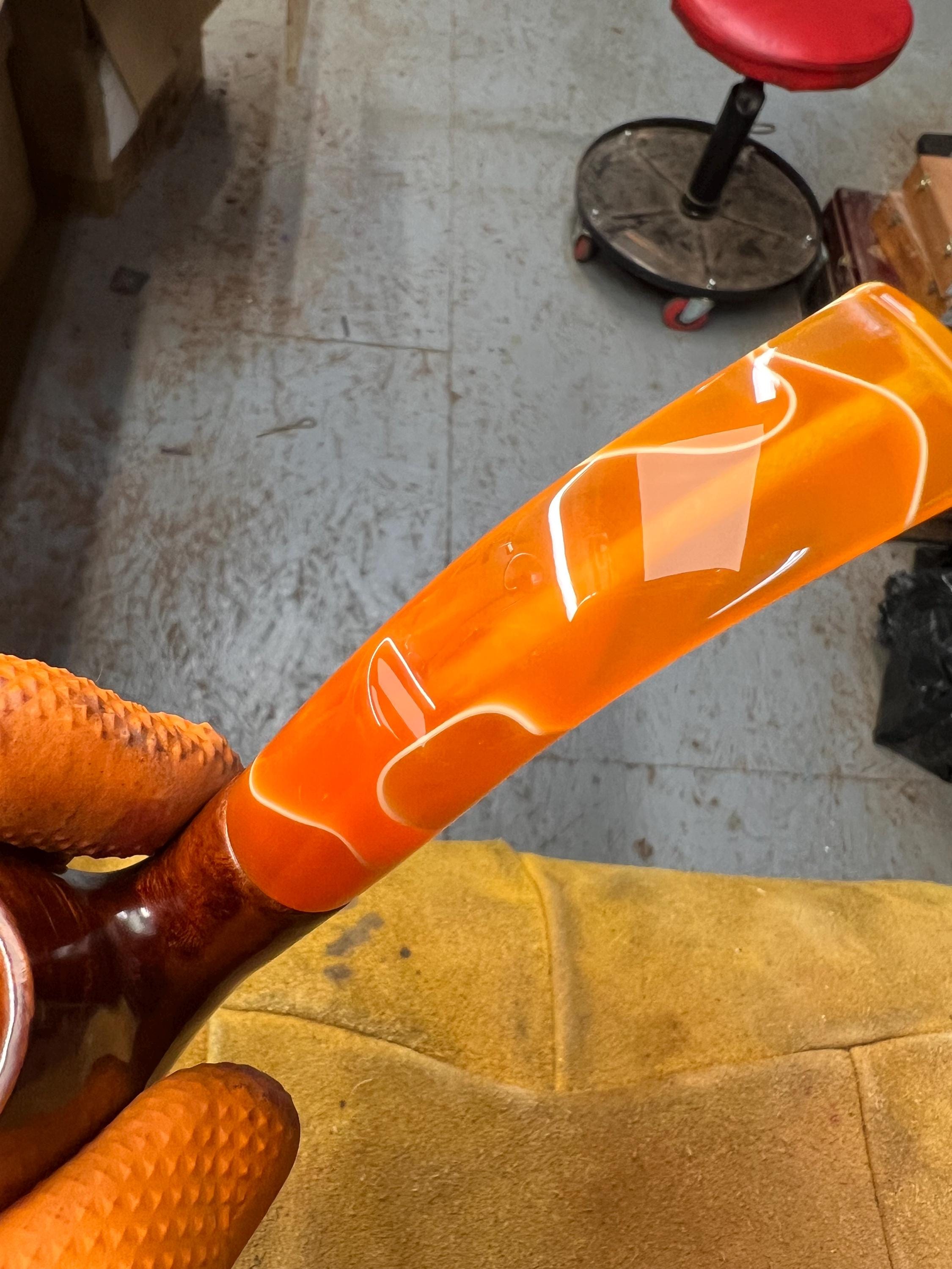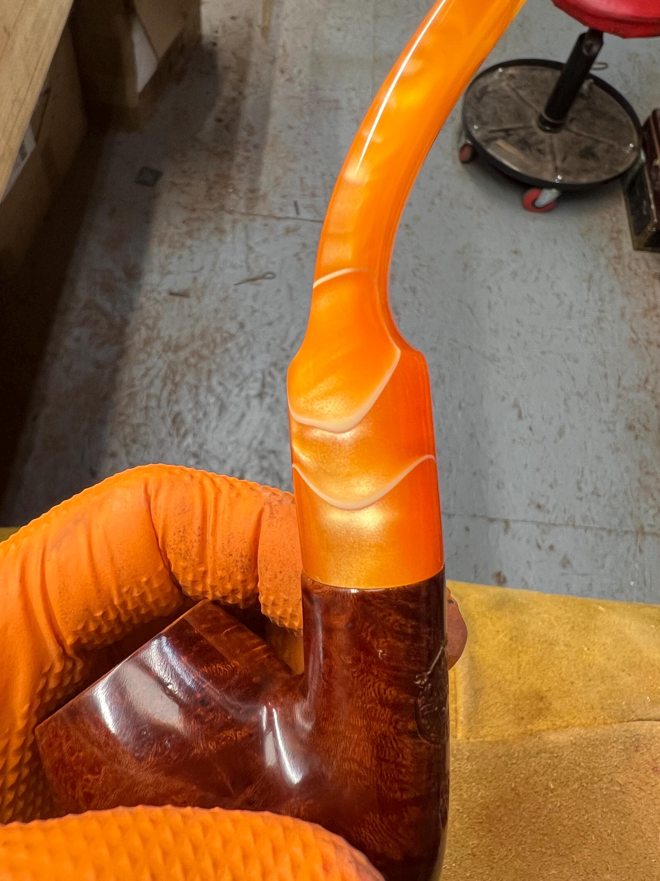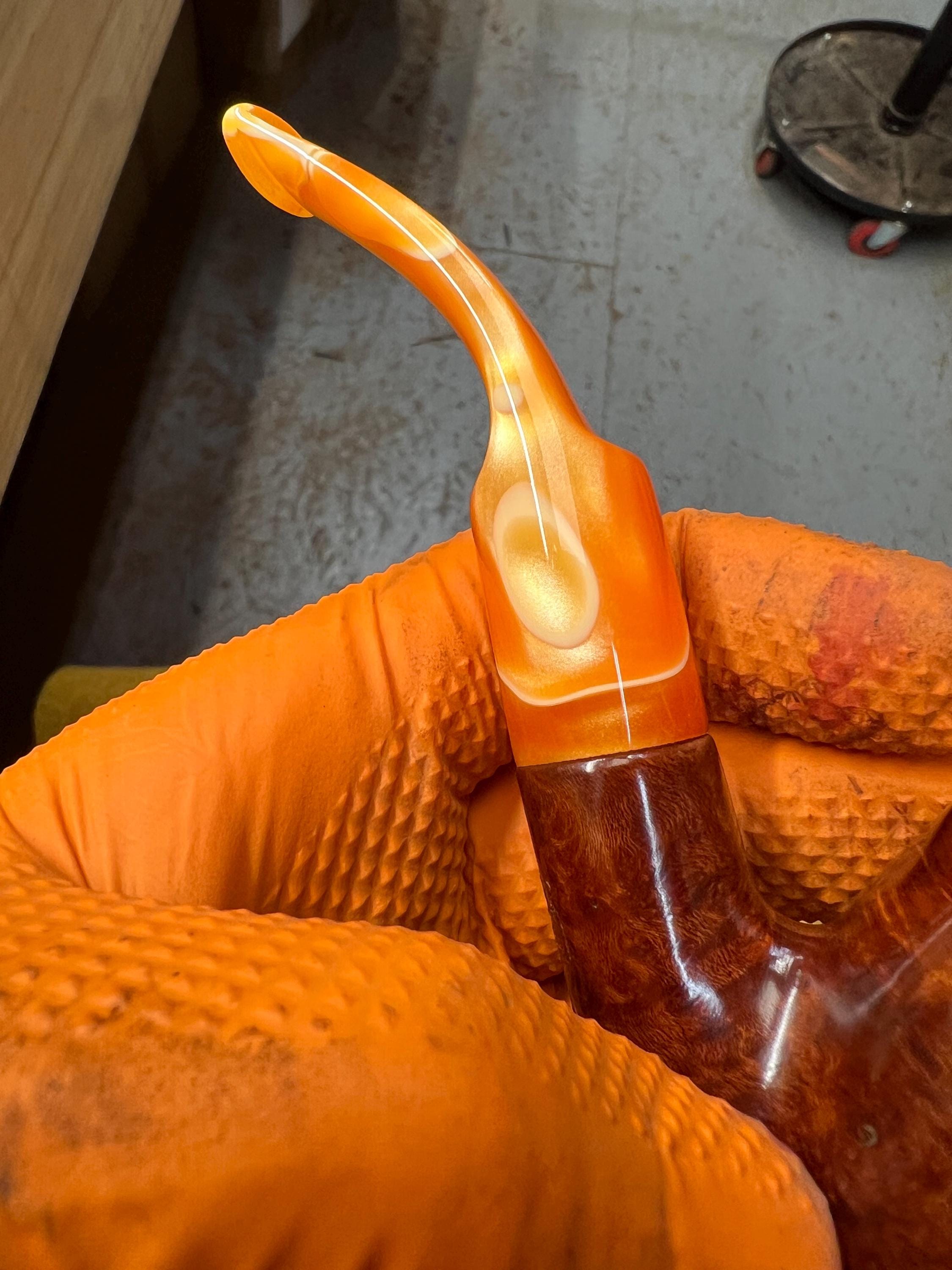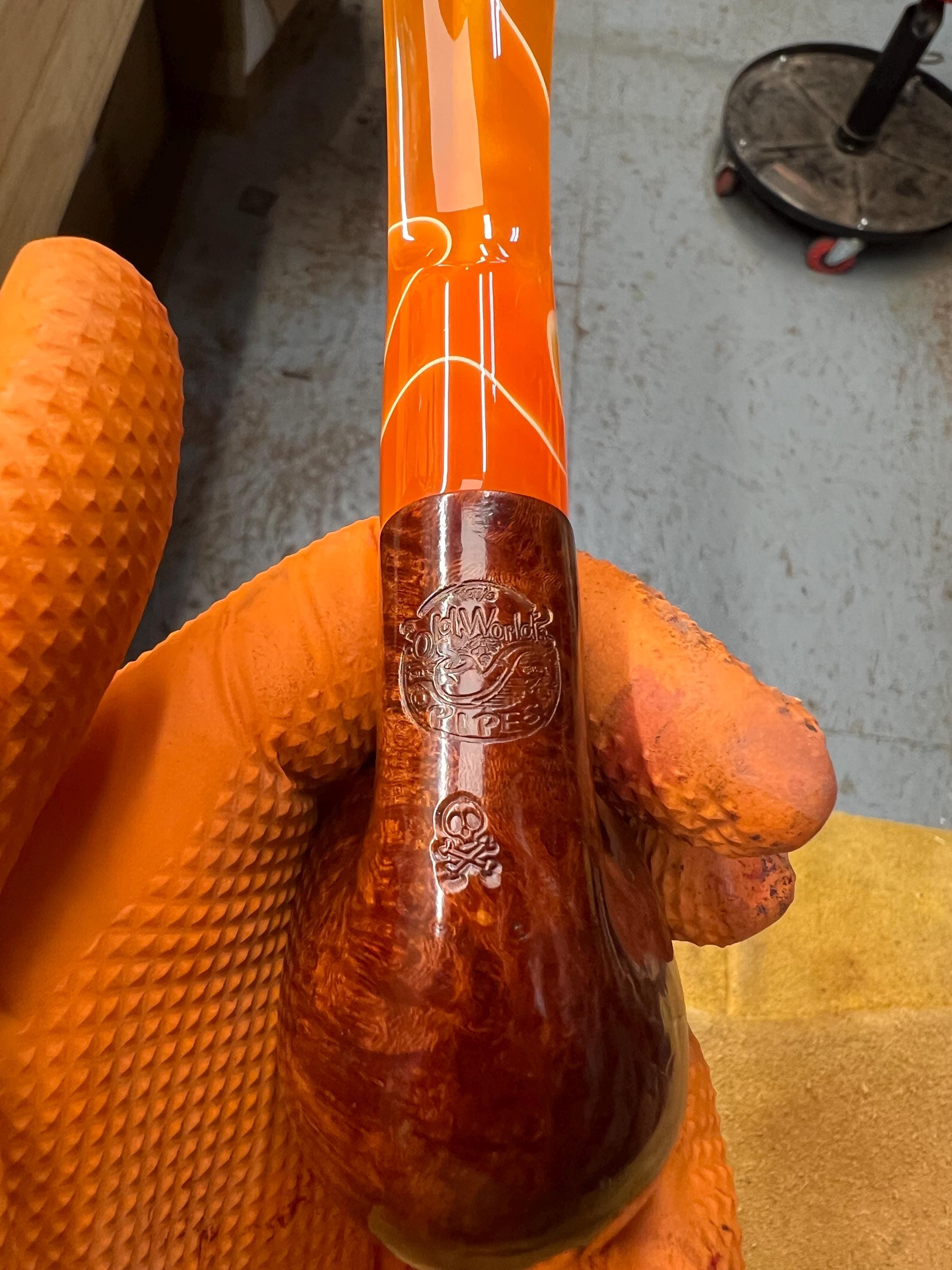 This is a handmade briar pipe that has been meticulously carved and sanded for hours by hand . Acrylic custom made stem. Non filtered. A very nice daily smoker.