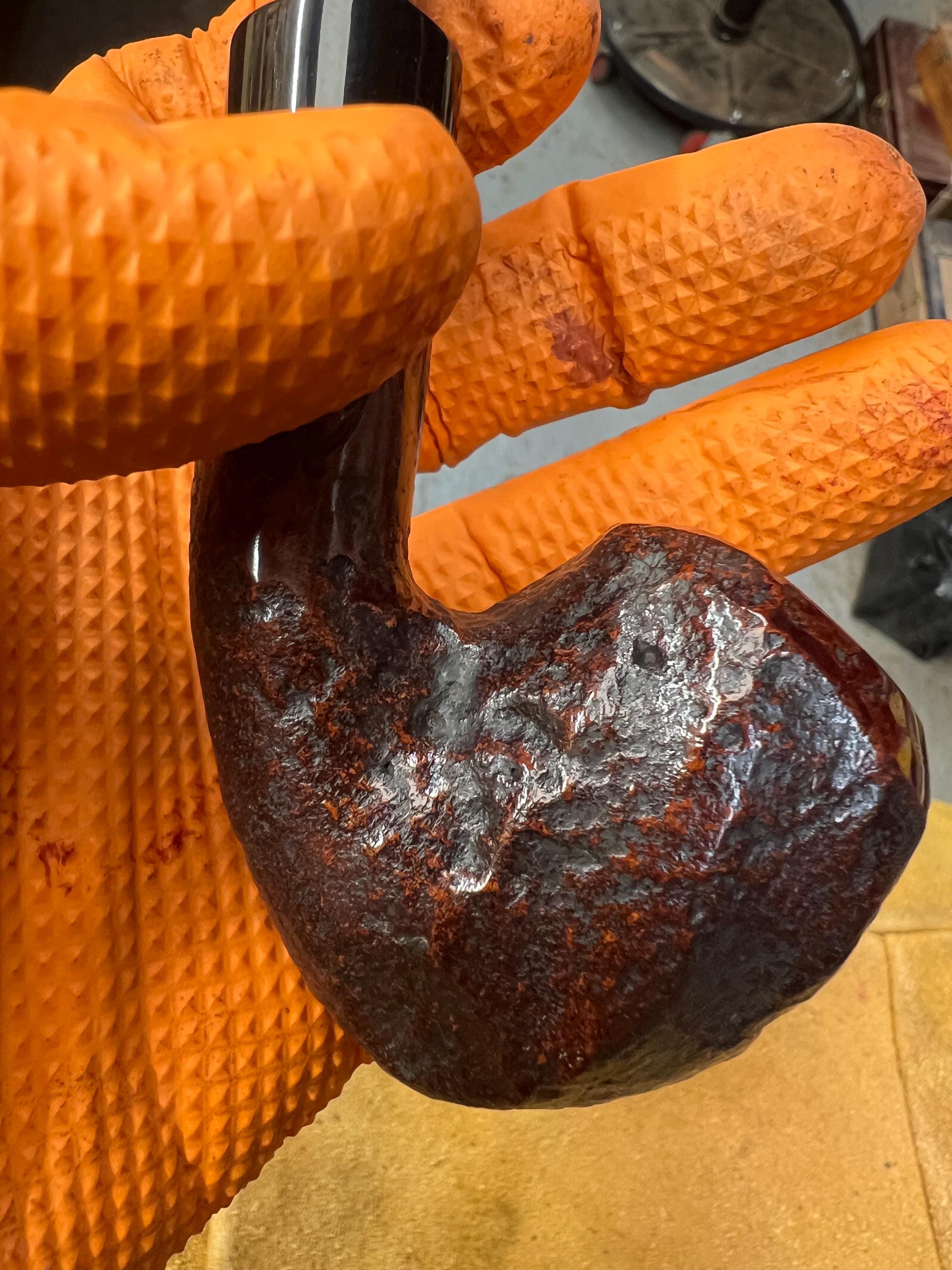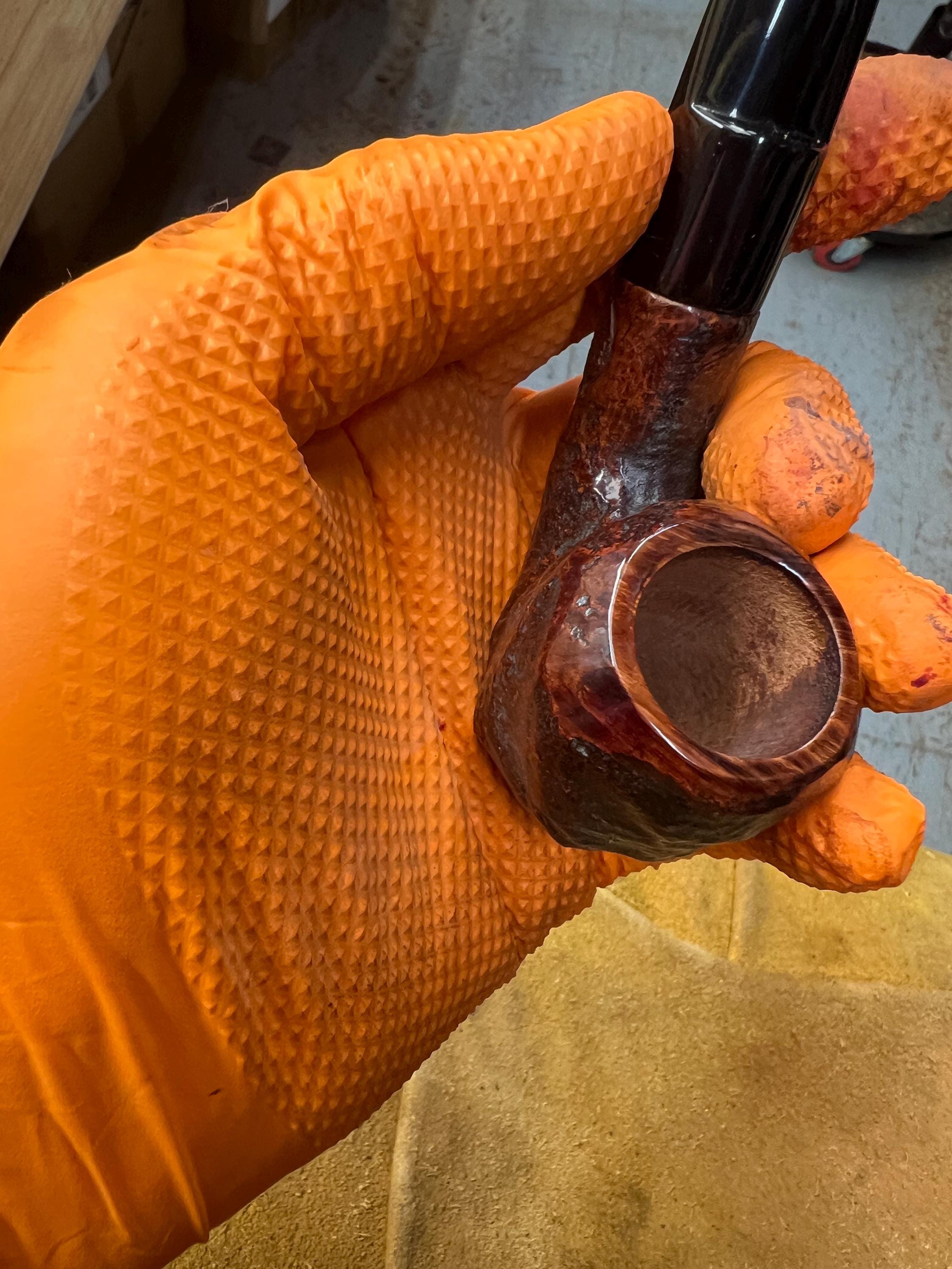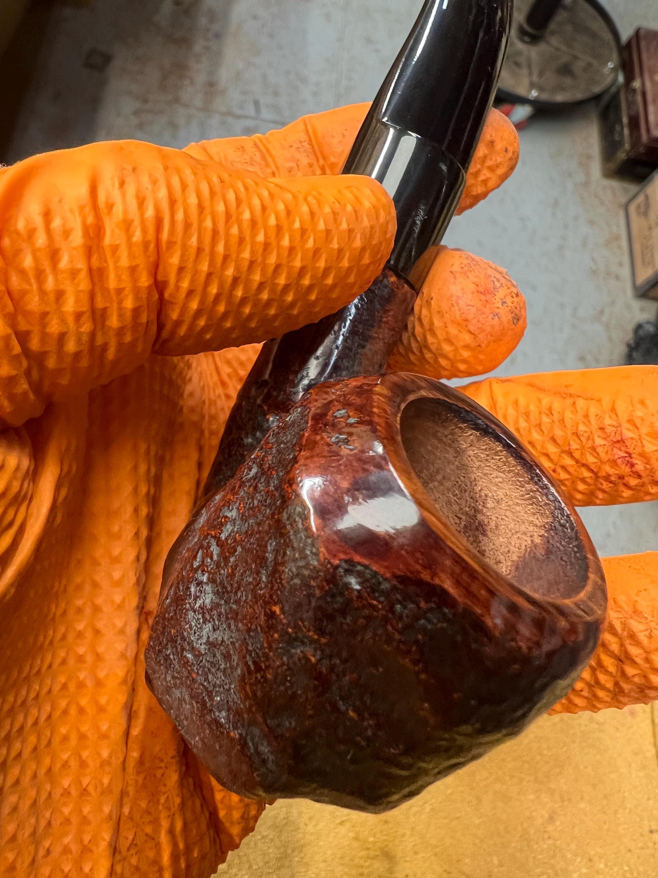 This is a handmade briar pipe that has been meticulously carved and polished. Vulcanite custom made stem. This one is non filtered. A very nice daily smoker.