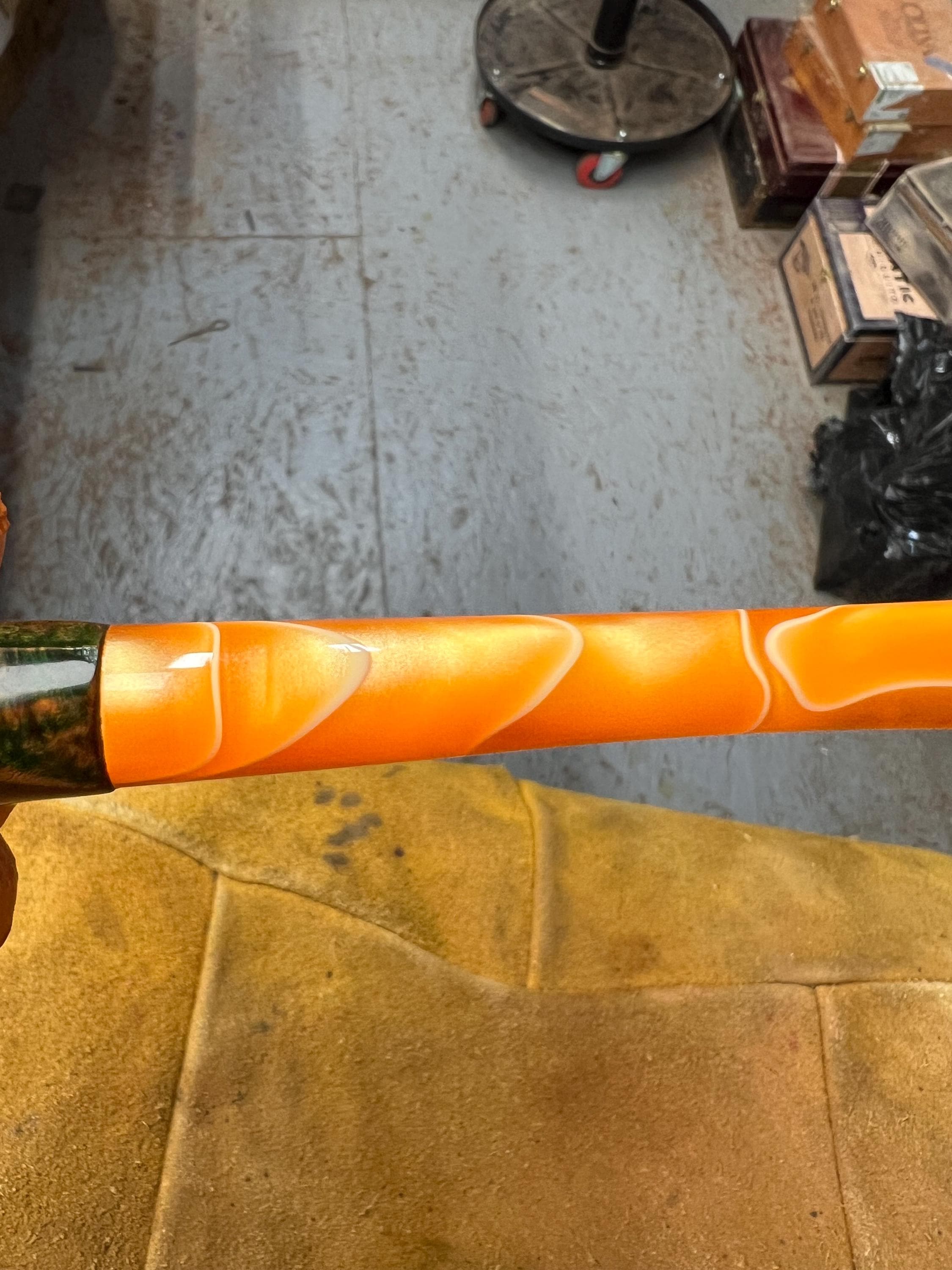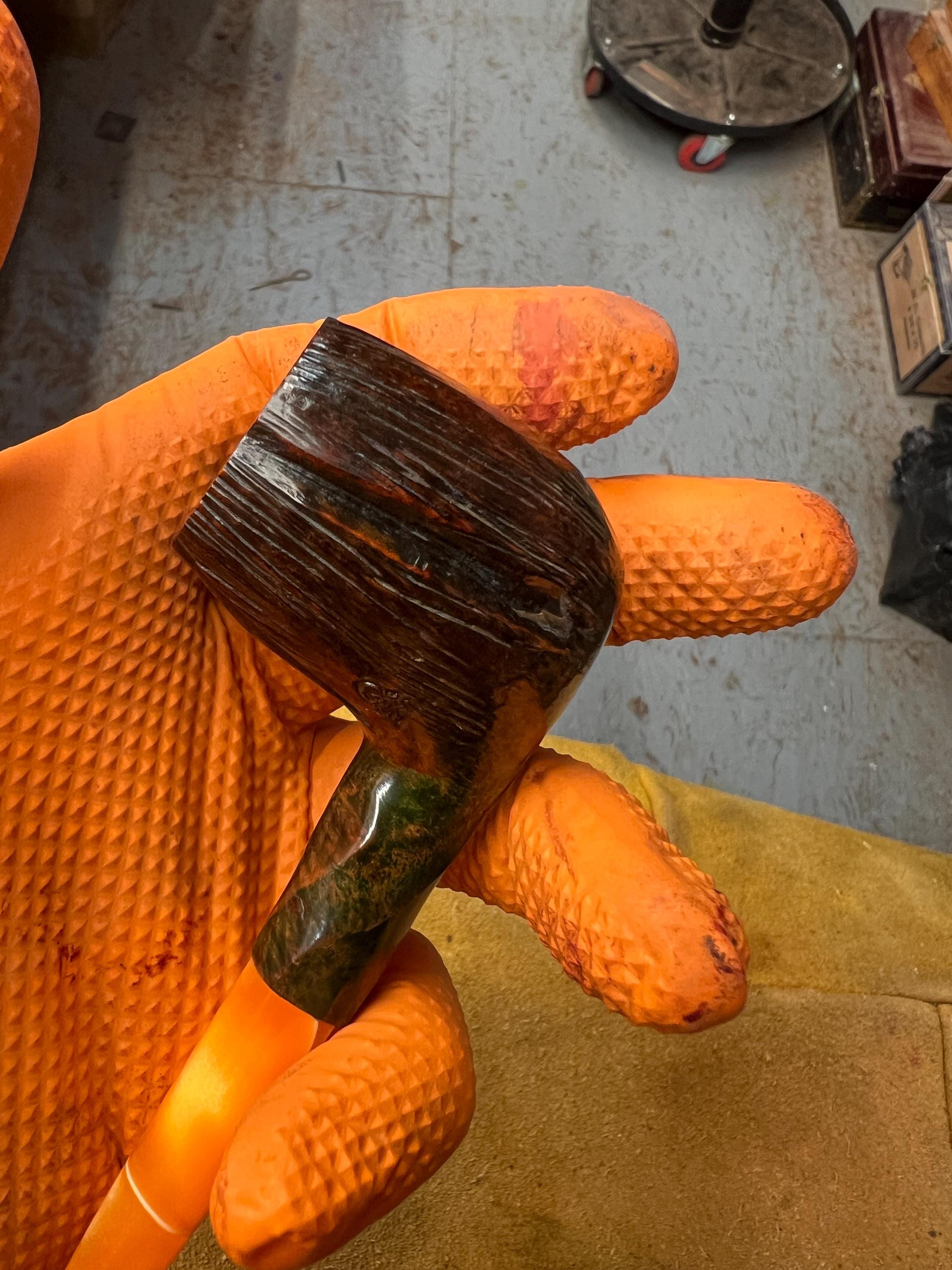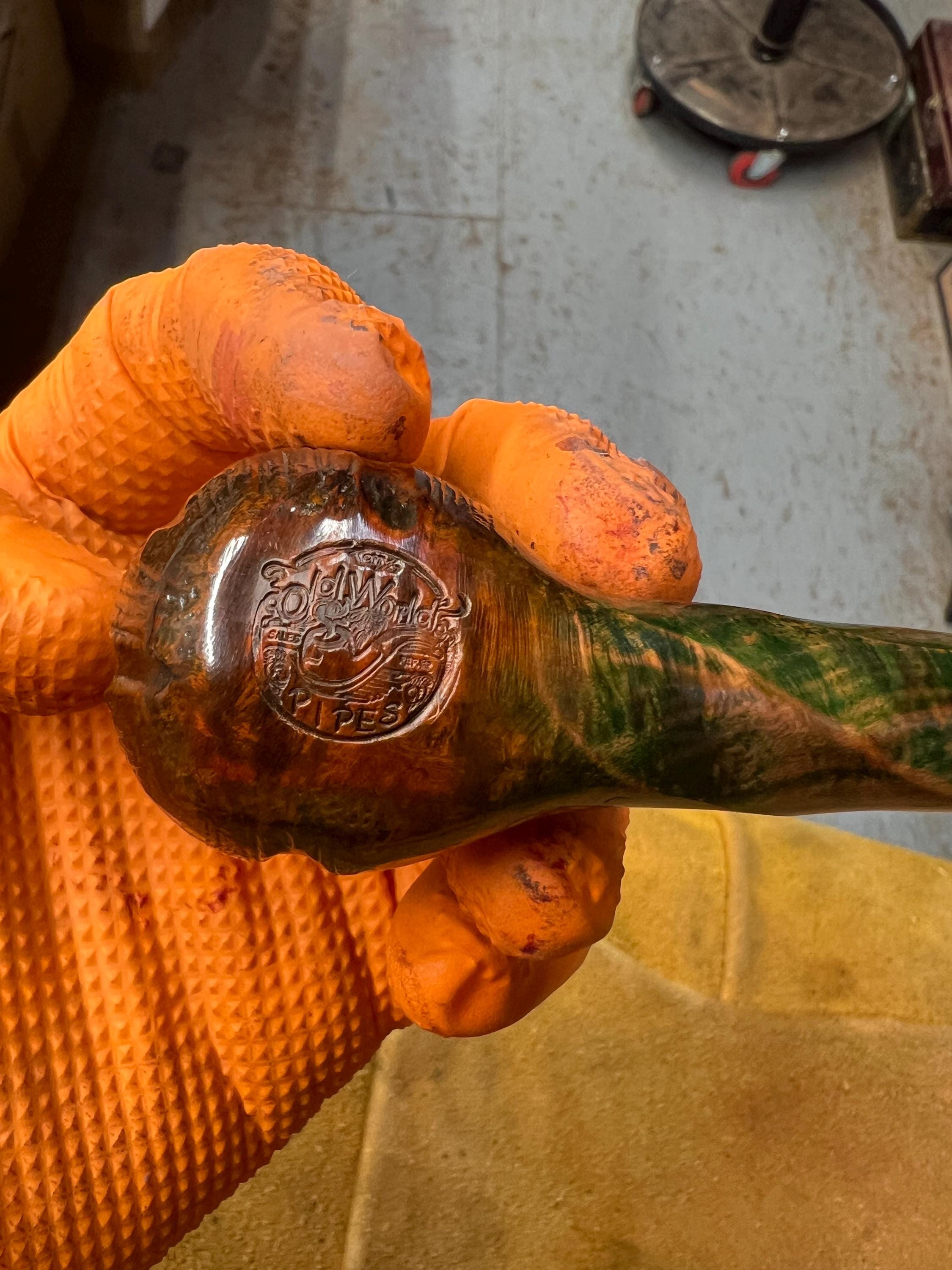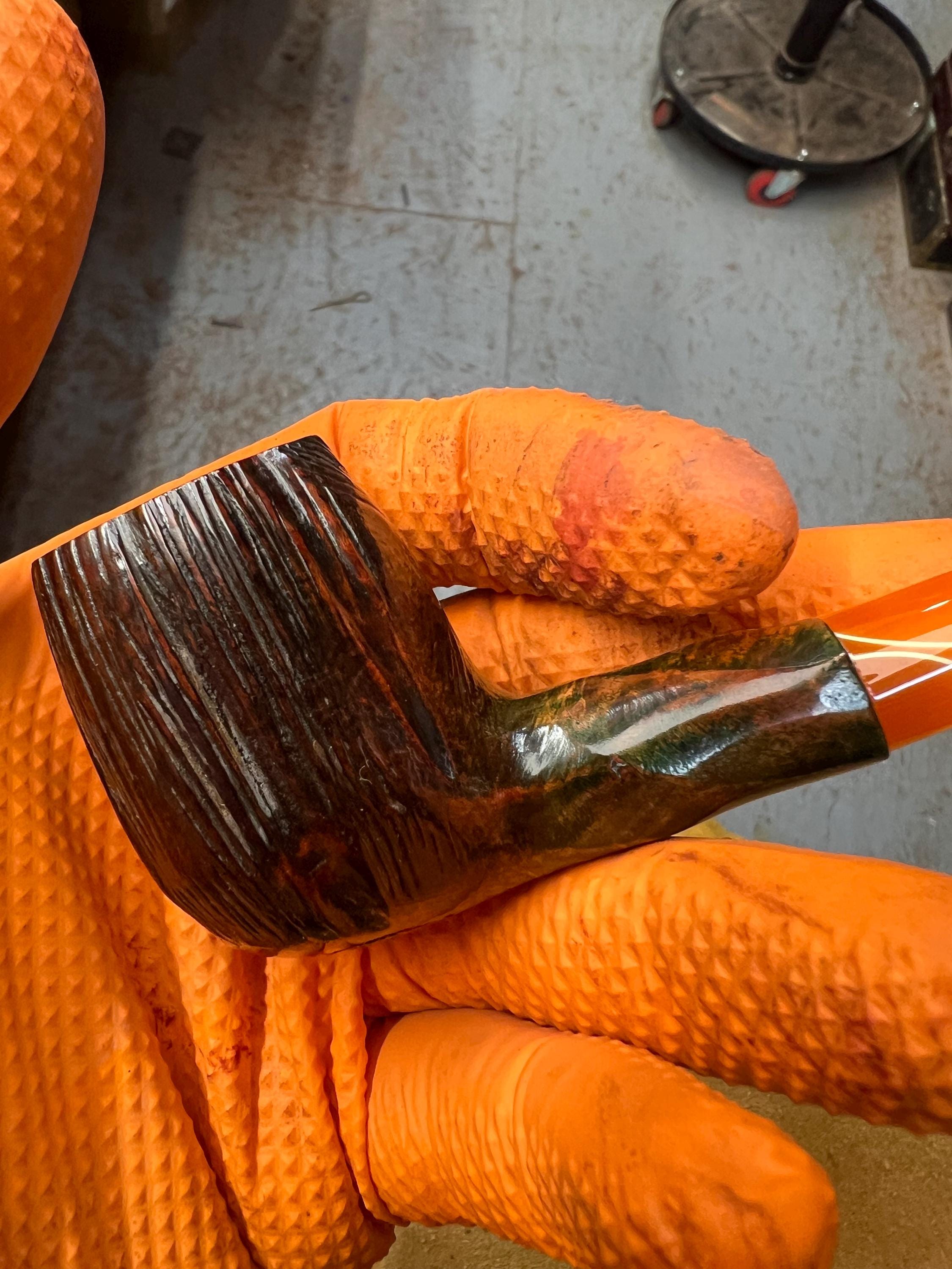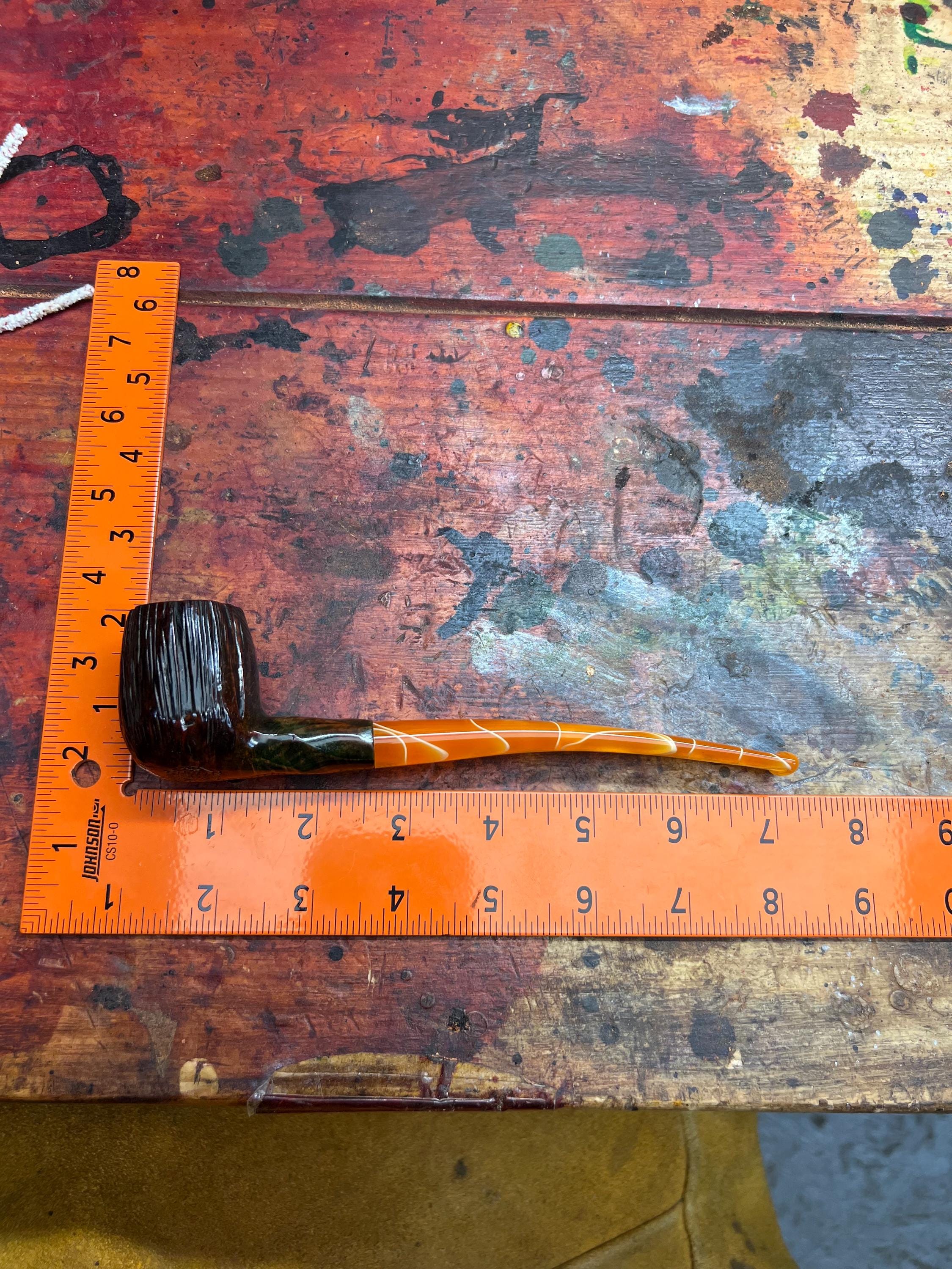 This is a handmade briar pipe that has been meticulously carved and rusticated . Acrylic custom made stem. Non filtered. A very nice daily smoker. A mid churchwarden style with a 7/8” bowl