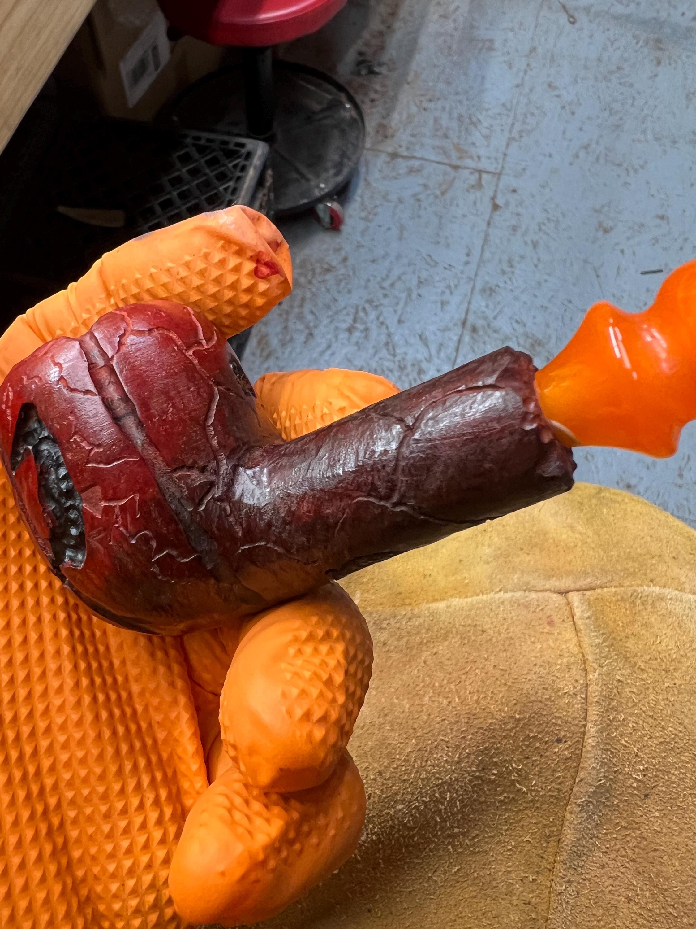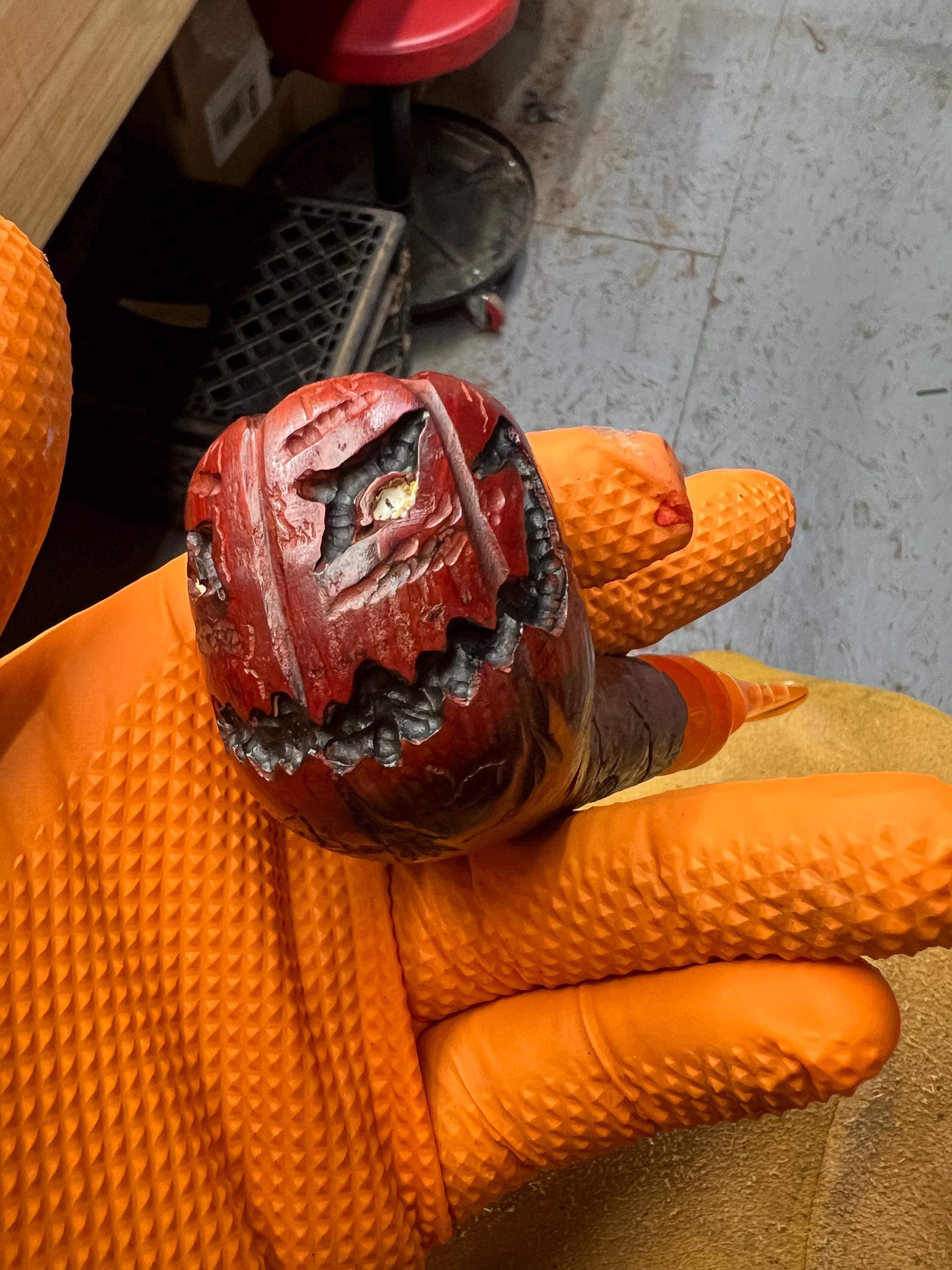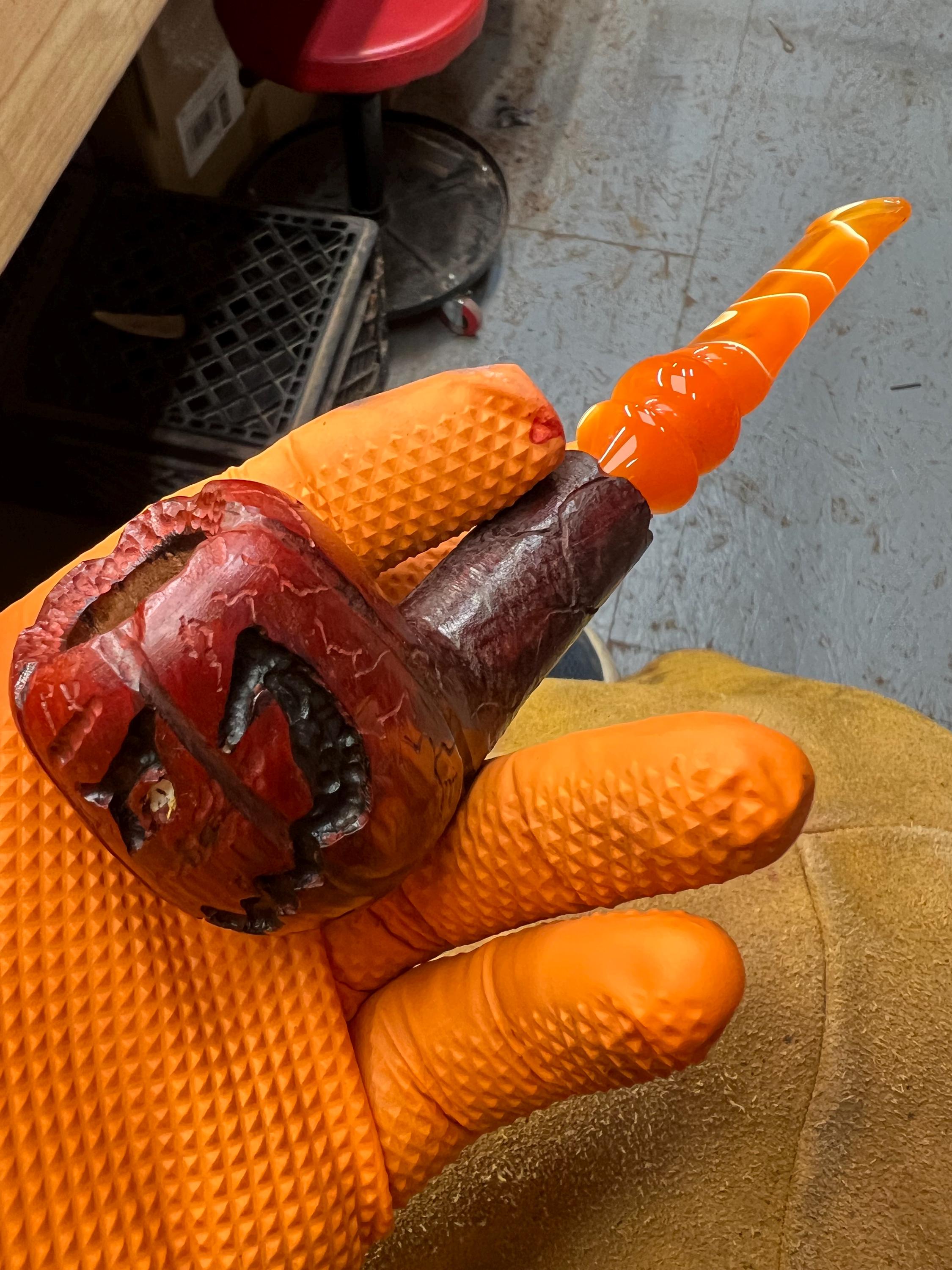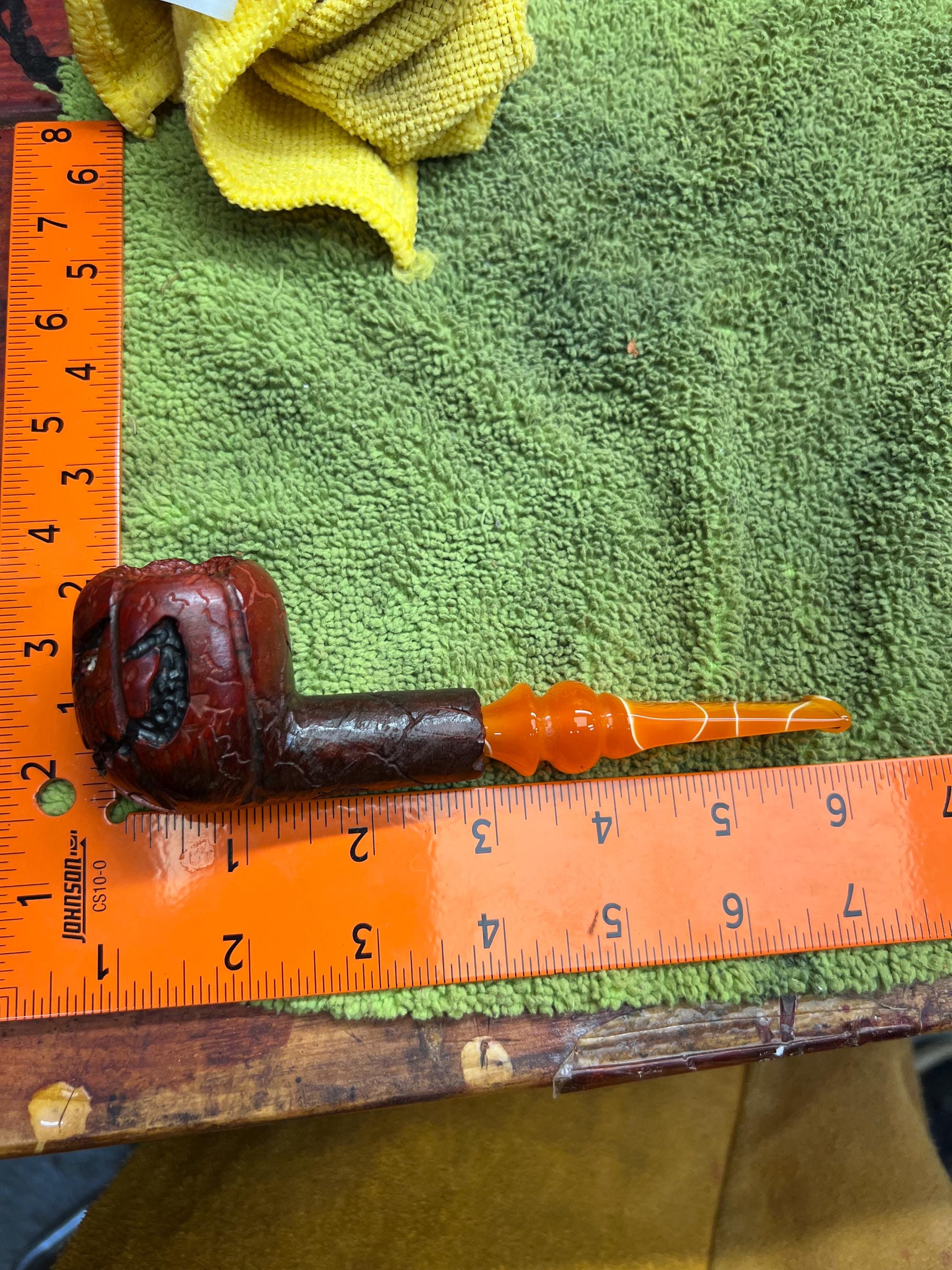 This is a handmade briar pipe that has been freehand carved and polished. A nice custom acrylic stem. These are built to be beautiful but also for every day smoking. Say happy Halloween with this awesome jack o lantern pipe!