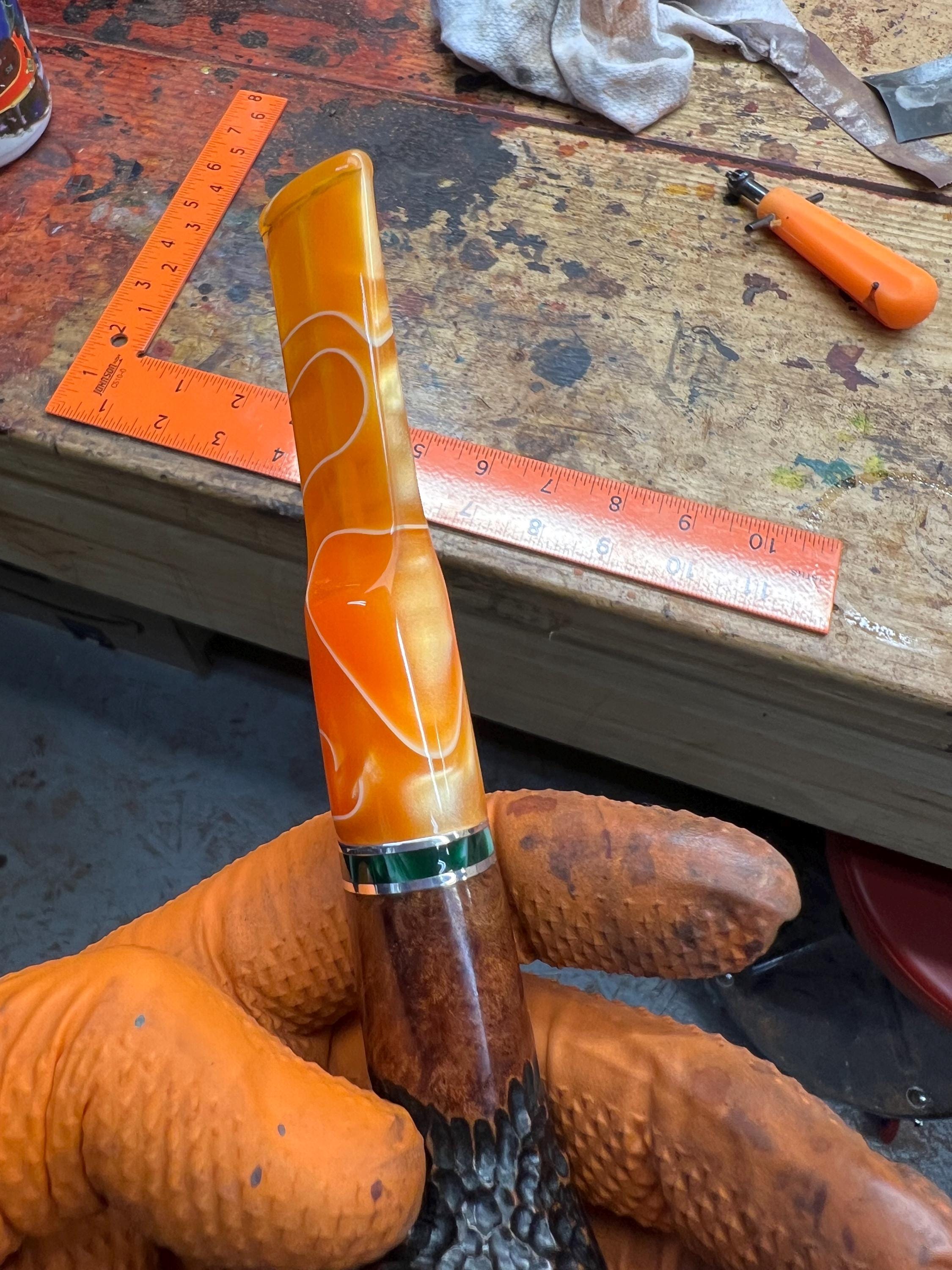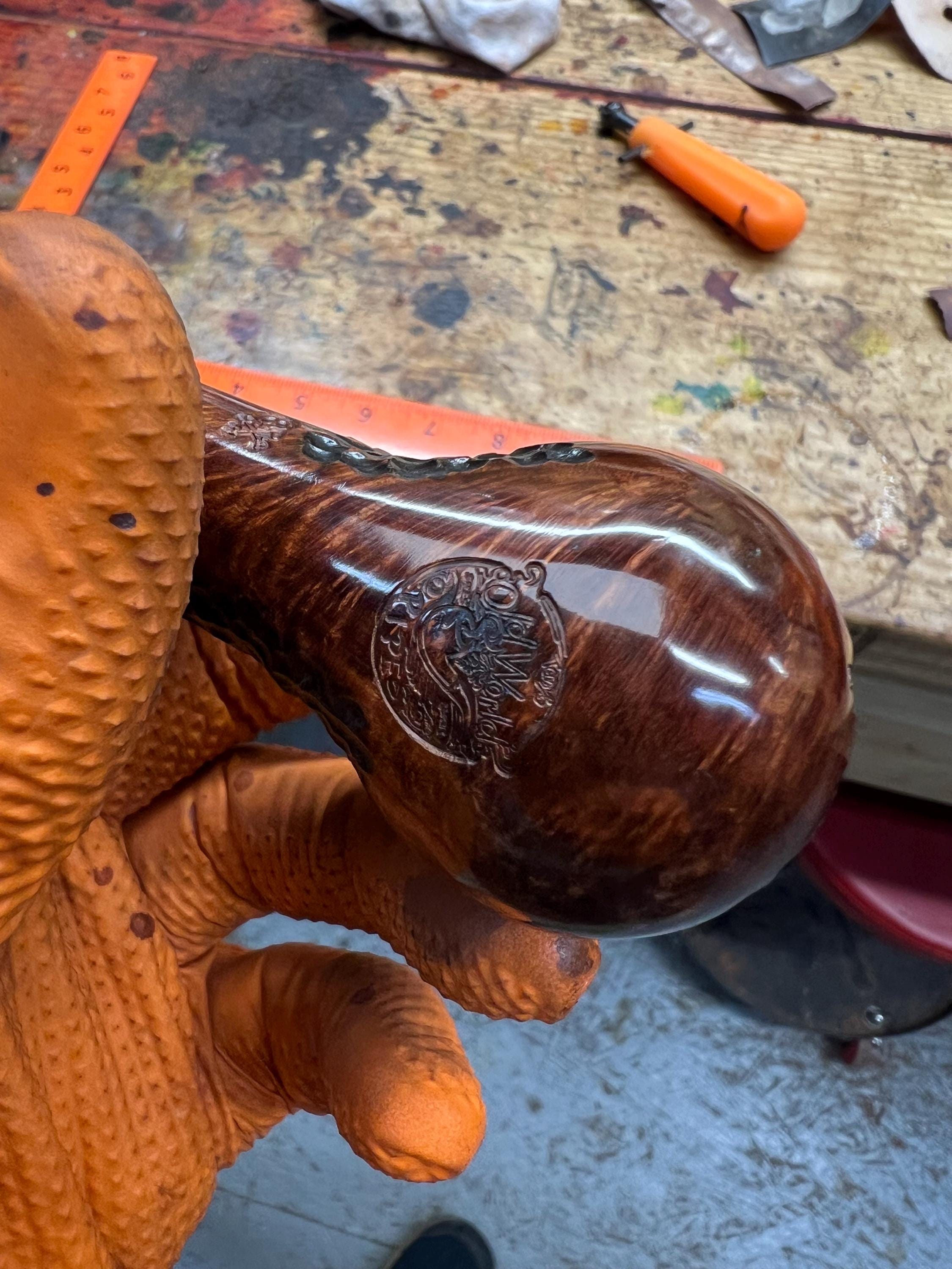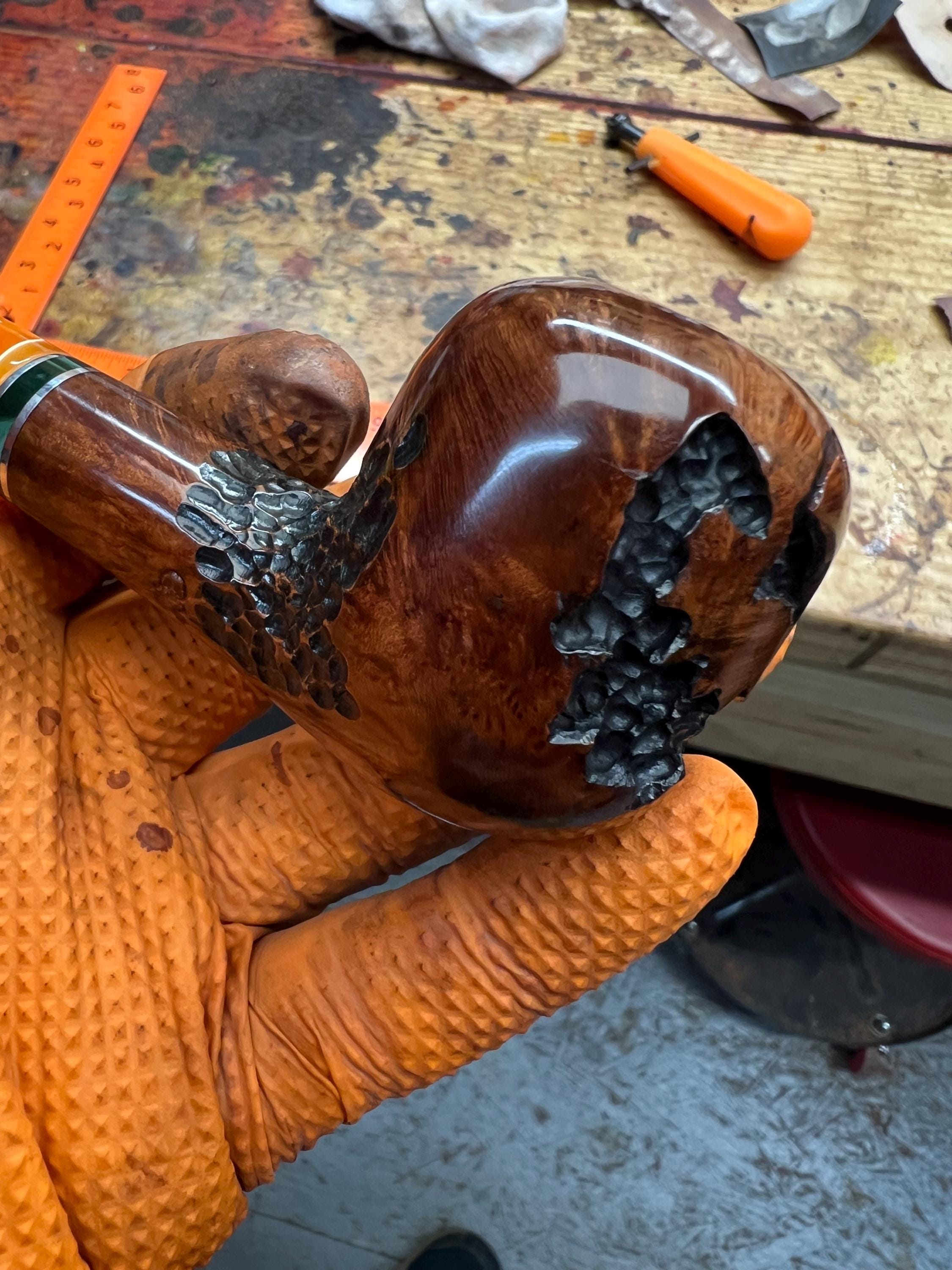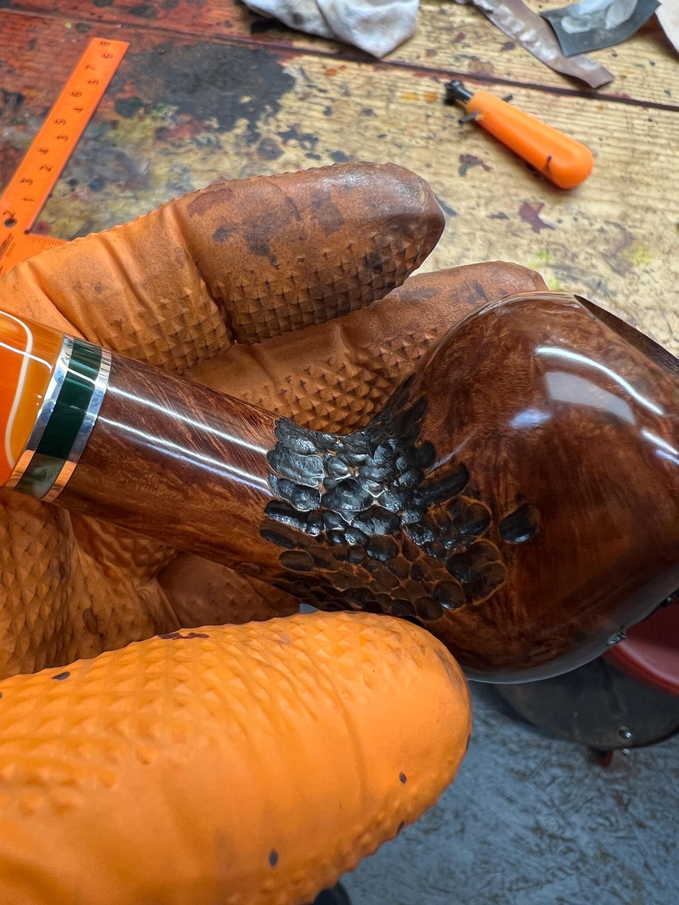 This is a handmade briar pipe that has been freehand carved and polished. A nice custom acrylic stem. These are built to be beautiful but also for every day smoking. Say happy Halloween with this awesome jack o lantern pipe!