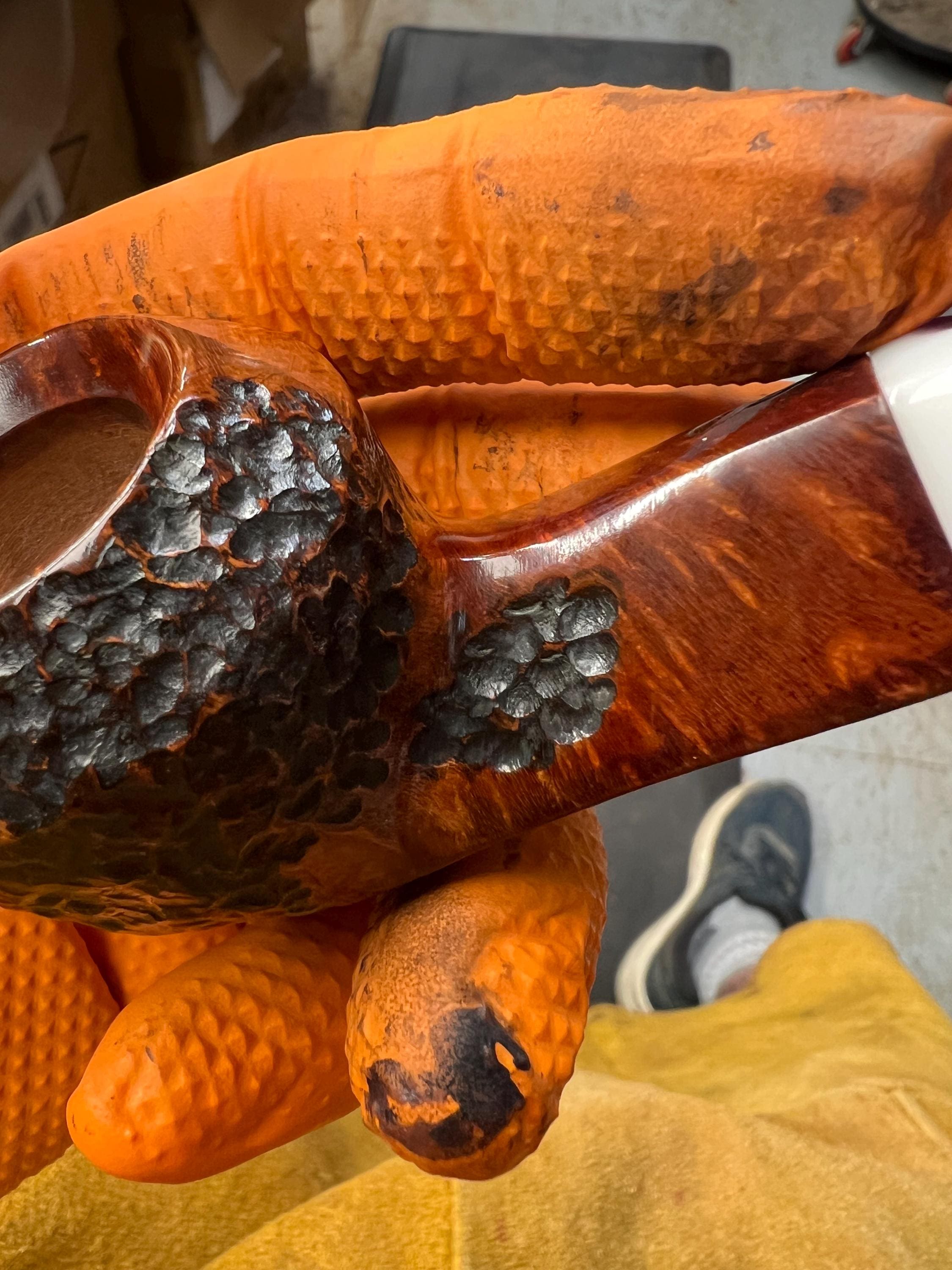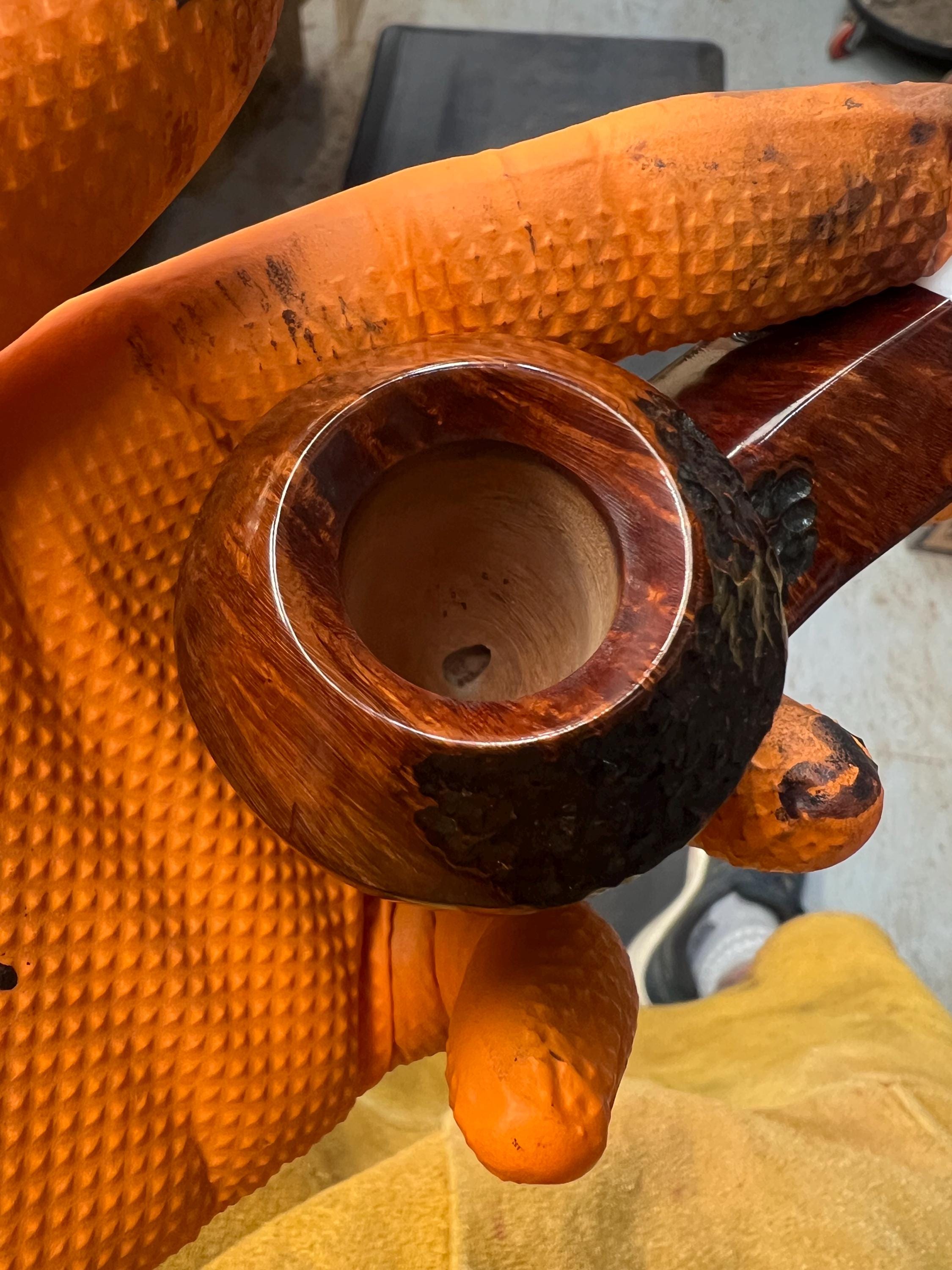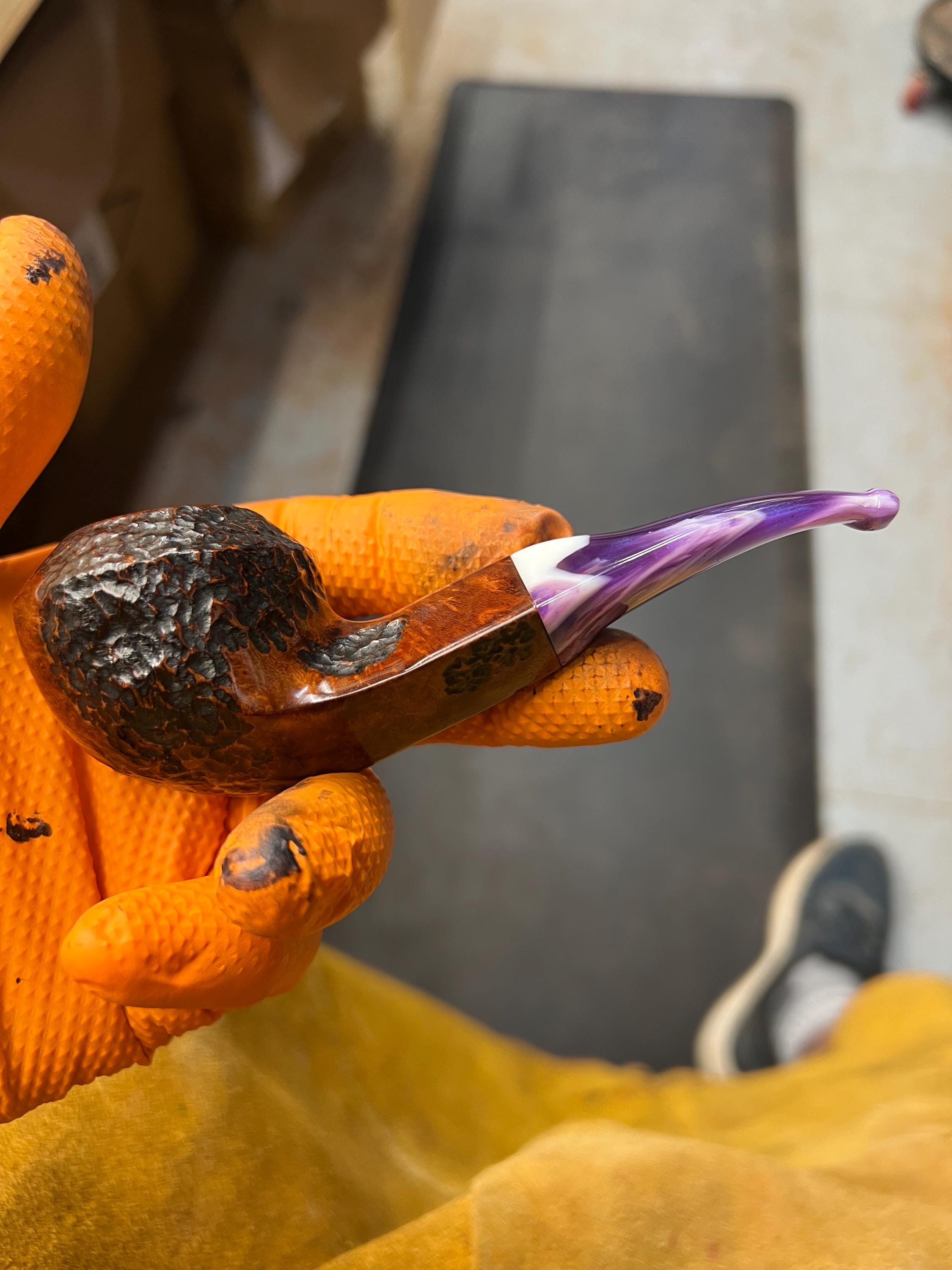 This is a handmade briar pipe that has been freehand carved and polished. A nice custom acrylic stem. These are built to be beautiful but also for every day smoking.