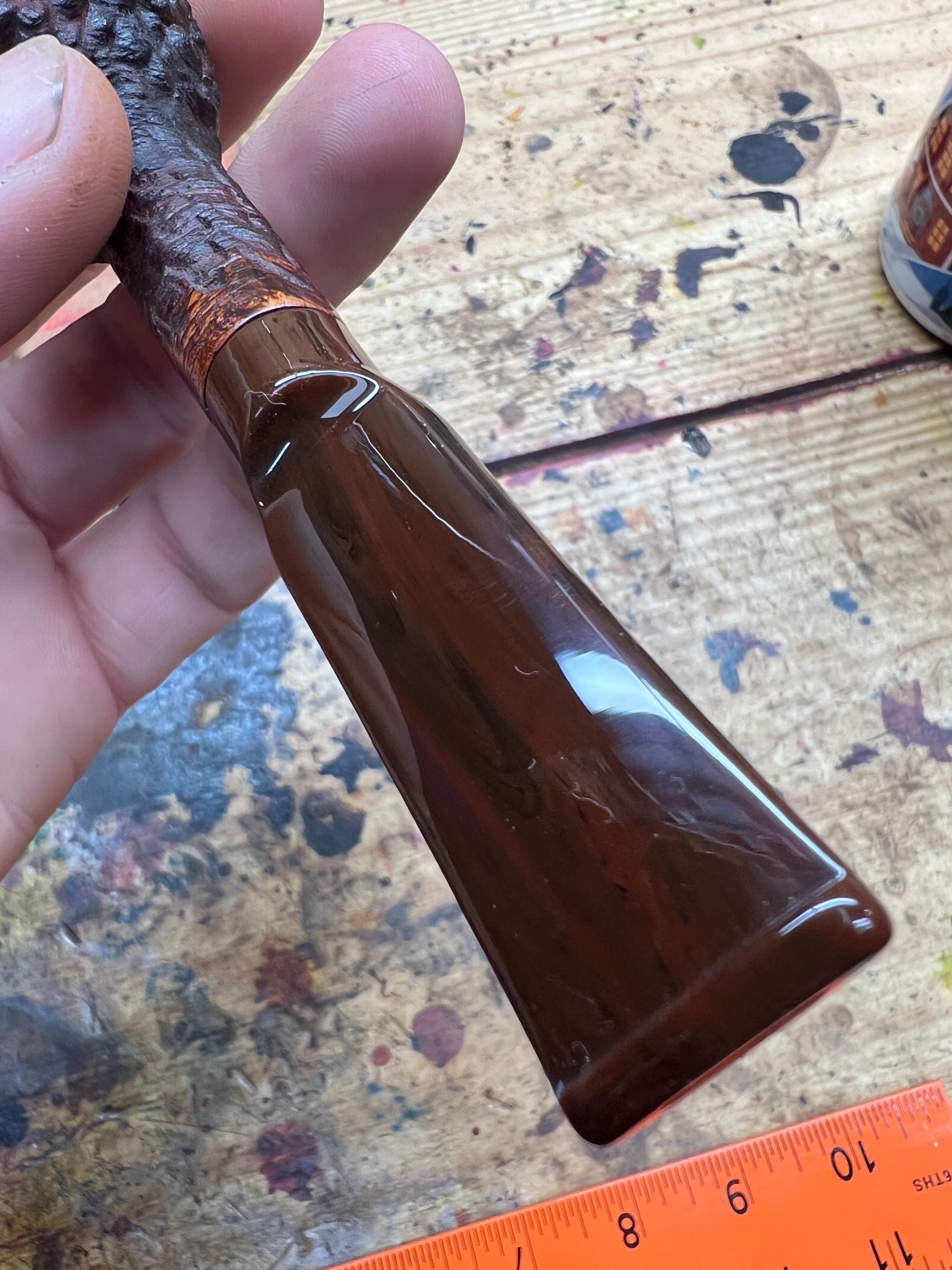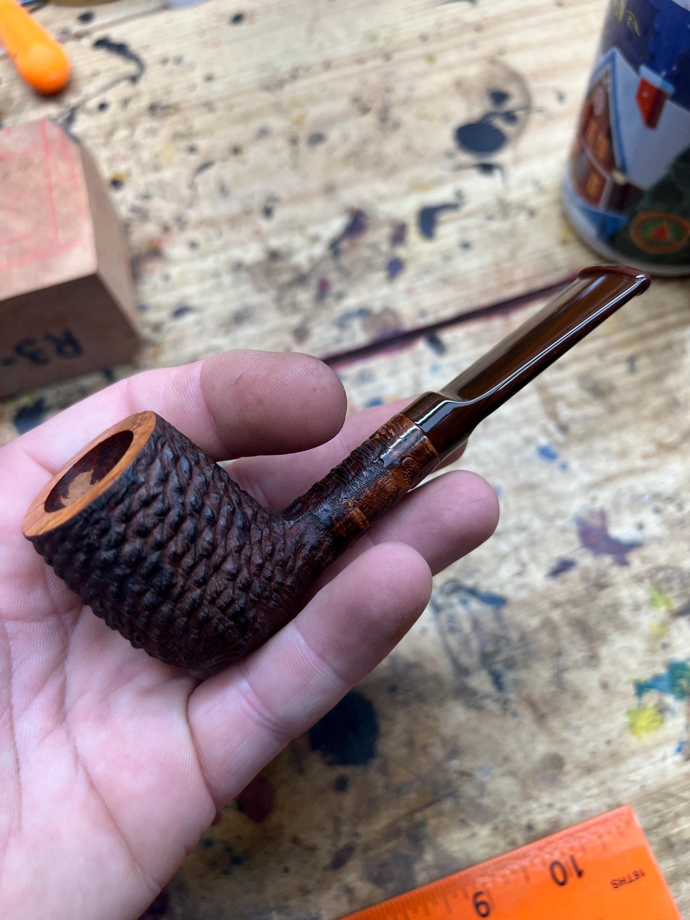 This is a handmade briar pipe that has been carved and polished . A nice custom acrylic stem. These are built to be beautiful but also for every day smoking. This one is a medium version of our larger line. Perfect for the pocket.