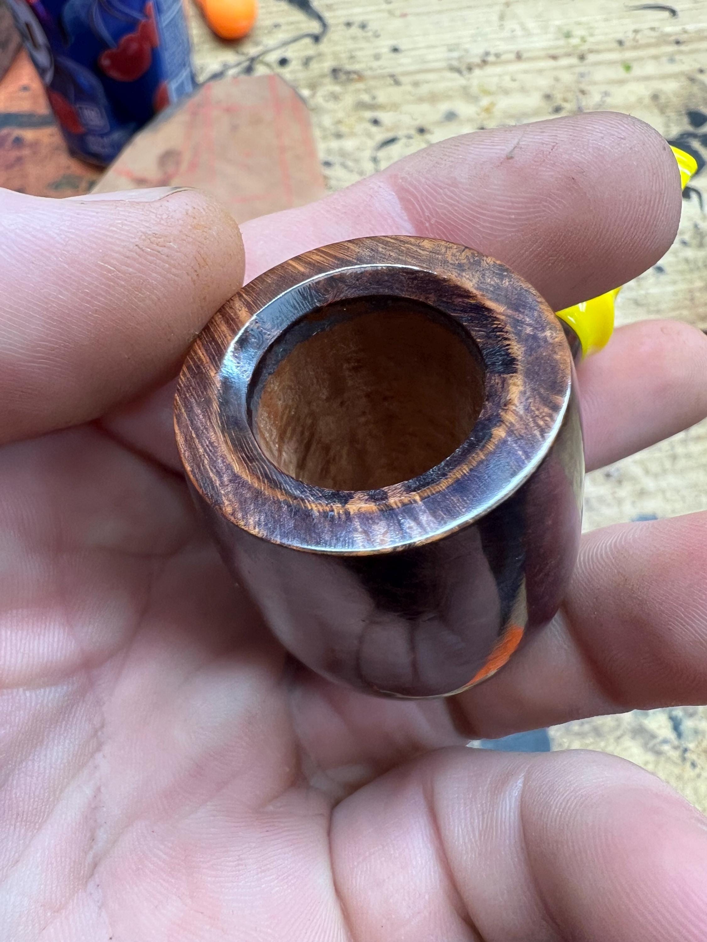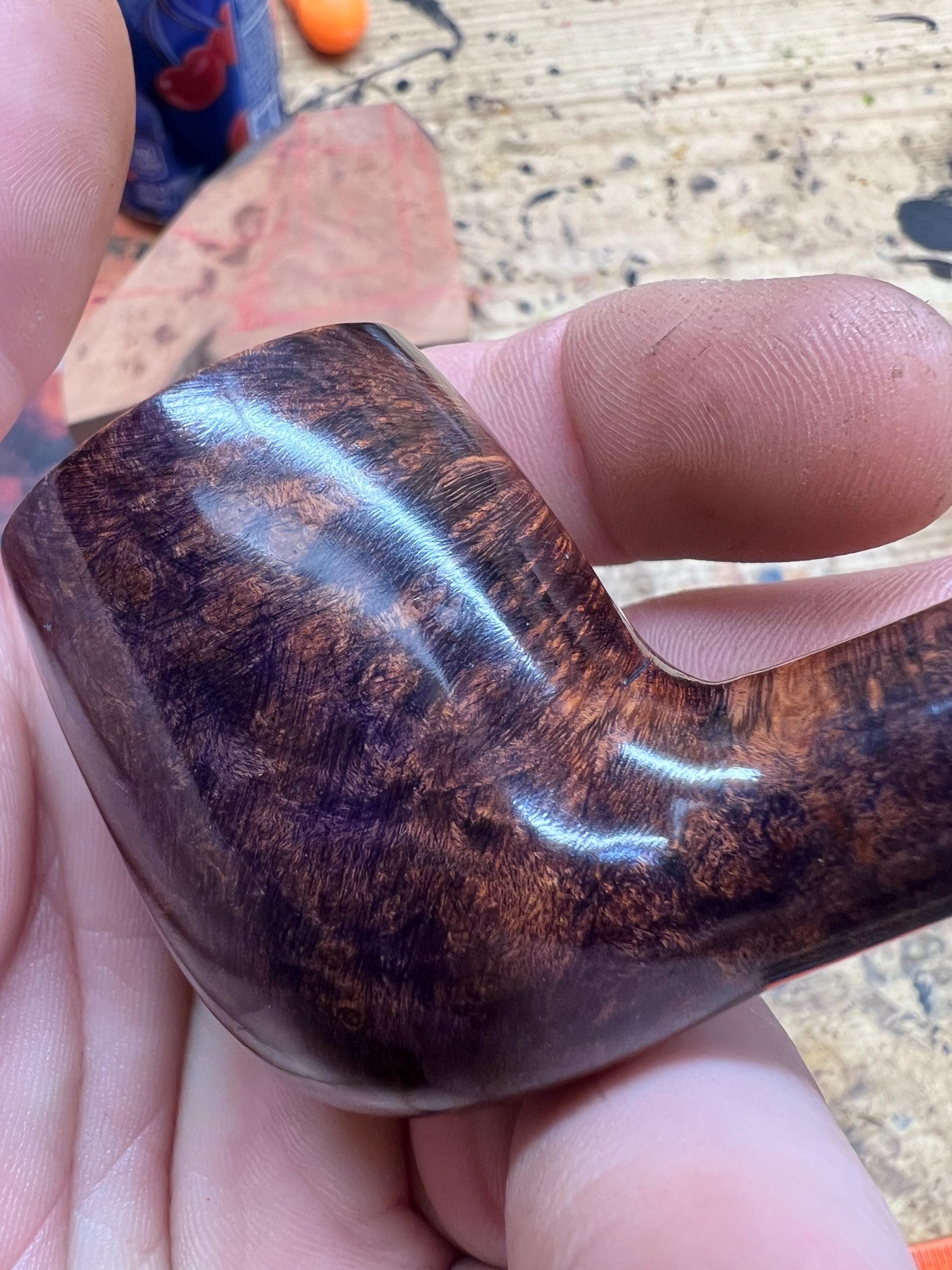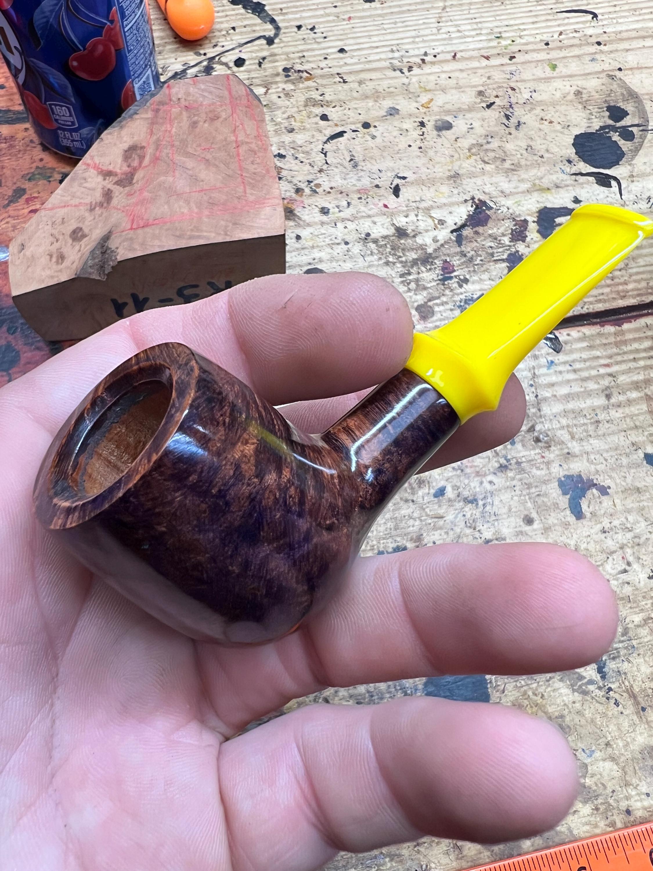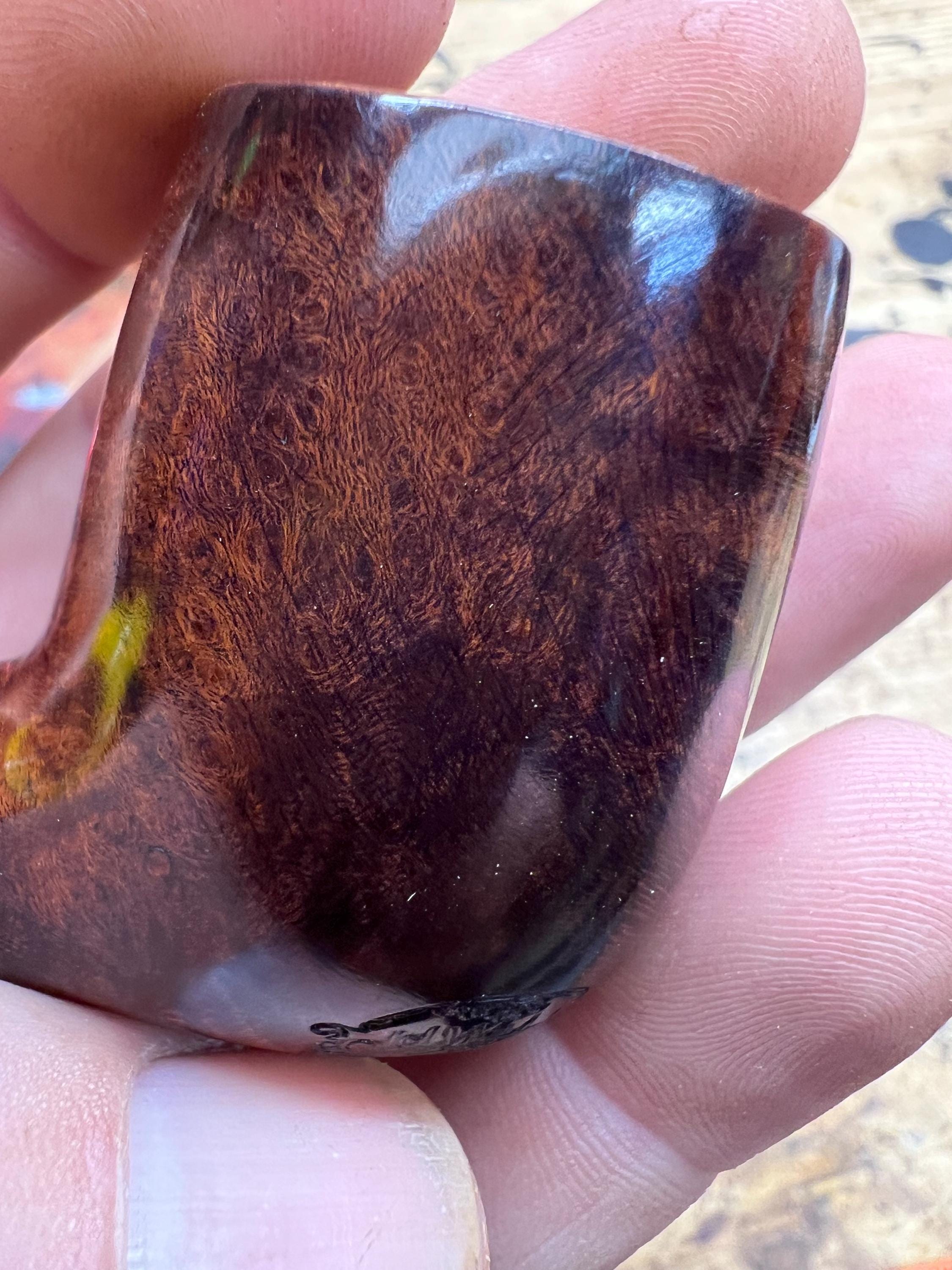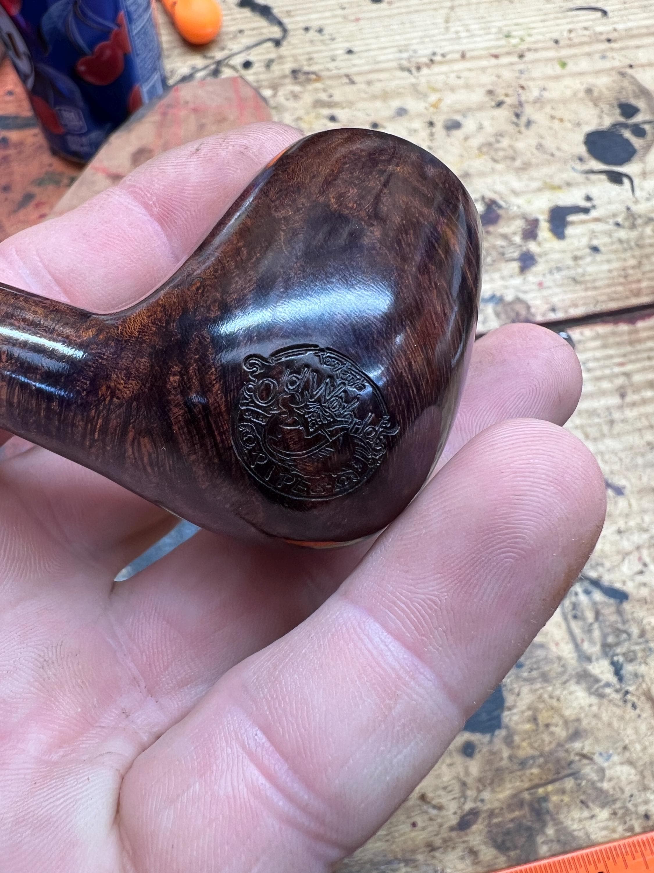 This is a handmade briar pipe that has been meticulously carved and polished . Acrylic custom made stem. Non filtered. A very nice daily smoker. Short!