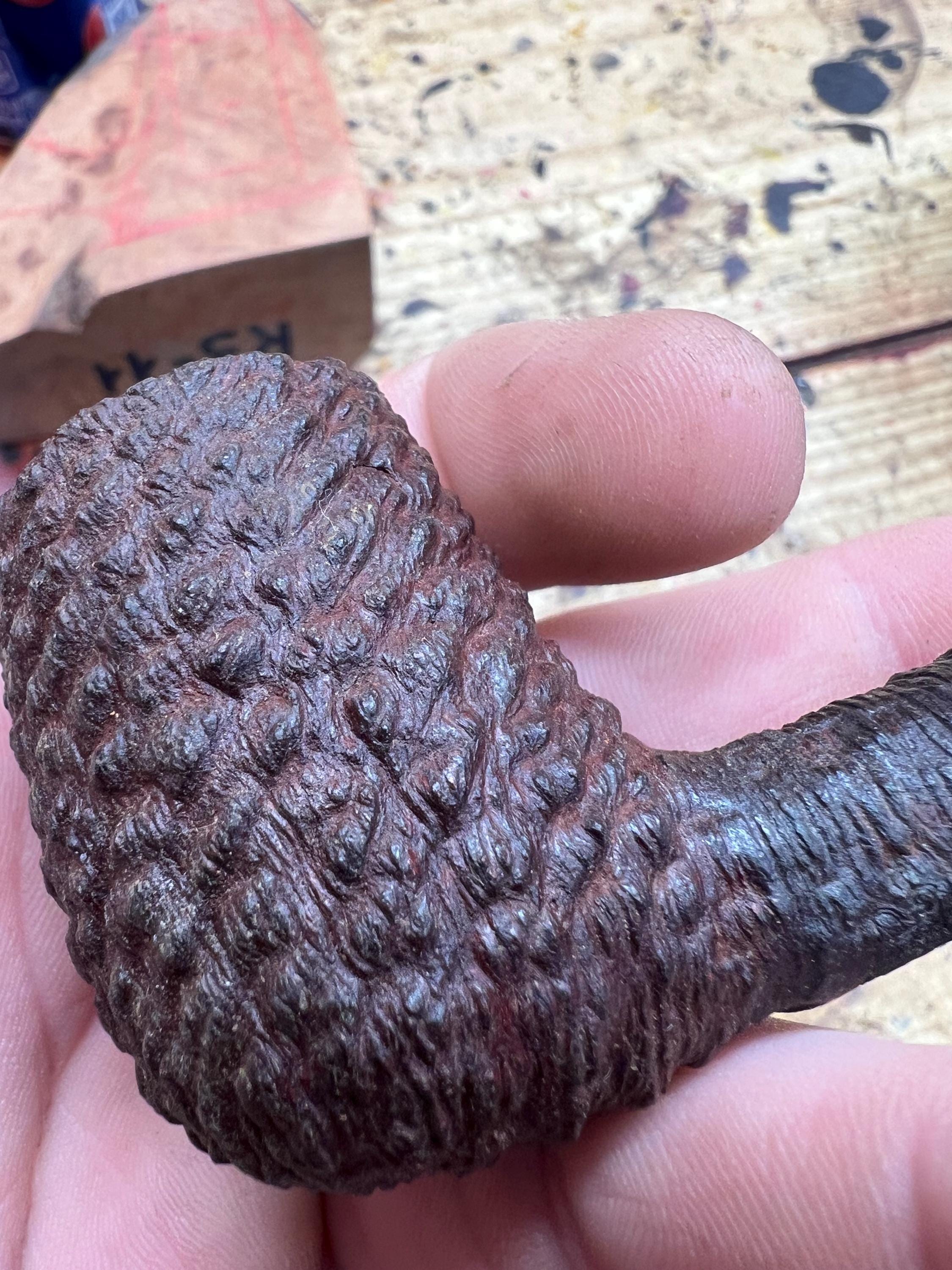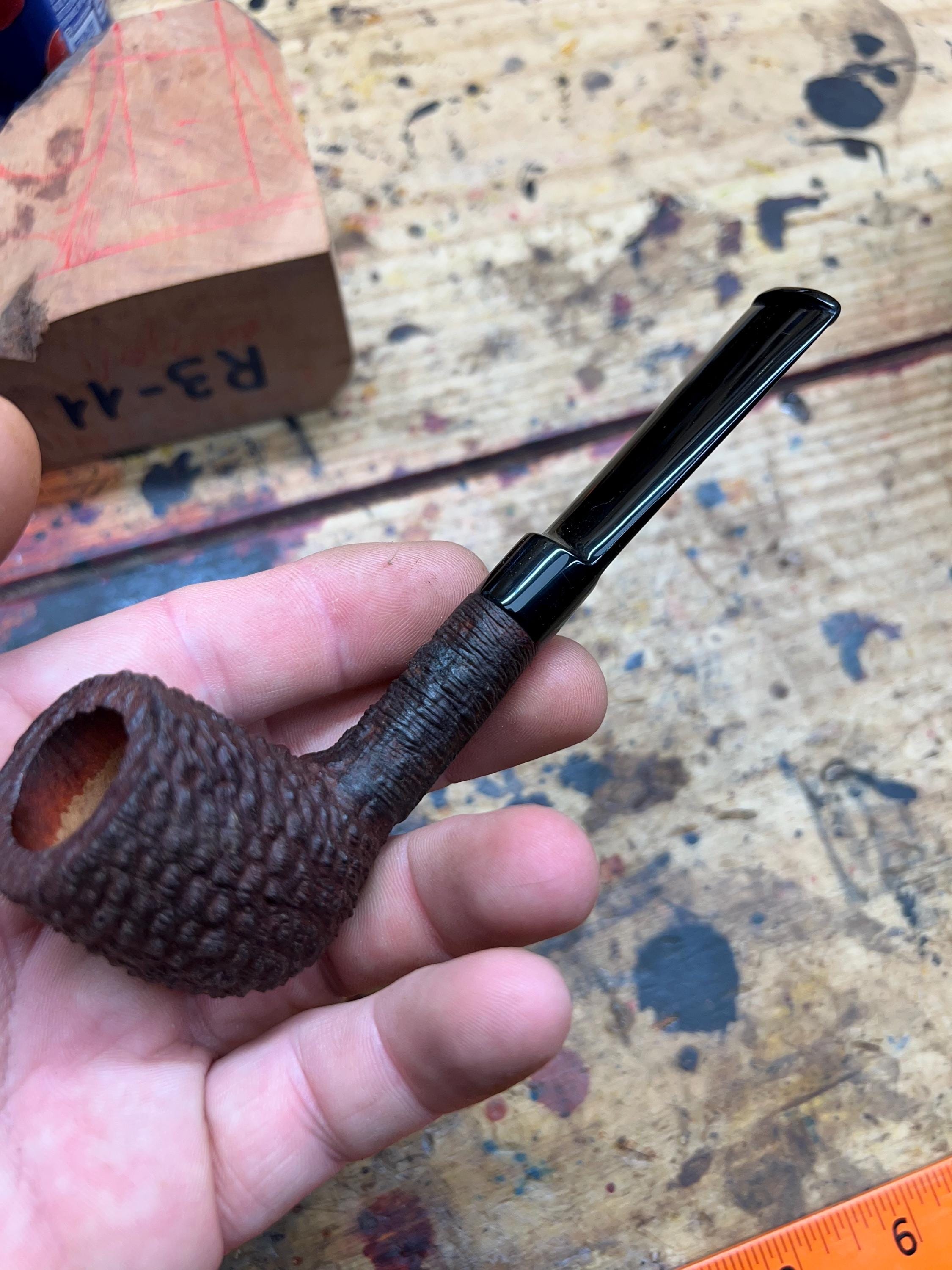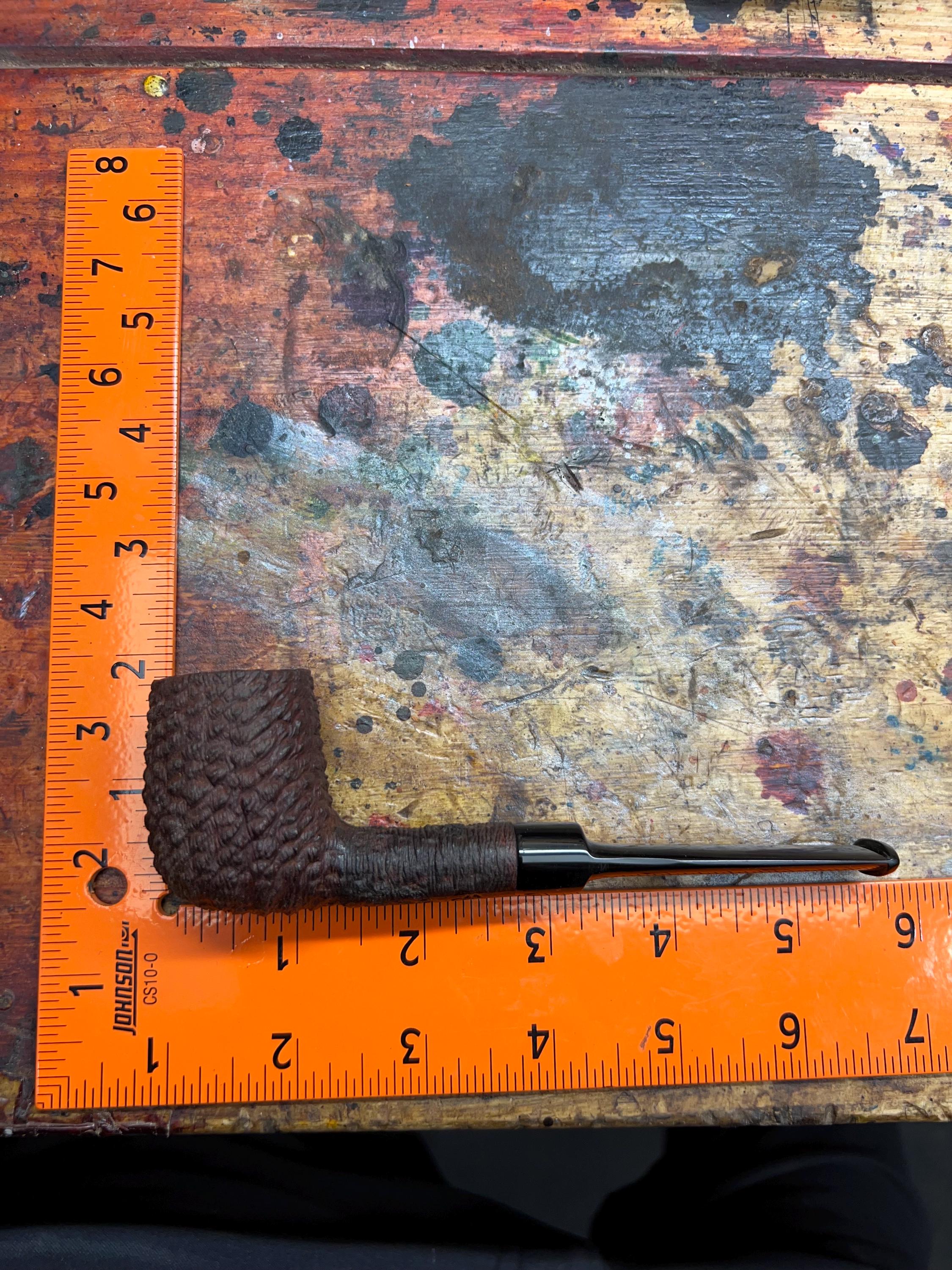 This is a handmade briar pipe that has been meticulously carved and rusticated . Vulcanite custom made stem. Non filtered. A very nice daily smoker. medium size for your pocket!