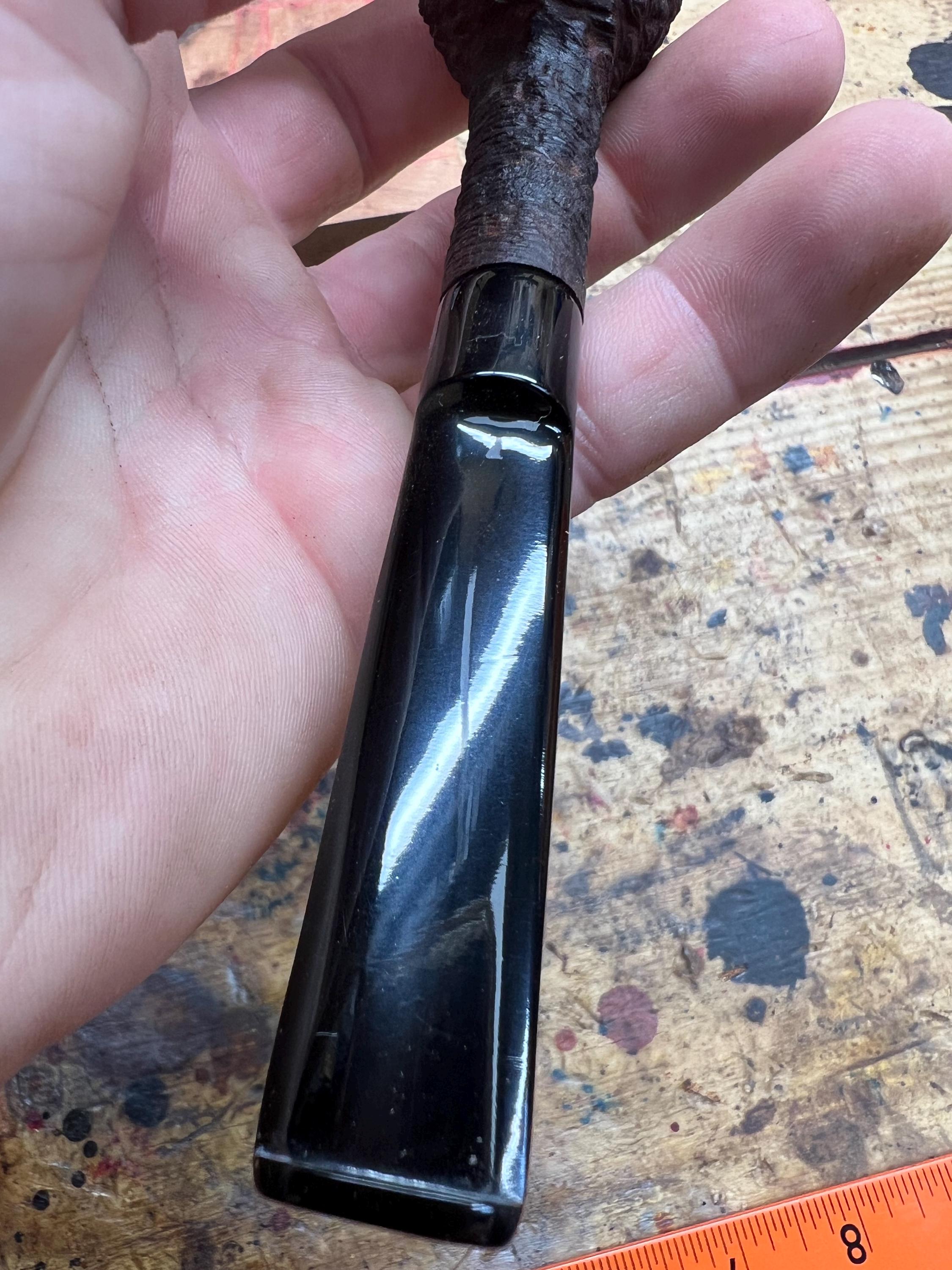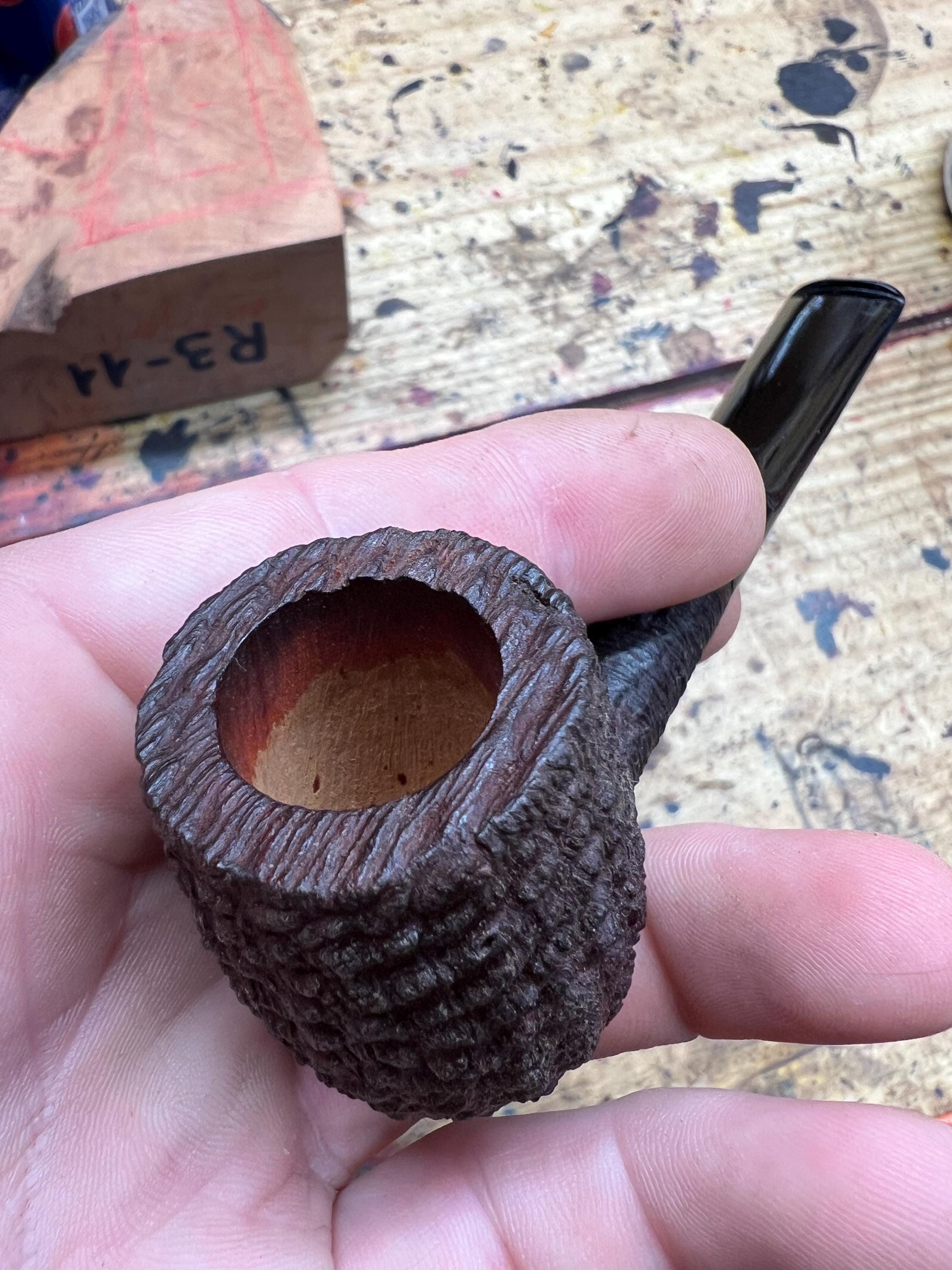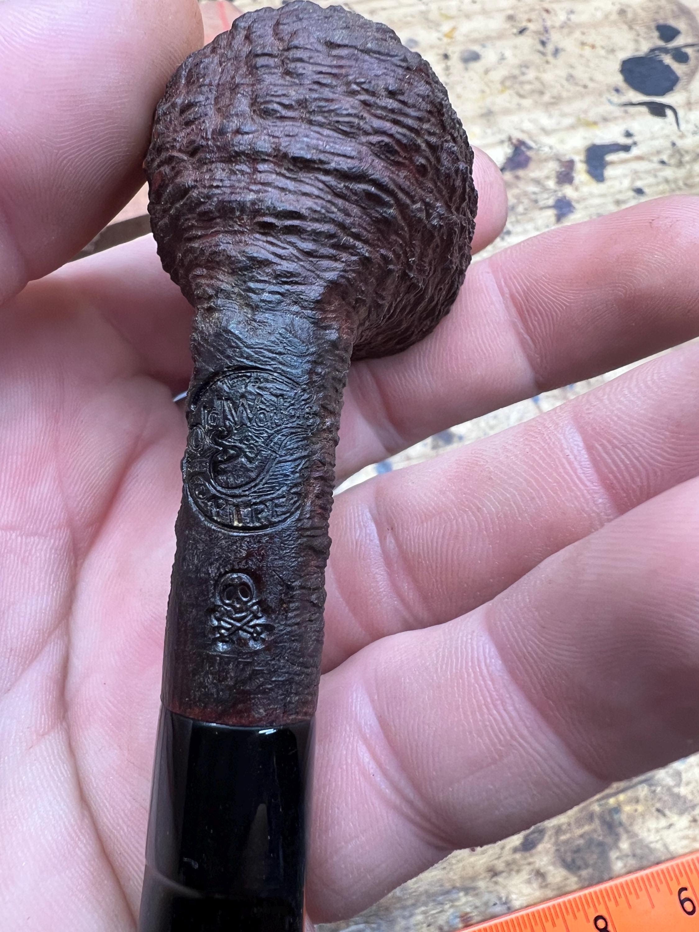 This is a handmade briar pipe that has been meticulously carved and rusticated . Vulcanite custom made stem. Non filtered. A very nice daily smoker. medium size for your pocket!
