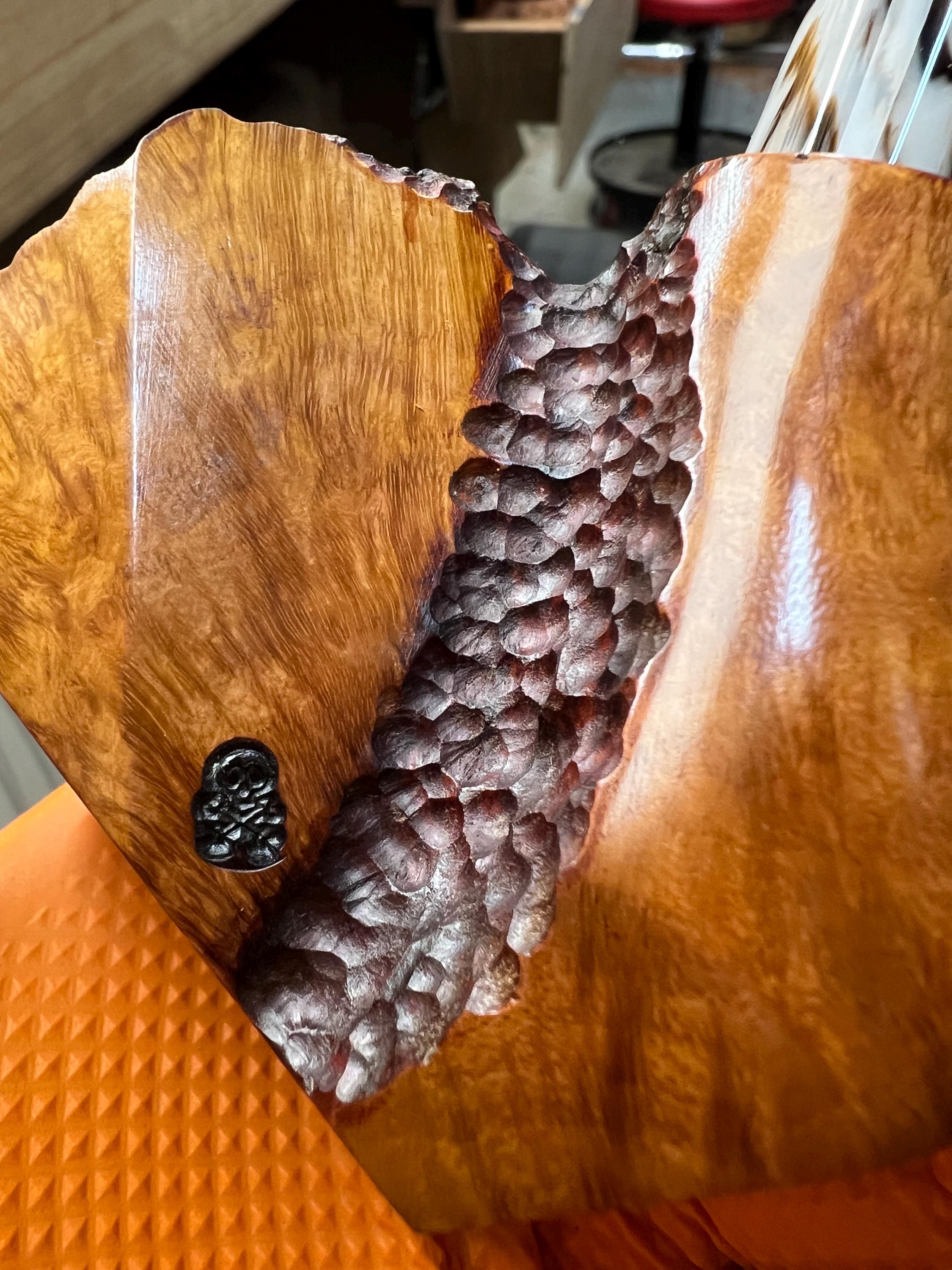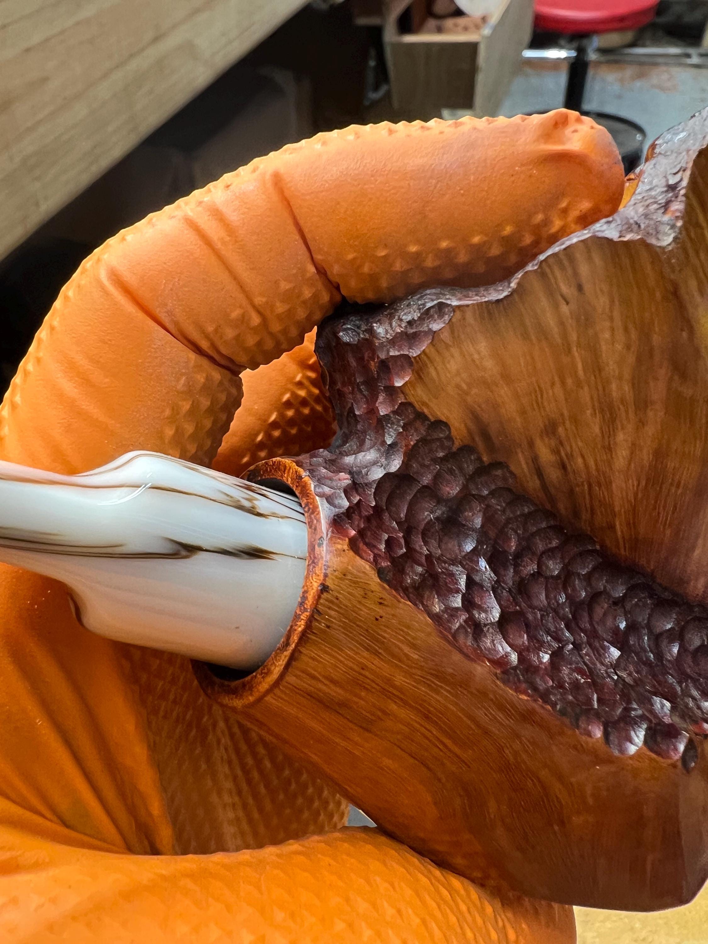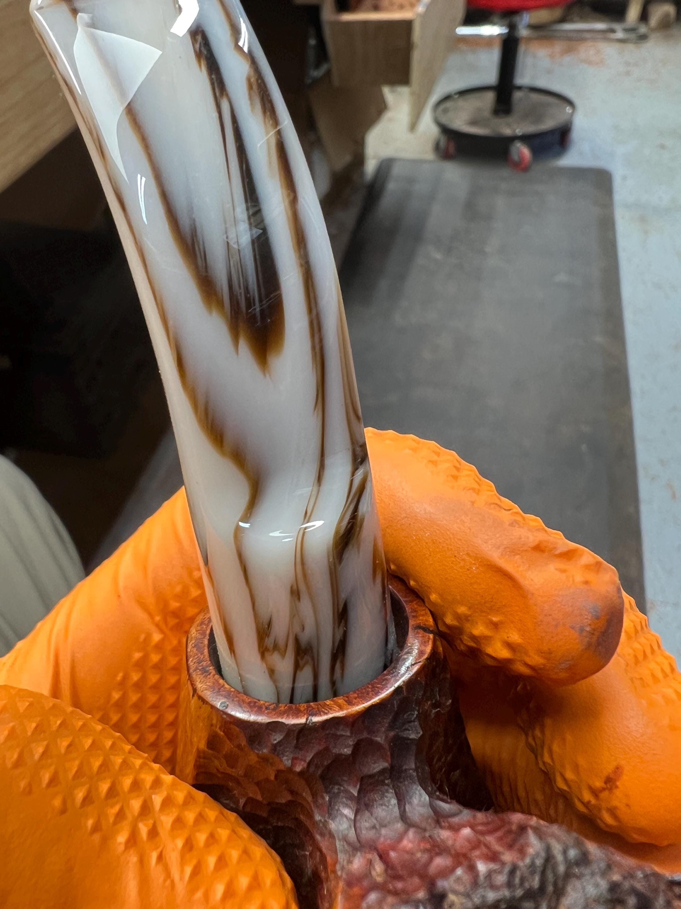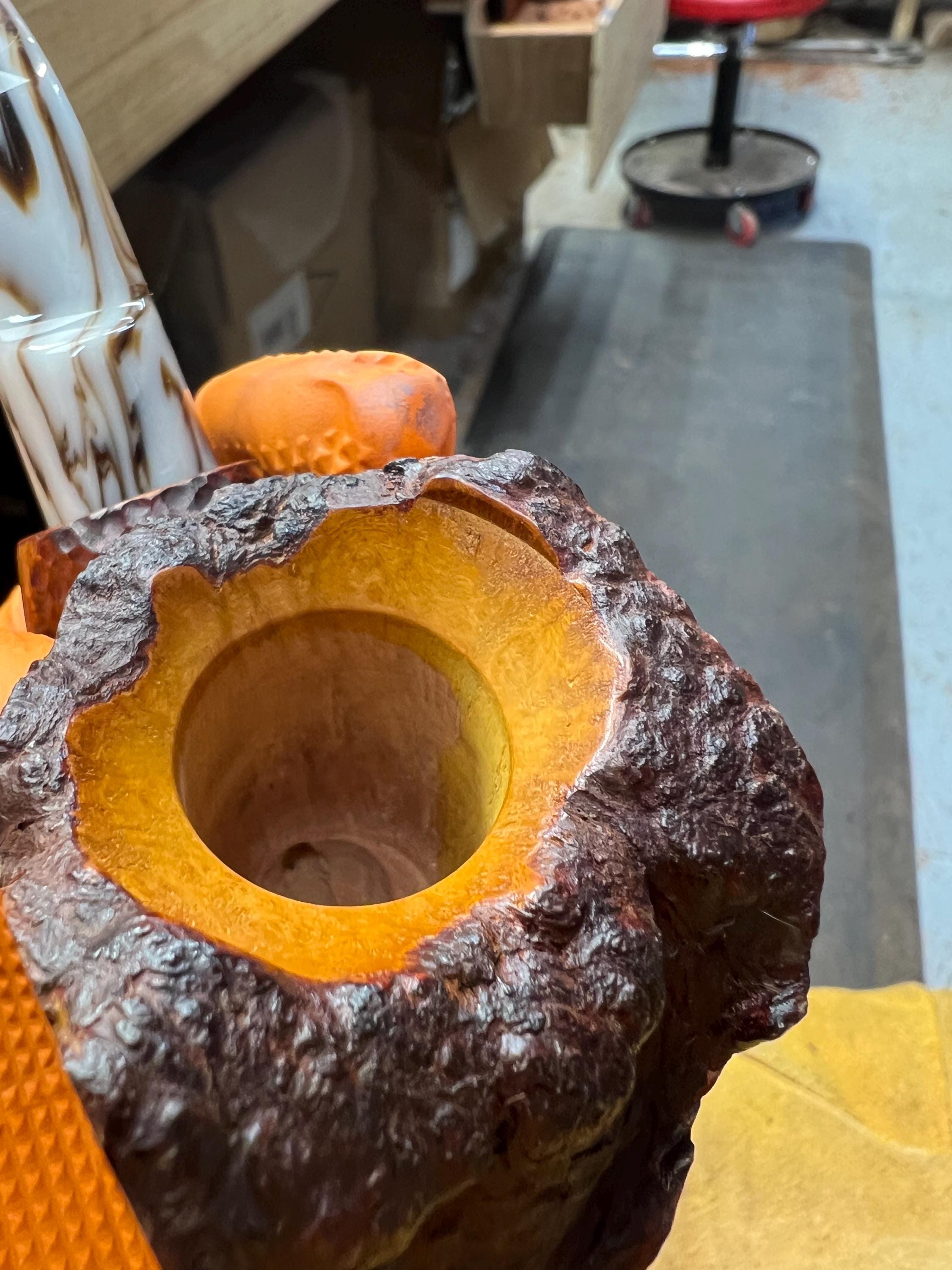 This is a handmade briar pipe that has been freehand carved and polished. A nice custom acrylic stem that’s slightly bent. These are built to be beautiful but also for every day smoking. This one is a medium to large pipe. 7/8 x1.5 deep bowl. Grecian briar