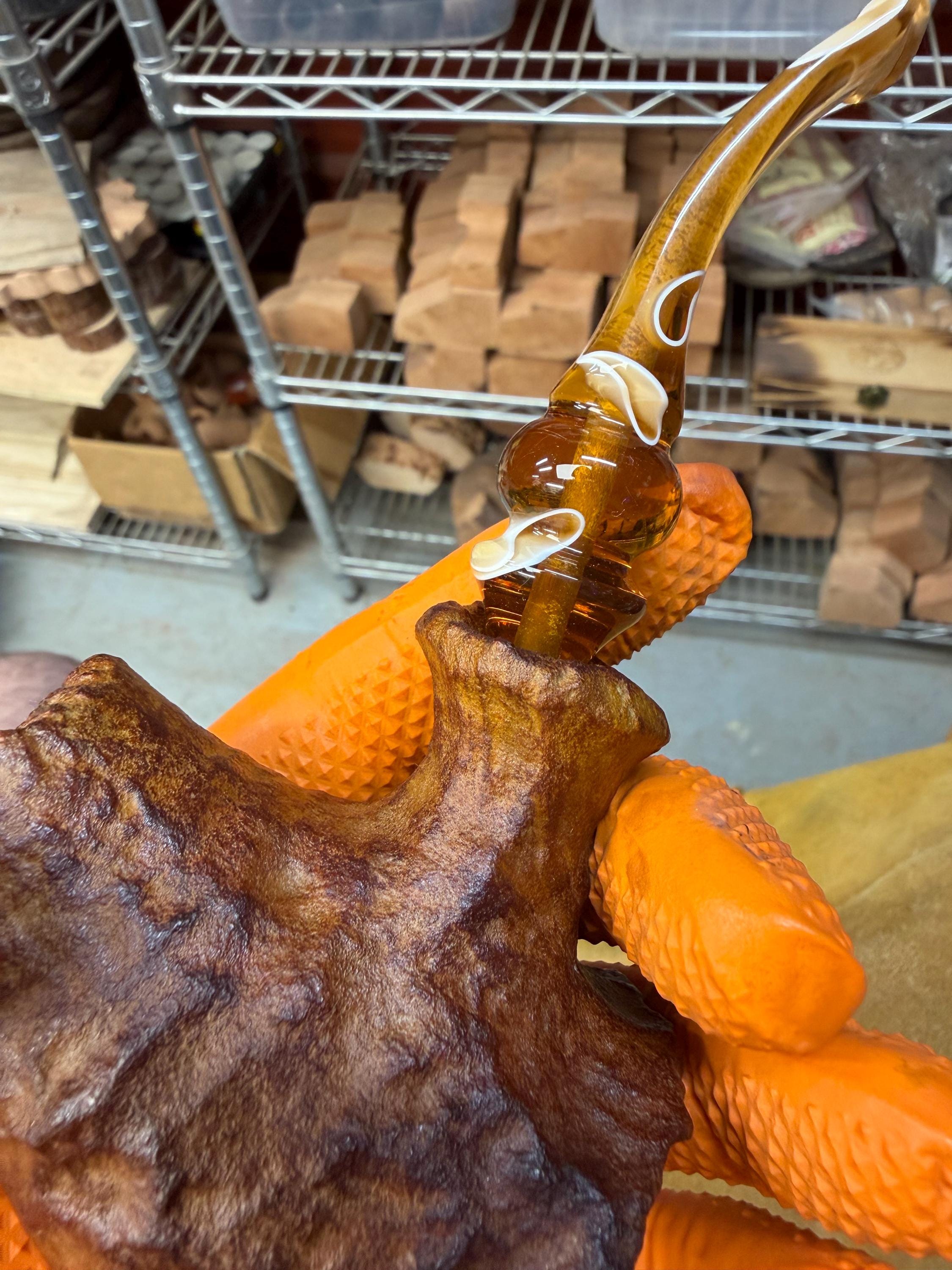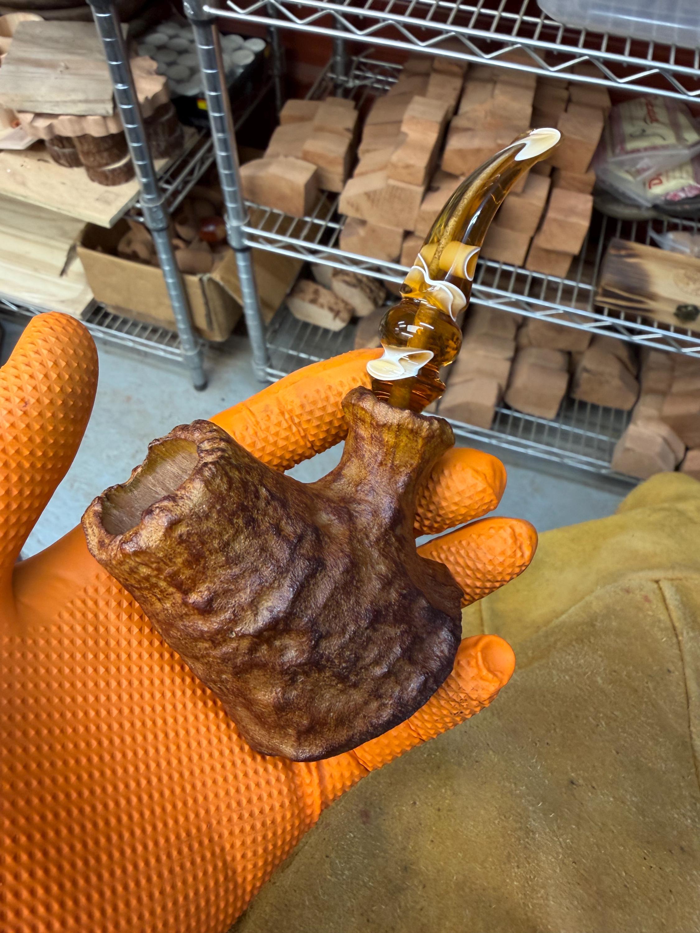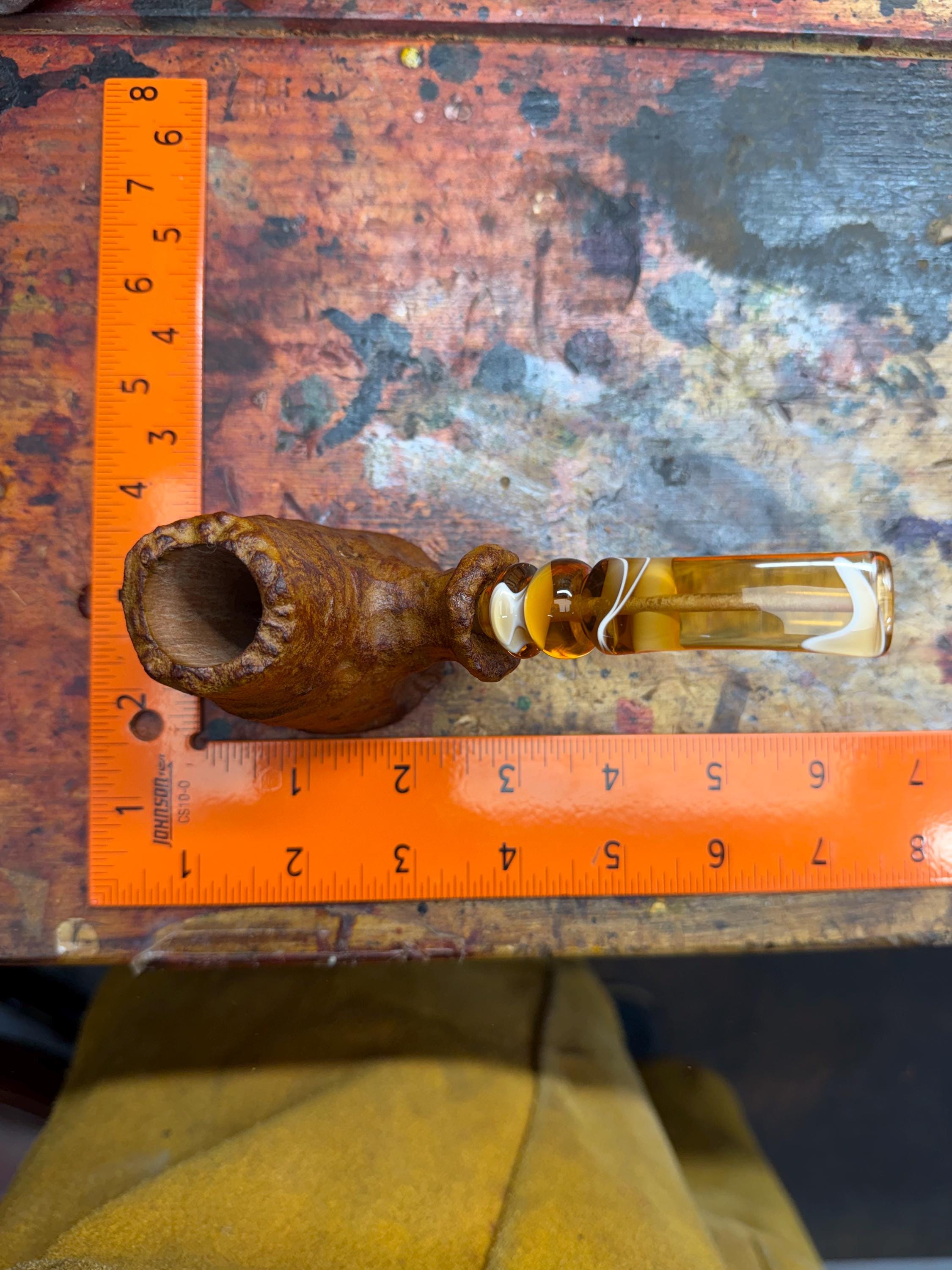 This is a handmade briar pipe that has been freehand carved and polished. A nice custom acrylic stem. These are built to be beautiful but also for every day smoking. This one is a large pipe. 7/8 x2” deep bowl.