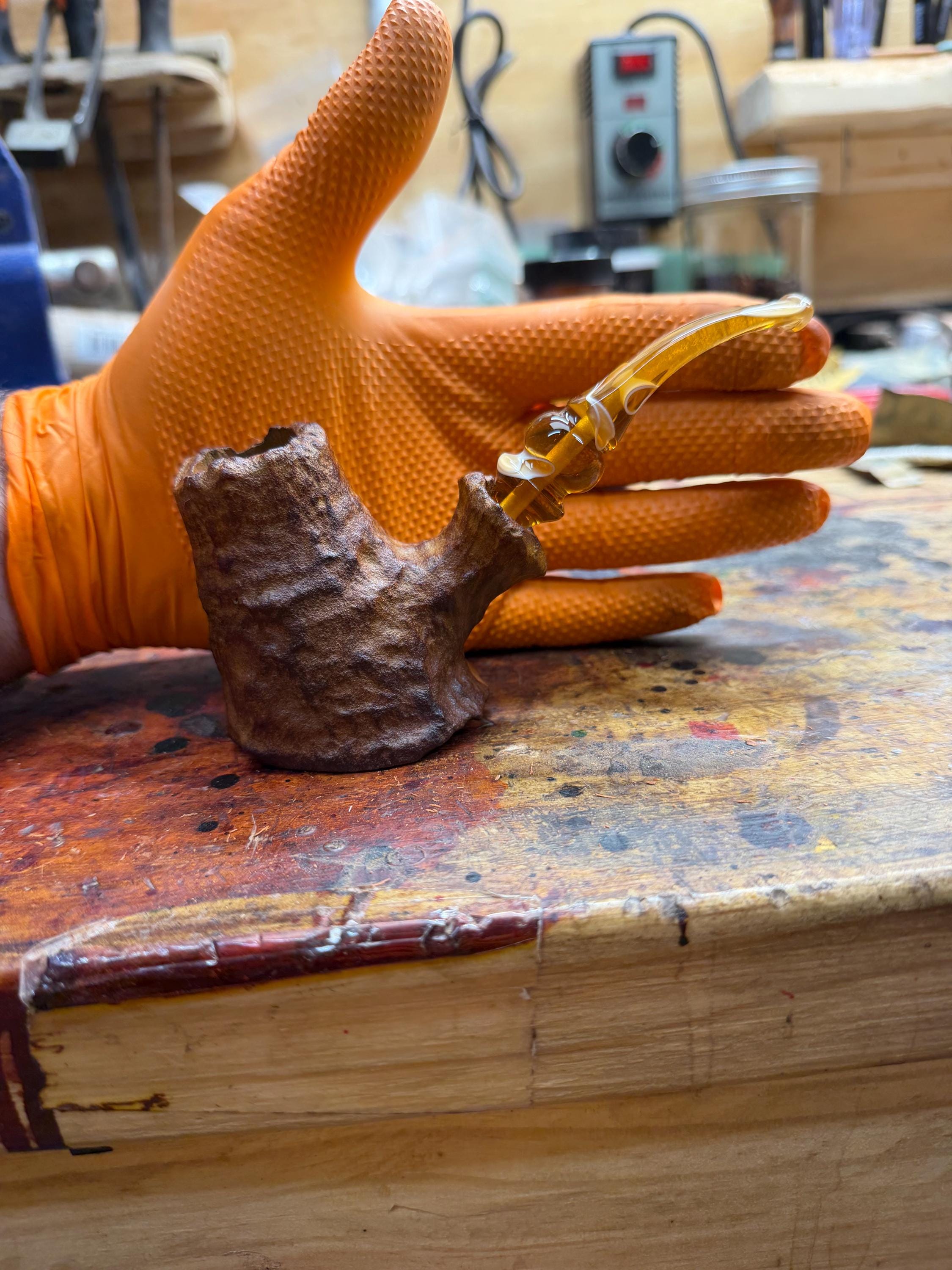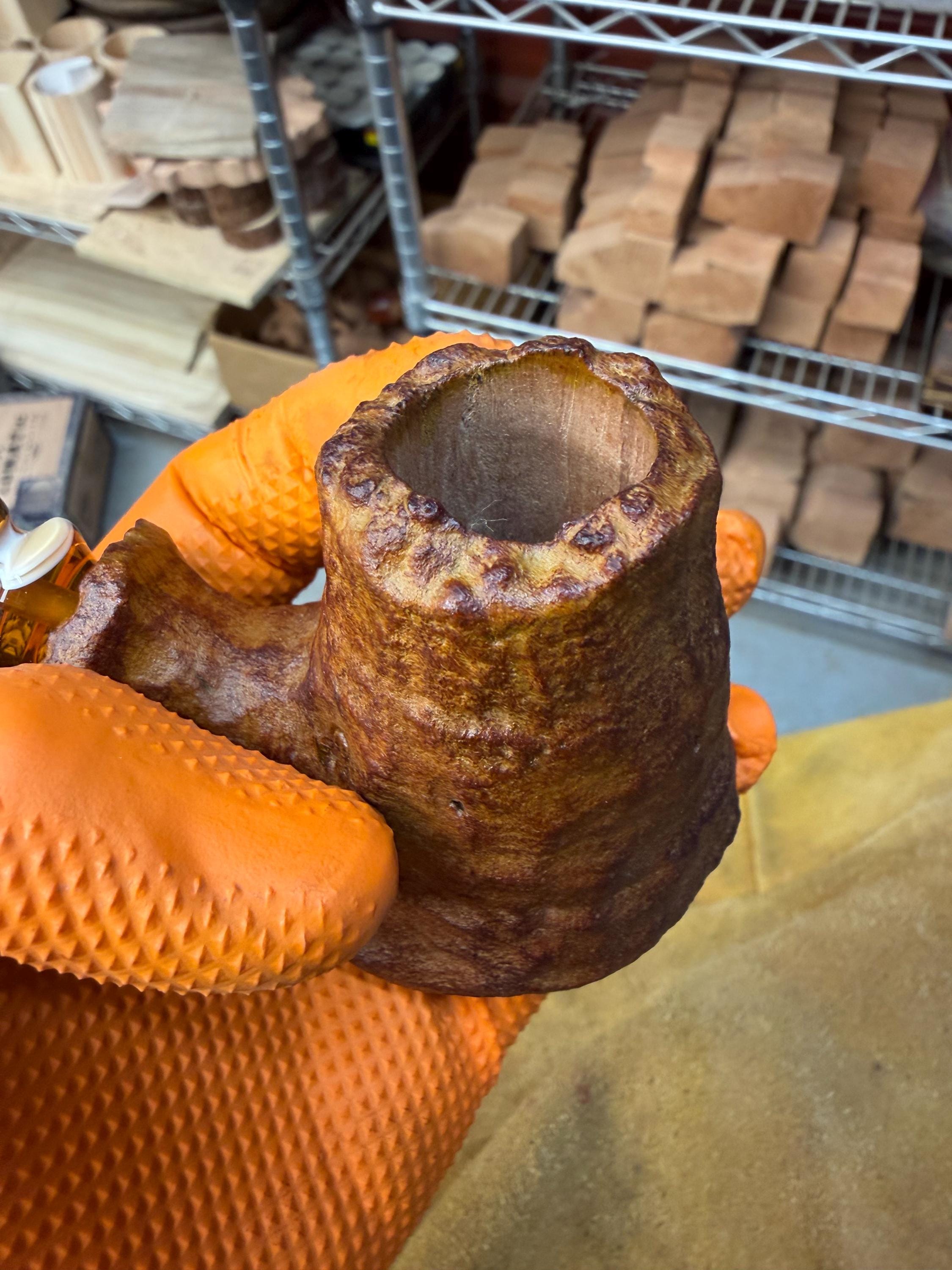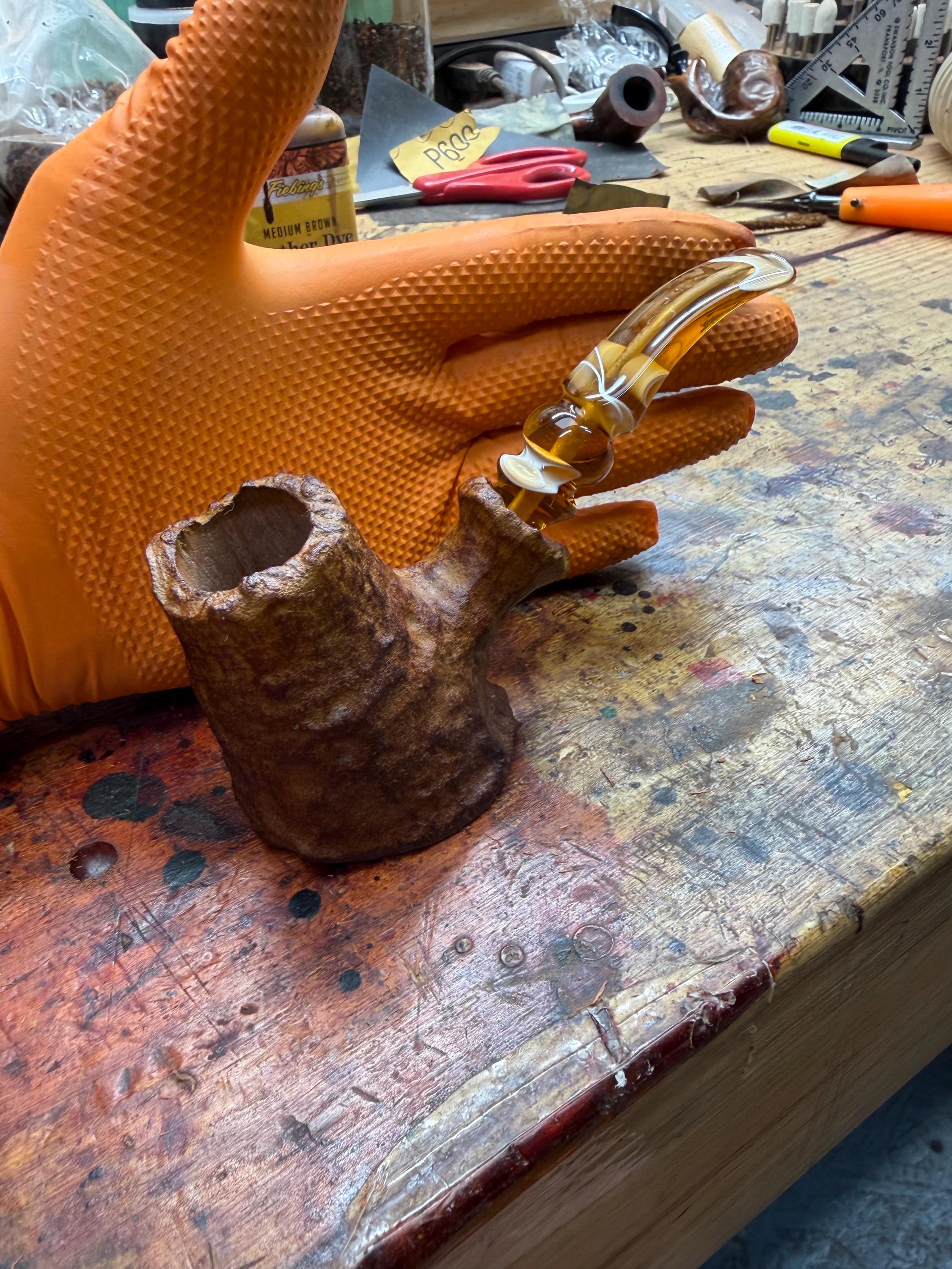 This is a handmade briar pipe that has been freehand carved and polished. A nice custom acrylic stem. These are built to be beautiful but also for every day smoking. This one is a large pipe. 7/8 x2” deep bowl.