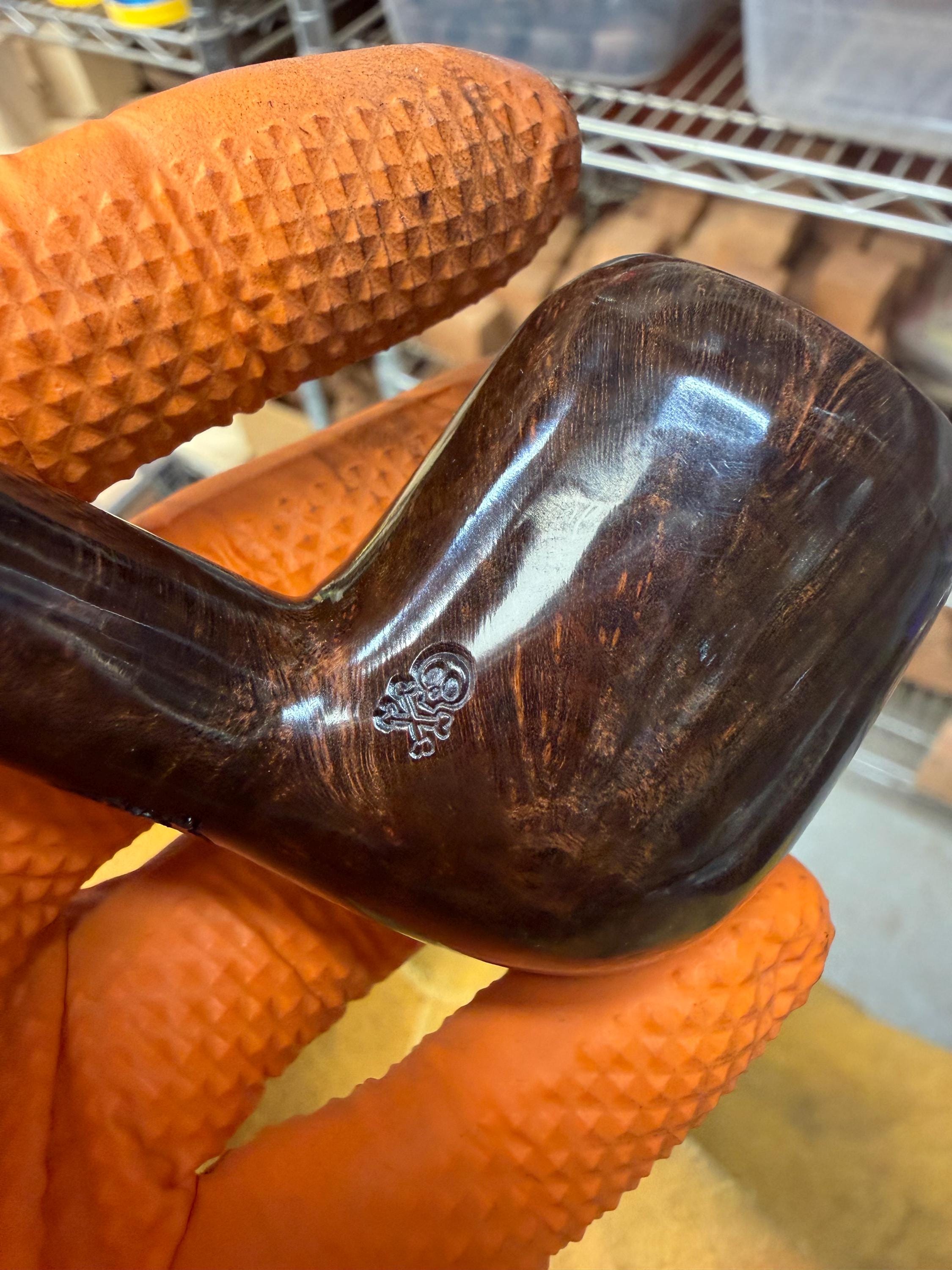 This is a handmade briar pipe that has been meticulously carved sanded and polished with an all natural carnuba wax. Acrylic custom made stem. Non filtered. A very nice daily smoker. medium size church warden for your smoking pleasure!