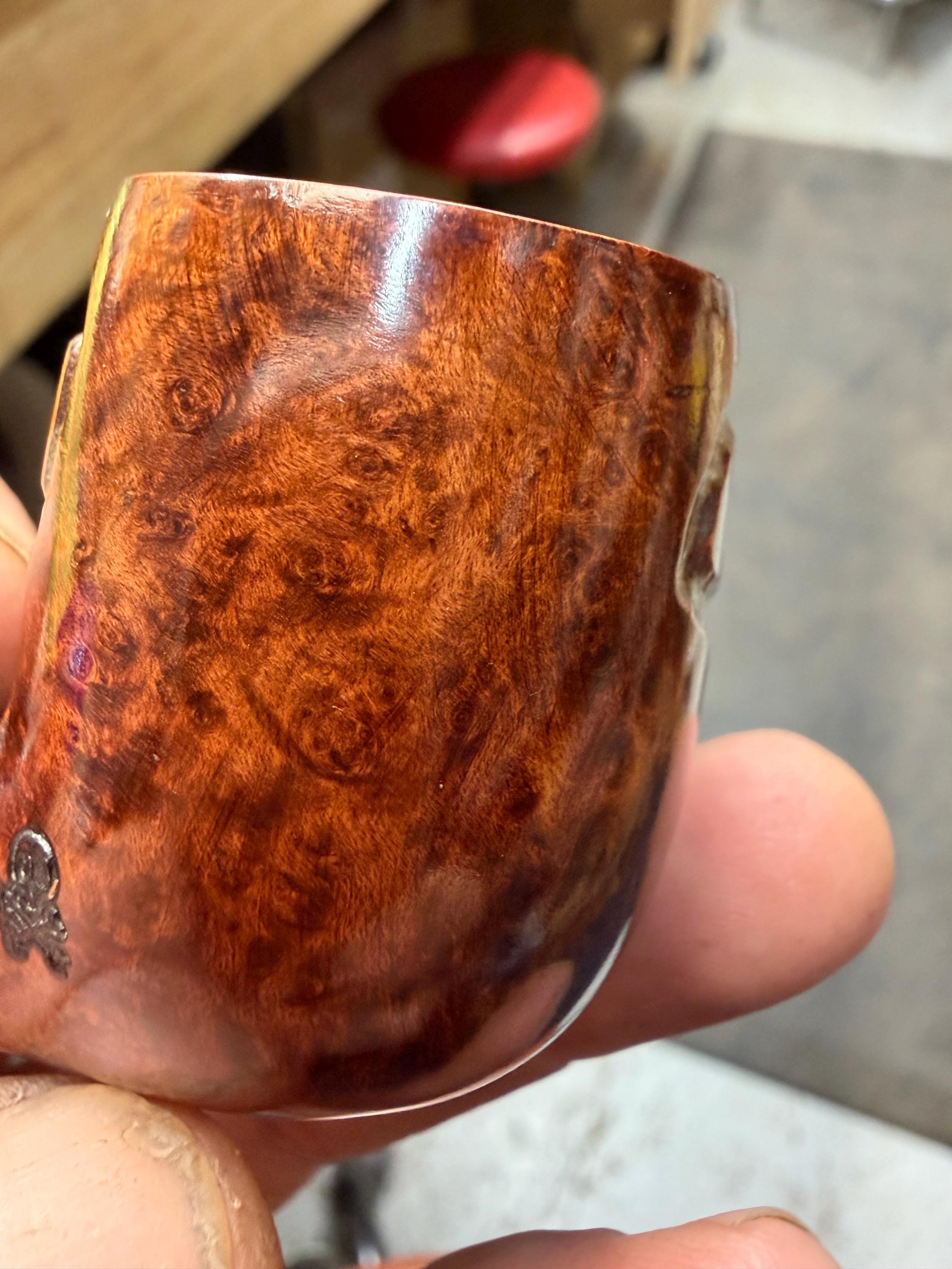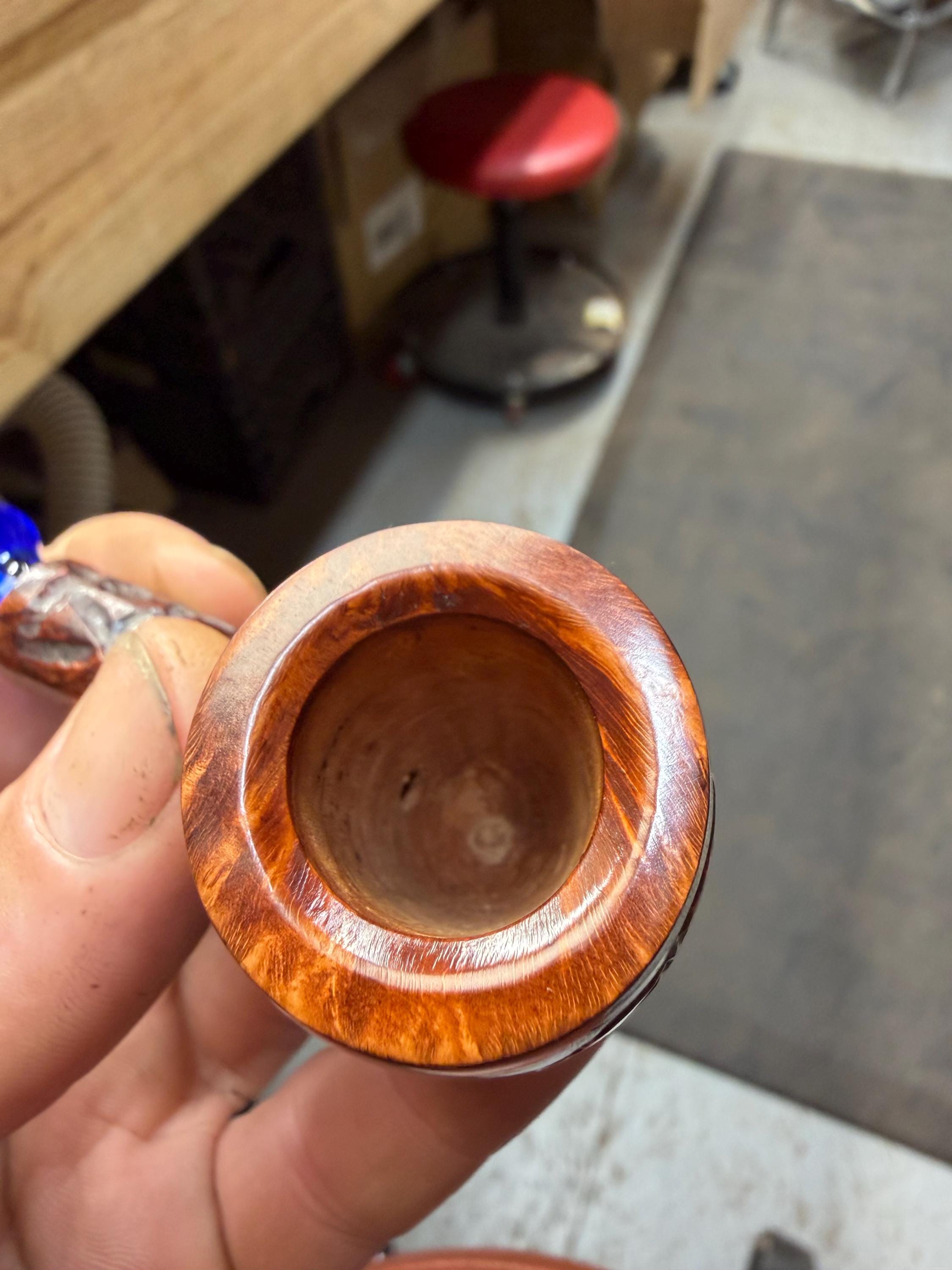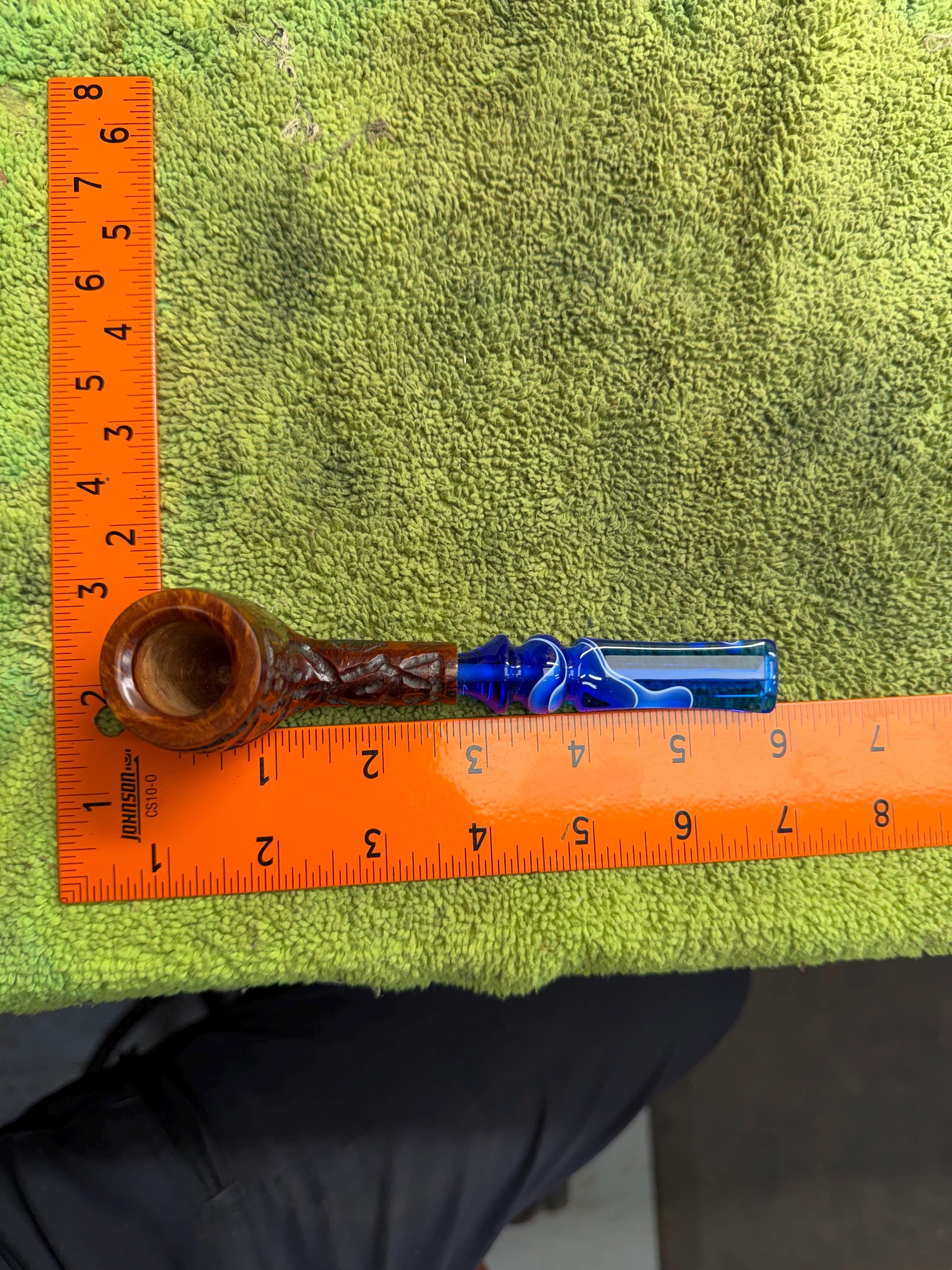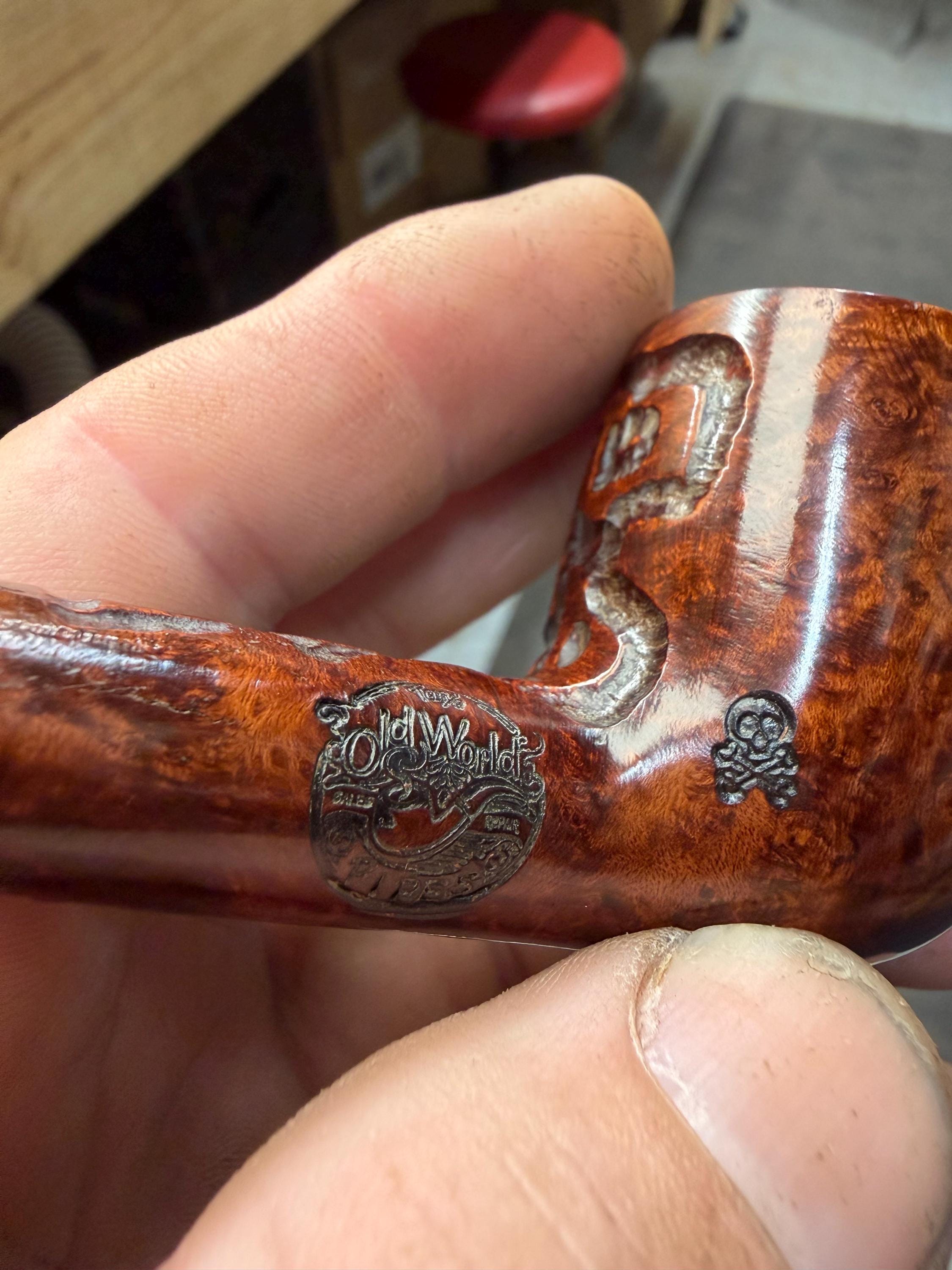 This is a handmade briar pipe that has been meticulously carved and polished/ partially rusticated . Acrylic custom made stem. Non filtered. A very nice daily smoker.