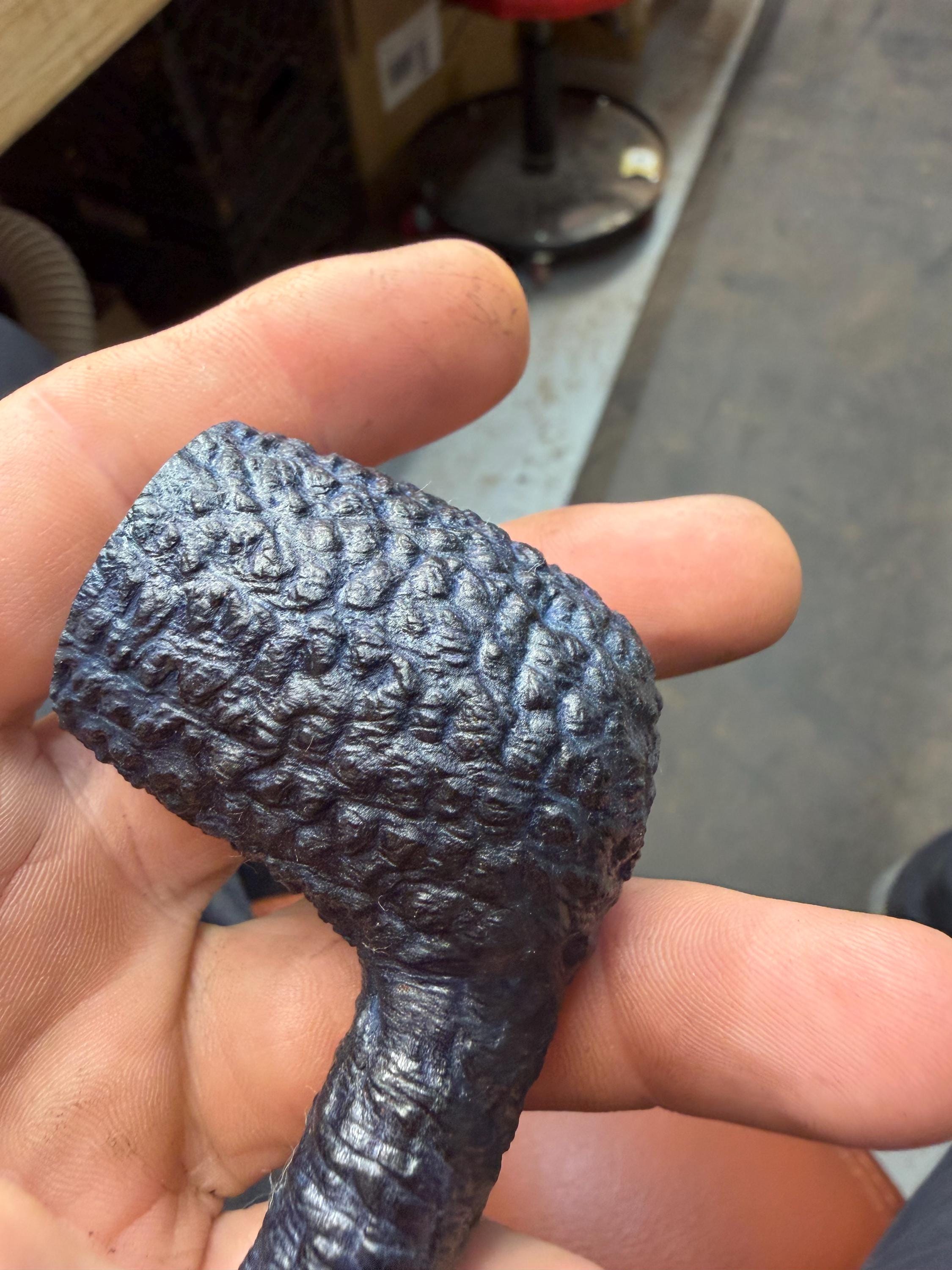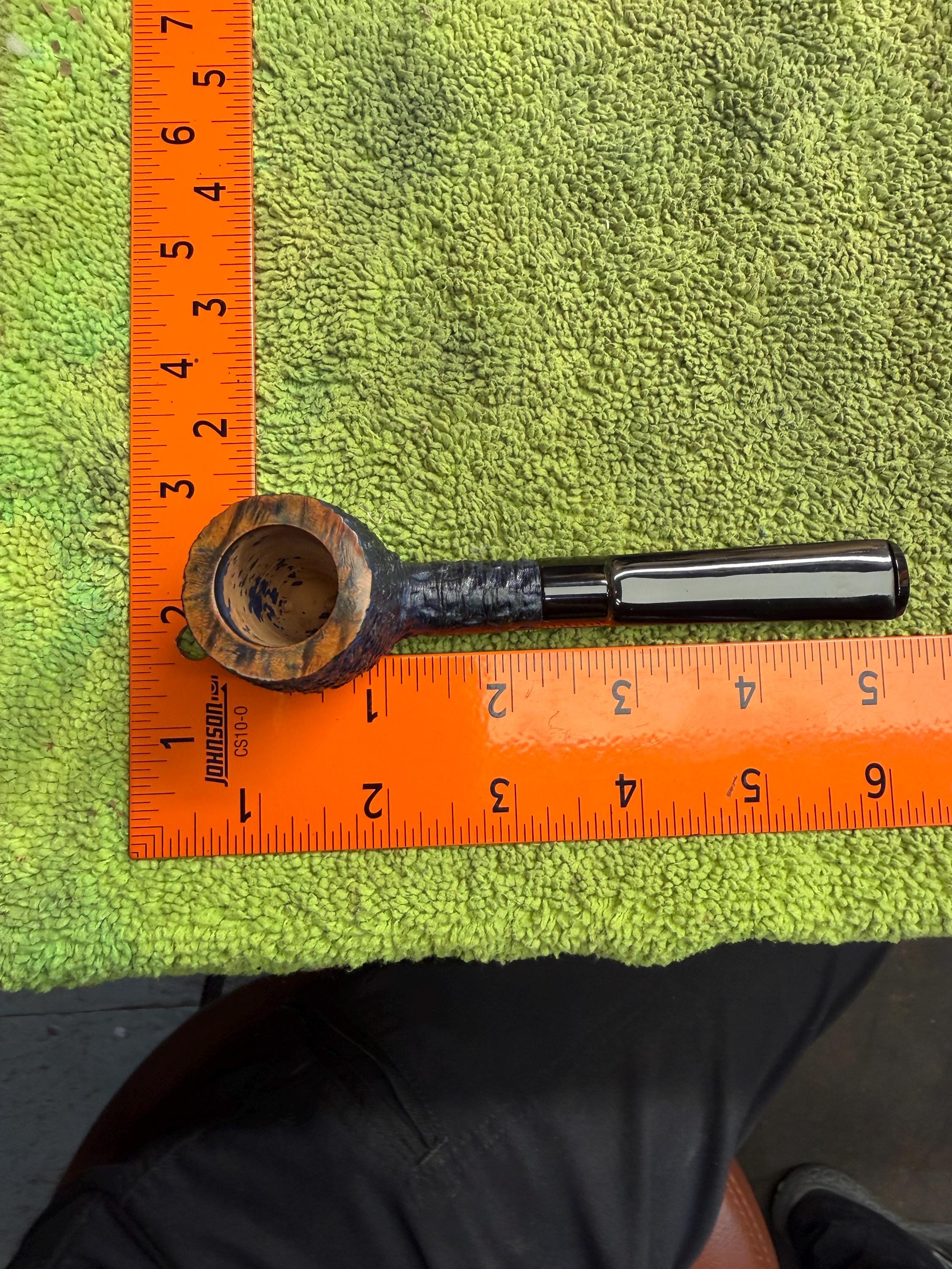 This is a handmade briar pipe that has been meticulously carved and rusticated . Vulcanite custom made stem. Non filtered. A very nice daily smoker. medium size for your pocket!
