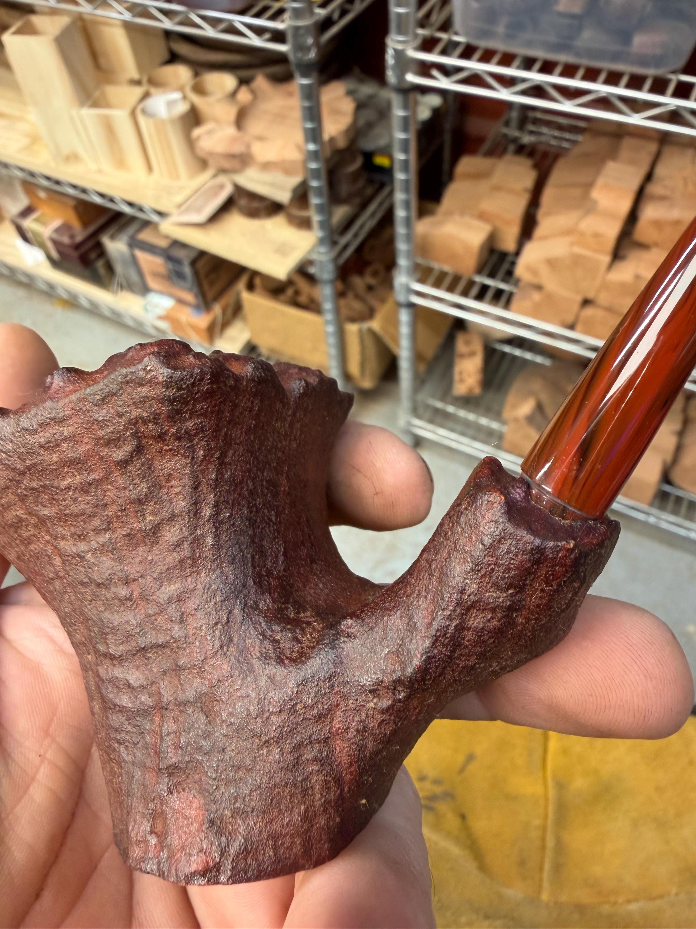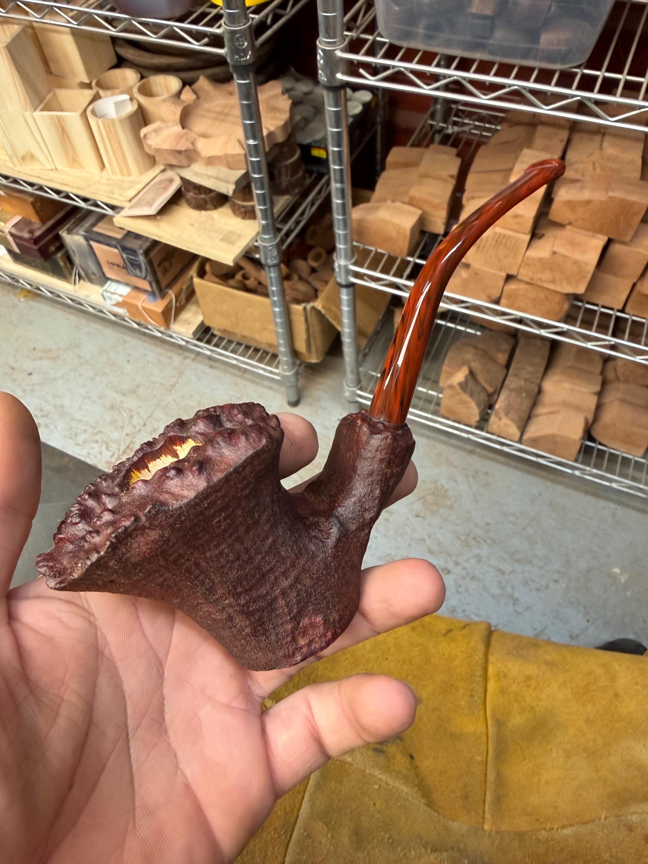 This is a handmade briar pipe that has been freehand carved and polished. A nice custom acrylic stem. These are built to be beautiful but also for every day smoking. This one is a large pipe. 7/8 x2” deep bowl. Manno briar