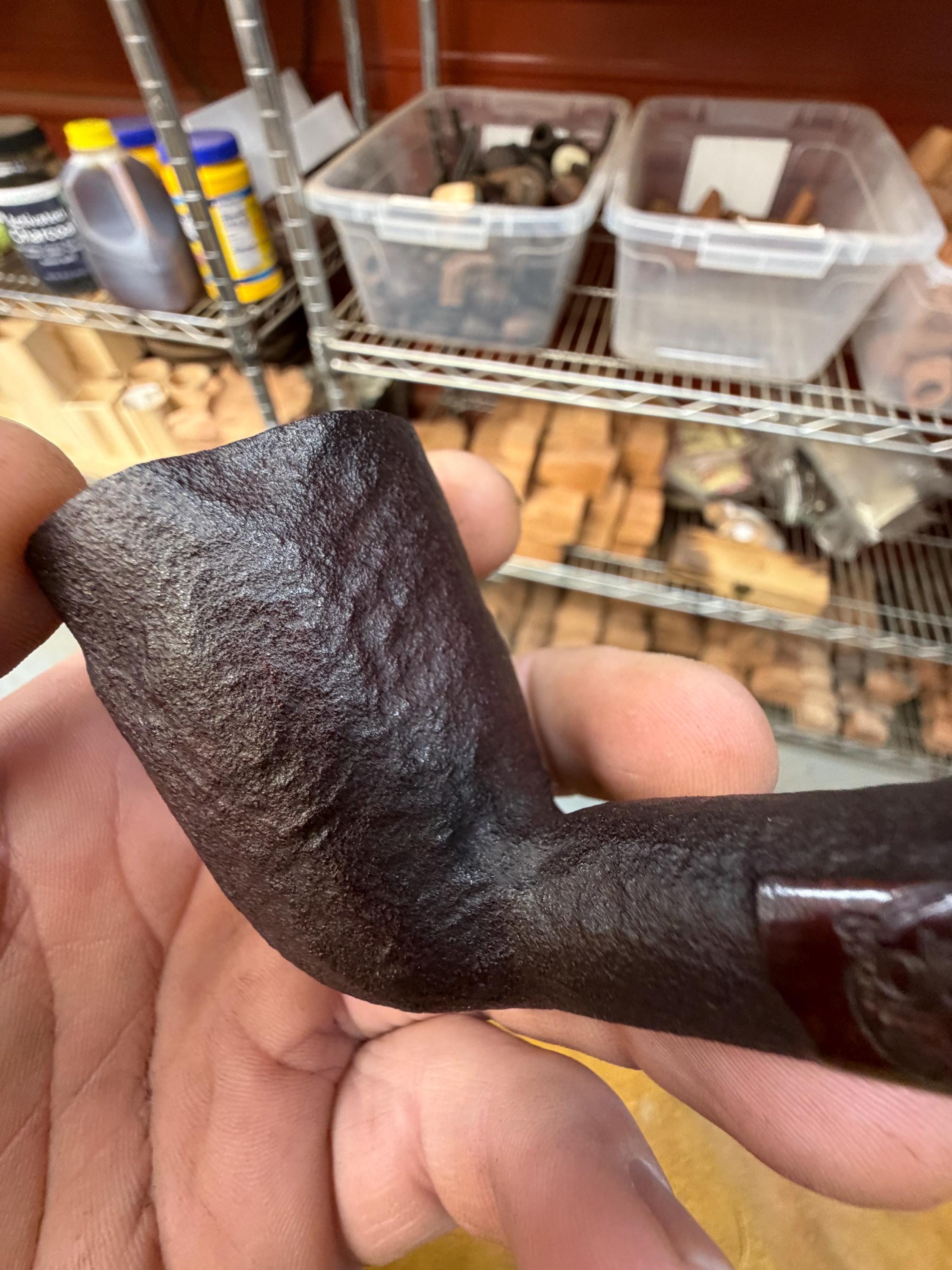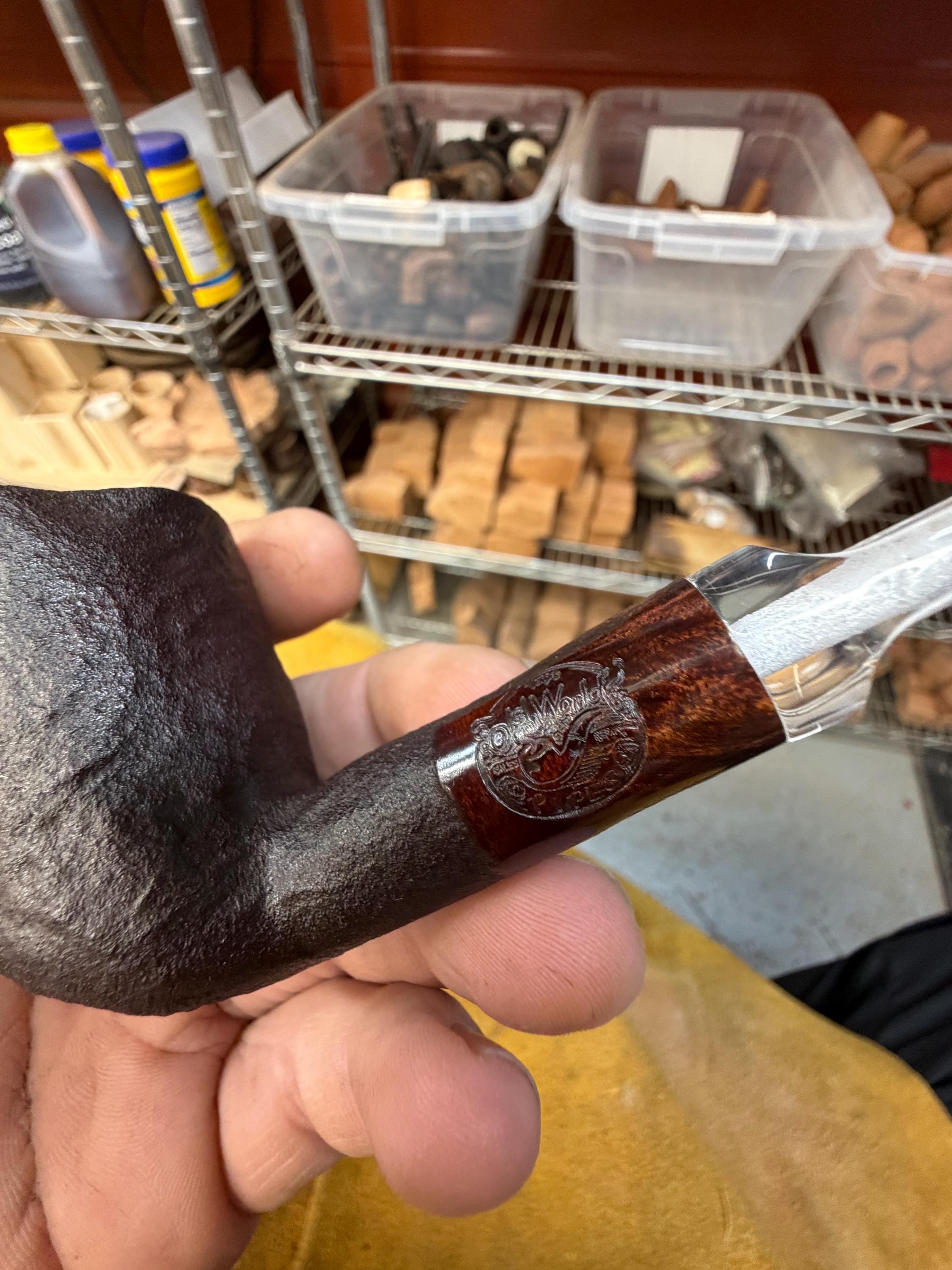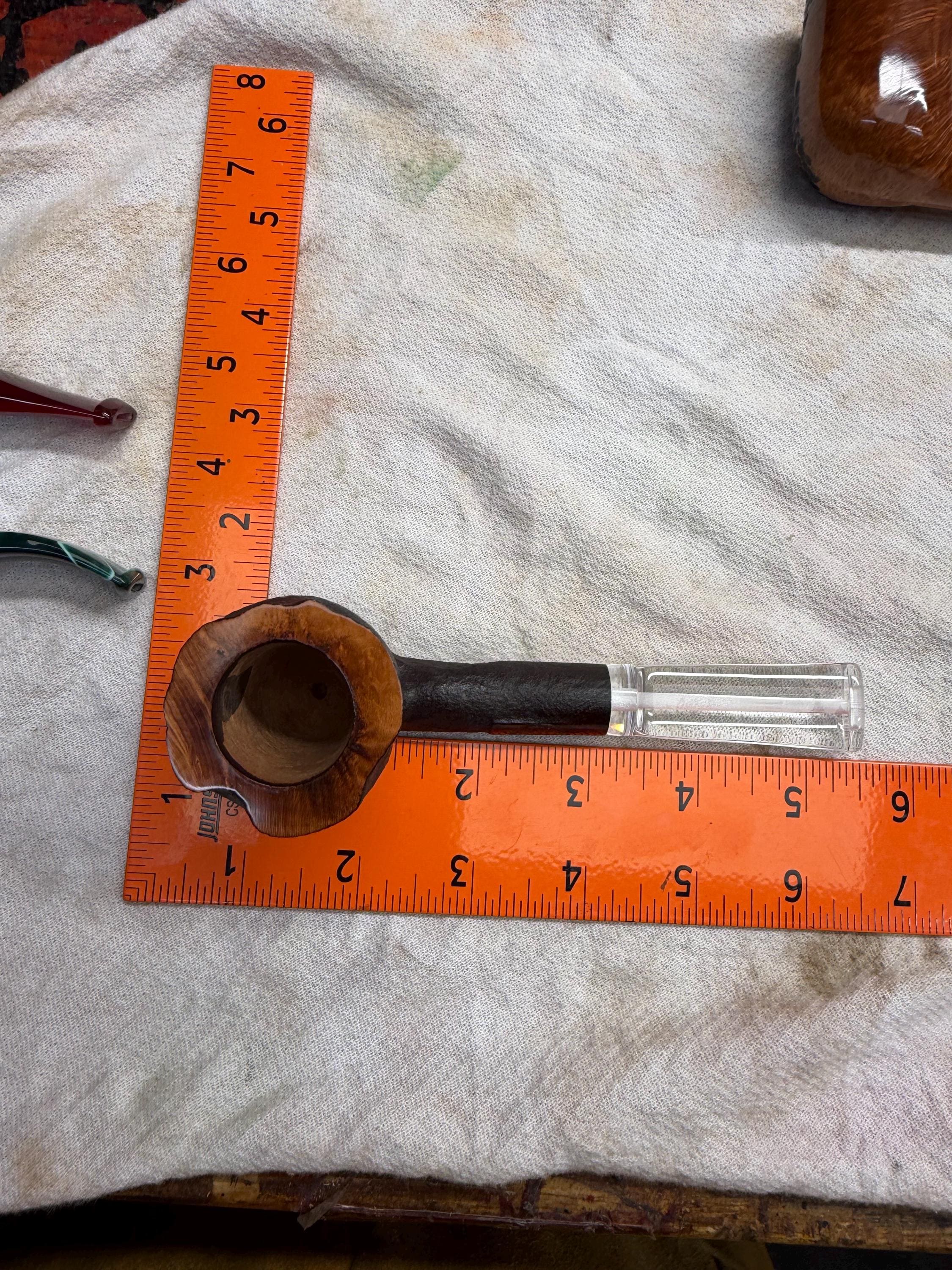 This is a handmade briar pipe that has been meticulously carved and polished/ rusticated . Acrylic custom made stem. Non filtered. A very nice daily smoker.