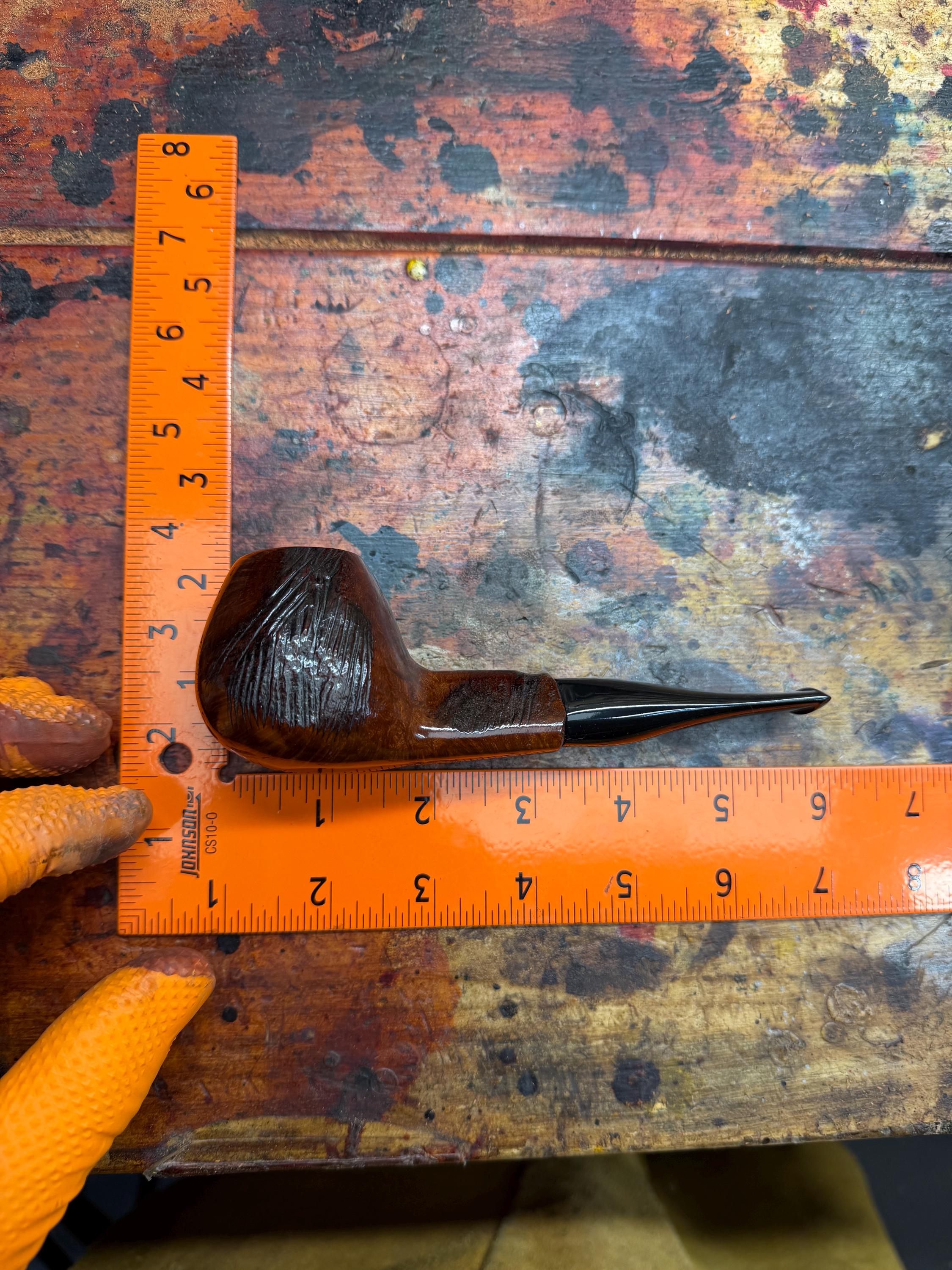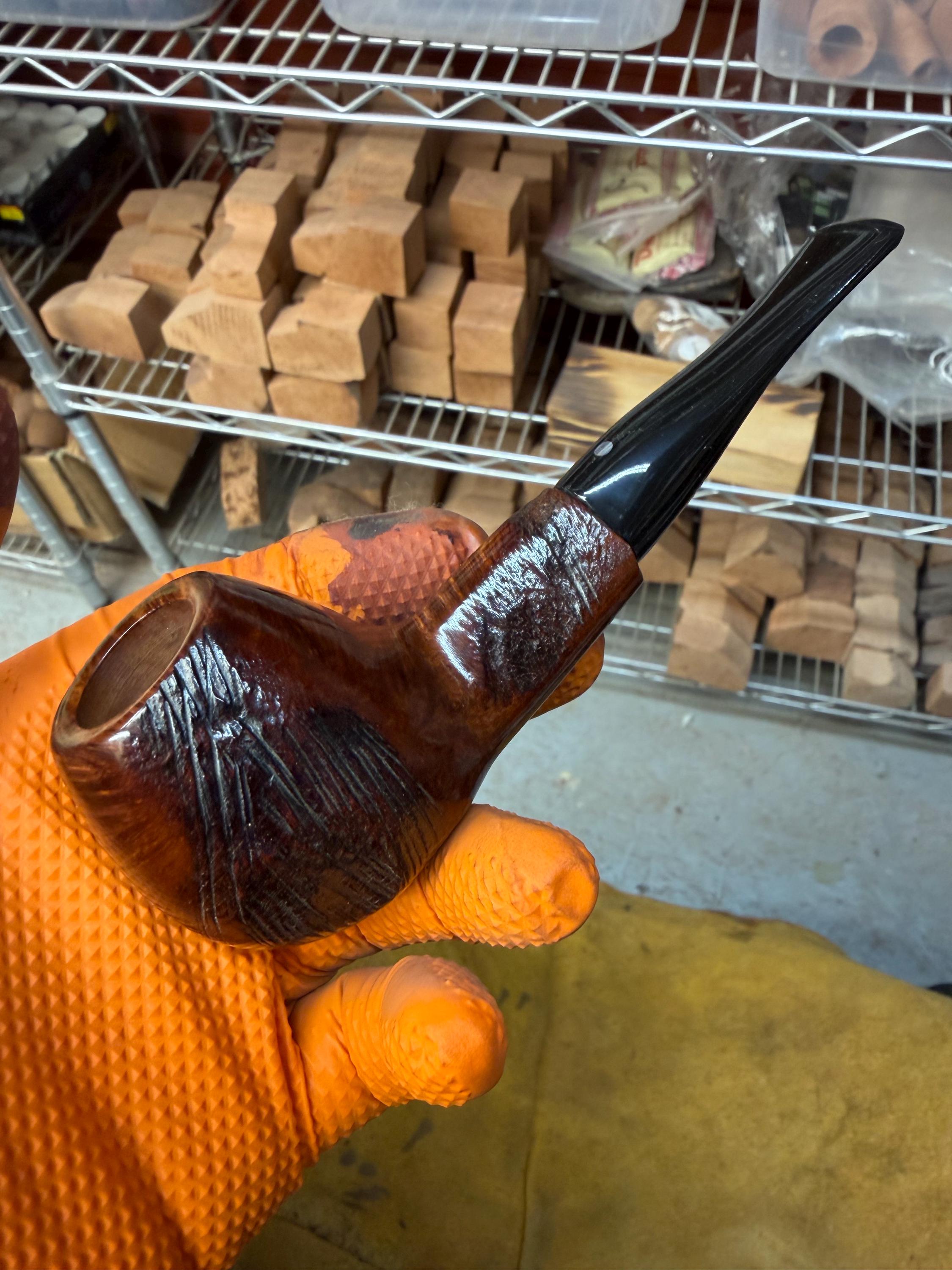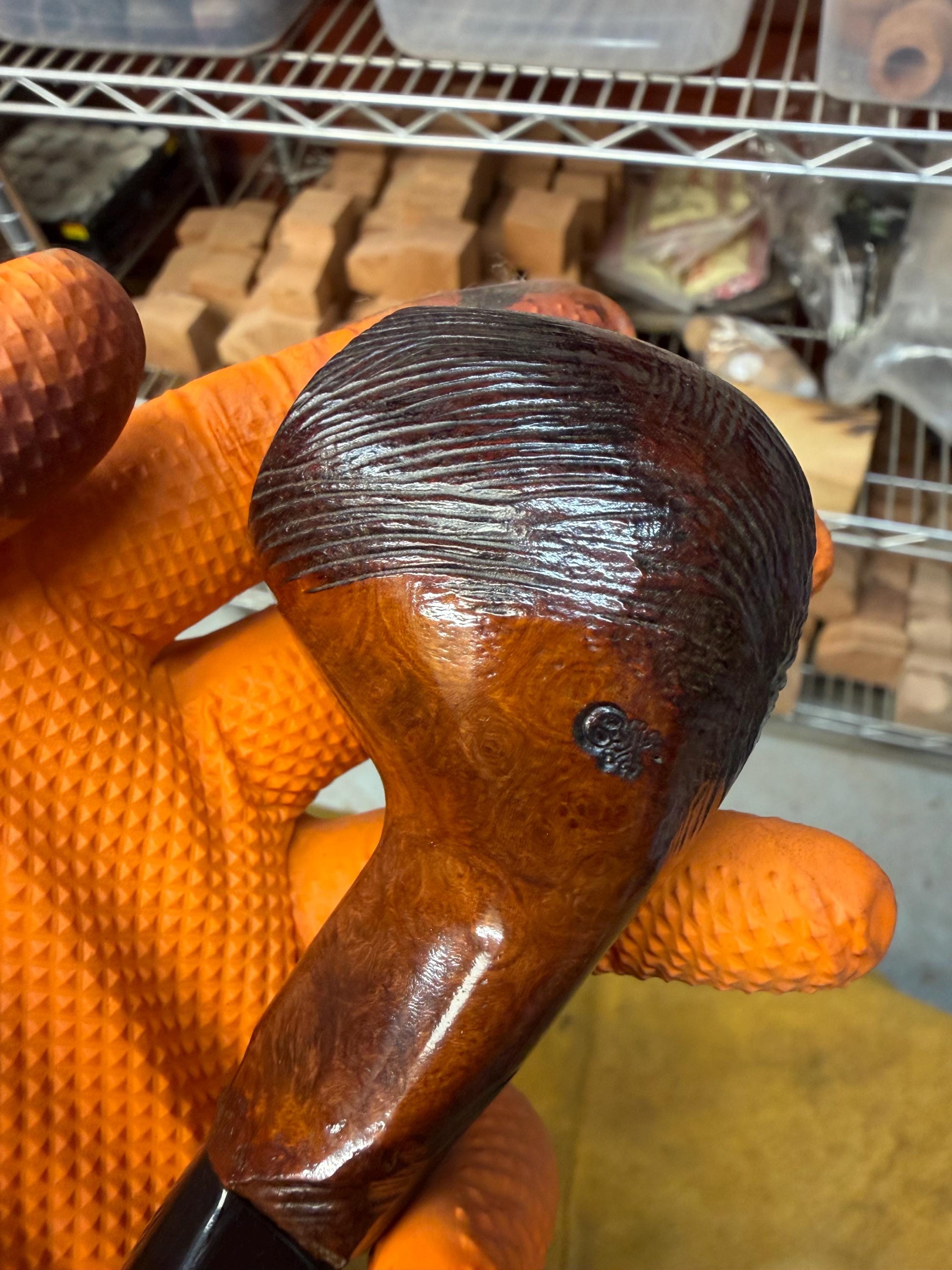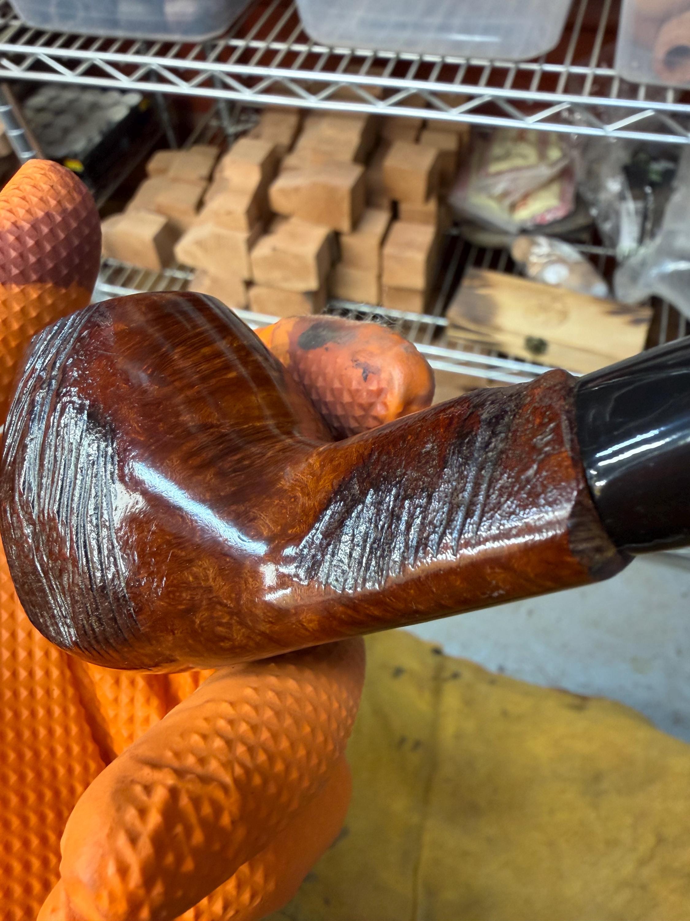 This is a handmade briar pipe that has been meticulously carved and polished. Vulcanite custom made stem. This one is non filtered. A very nice daily smoker.