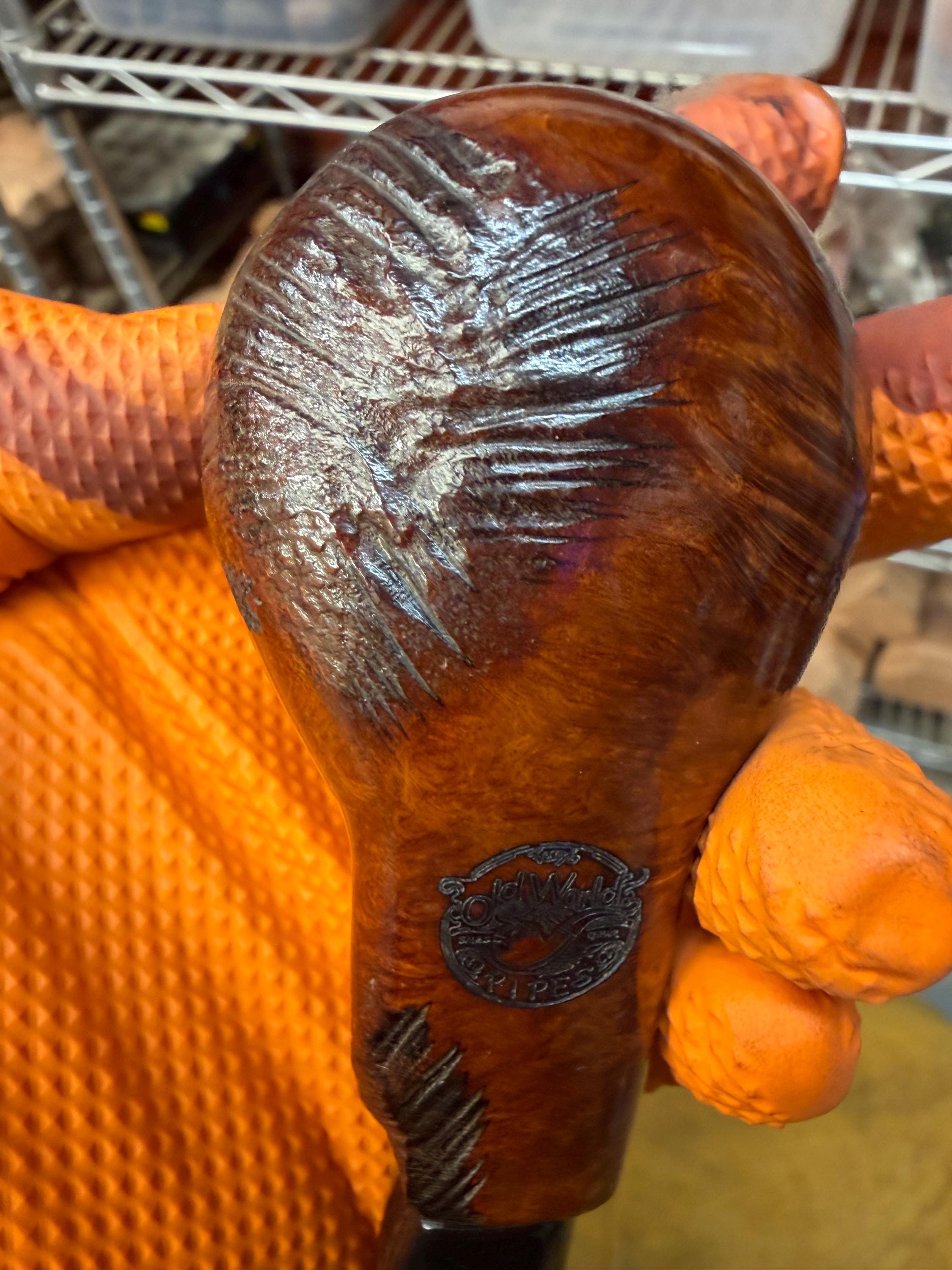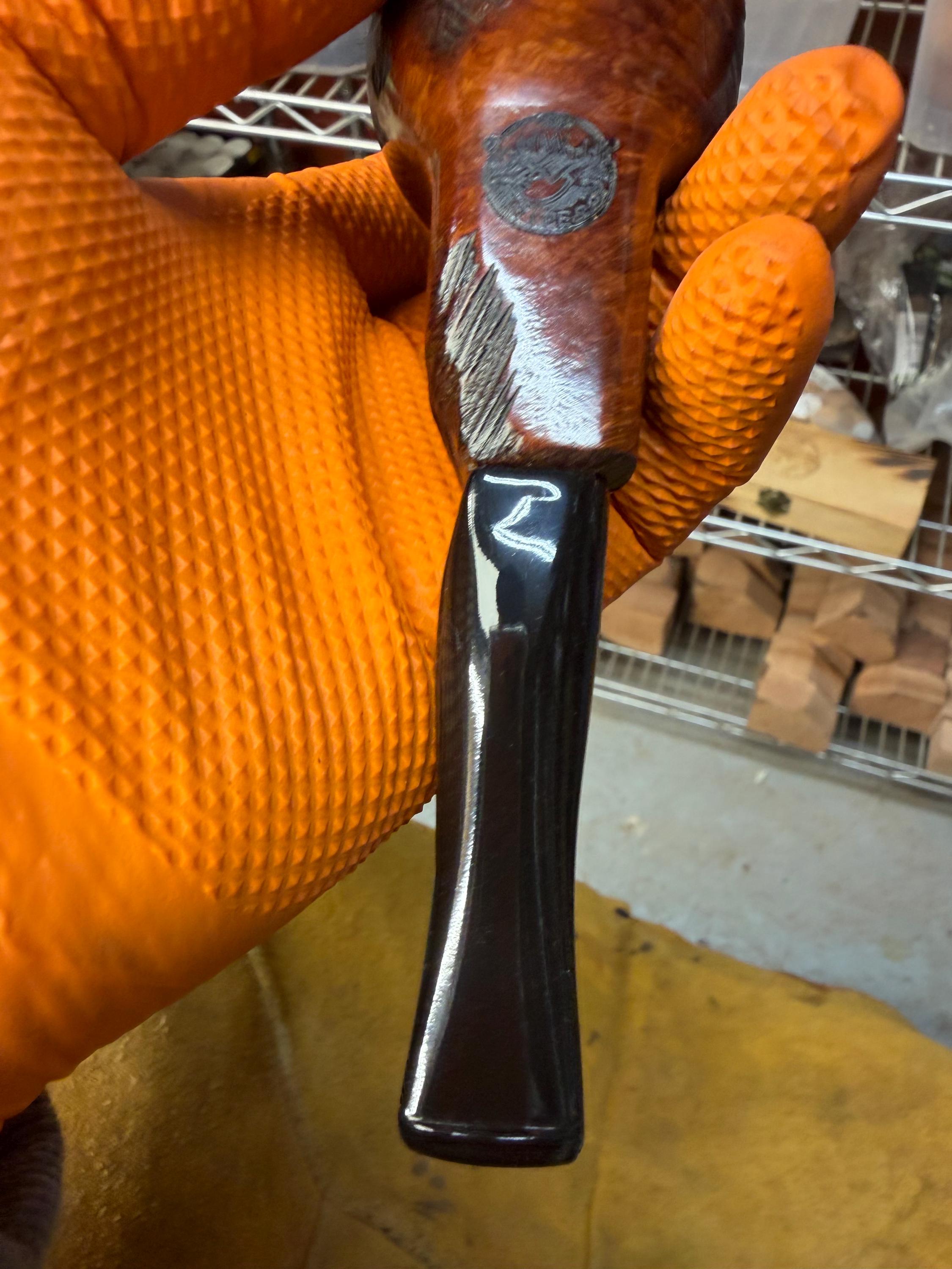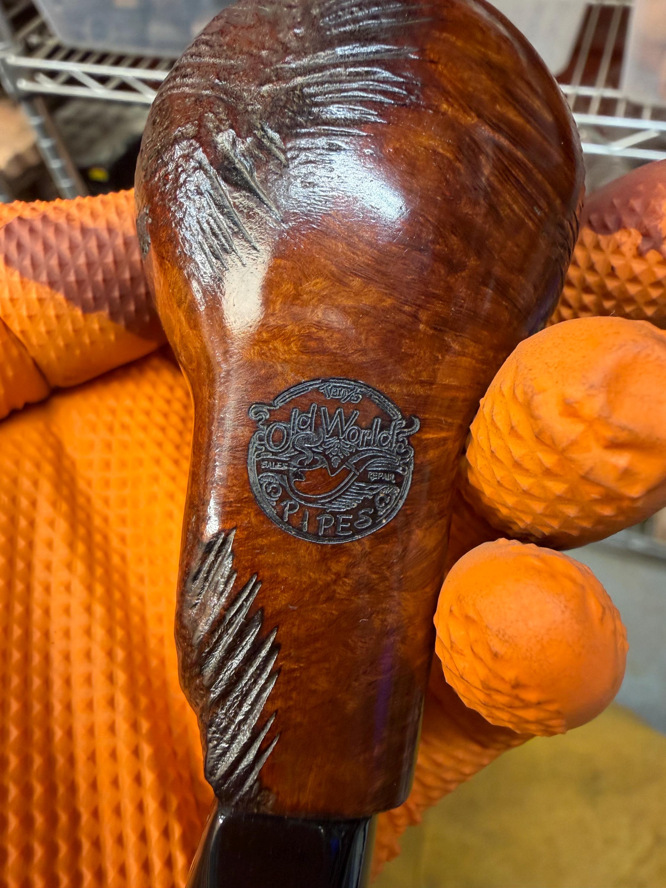 This is a handmade briar pipe that has been meticulously carved and polished. Vulcanite custom made stem. This one is non filtered. A very nice daily smoker.