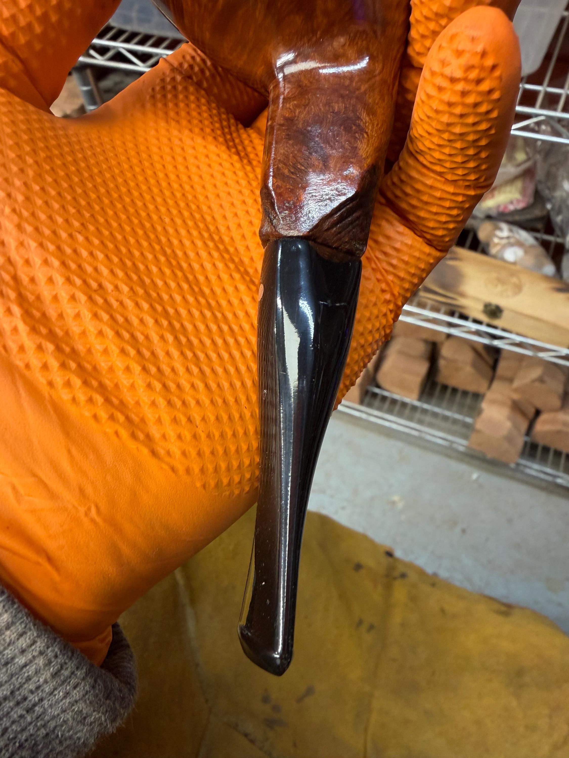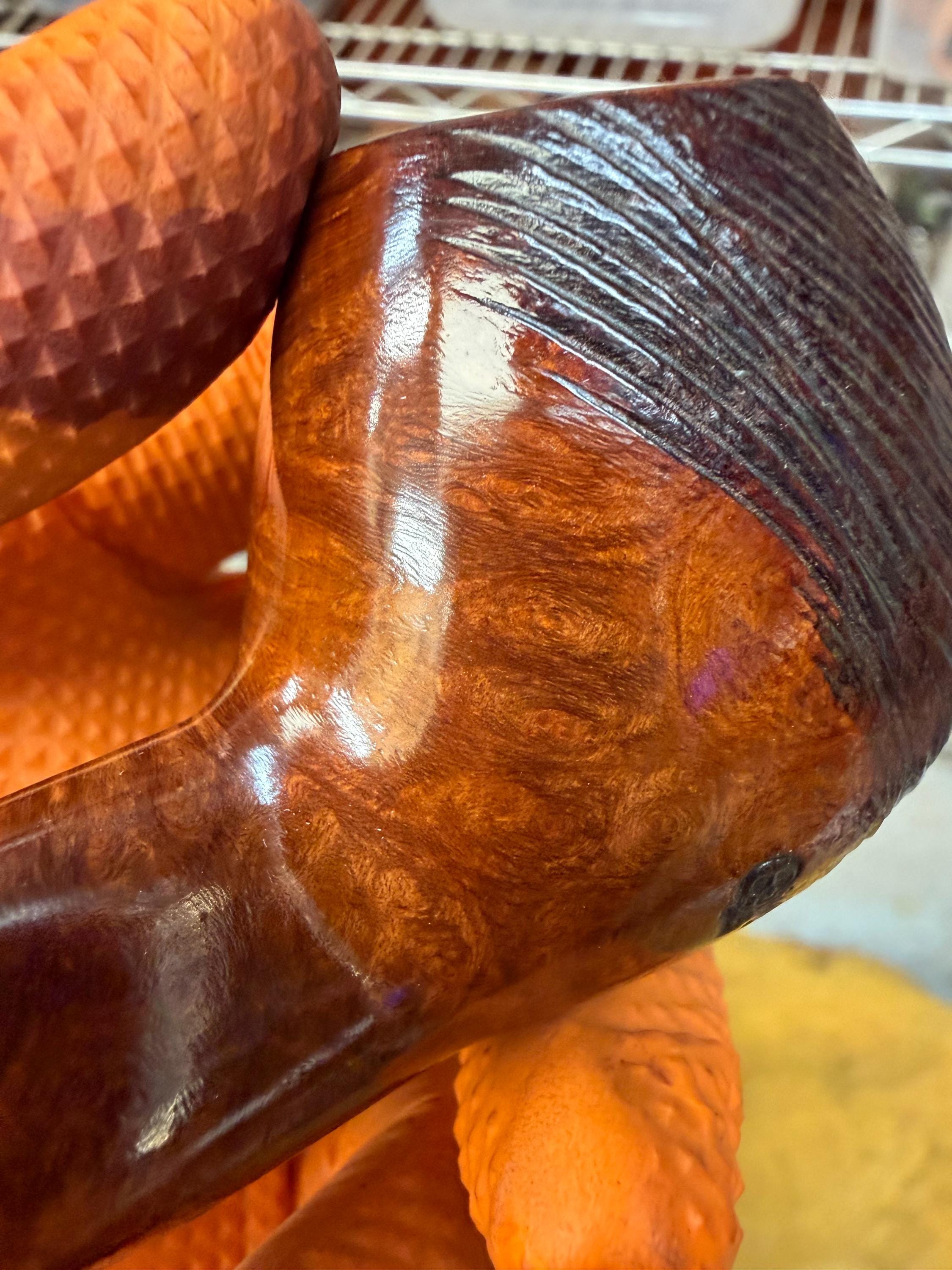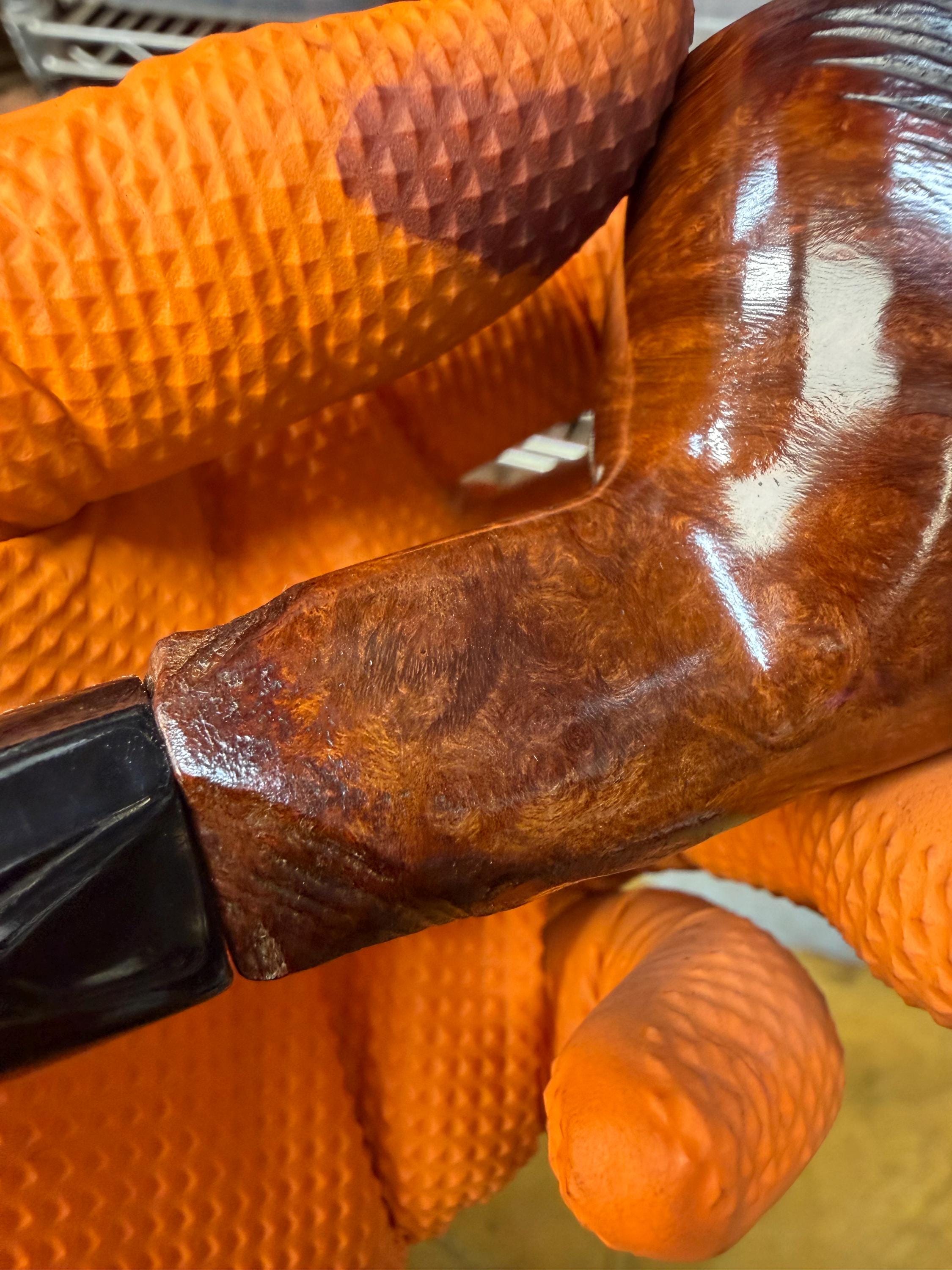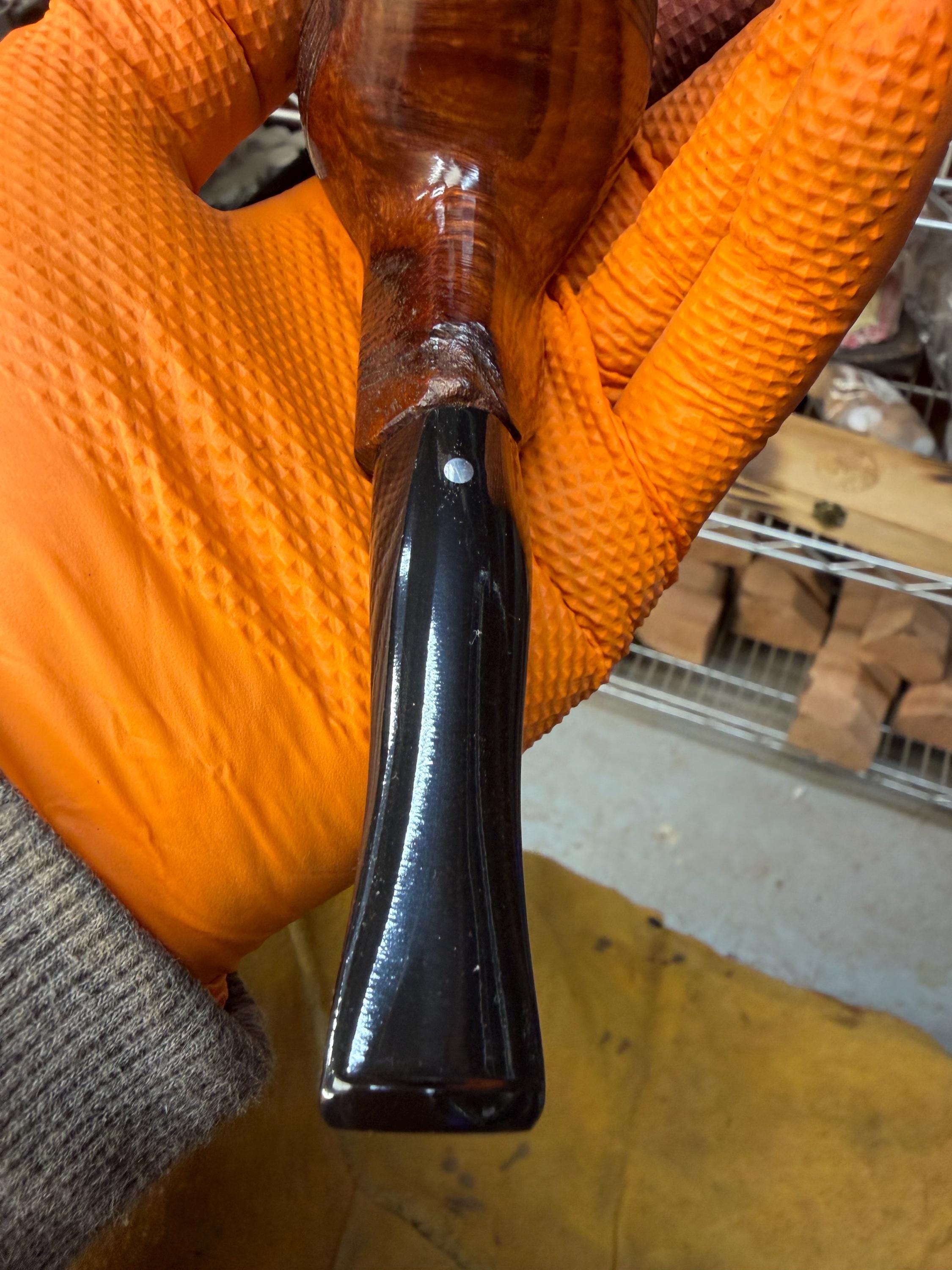 This is a handmade briar pipe that has been meticulously carved and polished. Vulcanite custom made stem. This one is non filtered. A very nice daily smoker.