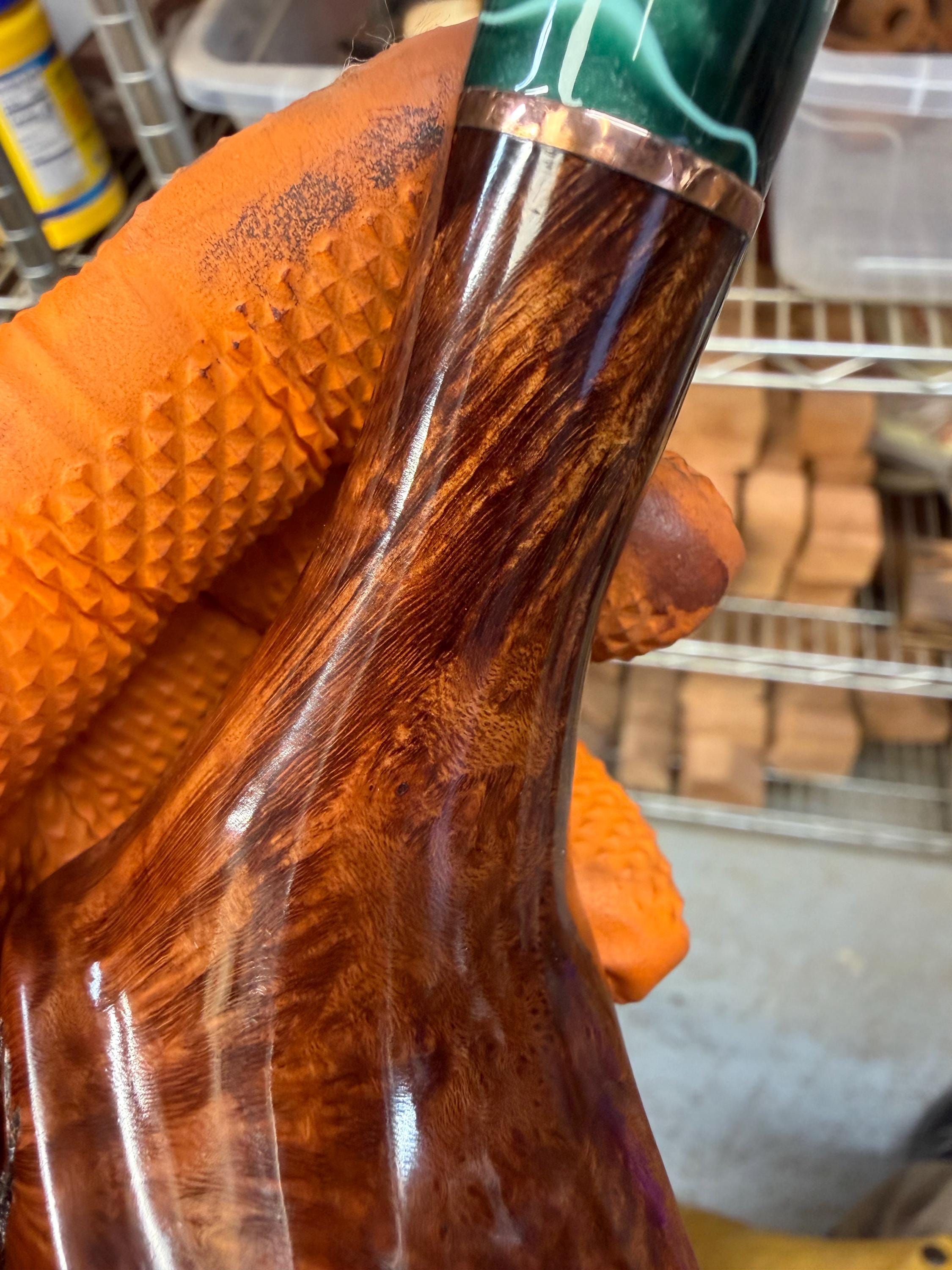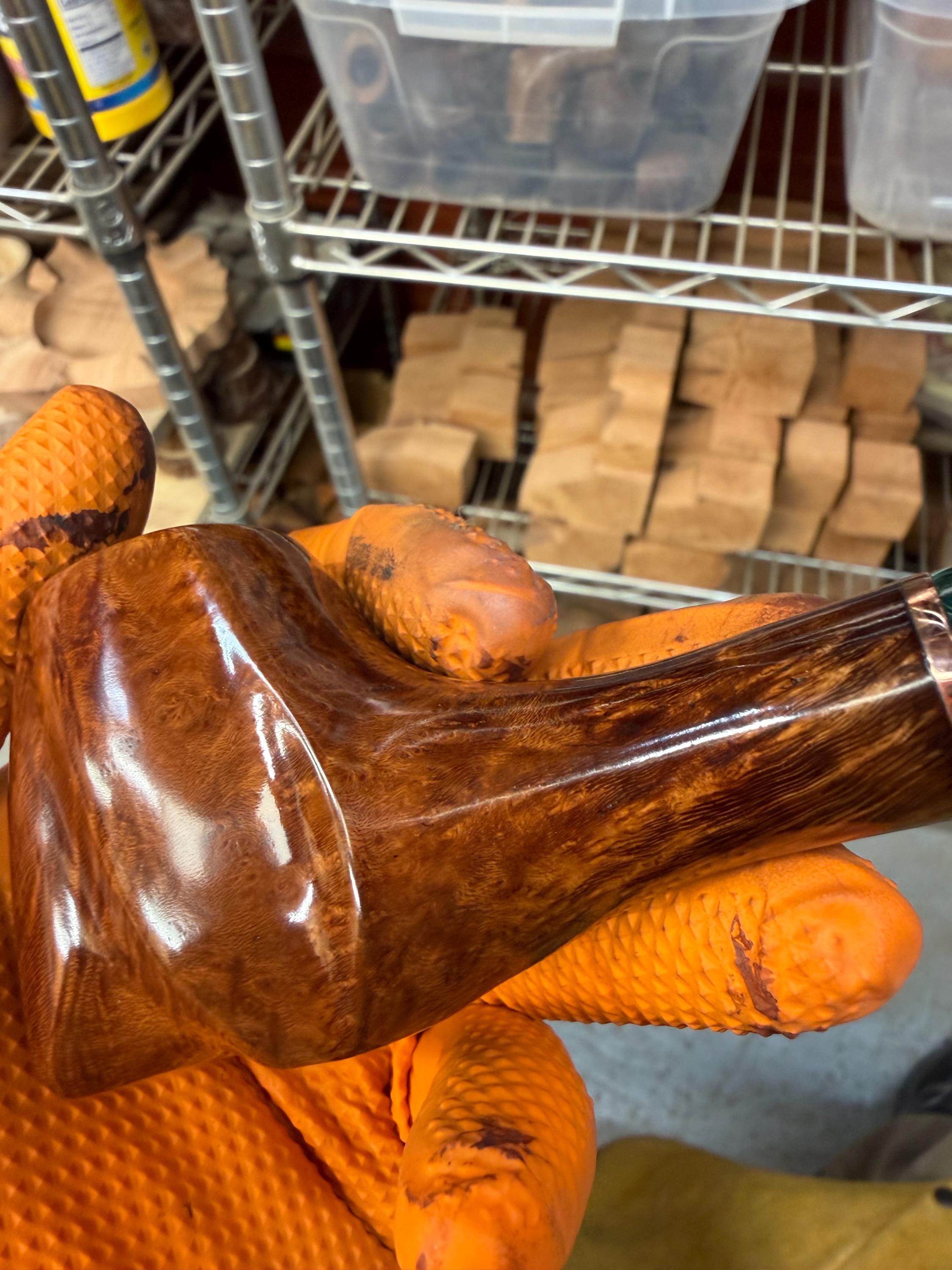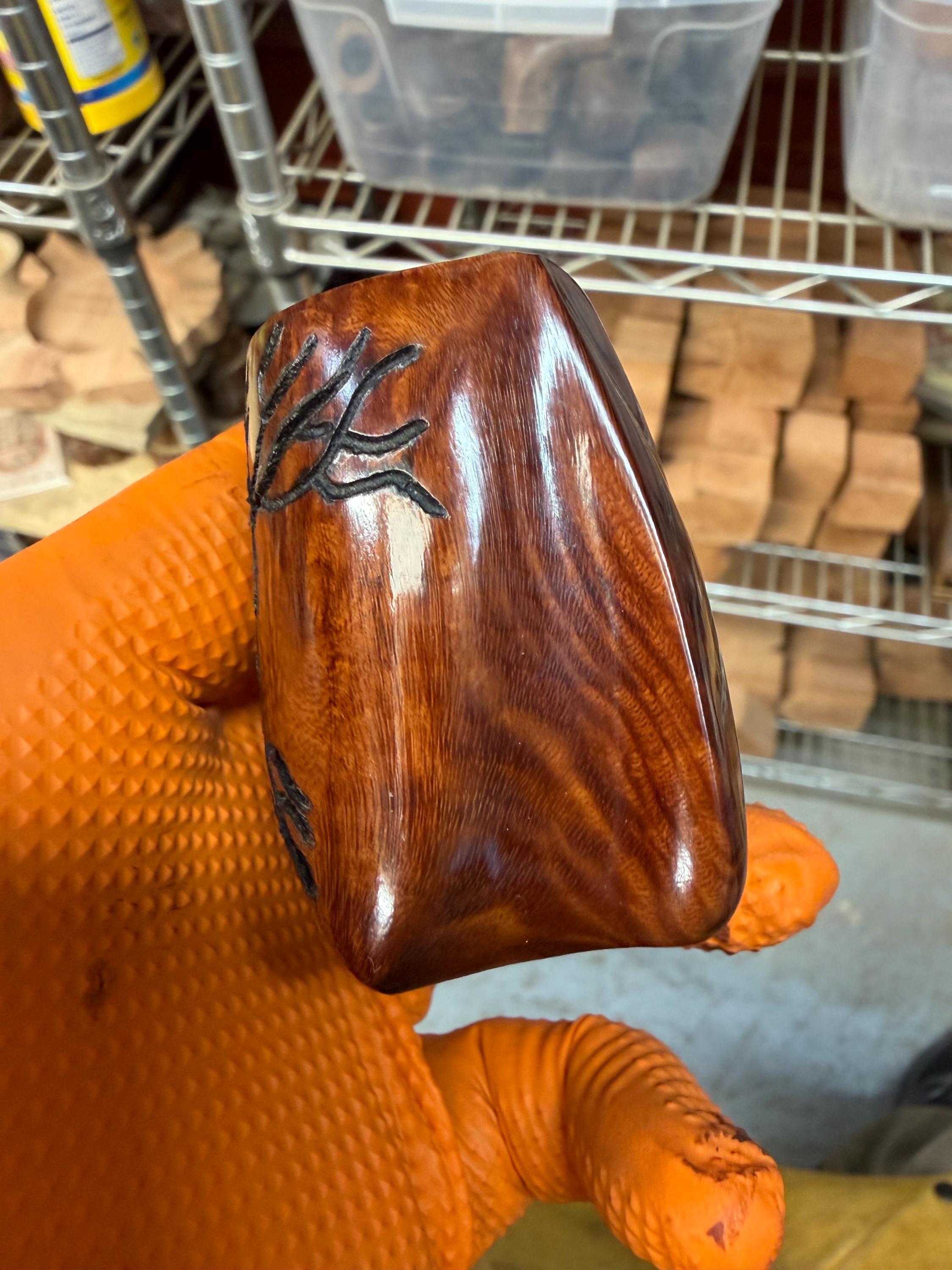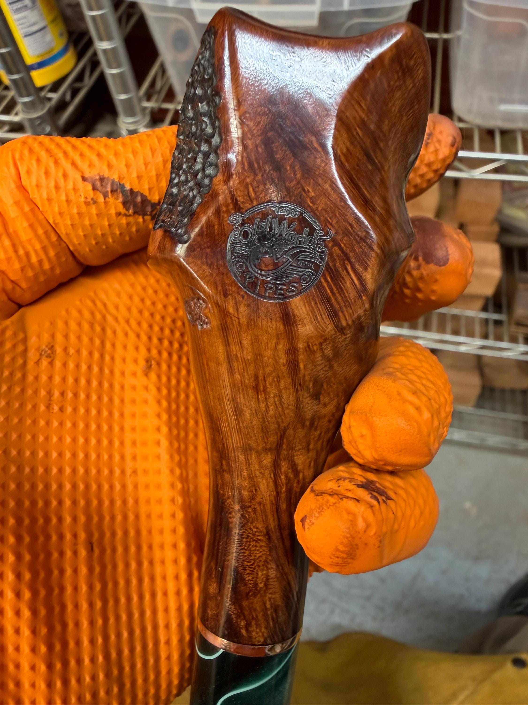 This is a handmade briar pipe that has been meticulously carved and polished . Acrylic custom made stem. Tree of life carving .Non filtered. A very nice daily smoker.