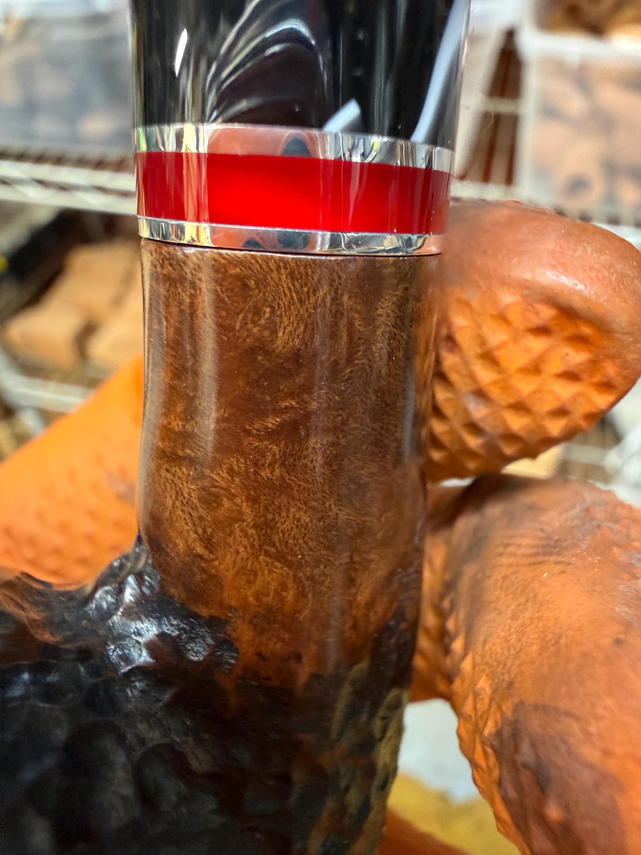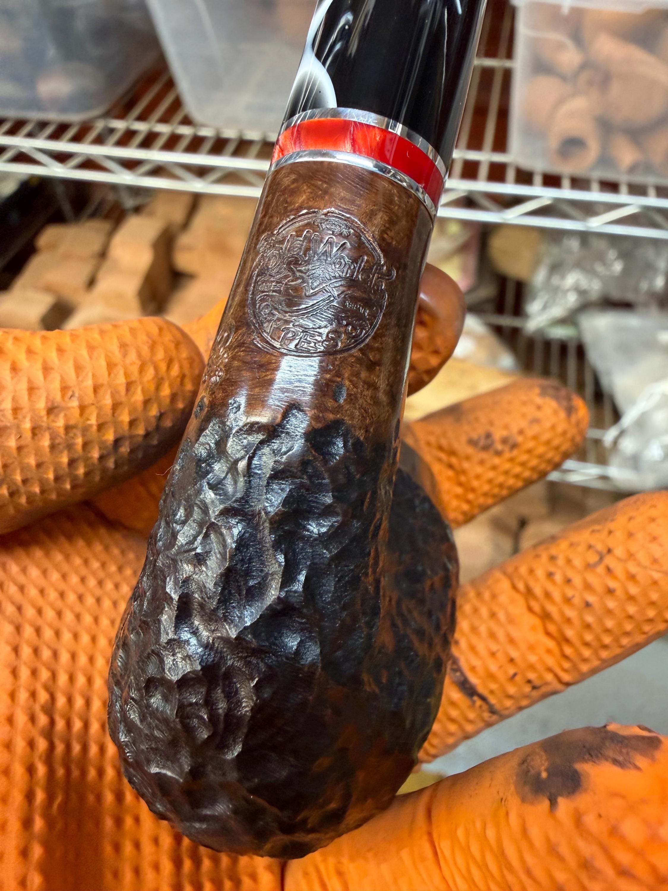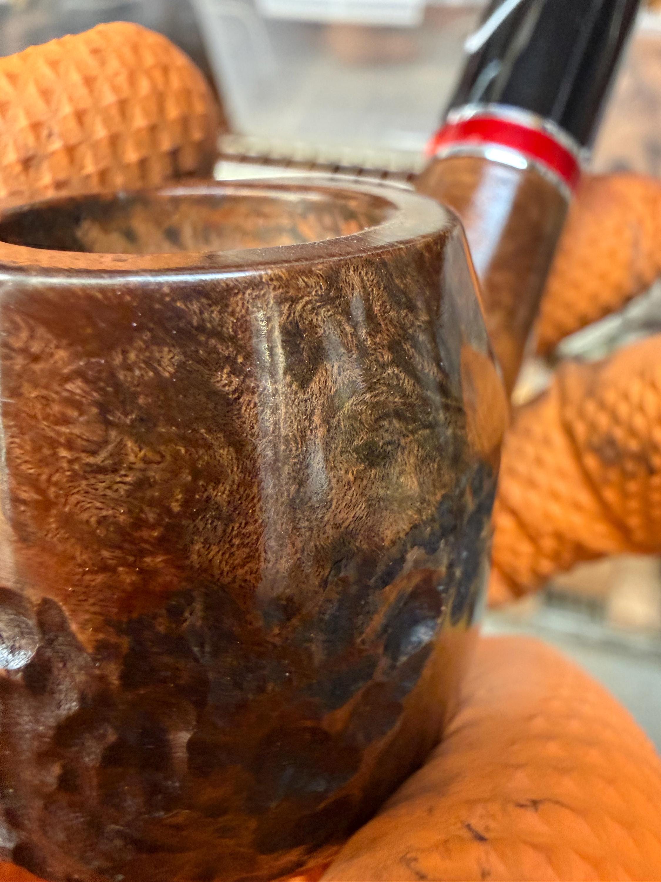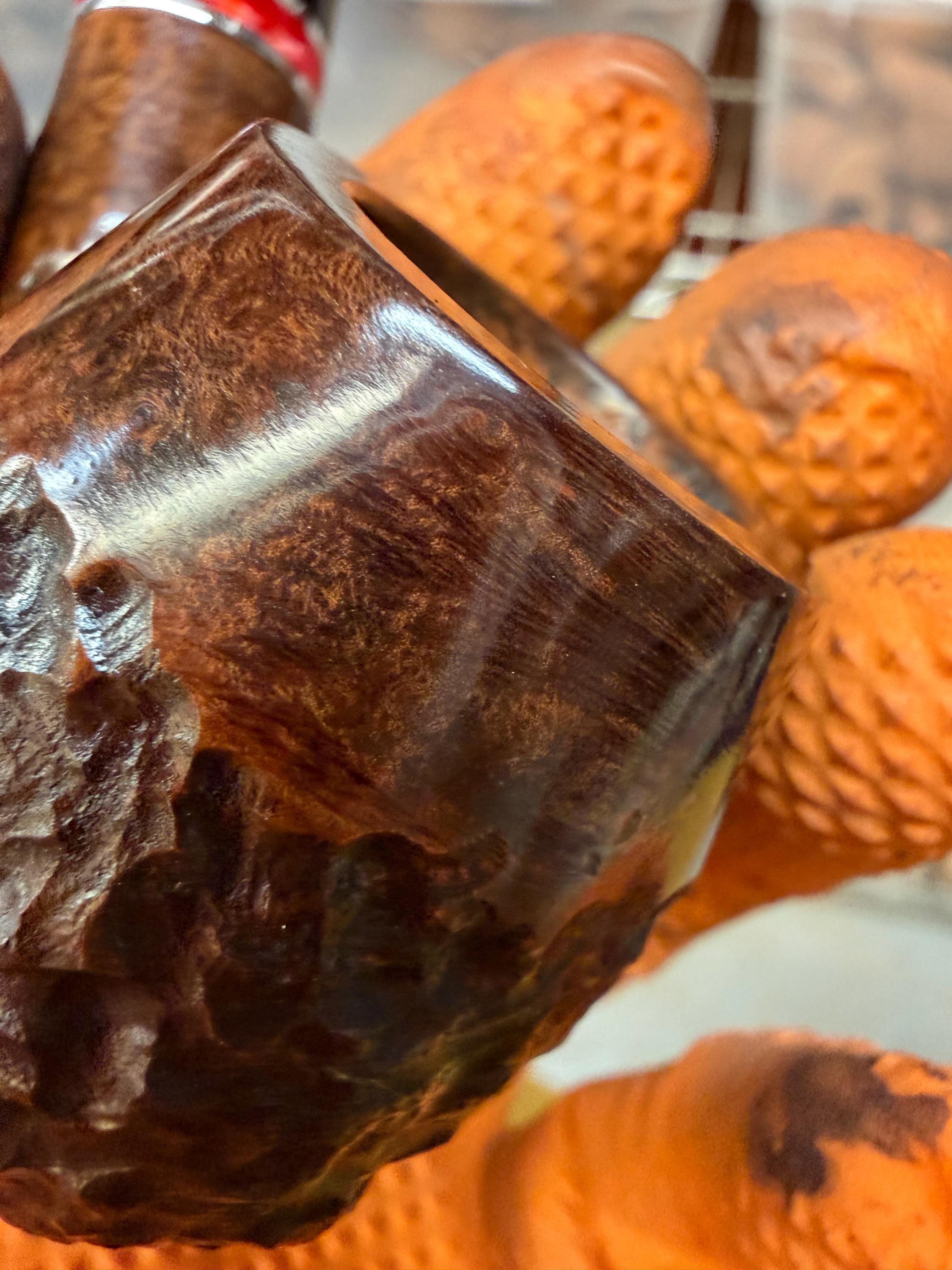 This is a handmade briar pipe that has been carved sanded and polished with natural carnuba wax. A nice custom acrylic stem. These are built to be beautiful but also for every day smoking. Perfect for the pocket.