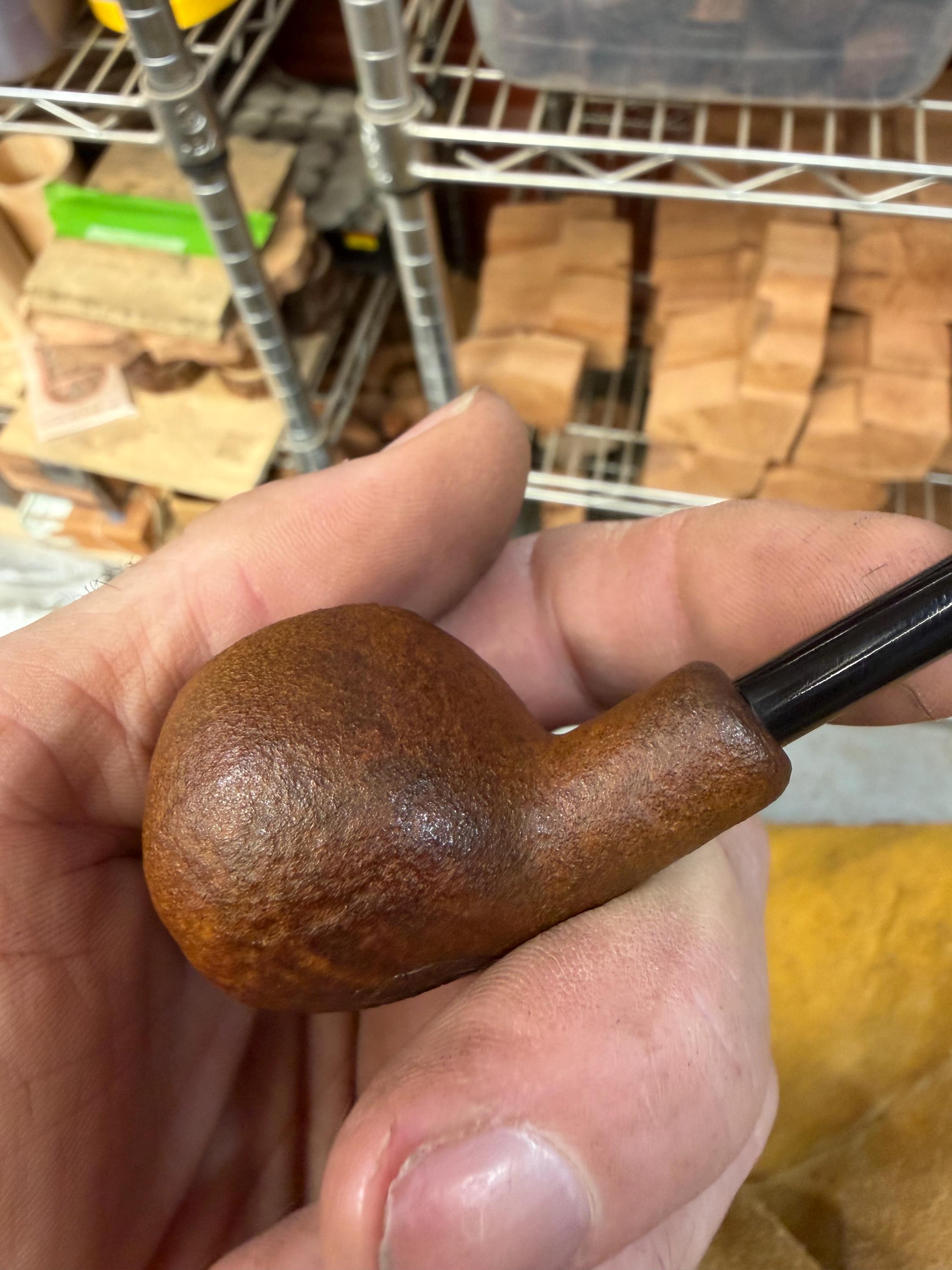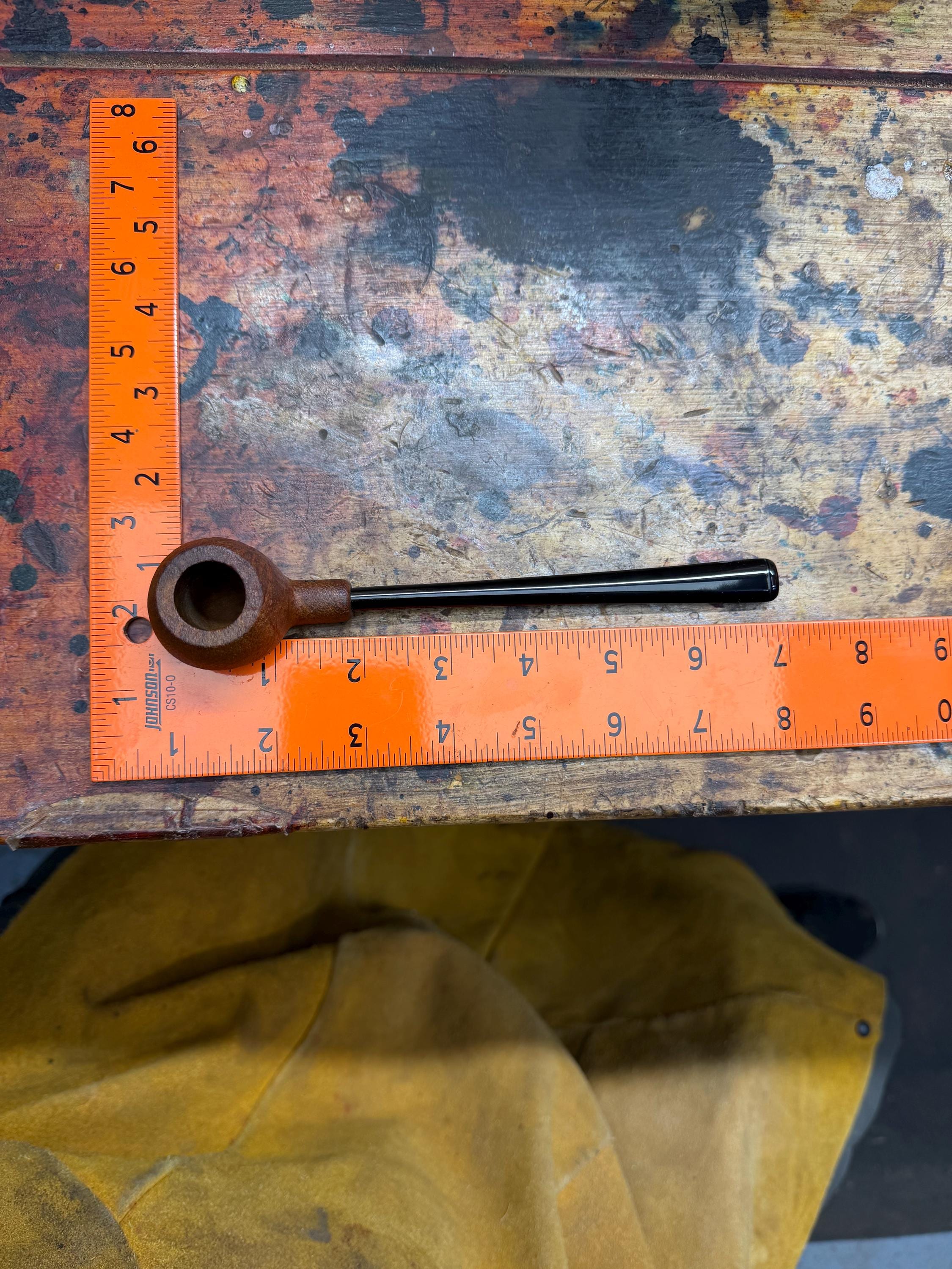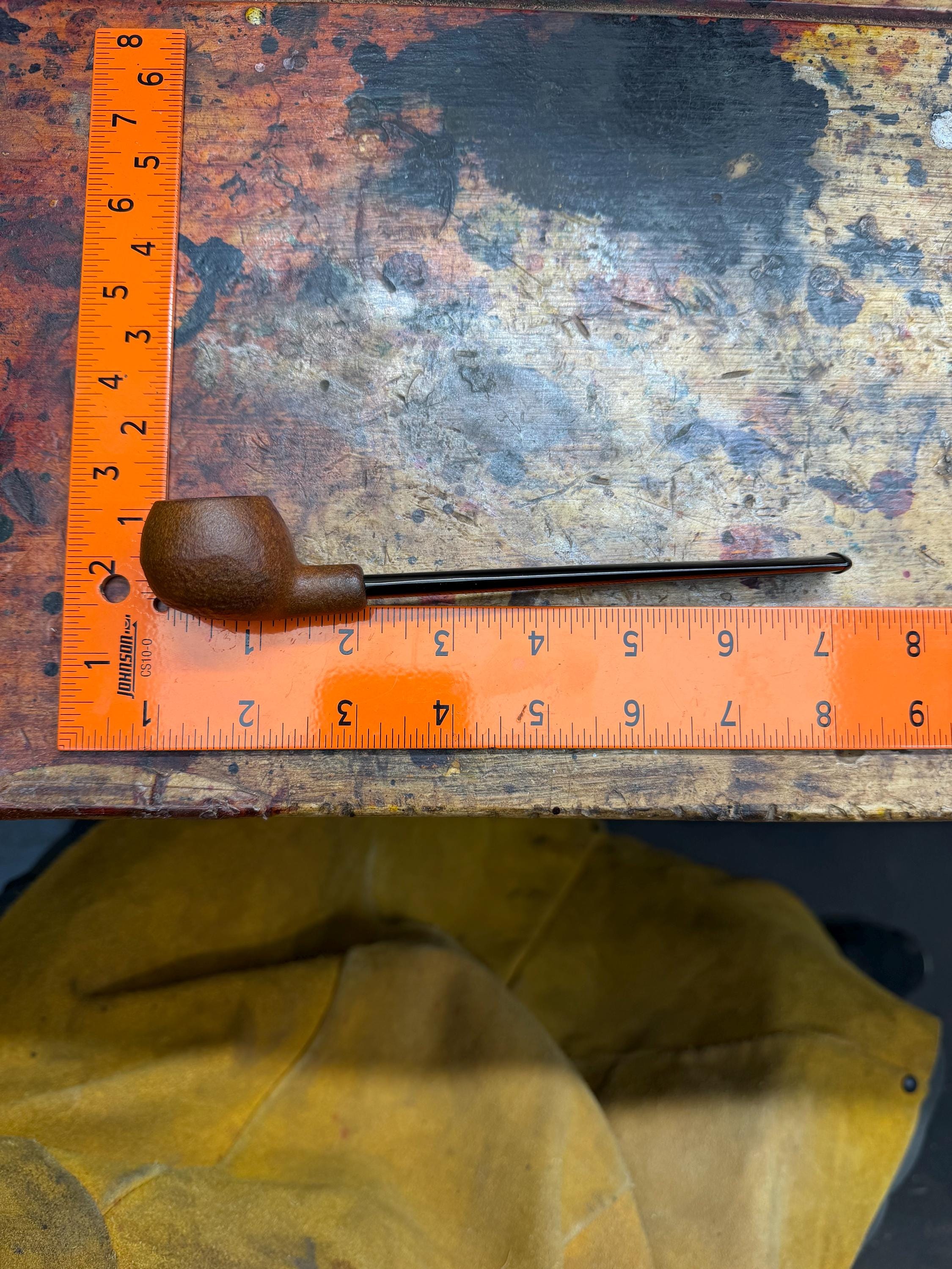 This is a handmade briar pipe that has been meticulously carved and rusticated/sandblasted . Vulcanite custom made stem. Non filtered. A very nice daily smoker. A smaller/tiny size church warden.