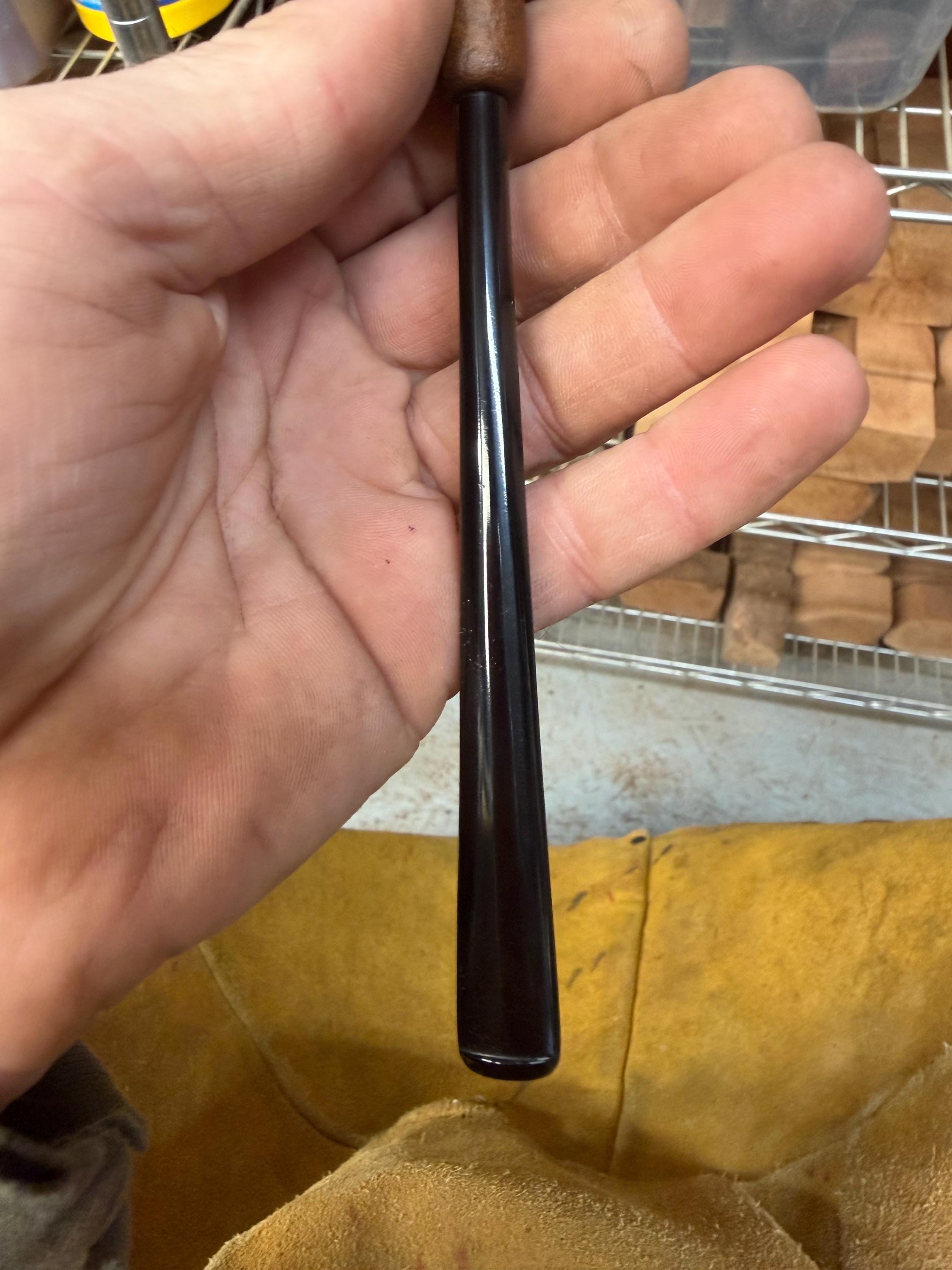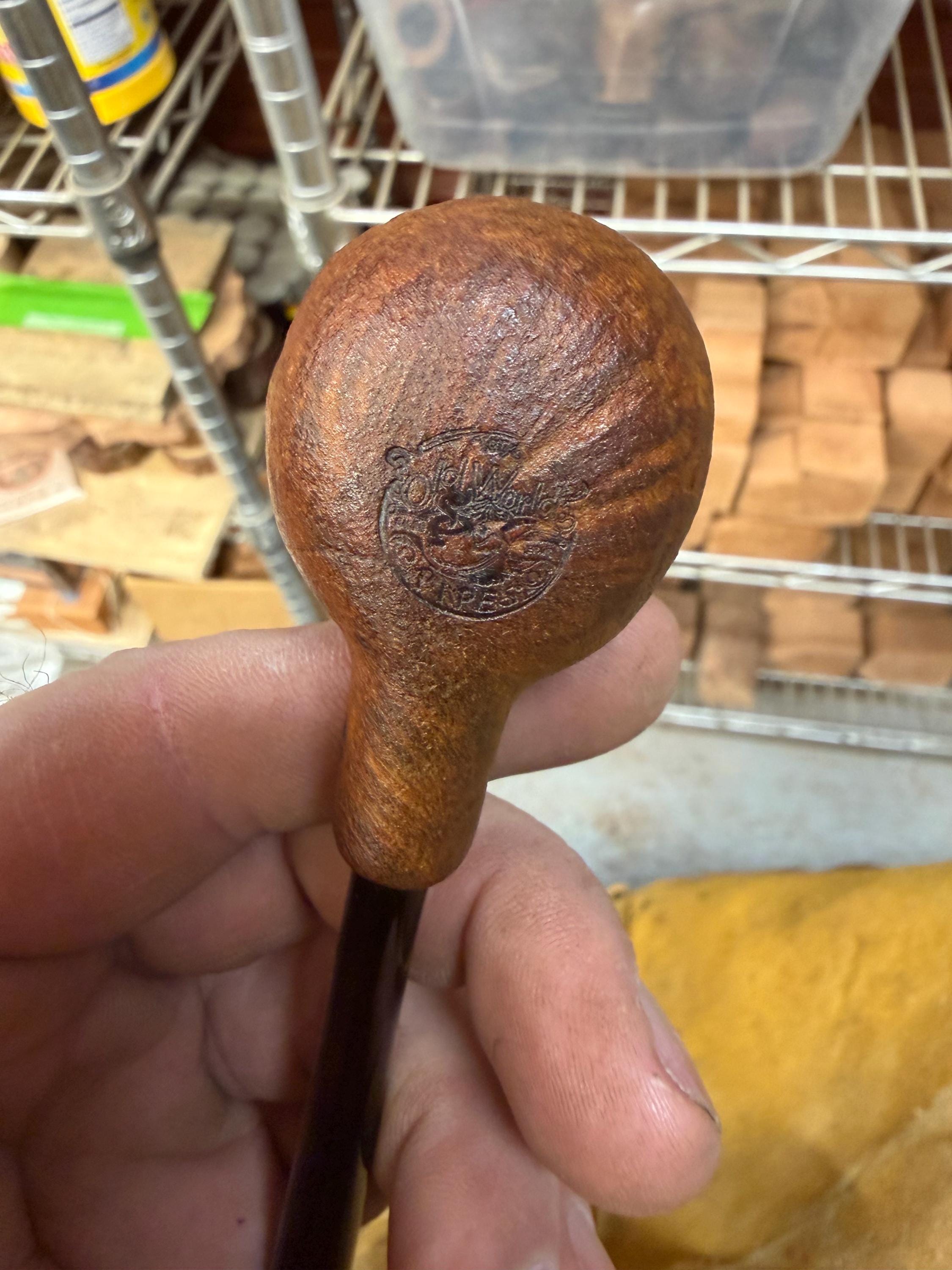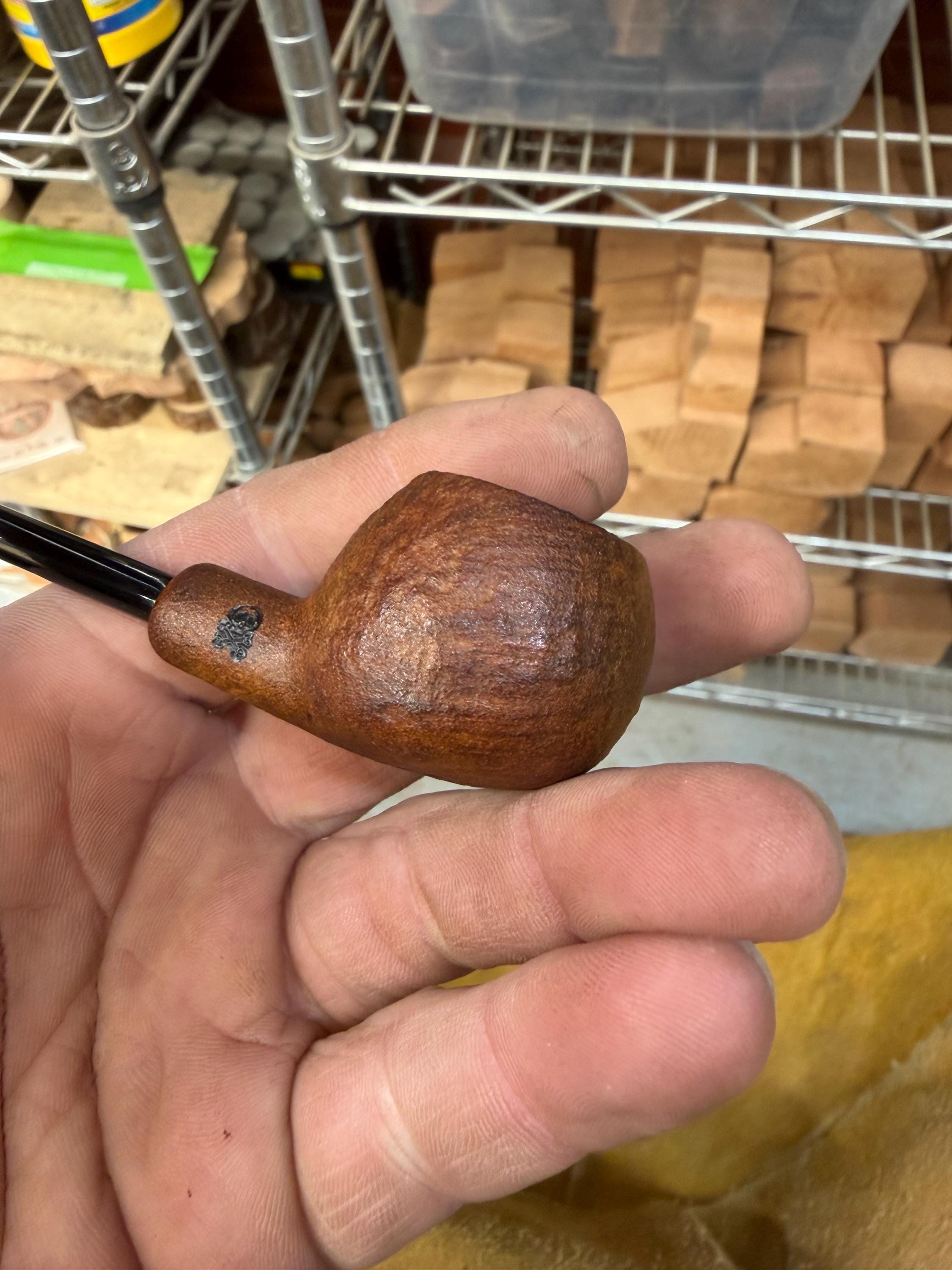 This is a handmade briar pipe that has been meticulously carved and rusticated/sandblasted . Vulcanite custom made stem. Non filtered. A very nice daily smoker. A smaller/tiny size church warden.