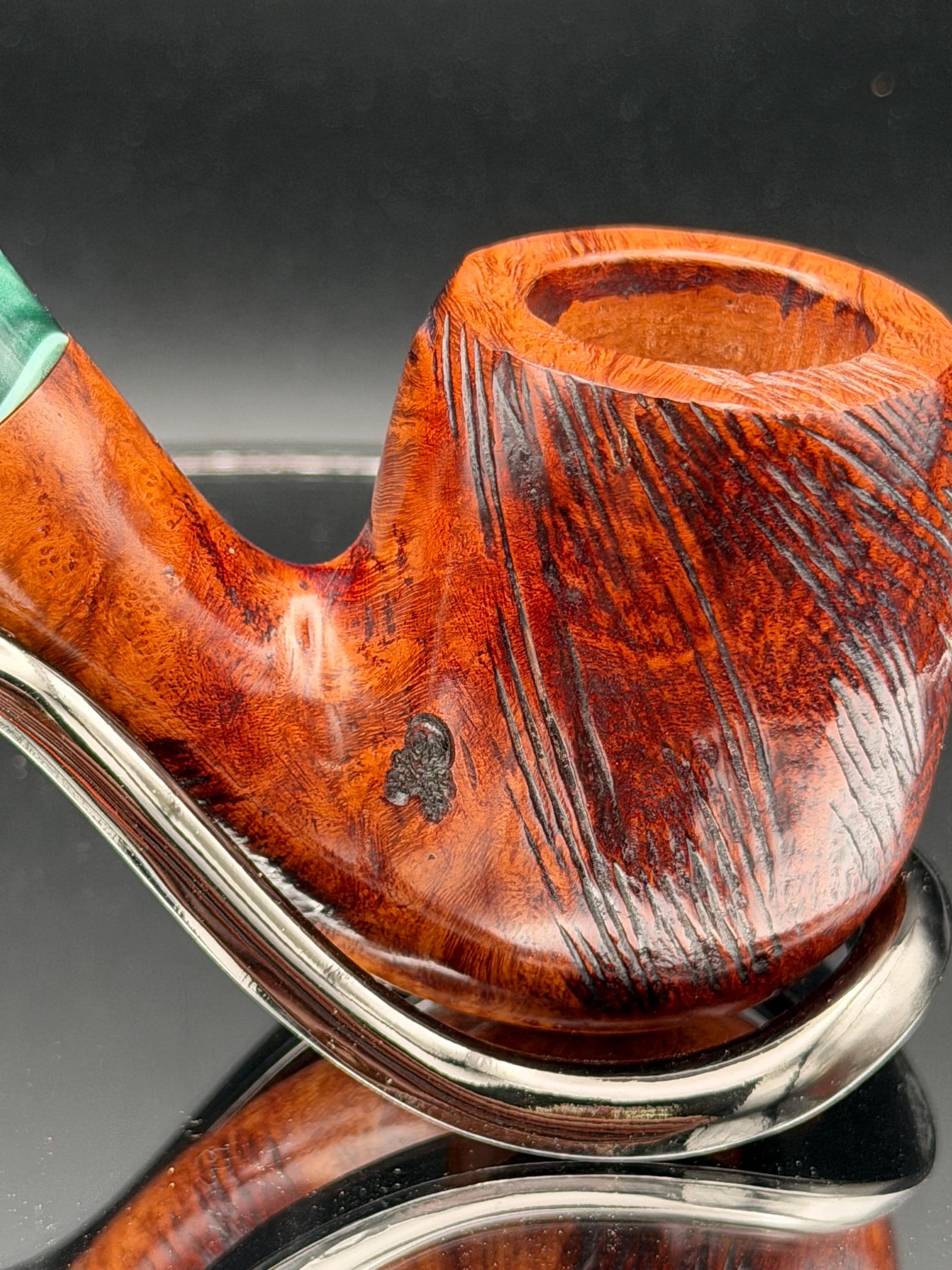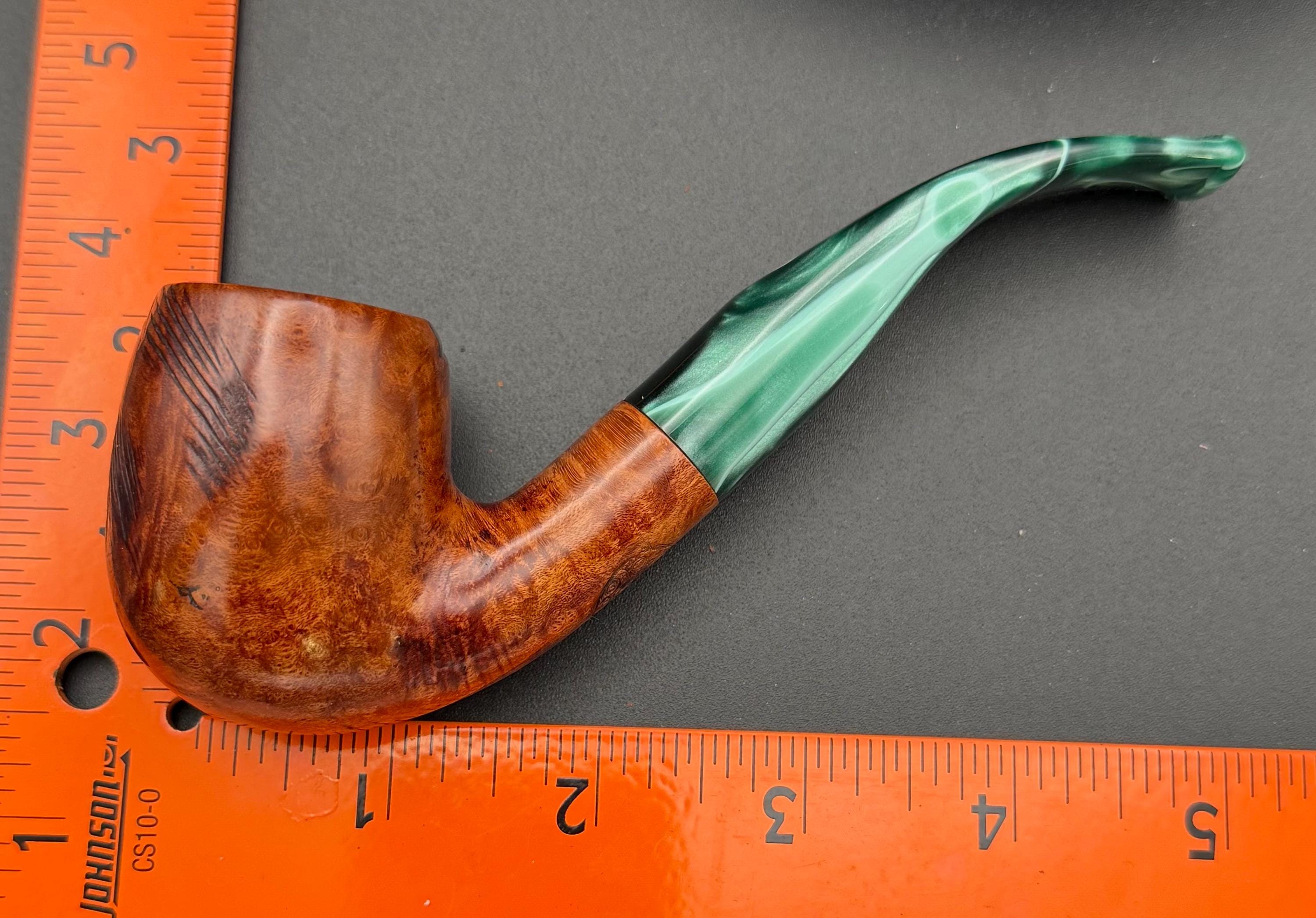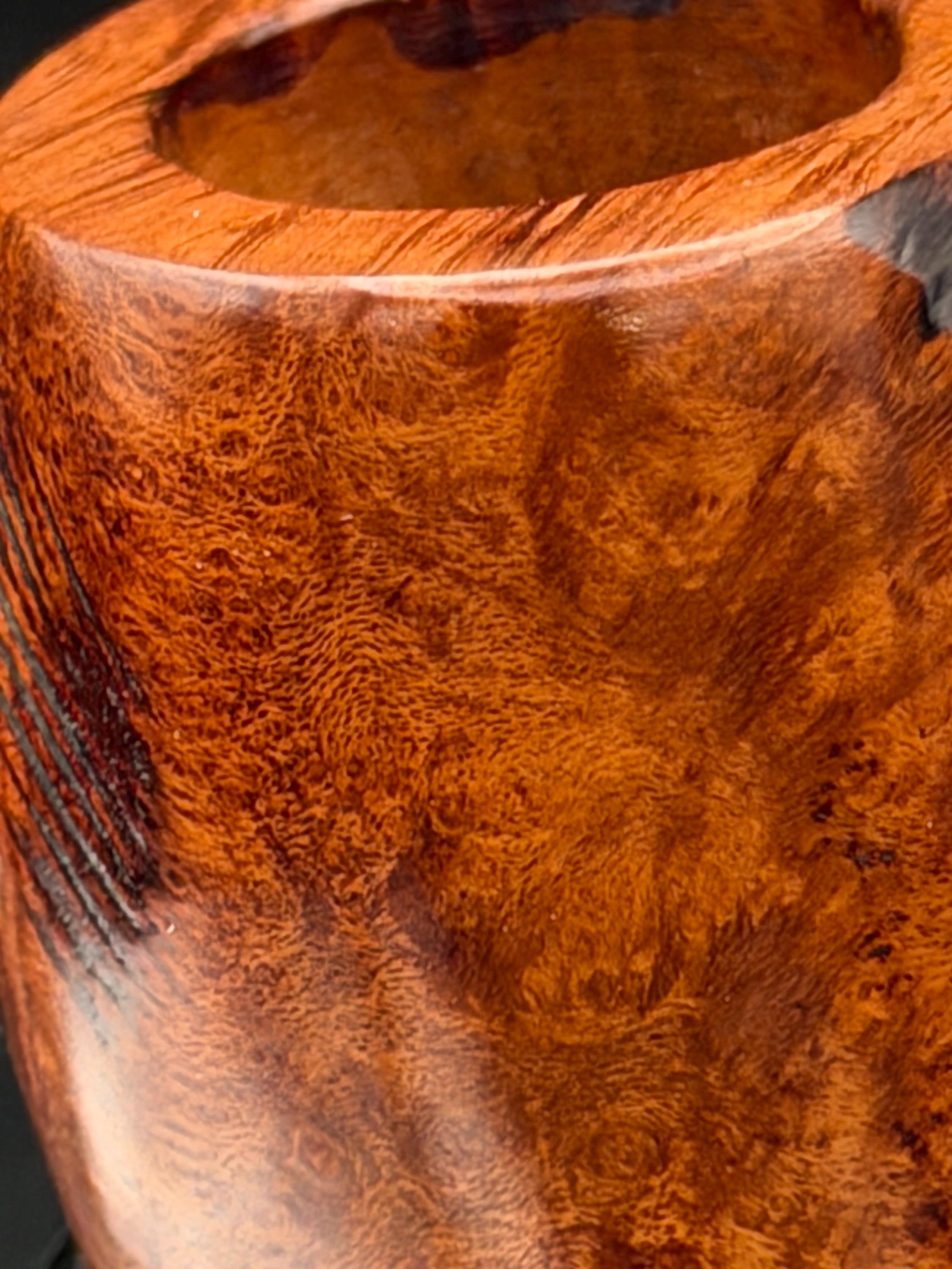 This is a handmade briar pipe that has been carved sanded and polished with natural carnuba wax. A nice custom acrylic stem. These are built to be beautiful but also for every day smoking. Perfect for the pocket.