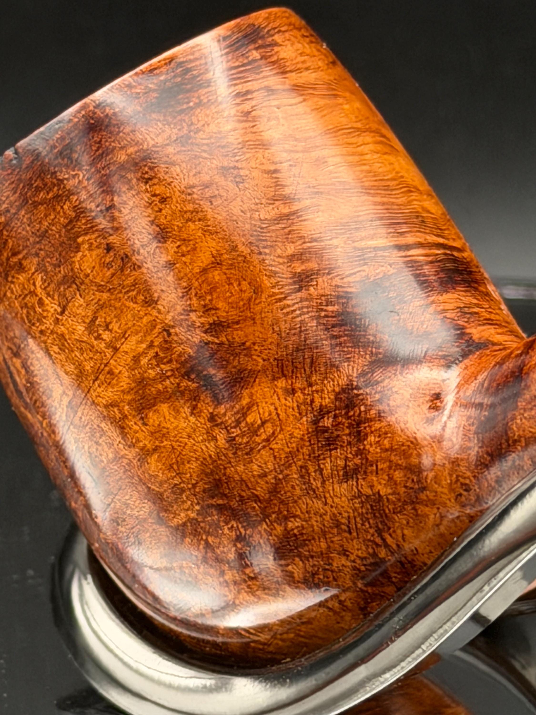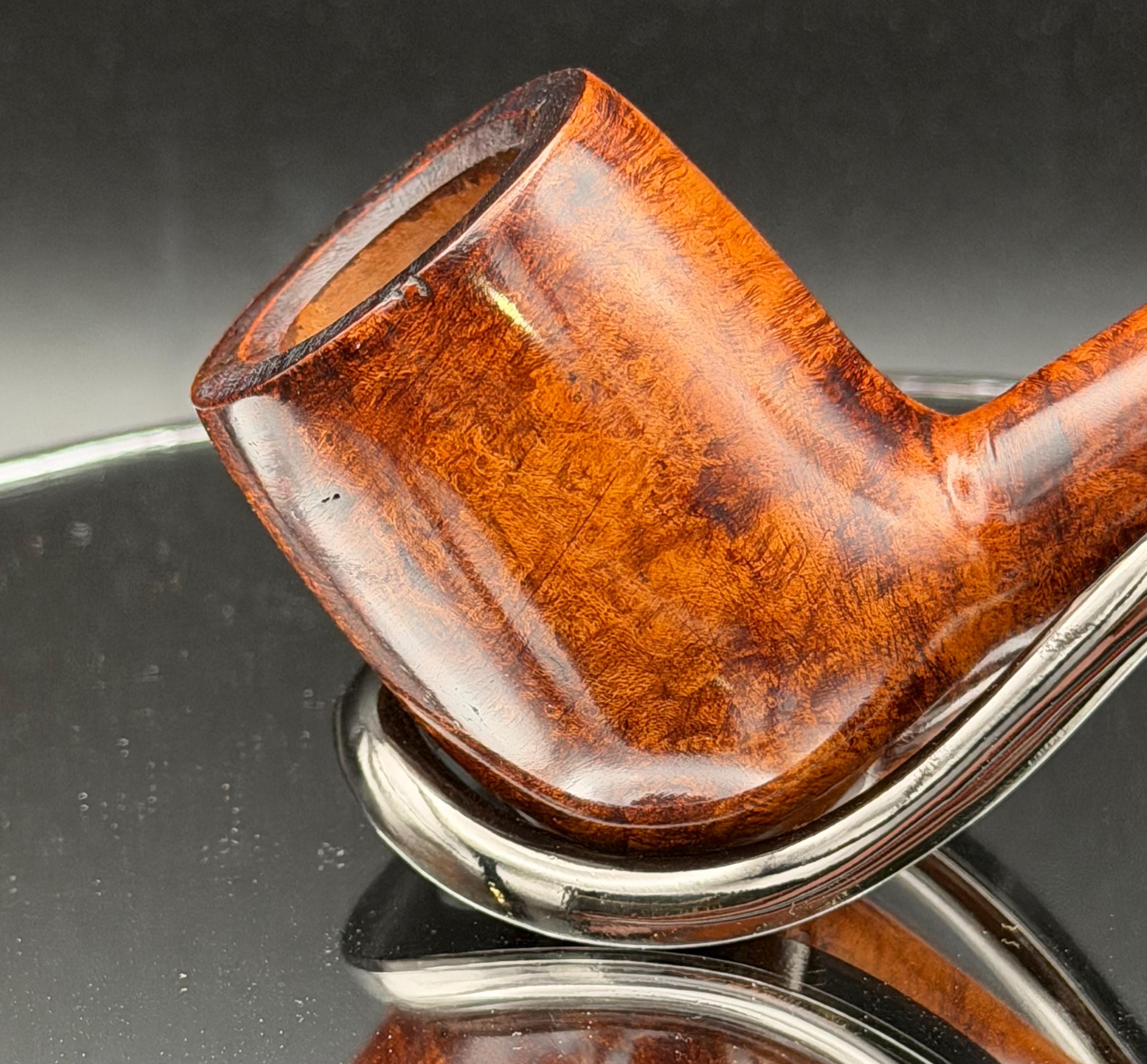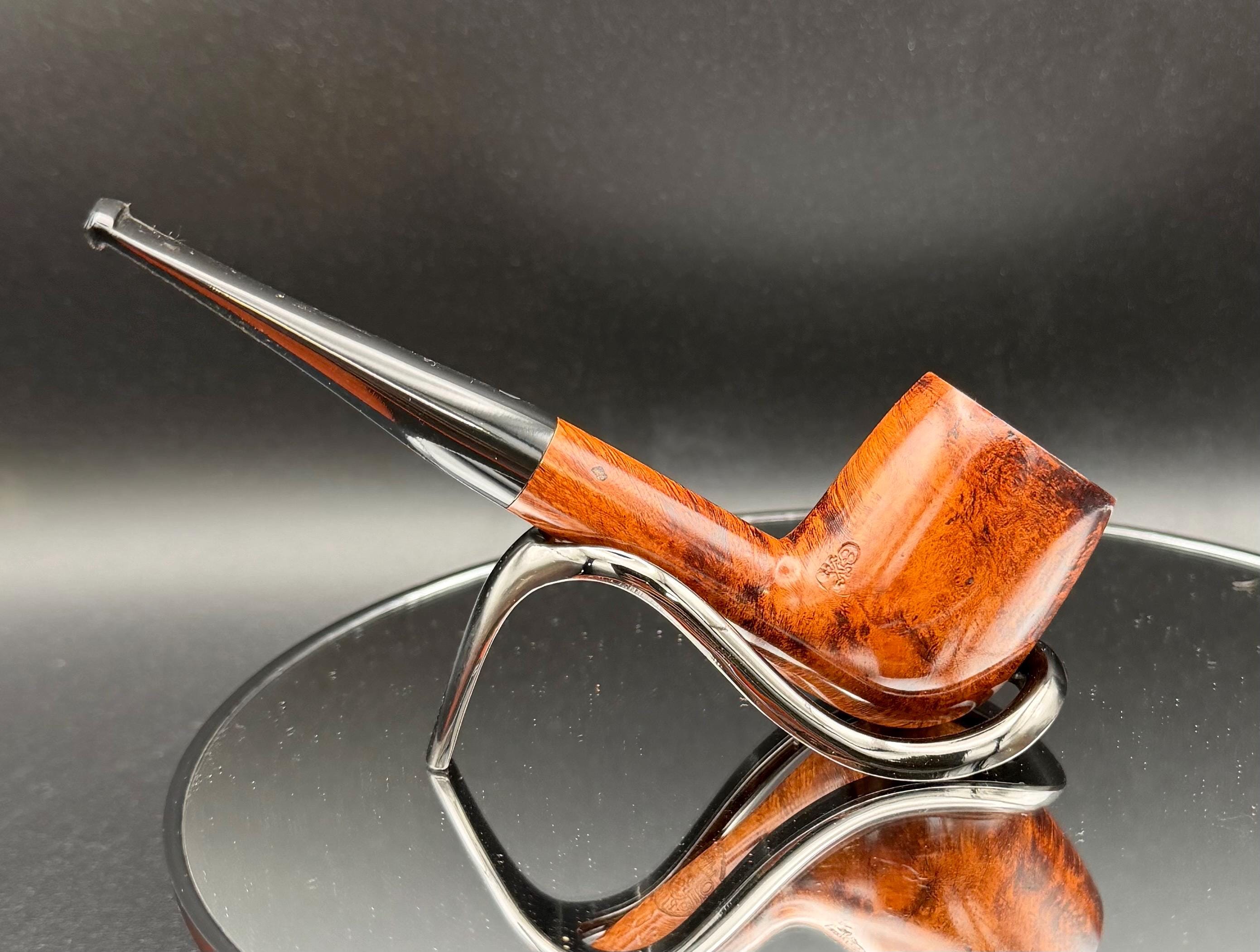 This is a handmade rustic and mahogany colored briar pipe that has been meticulously carved and polished . A vulcanite stem was formed and polished to finish it off. Non filtered. A very nice daily smoker.