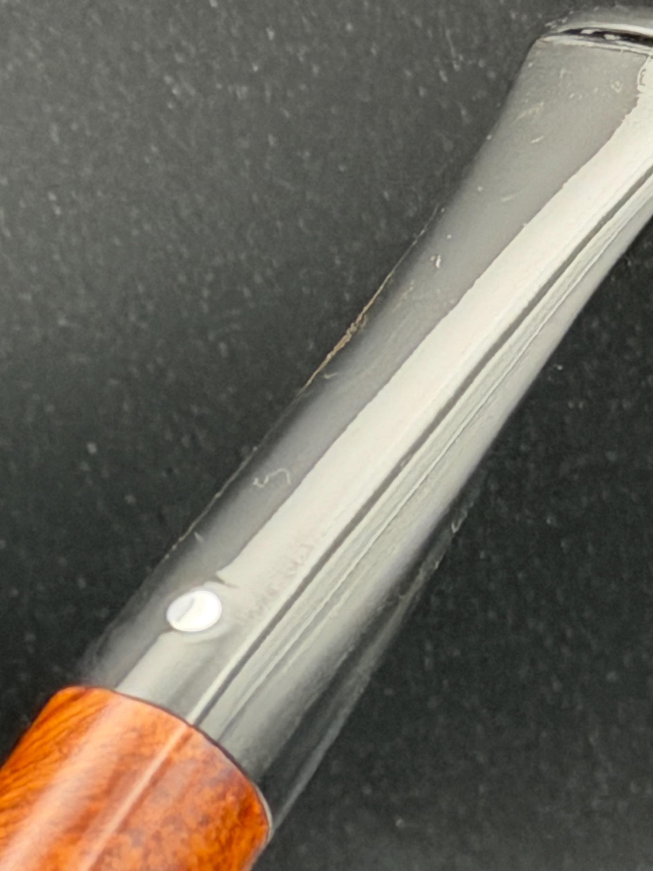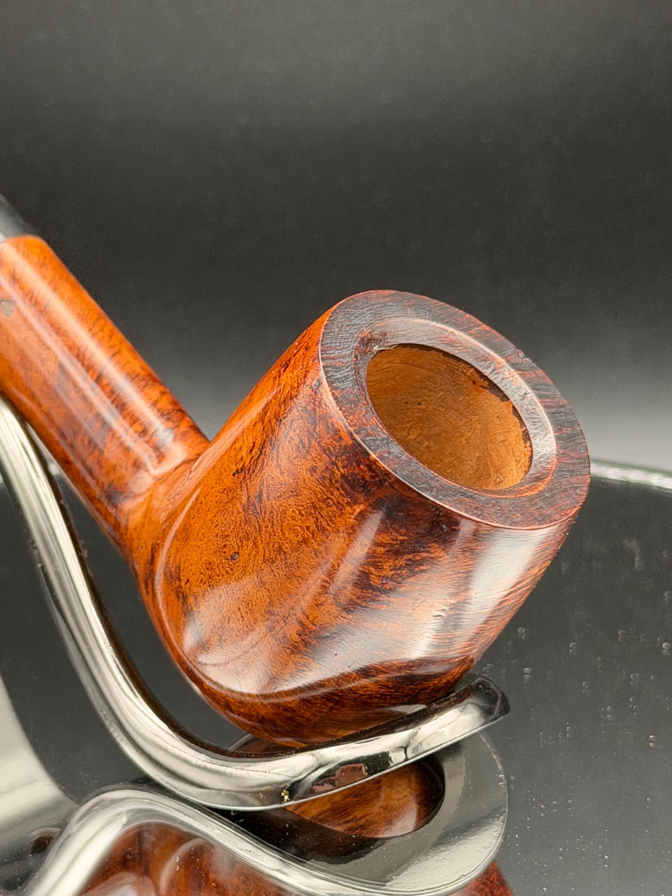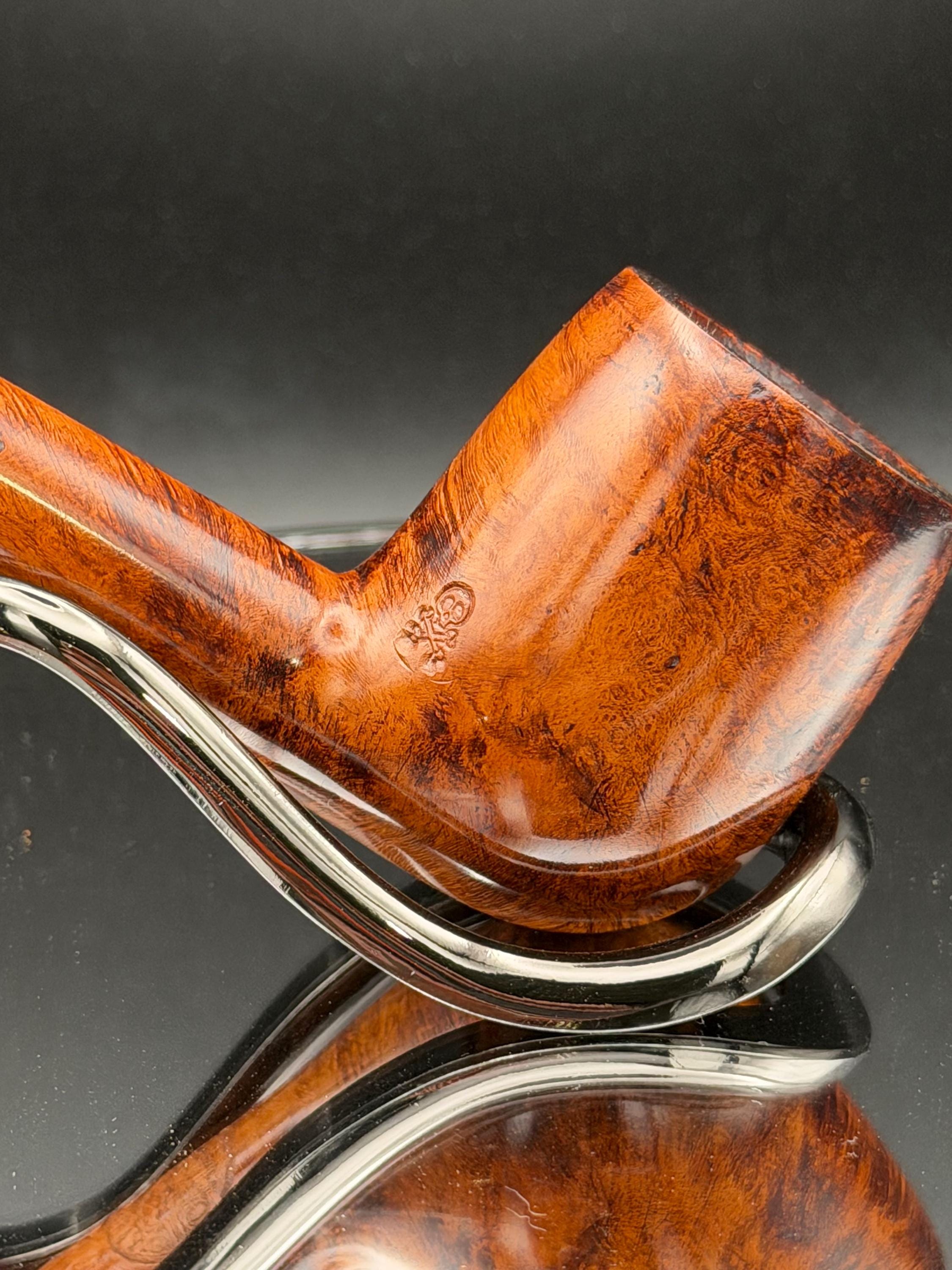 This is a handmade rustic and mahogany colored briar pipe that has been meticulously carved and polished . A vulcanite stem was formed and polished to finish it off. Non filtered. A very nice daily smoker.