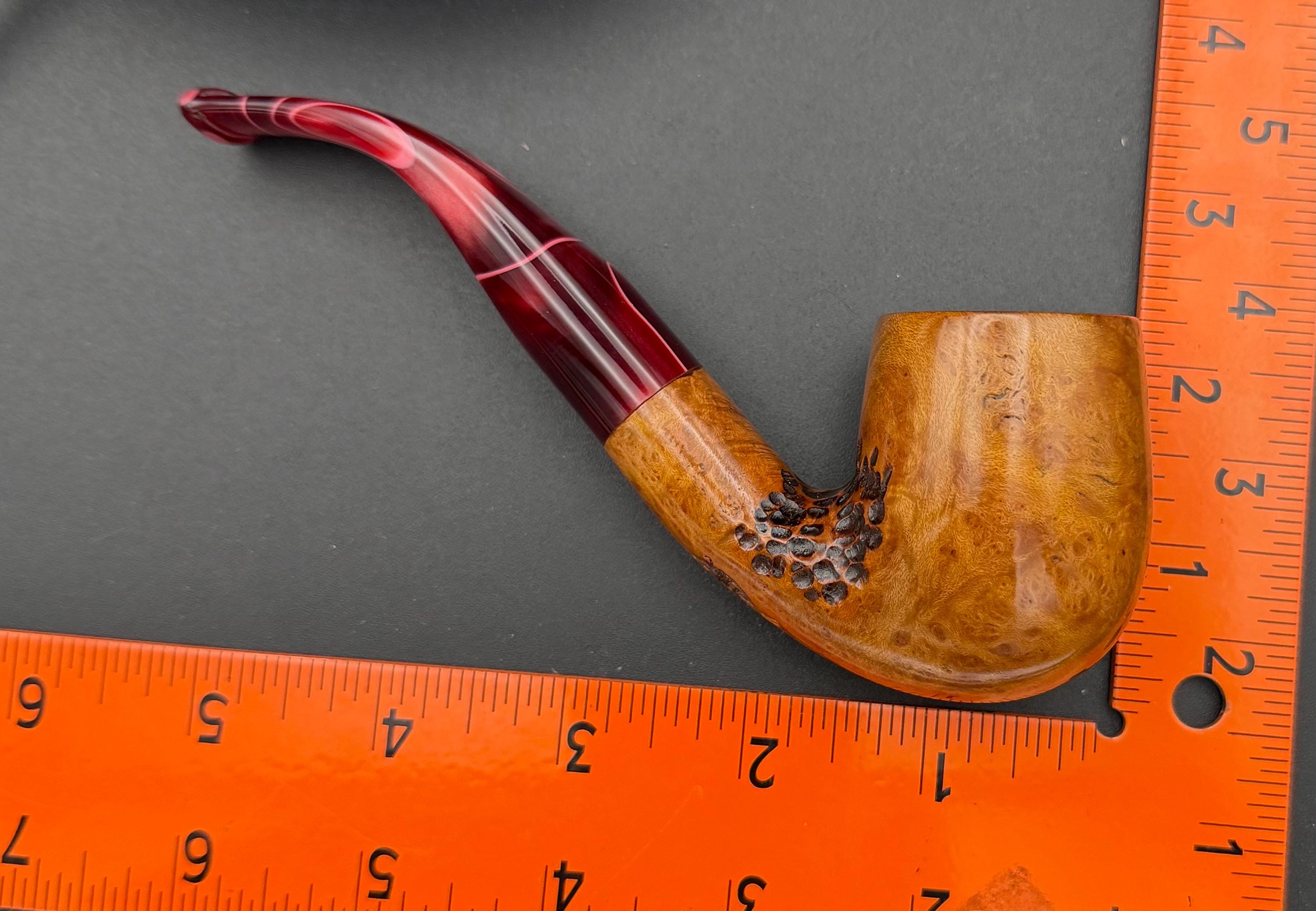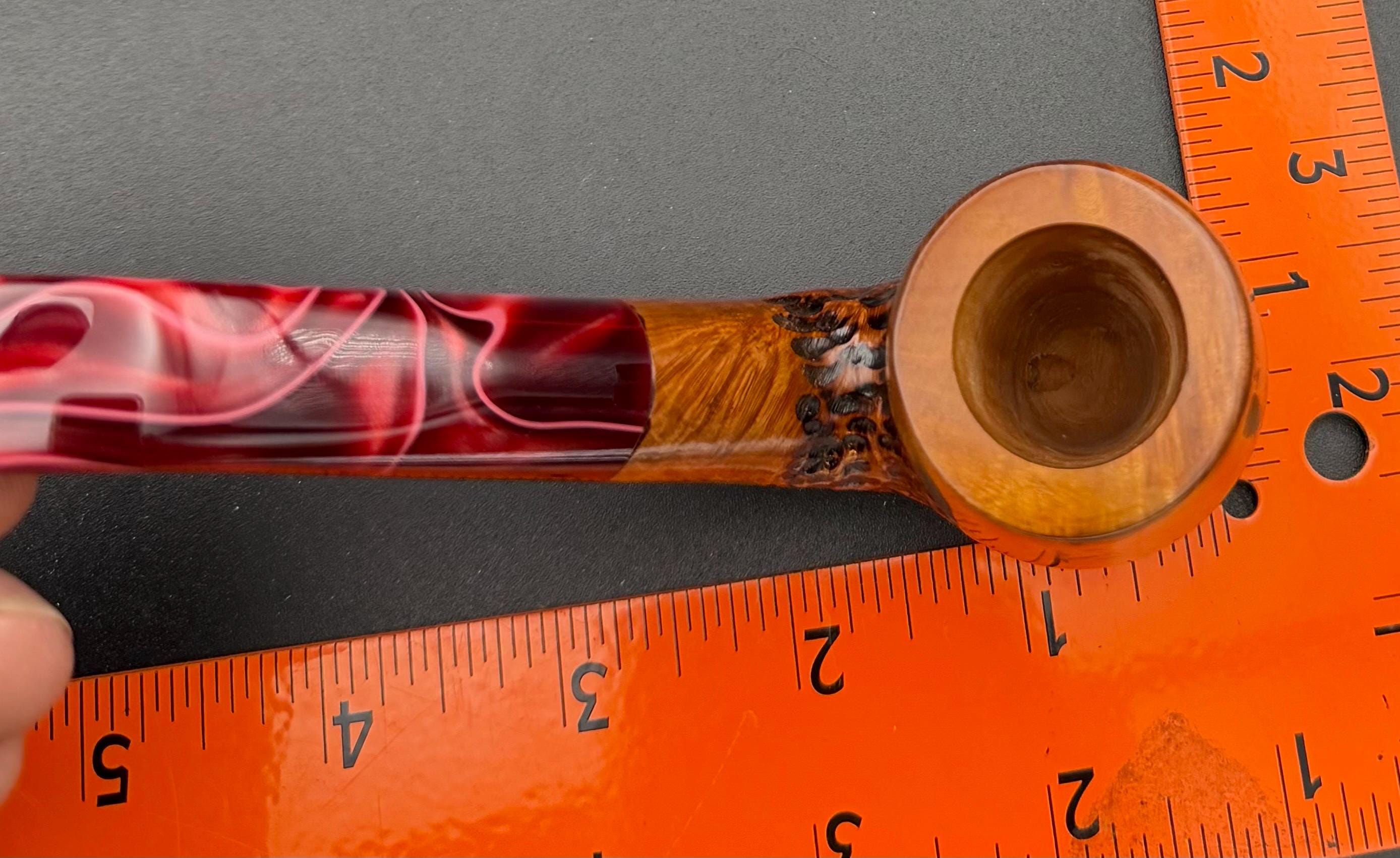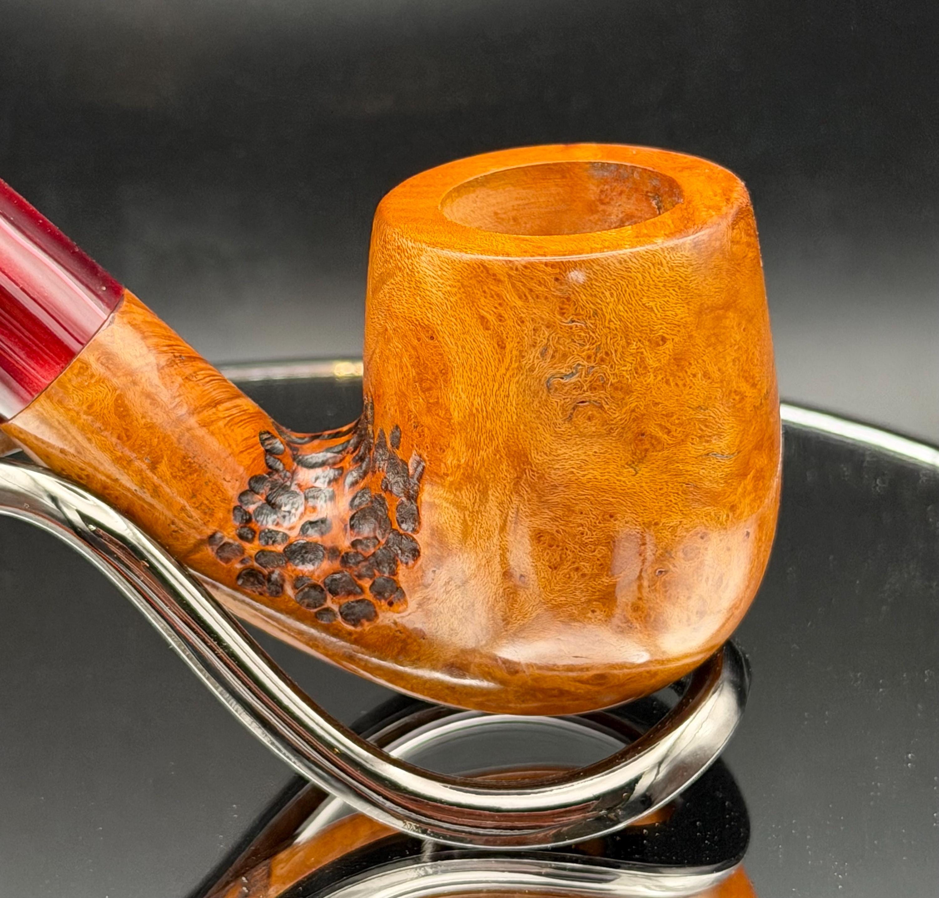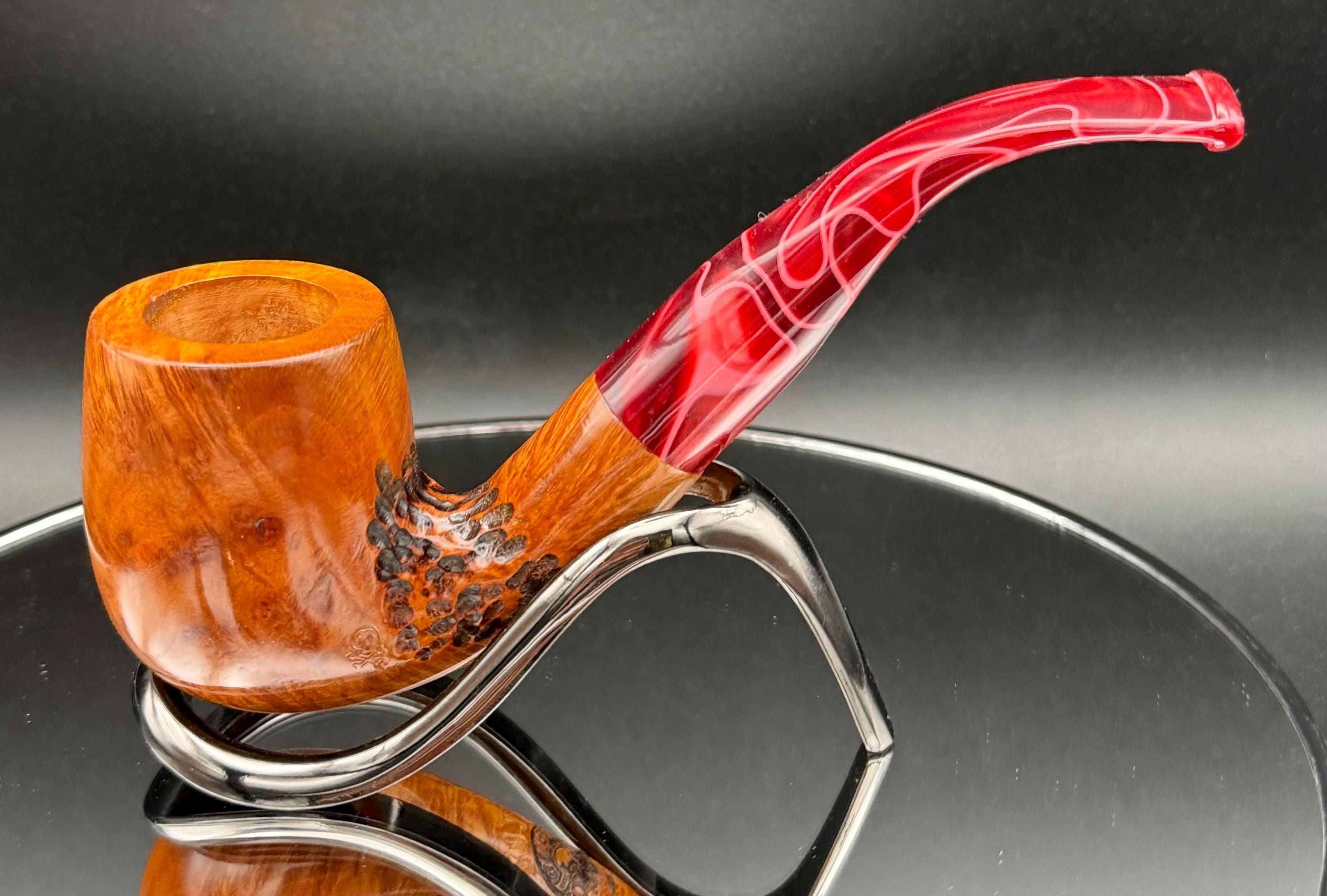 This is a handmade briar pipe that has been carved sanded and polished with natural carnuba wax. A nice custom acrylic stem. These are built to be beautiful but also for every day smoking. Perfect for the pocket.