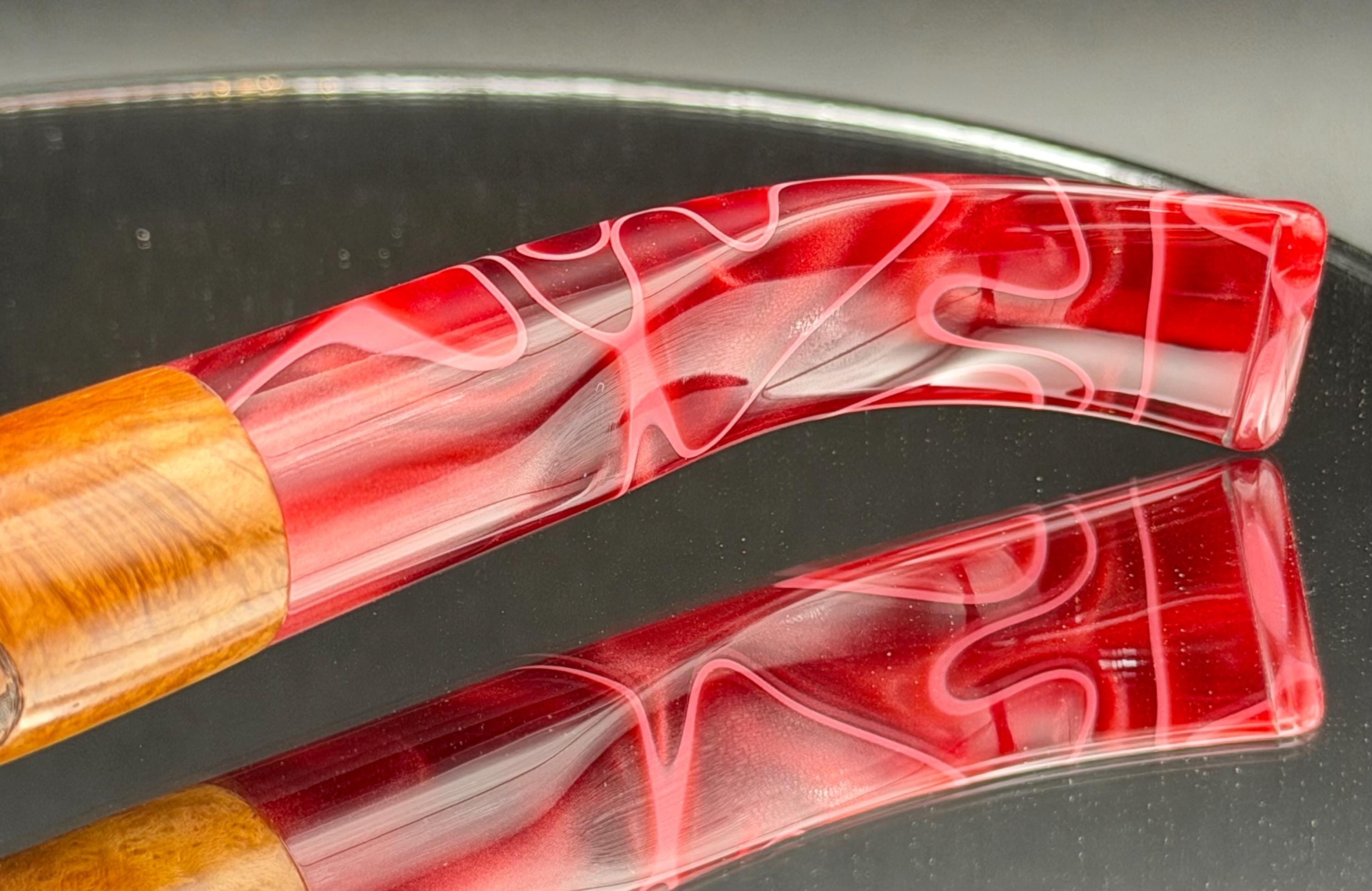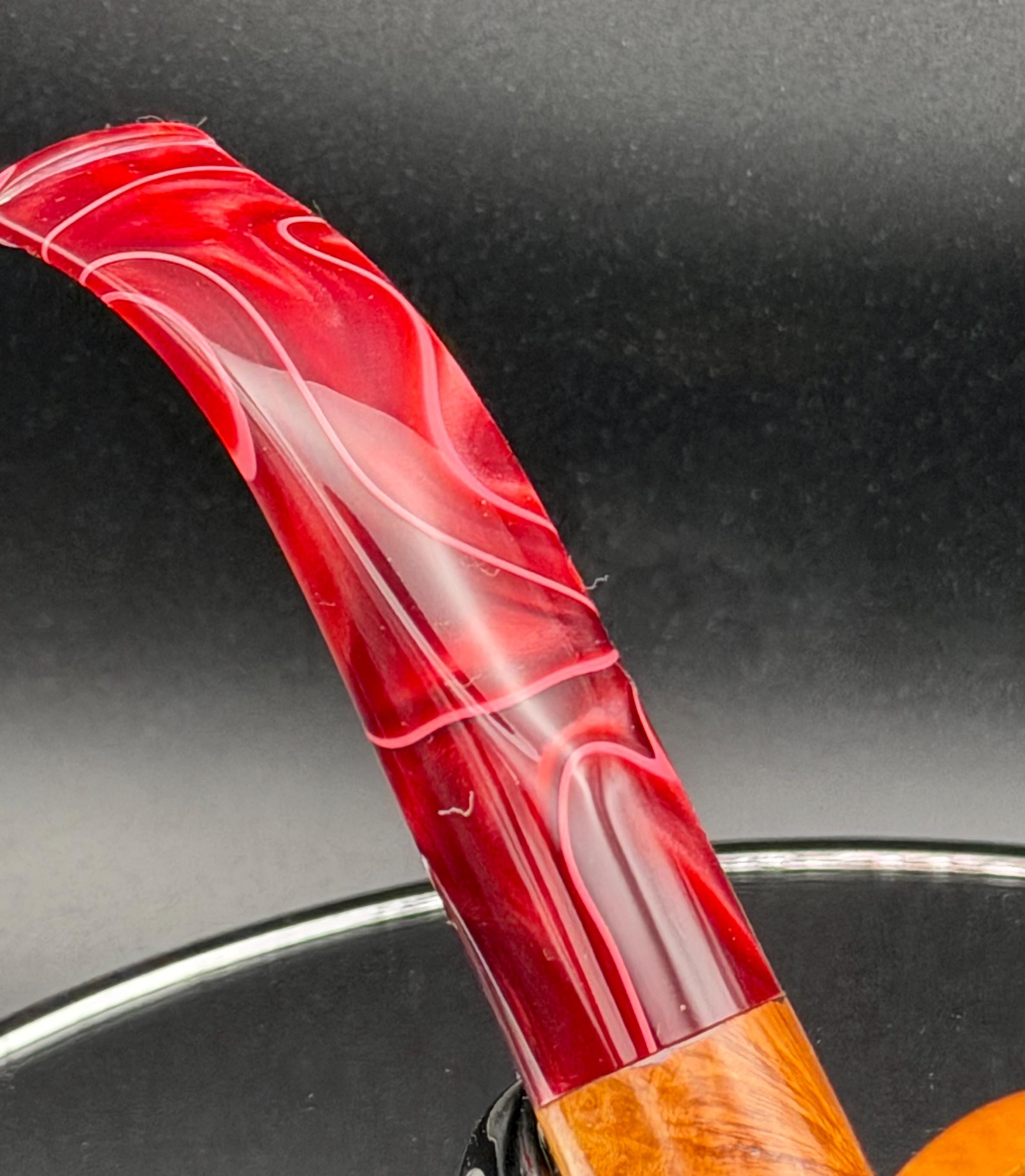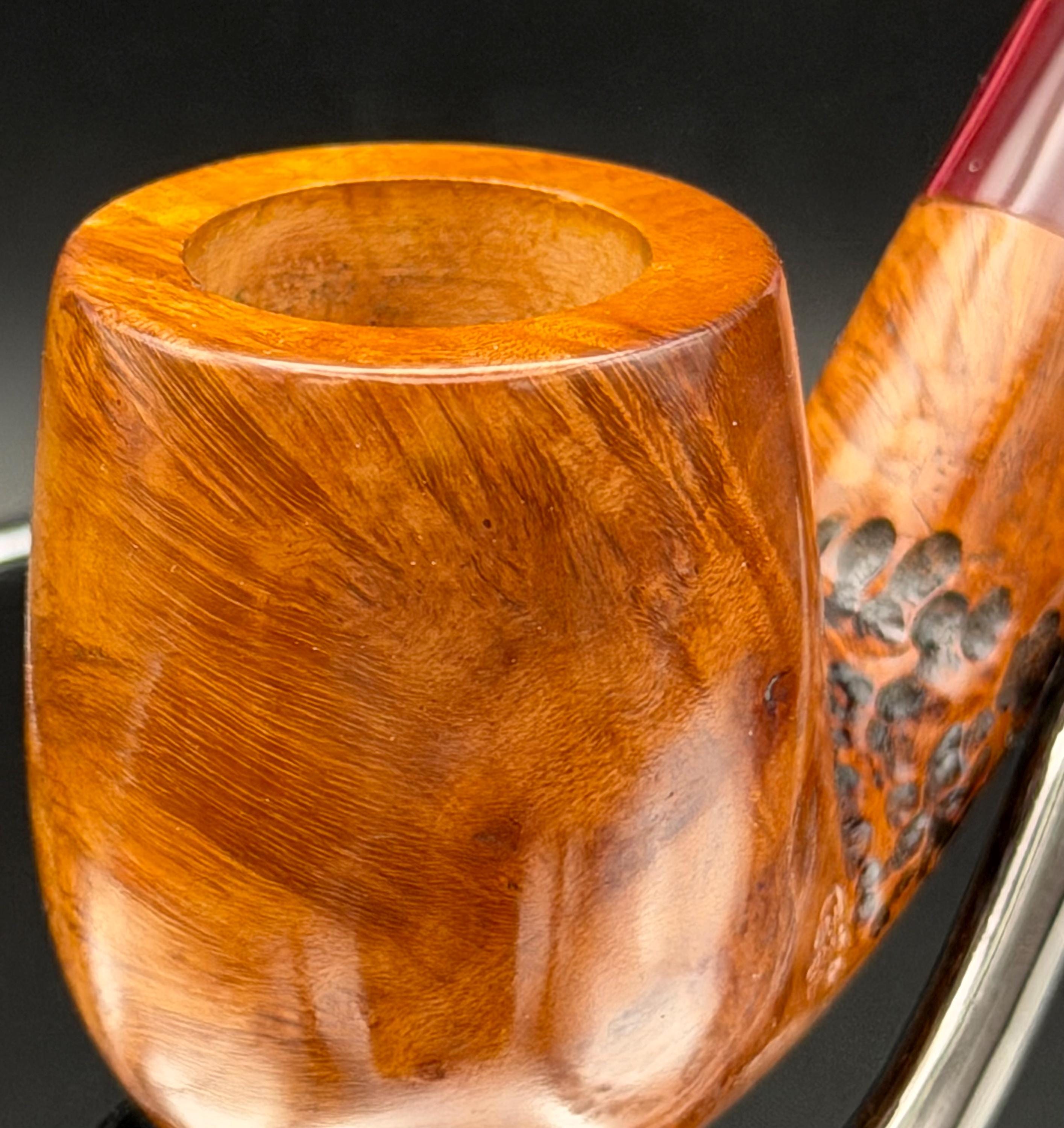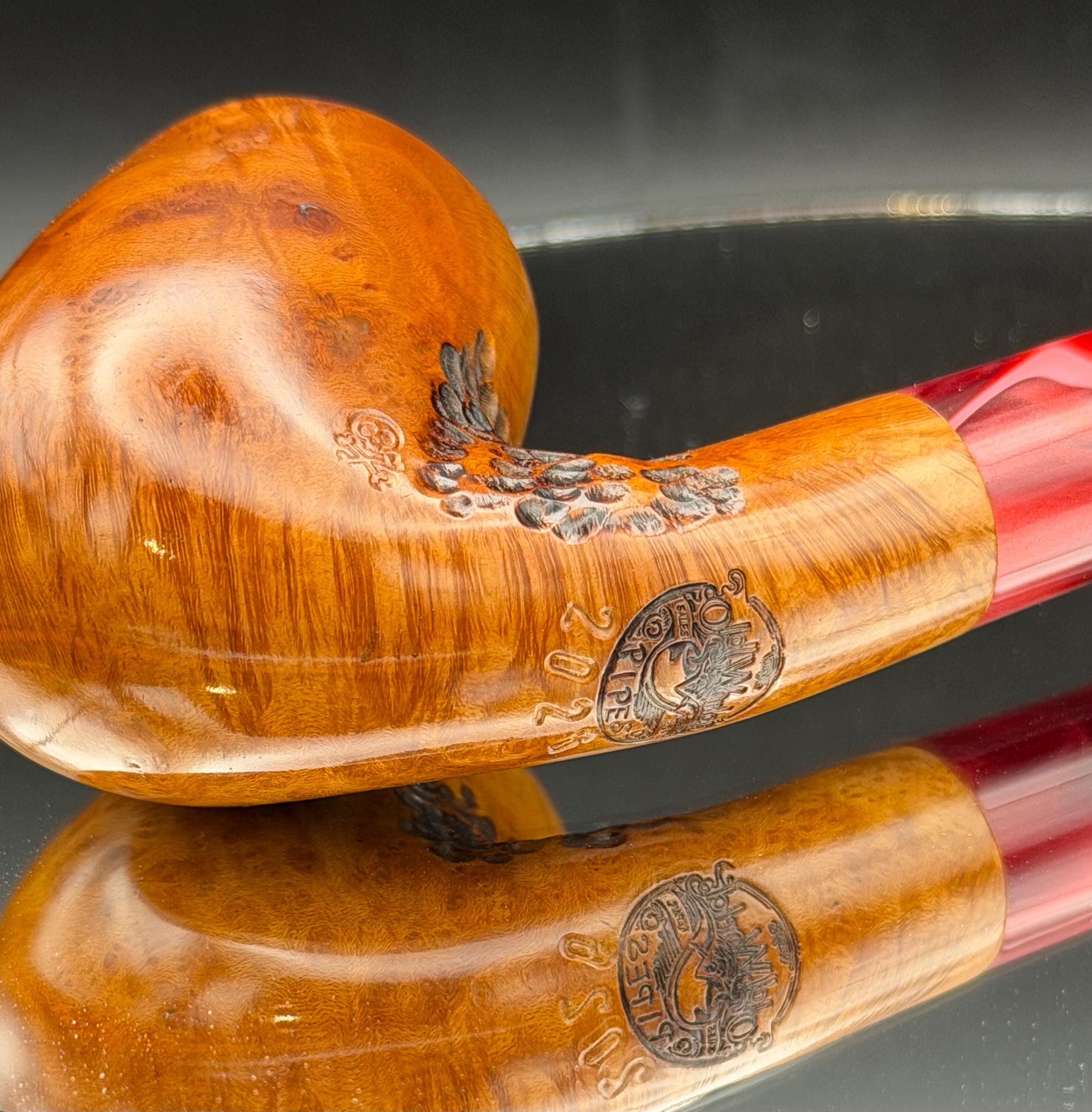 This is a handmade briar pipe that has been carved sanded and polished with natural carnuba wax. A nice custom acrylic stem. These are built to be beautiful but also for every day smoking. Perfect for the pocket.