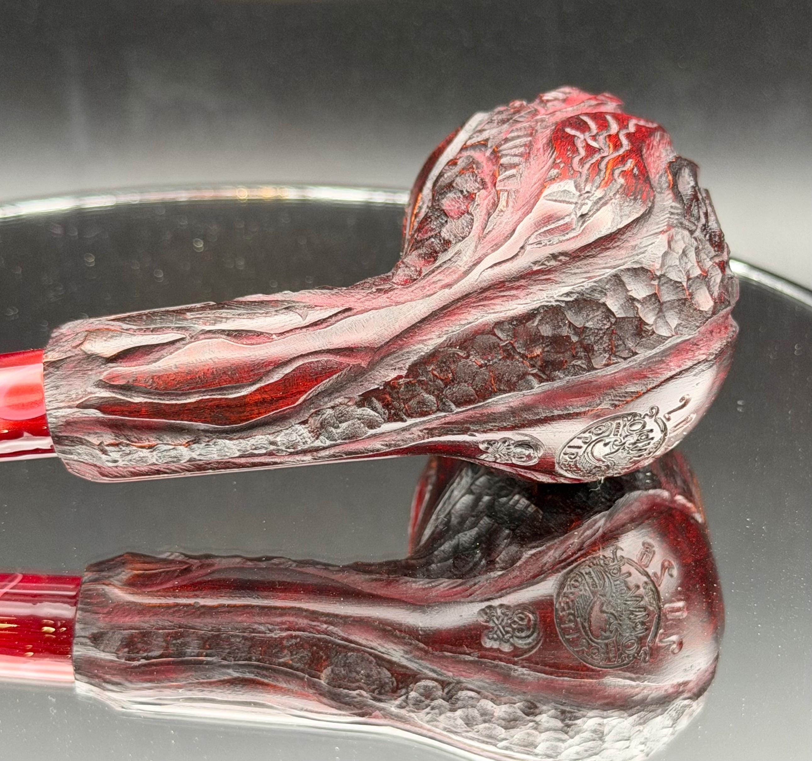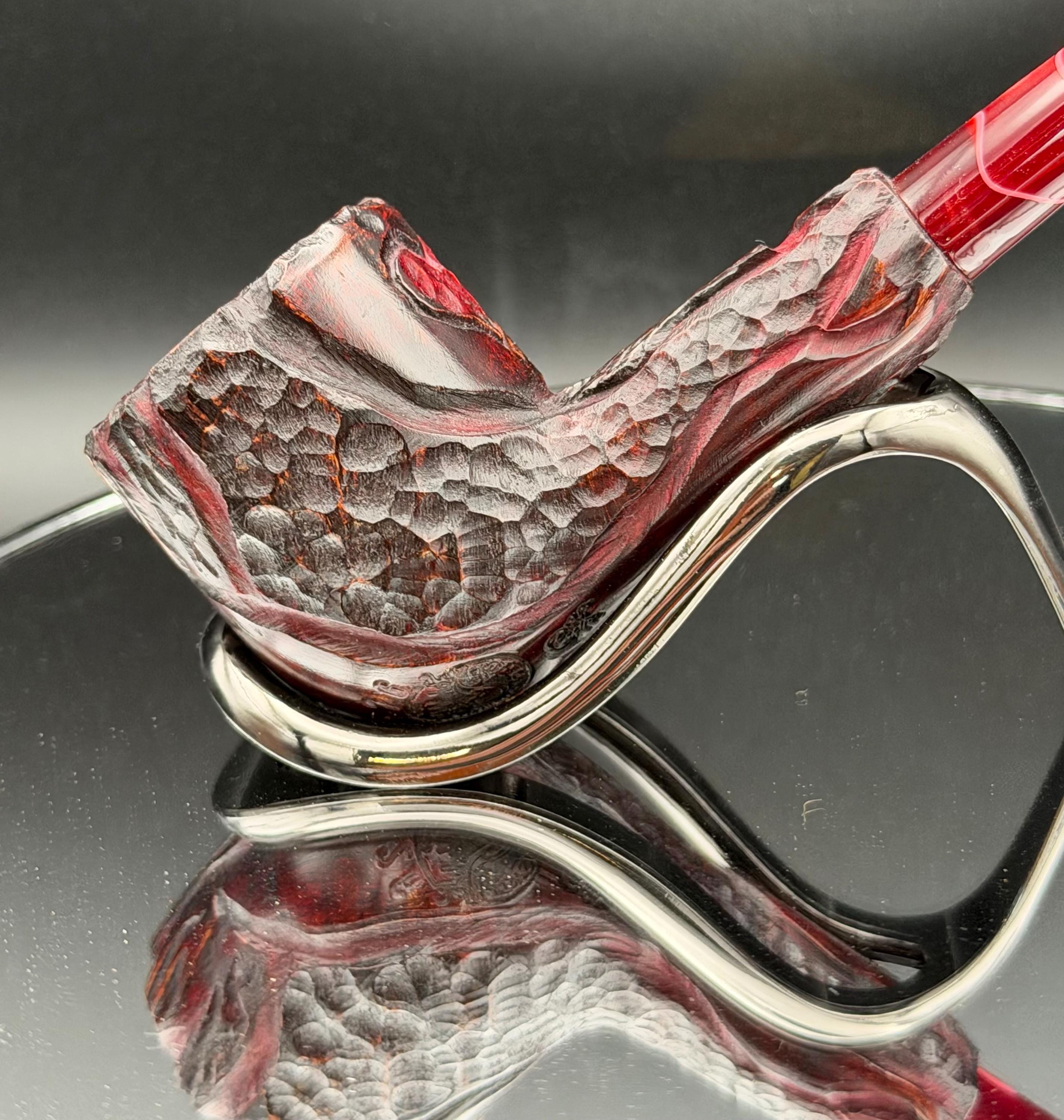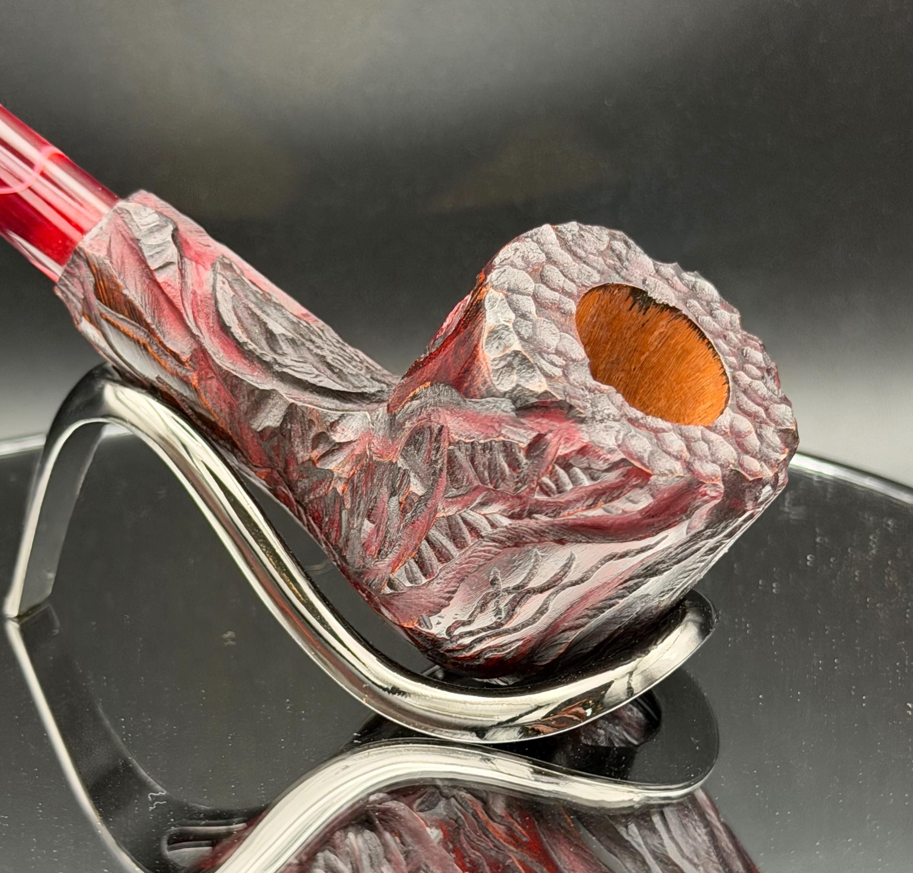 This is a handmade briar pipe that has been carved sanded and polished with natural carnuba wax. A nice custom acrylic stem. These are built to be beautiful but also for every day smoking. Perfect for a nice relaxing smoke. semi church warden.