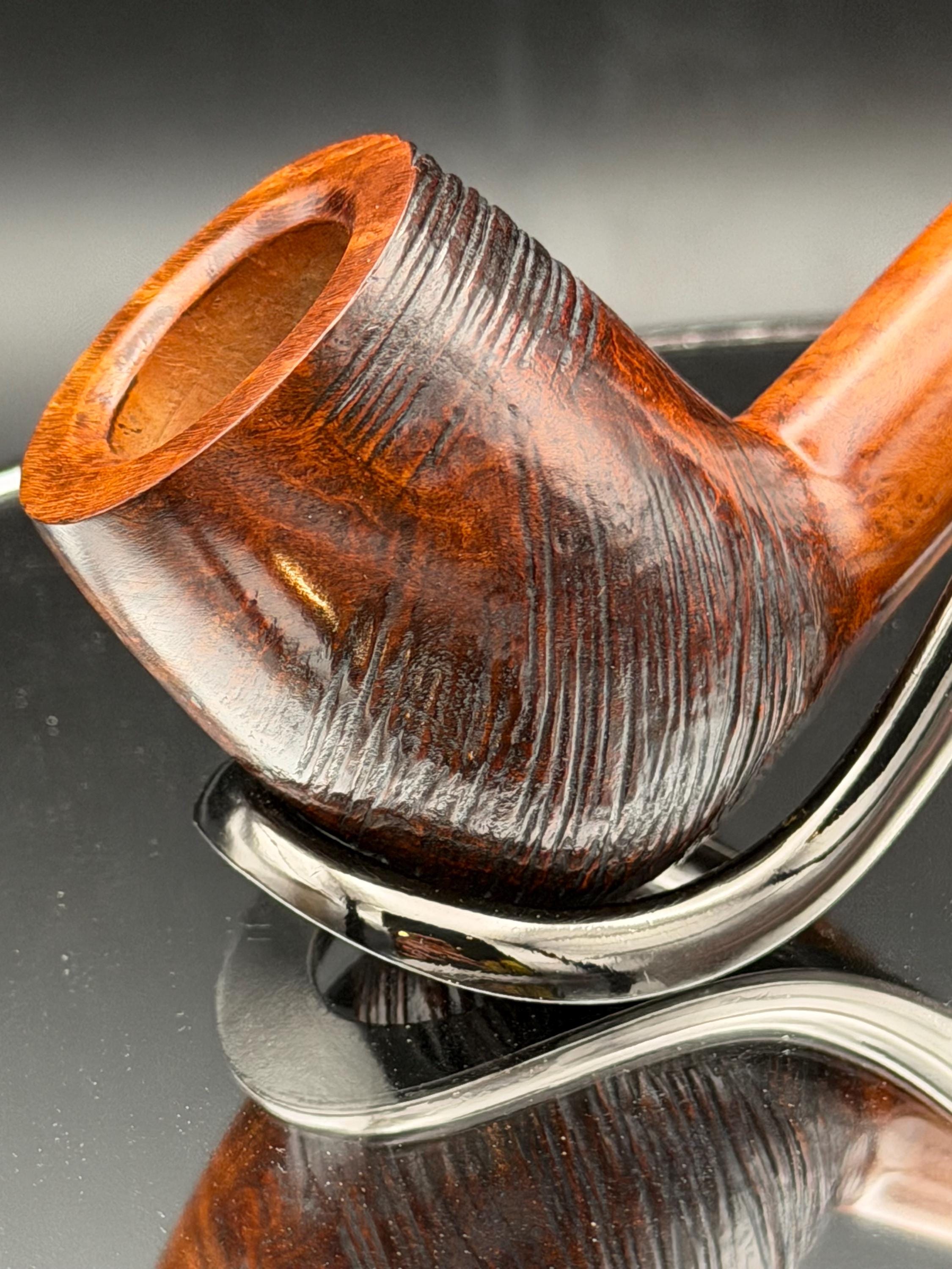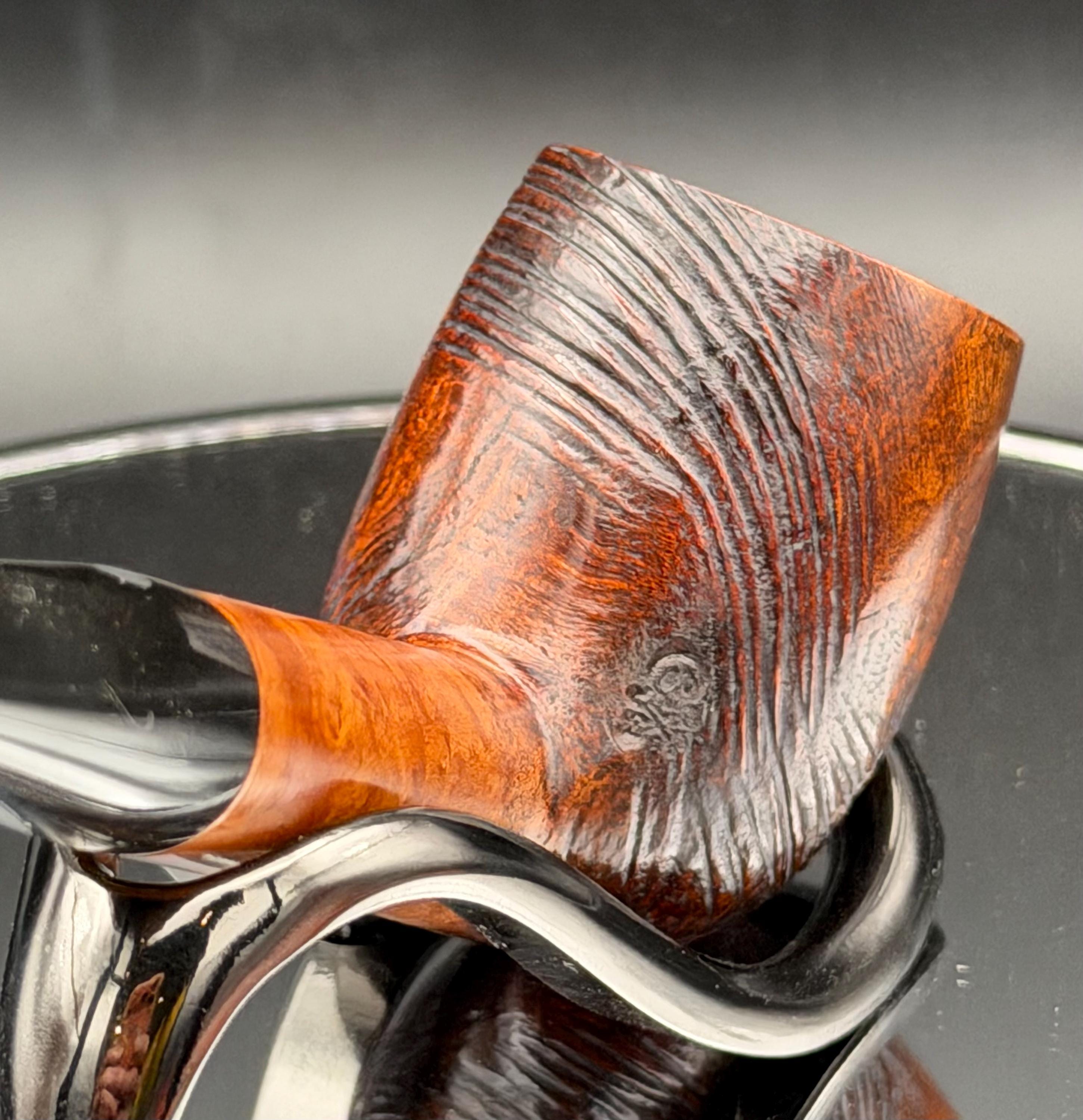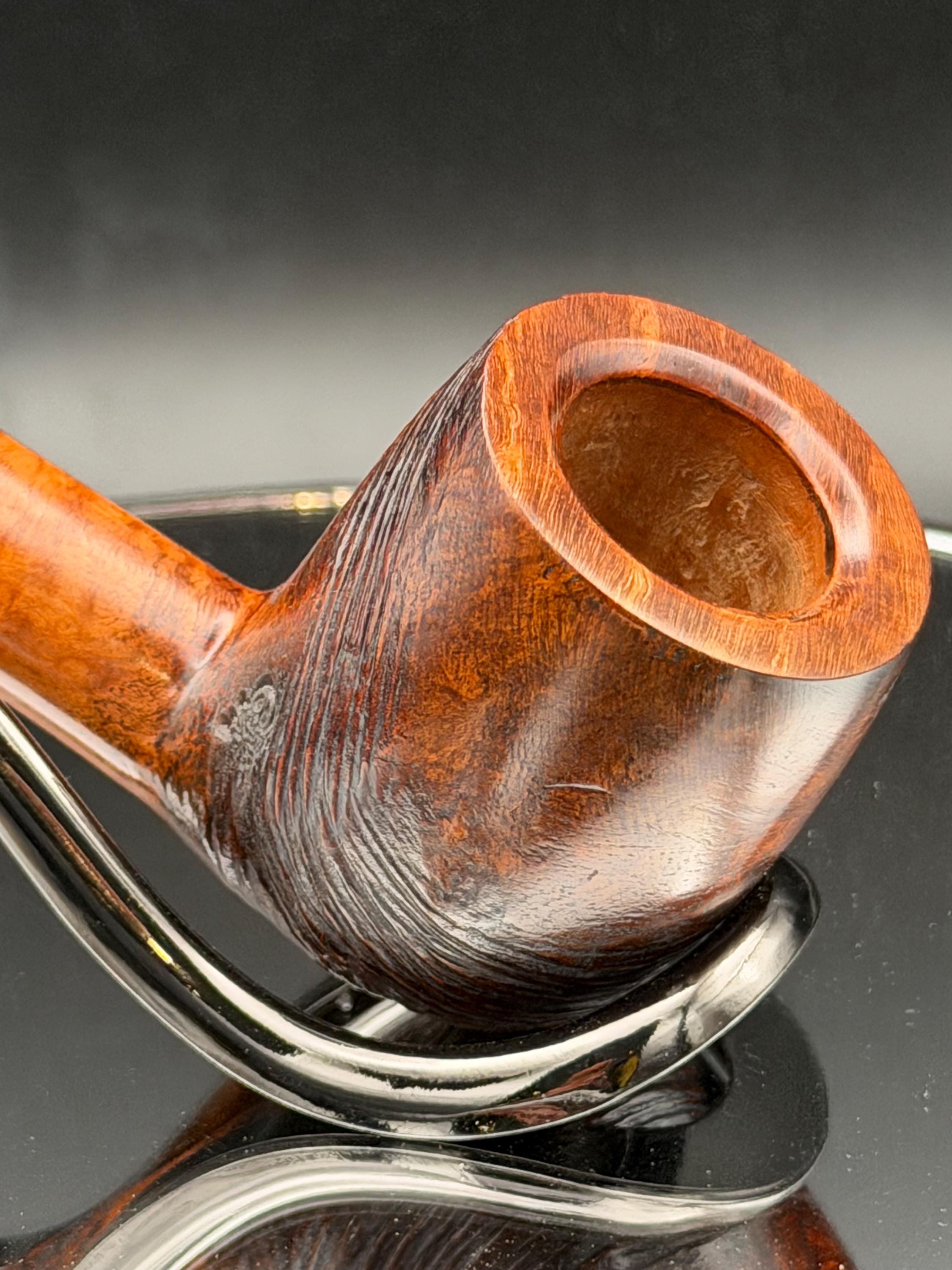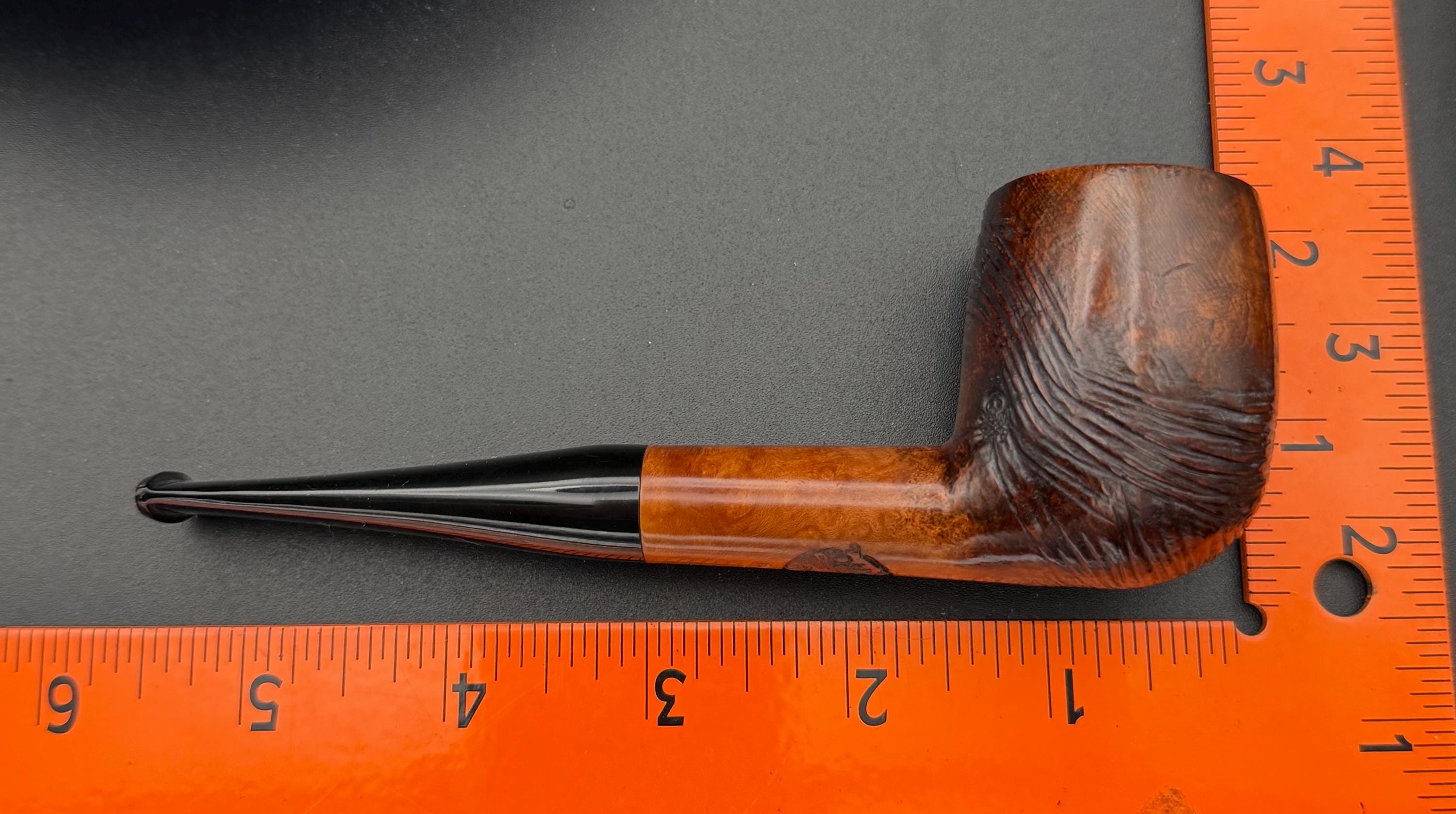 This is a handmade briar pipe that has been meticulously carved and rusticated . Vulcanite custom made stem. Non filtered. A very nice daily smoker.