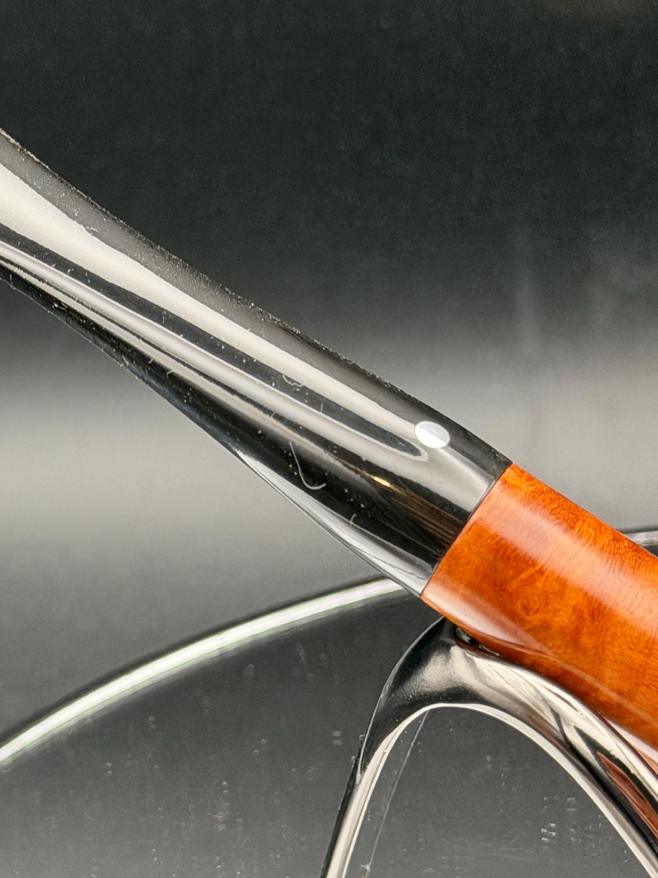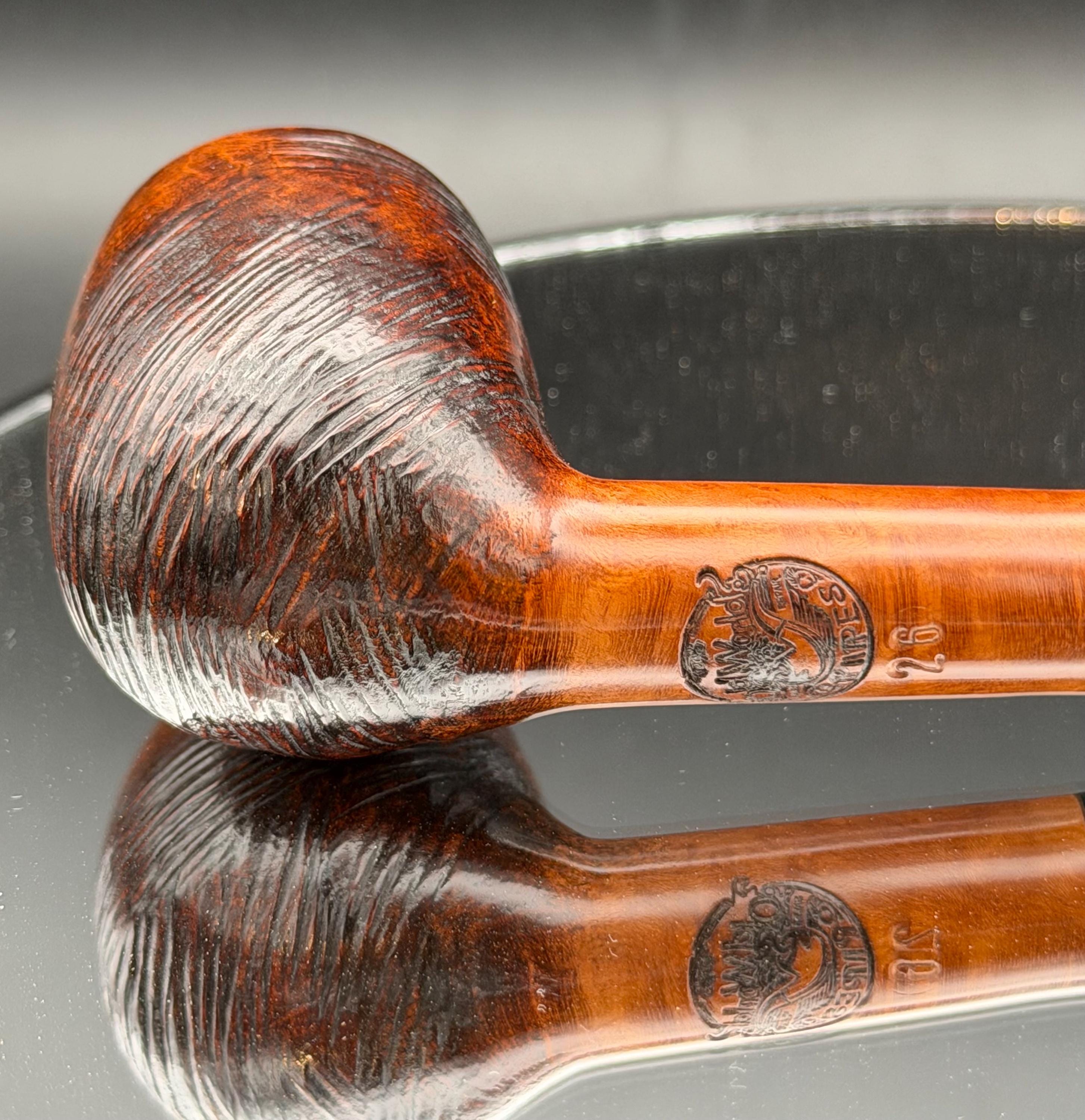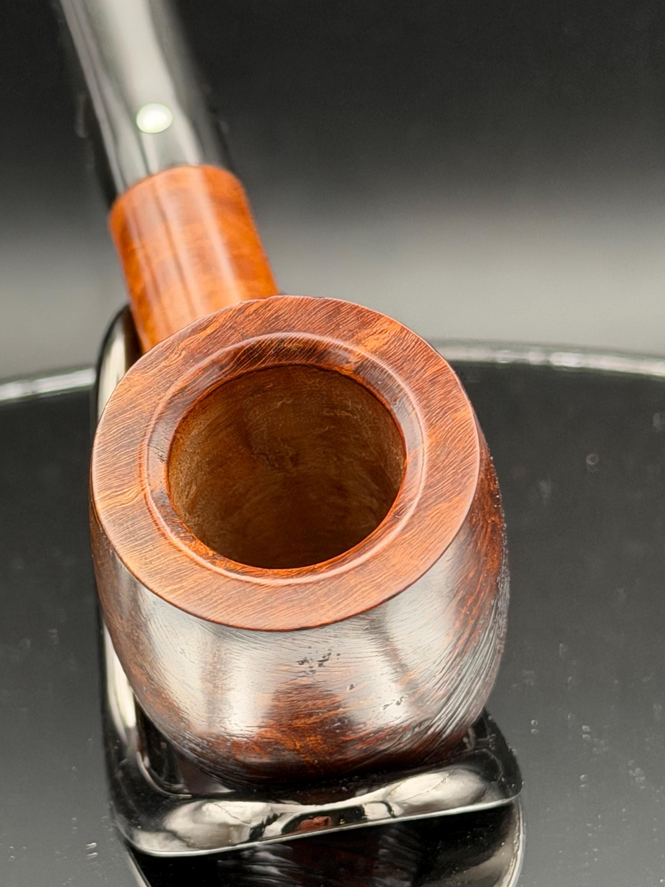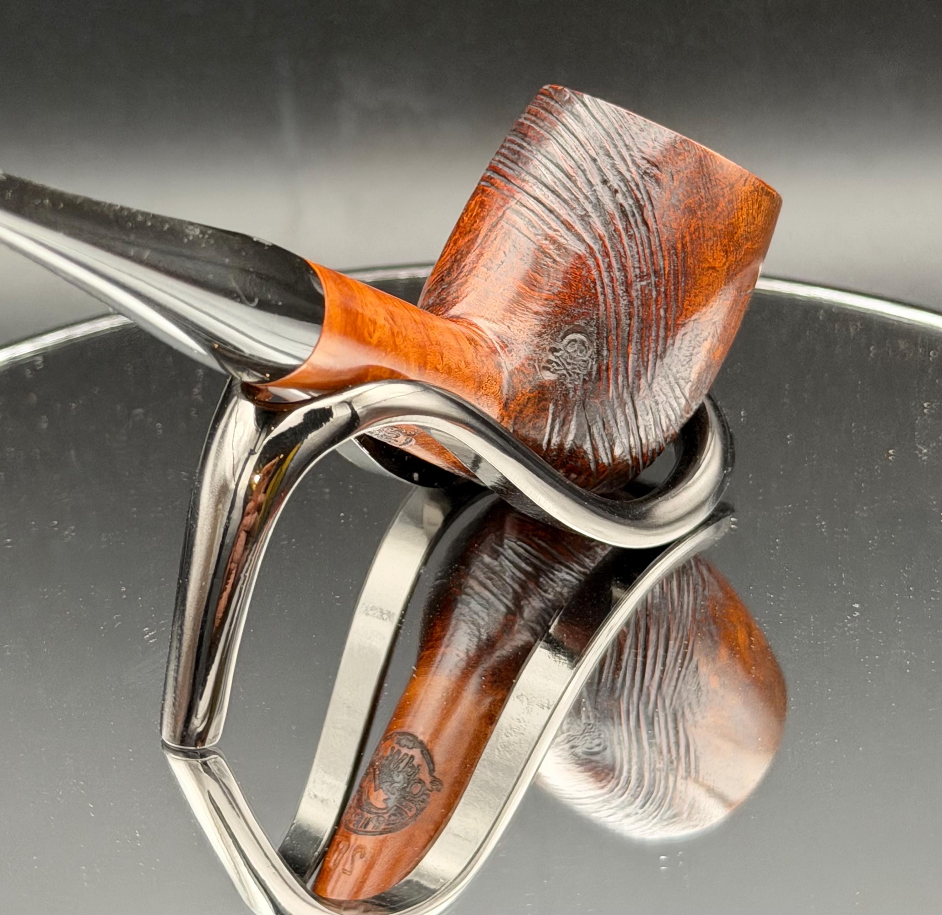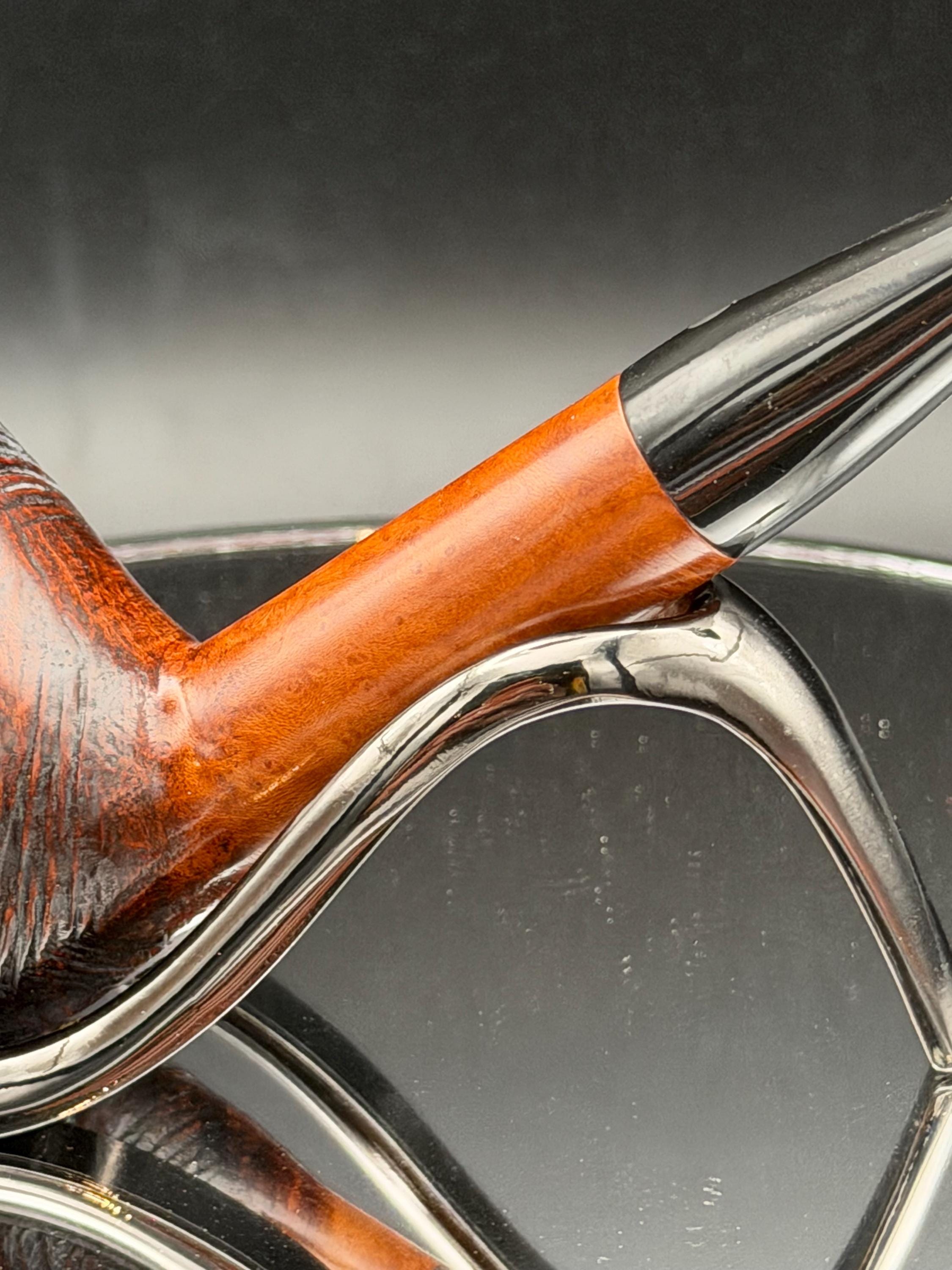 This is a handmade briar pipe that has been meticulously carved and rusticated . Vulcanite custom made stem. Non filtered. A very nice daily smoker.