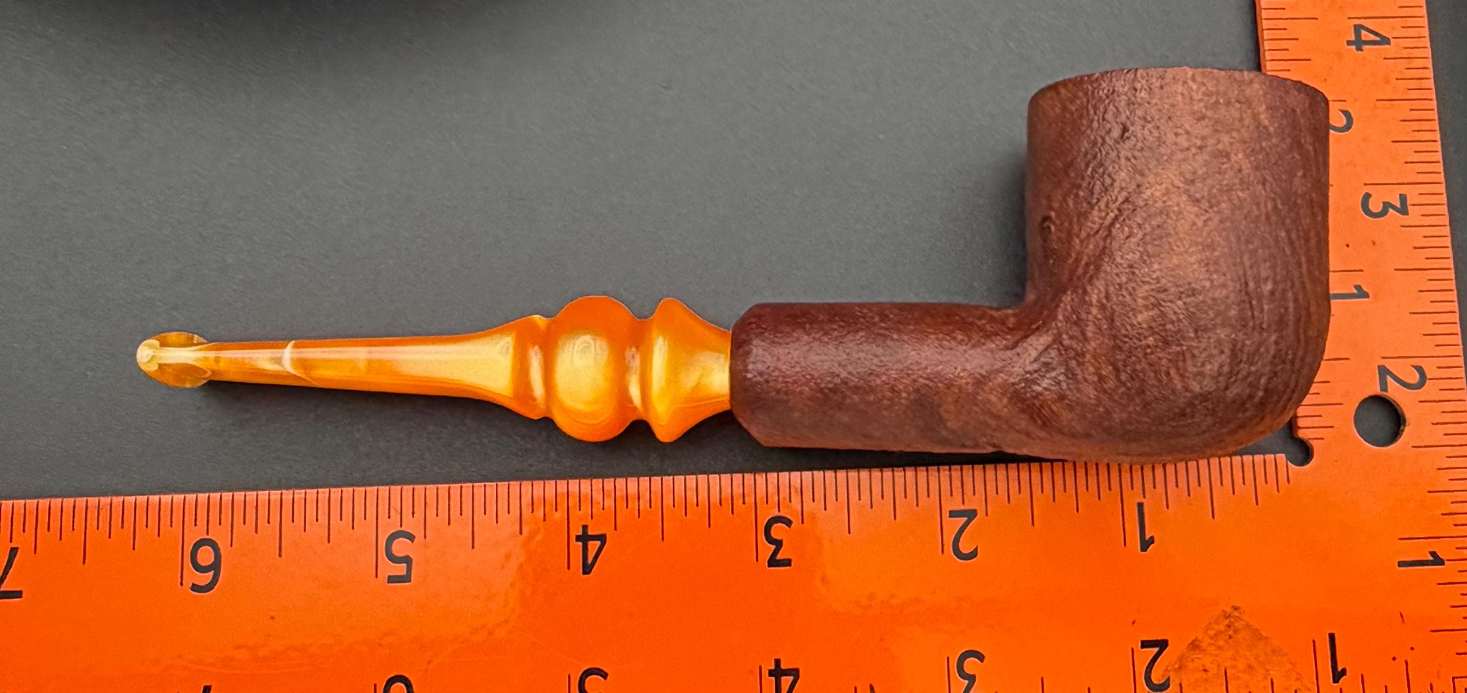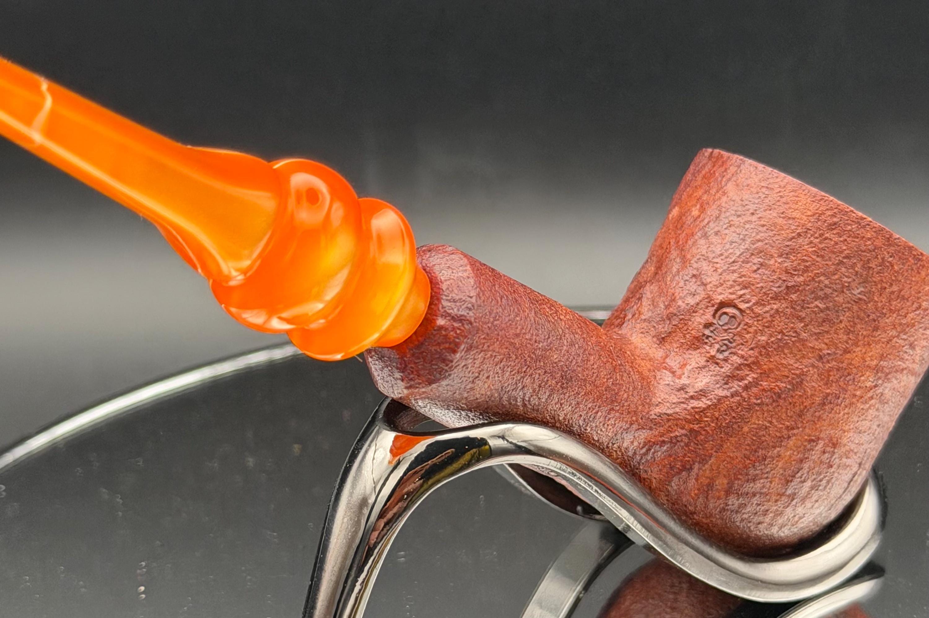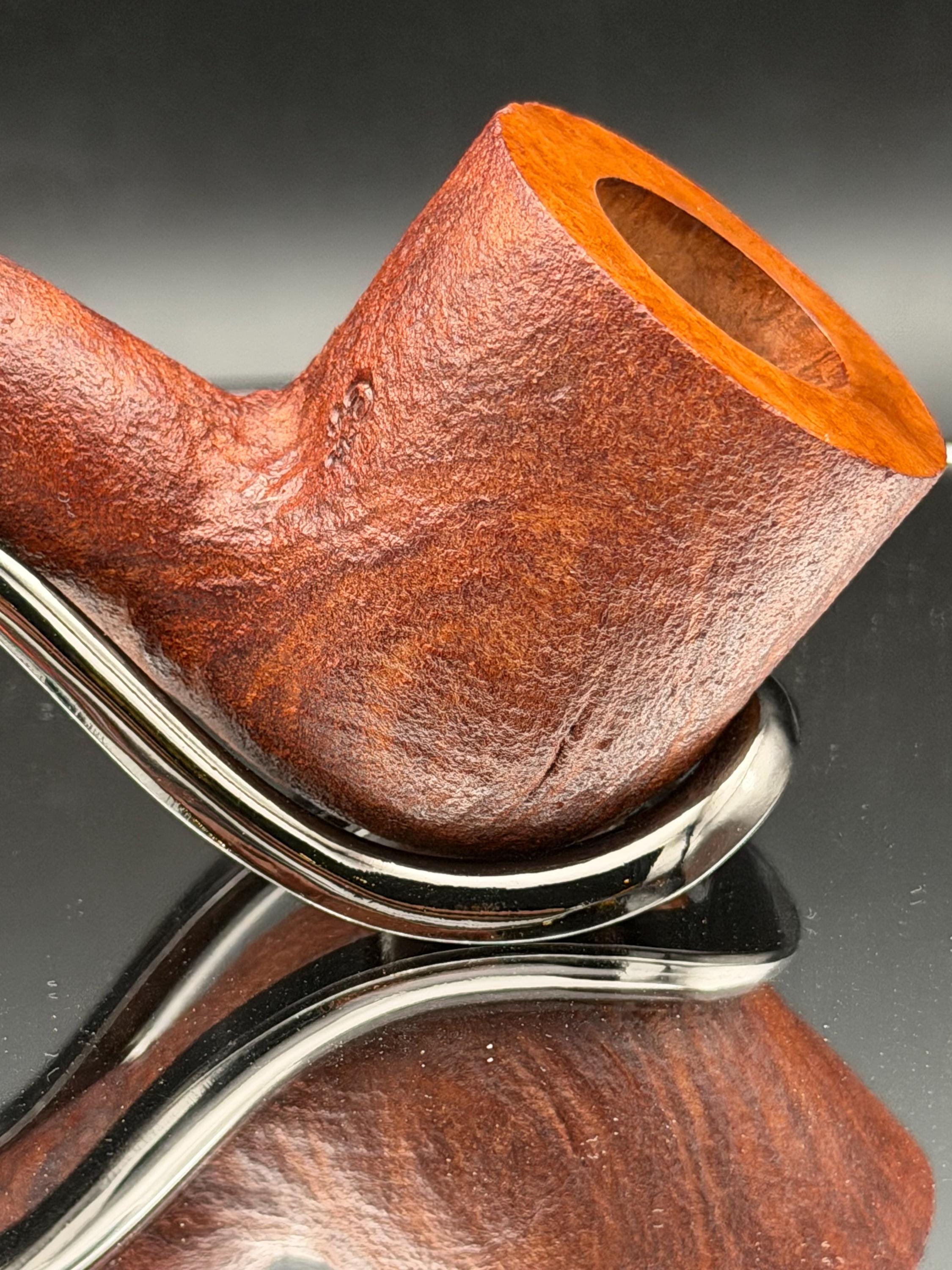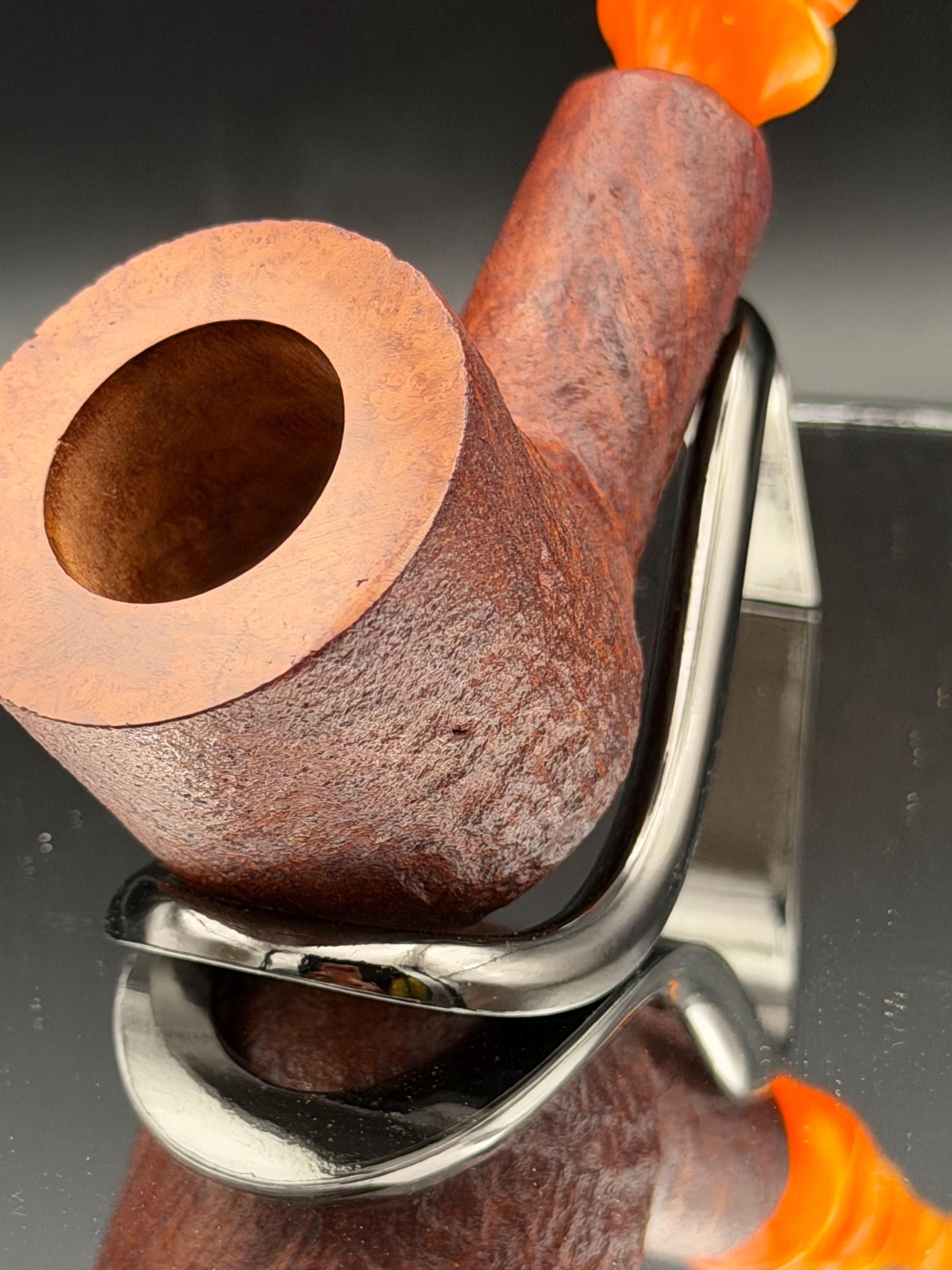 This is a handmade briar pipe that has been meticulously carved sandblasted and polished. An acrylic custom made stem. This one is non filtered. A very nice daily smoker.