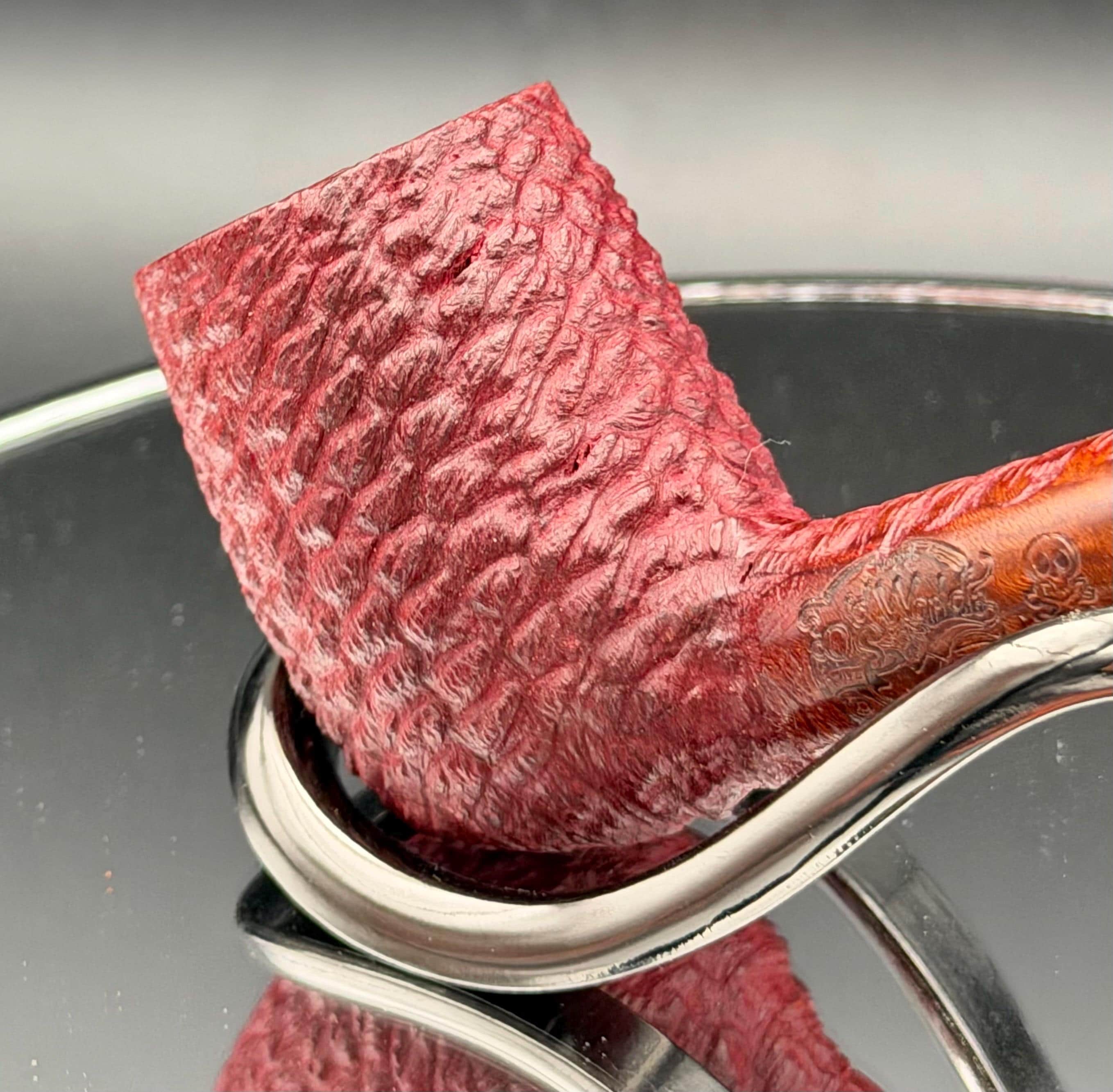 This is a handmade briar pipe that has been carved and polished. A nice custom acrylic stem has been built for this one. These are built to be beautiful but also for every day smoking. This is a smaller pipe perfect for the pocket. This is a part of my affordable cornbriar series.