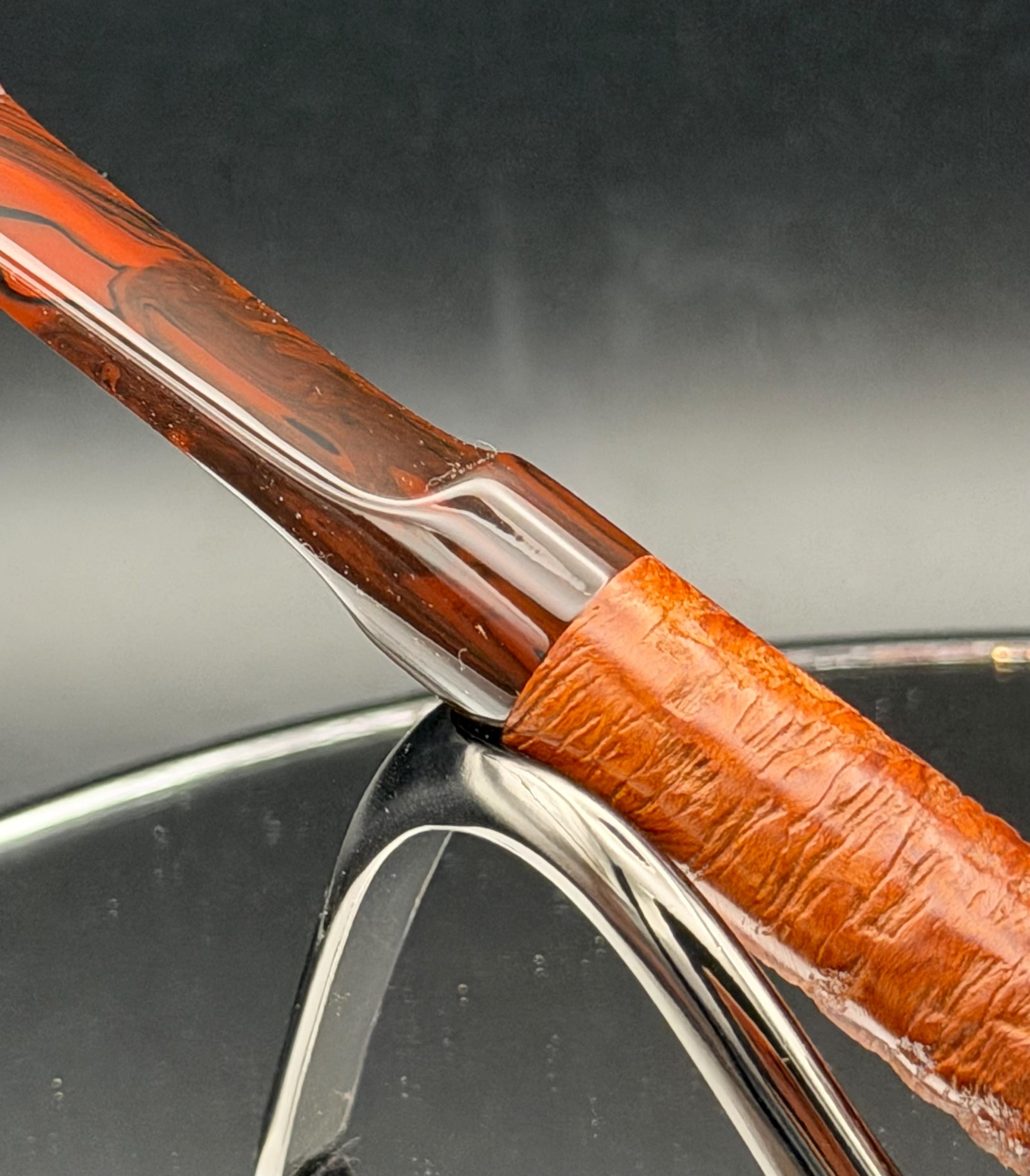 This is a handmade briar pipe that has been carved and polished. A nice custom acrylic stem has been built for this one. These are built to be beautiful but also for every day smoking. This is a smaller pipe perfect for the pocket. This is a part of my affordable cornbriar series.