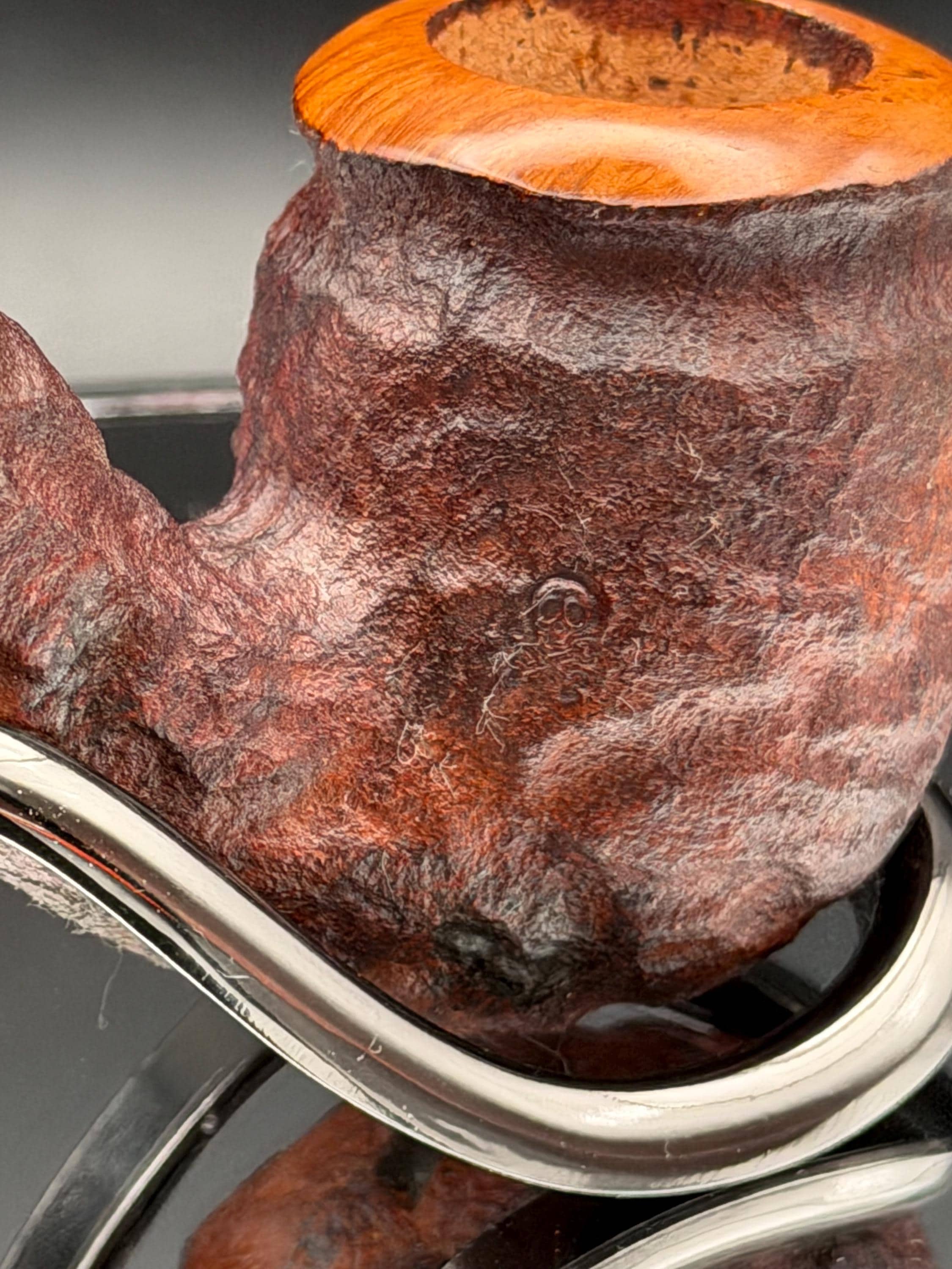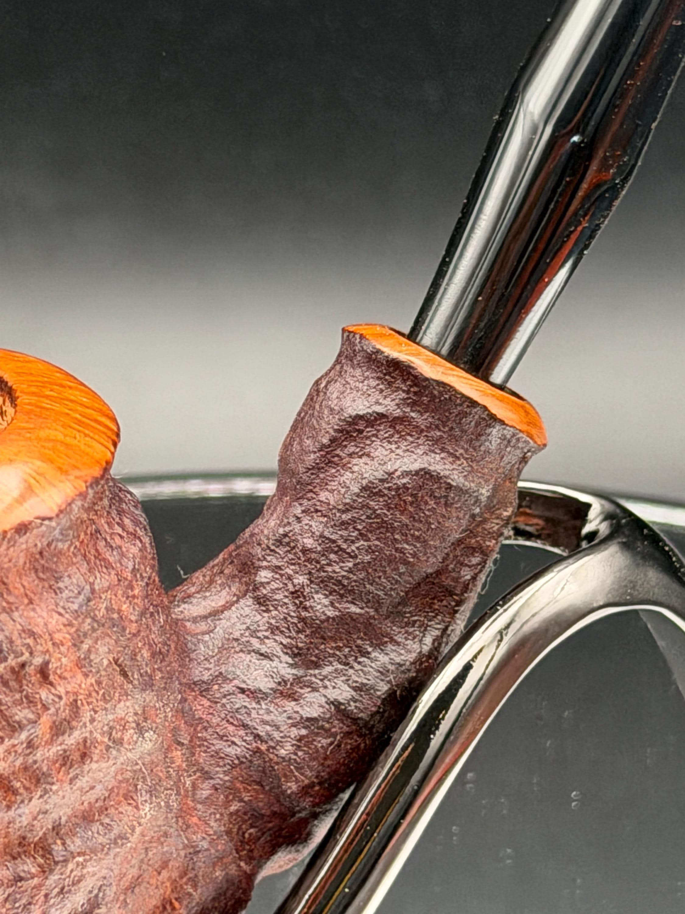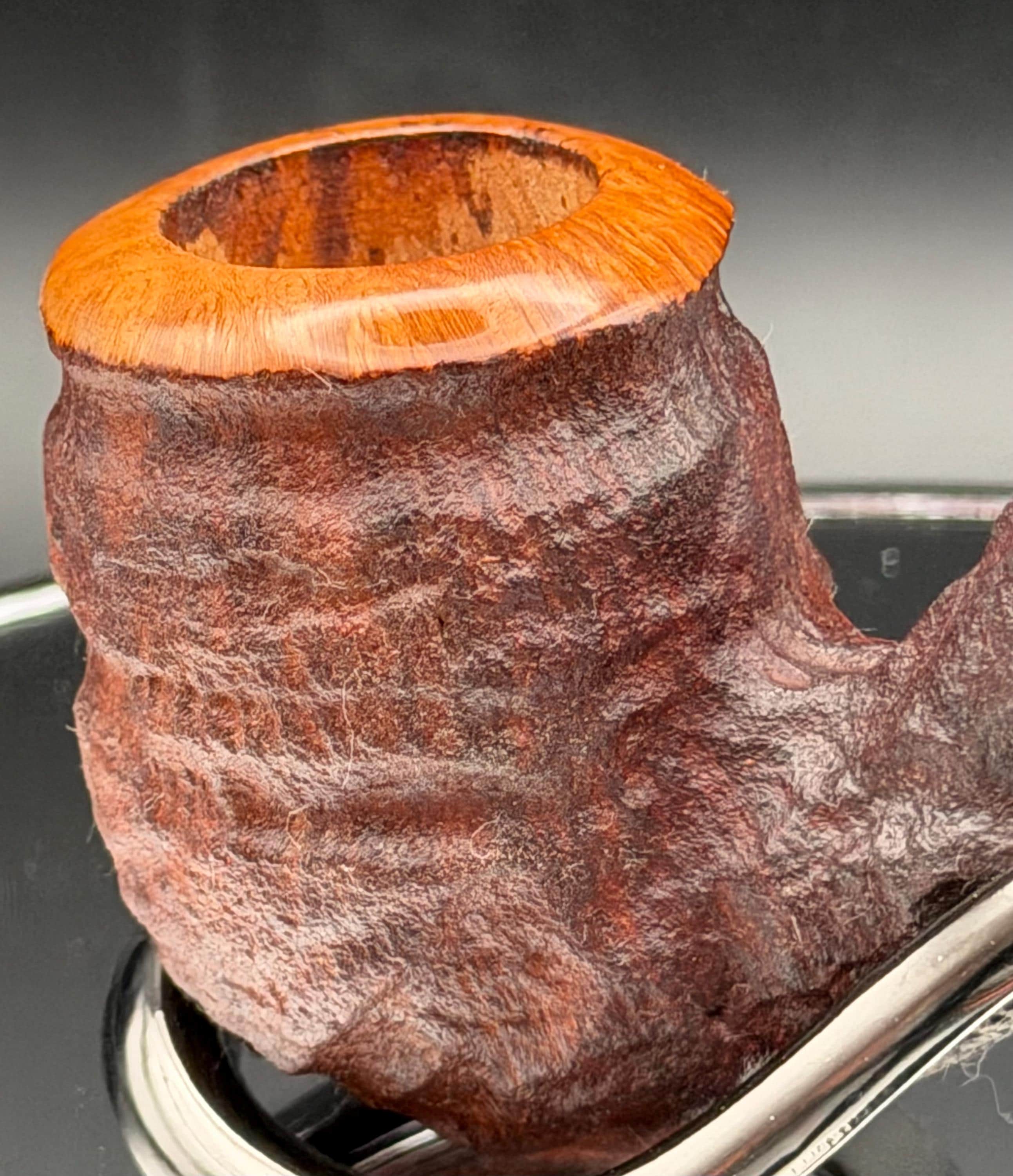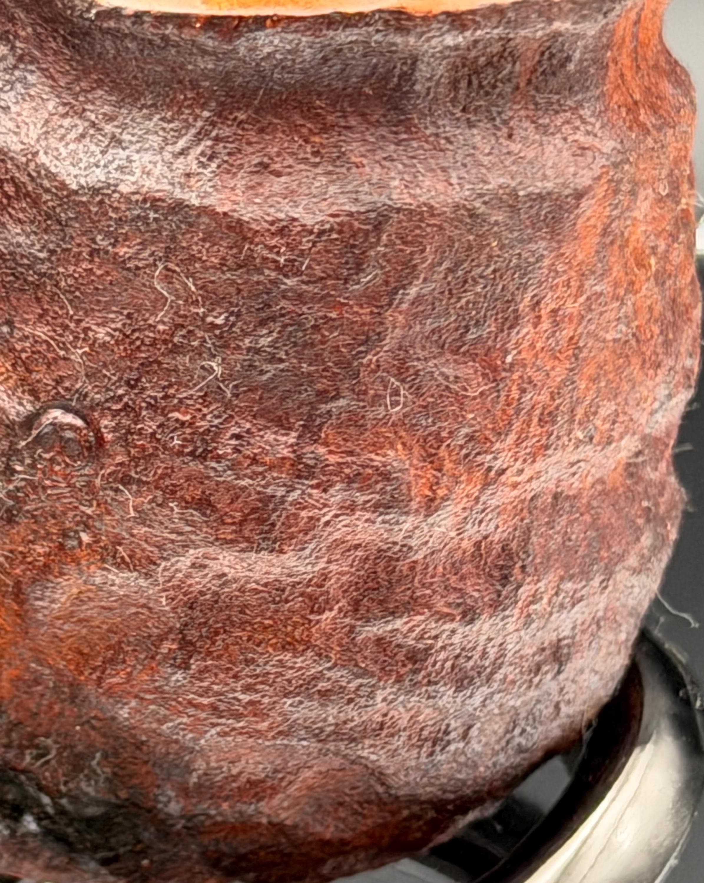 This is a handmade rustic dark brown colored briar pipe that has been meticulously carved and polished . A vulcanite stem was formed and polished to finish it off. Non filtered. A very nice daily smoker.