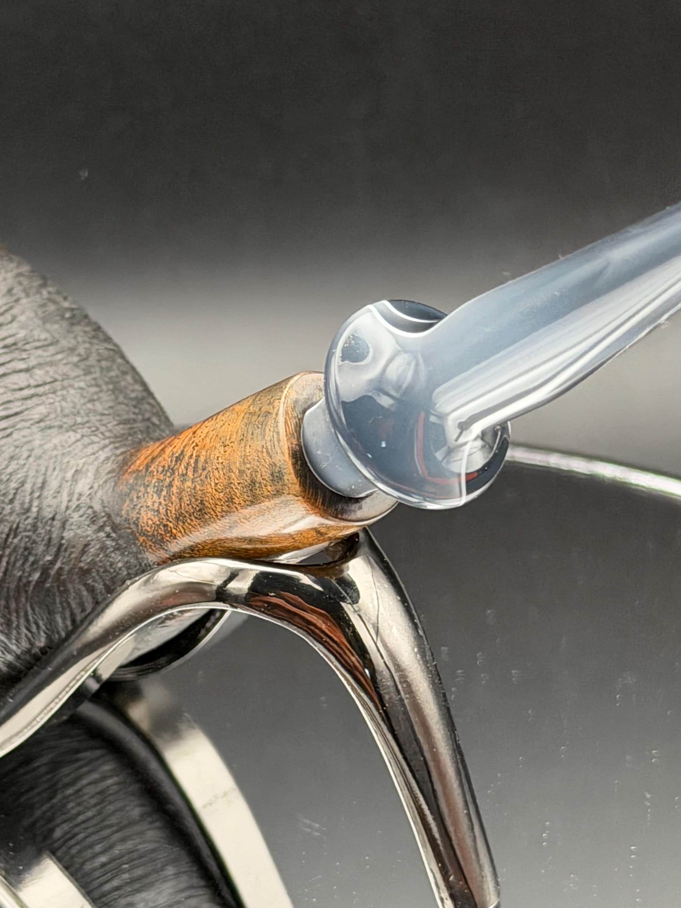 This is a handmade briar pipe that has been carved and polished. A nice custom acrylic stem has been built for this one. These are built to be beautiful but also for every day smoking. This is a medium to larger pipe perfect for the pocket.