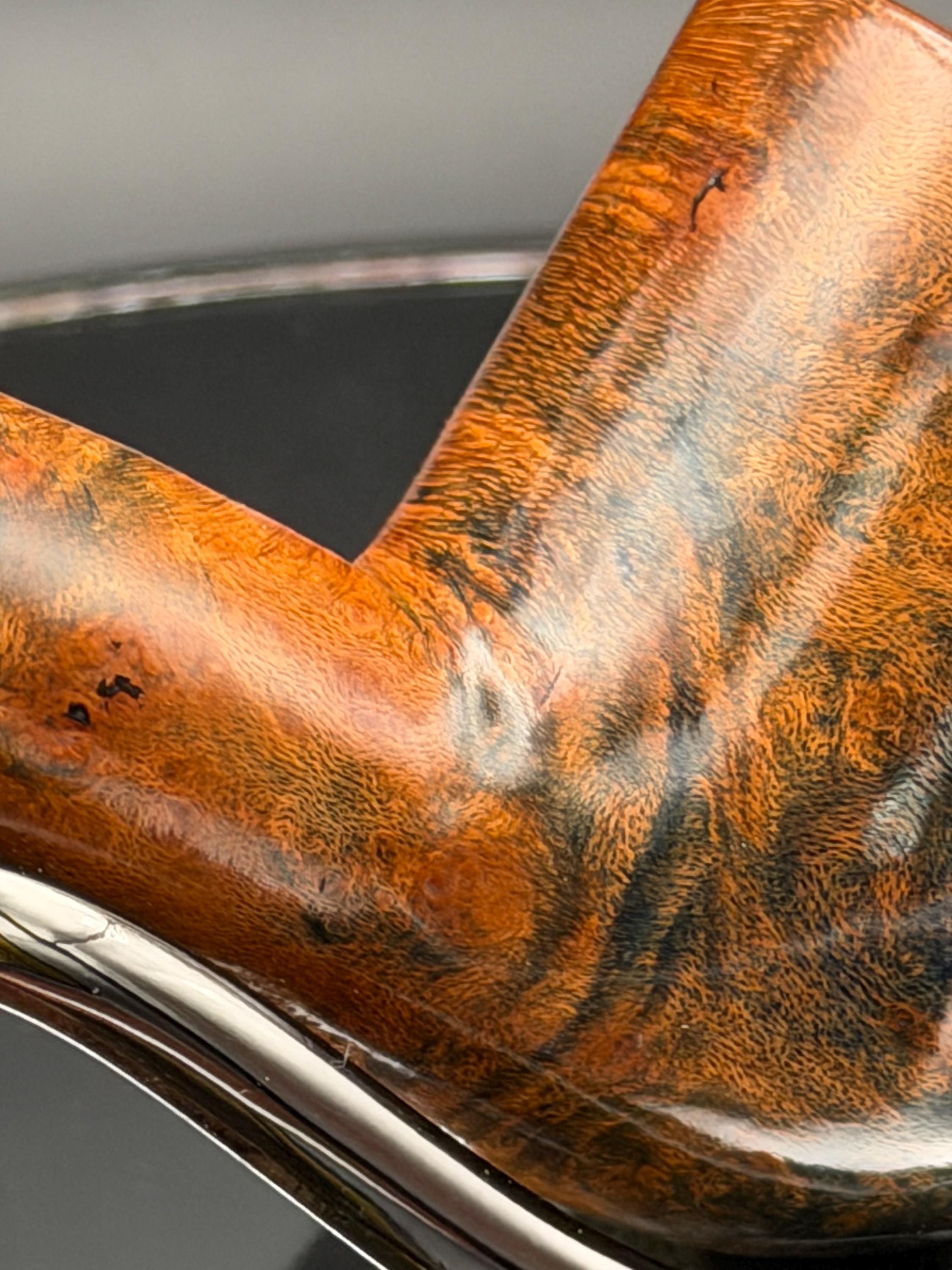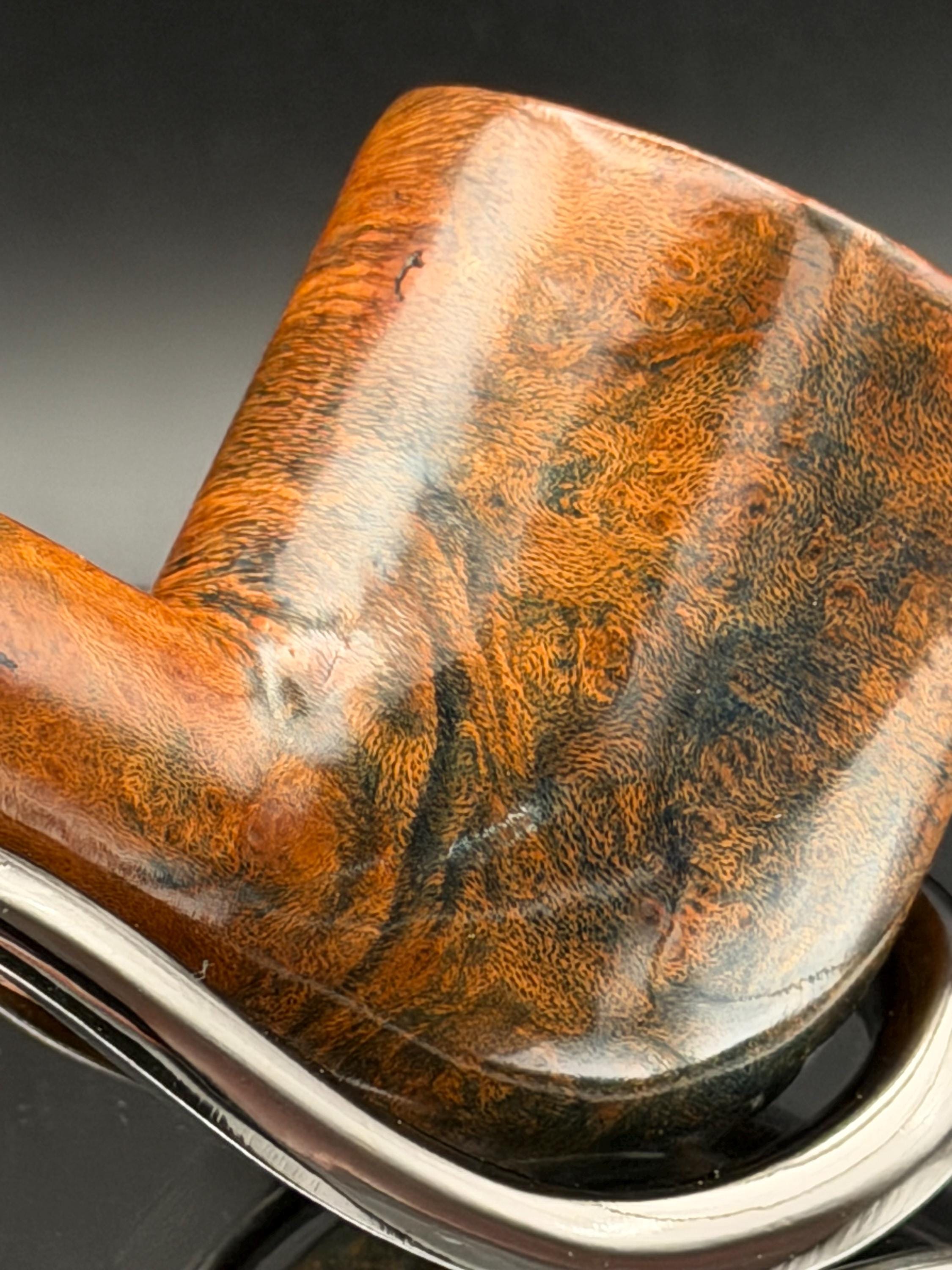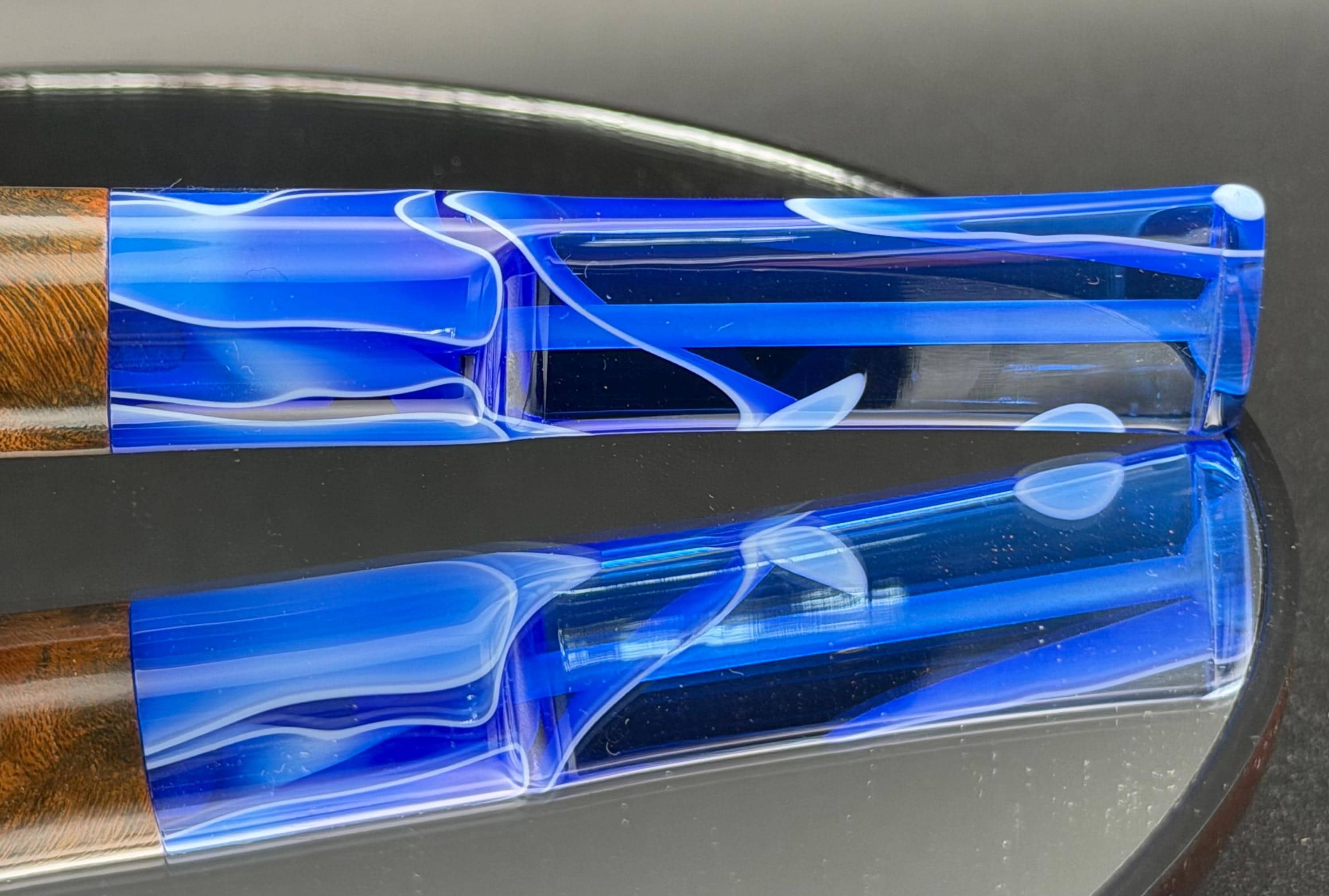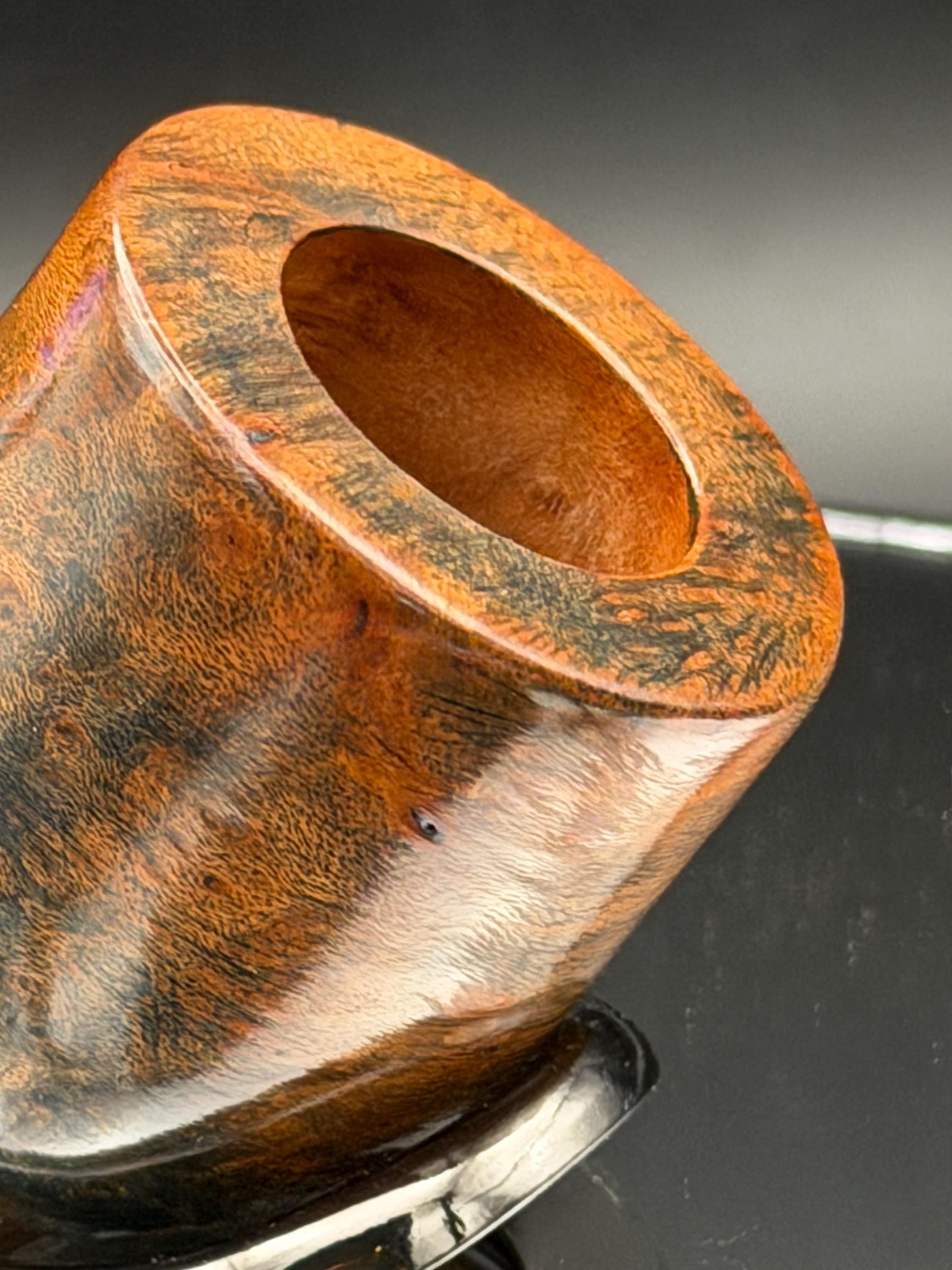 This is a handmade hint of blue colored briar pipe that has been carved and polished by myself . An acrylic stem was formed and polished to finish it off. filtered. A very nice daily smoker. 7/8x1.5 chamber.