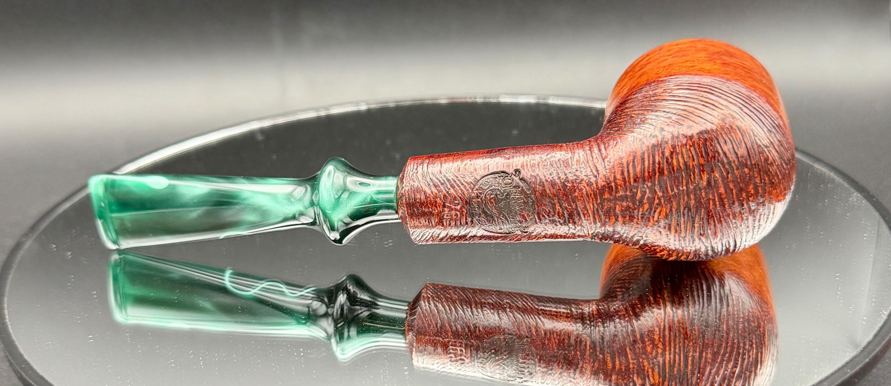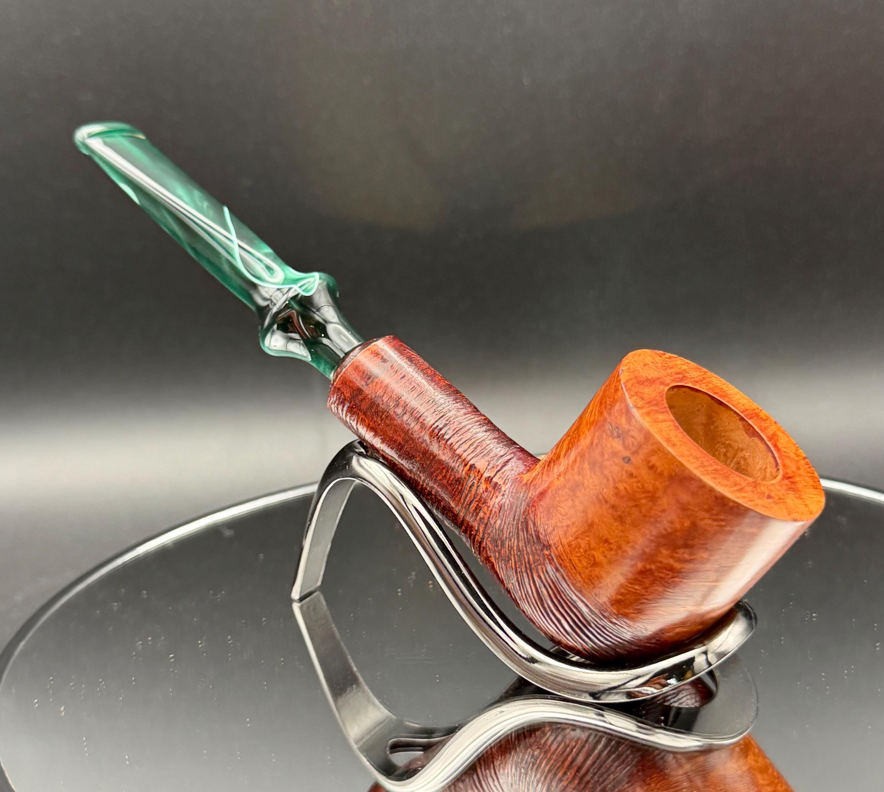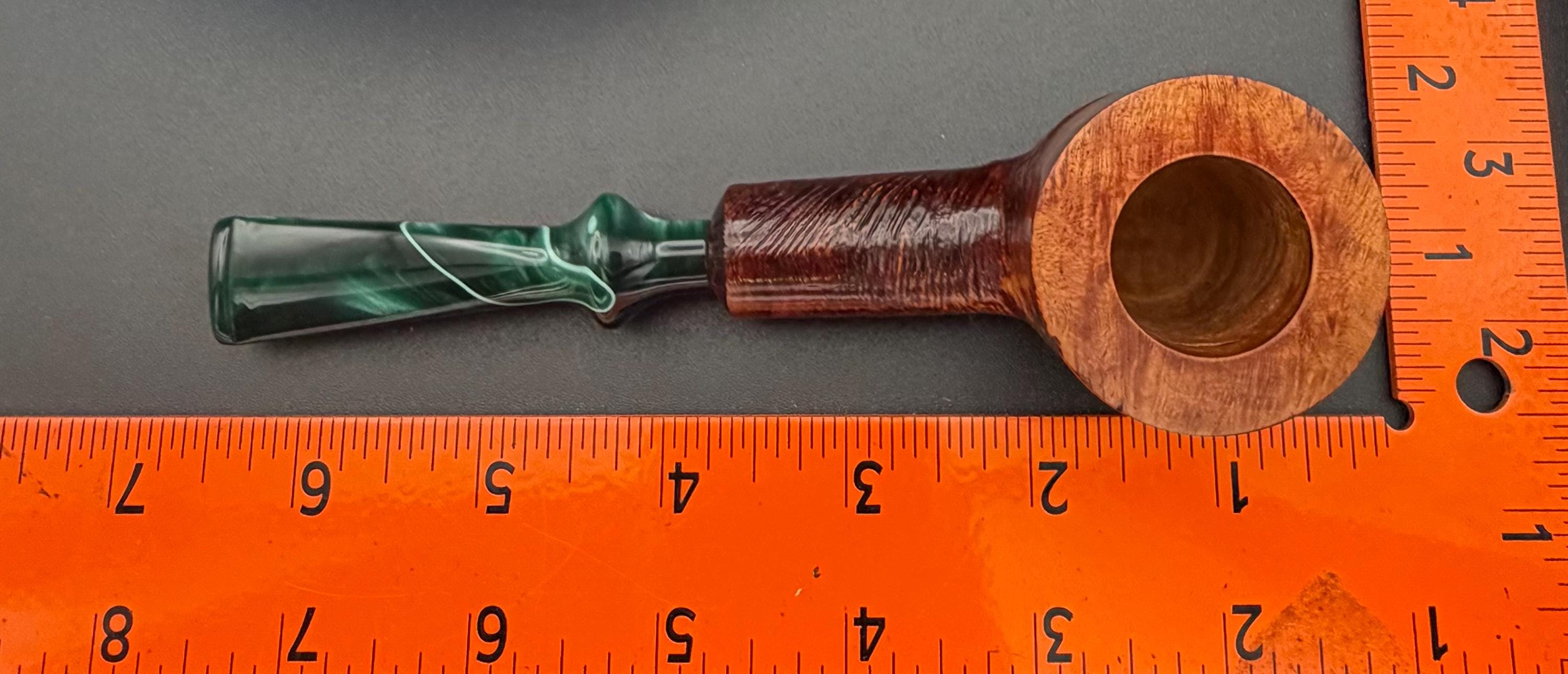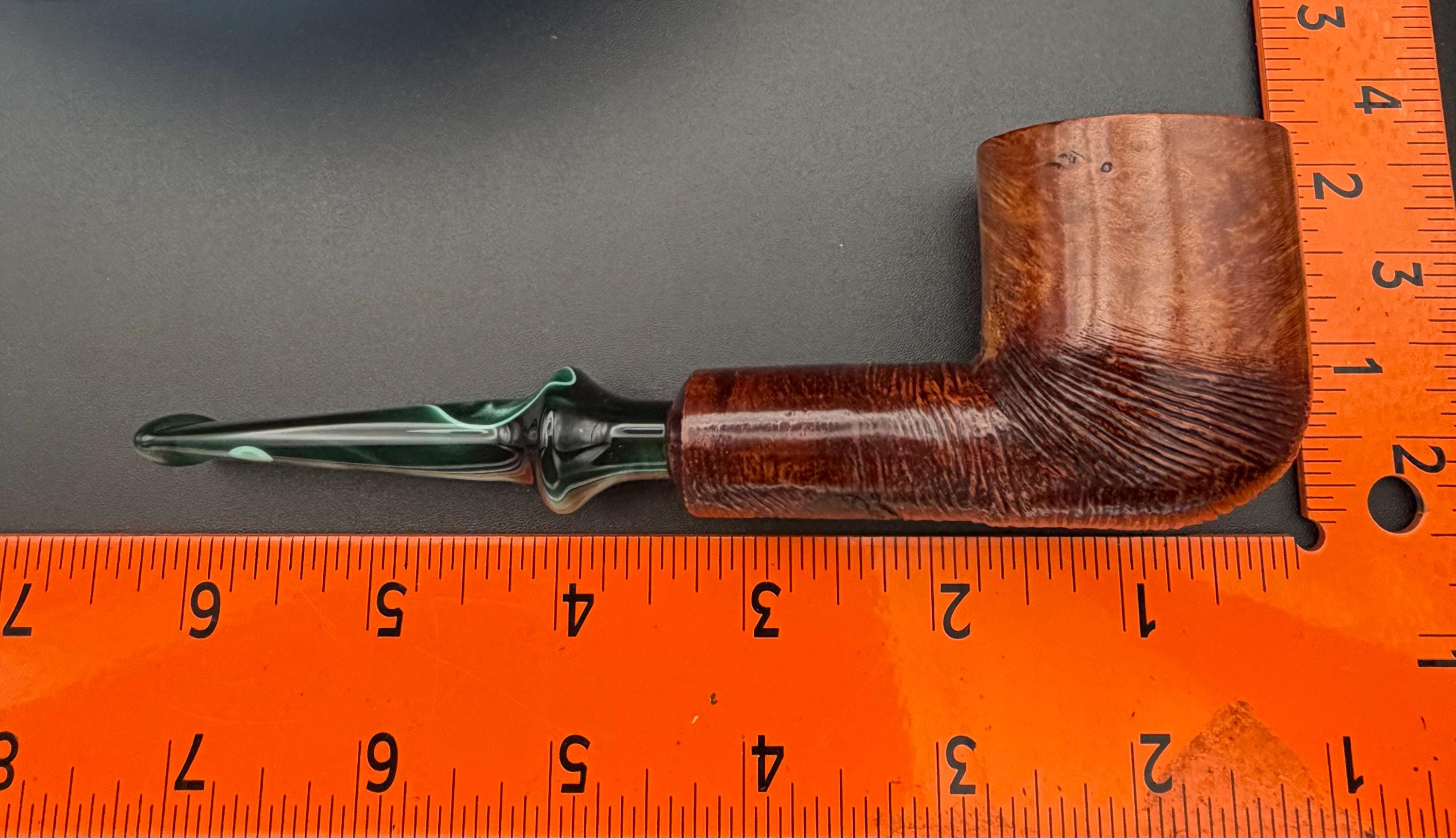 This is a handmade briar pipe that has been hand sanded, carved and polished/ partially rusticated .A nice Acrylic custom made stem was machined to fit perfectly . Non filtered. A very nice daily smoker. 7/8”x1.5” bowl