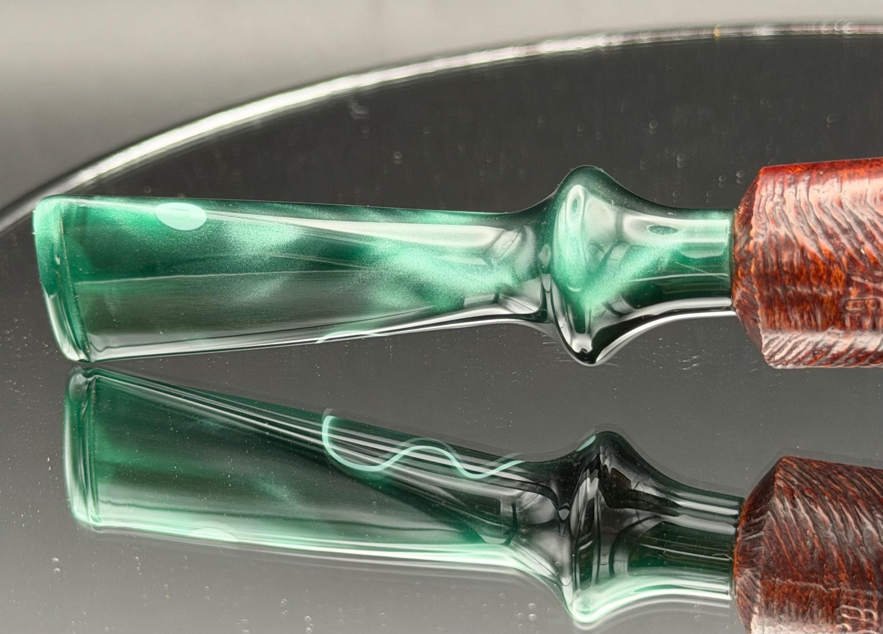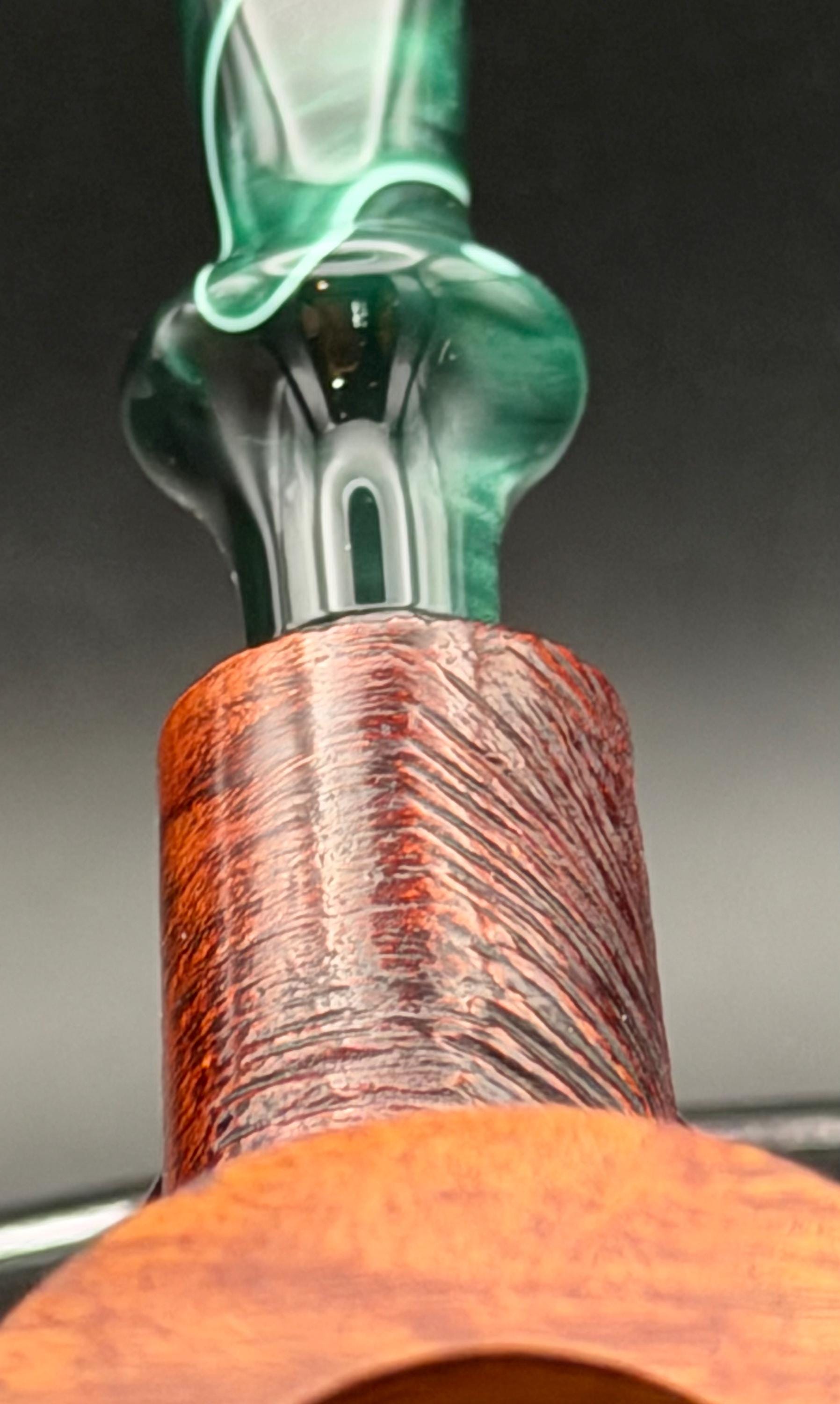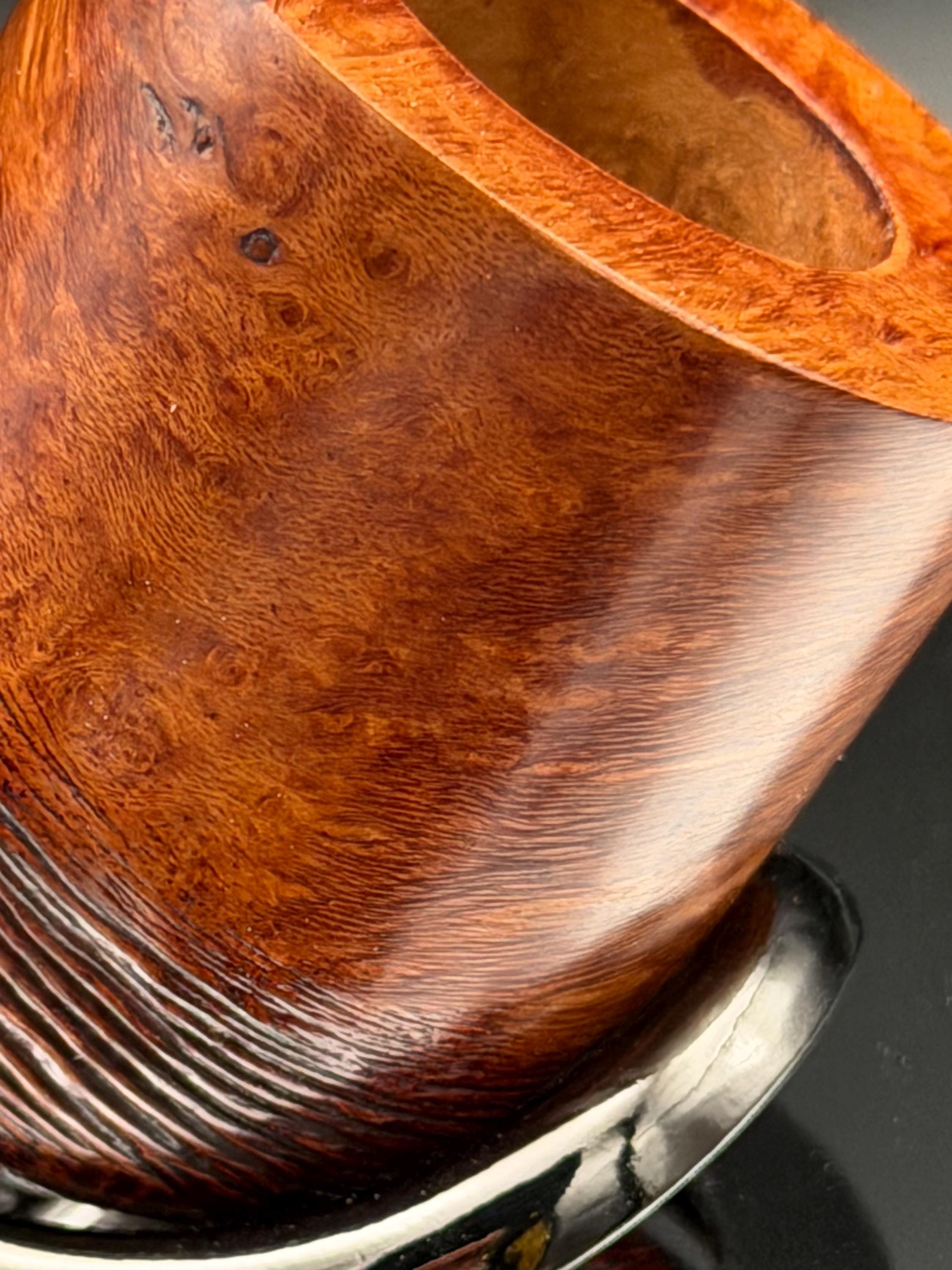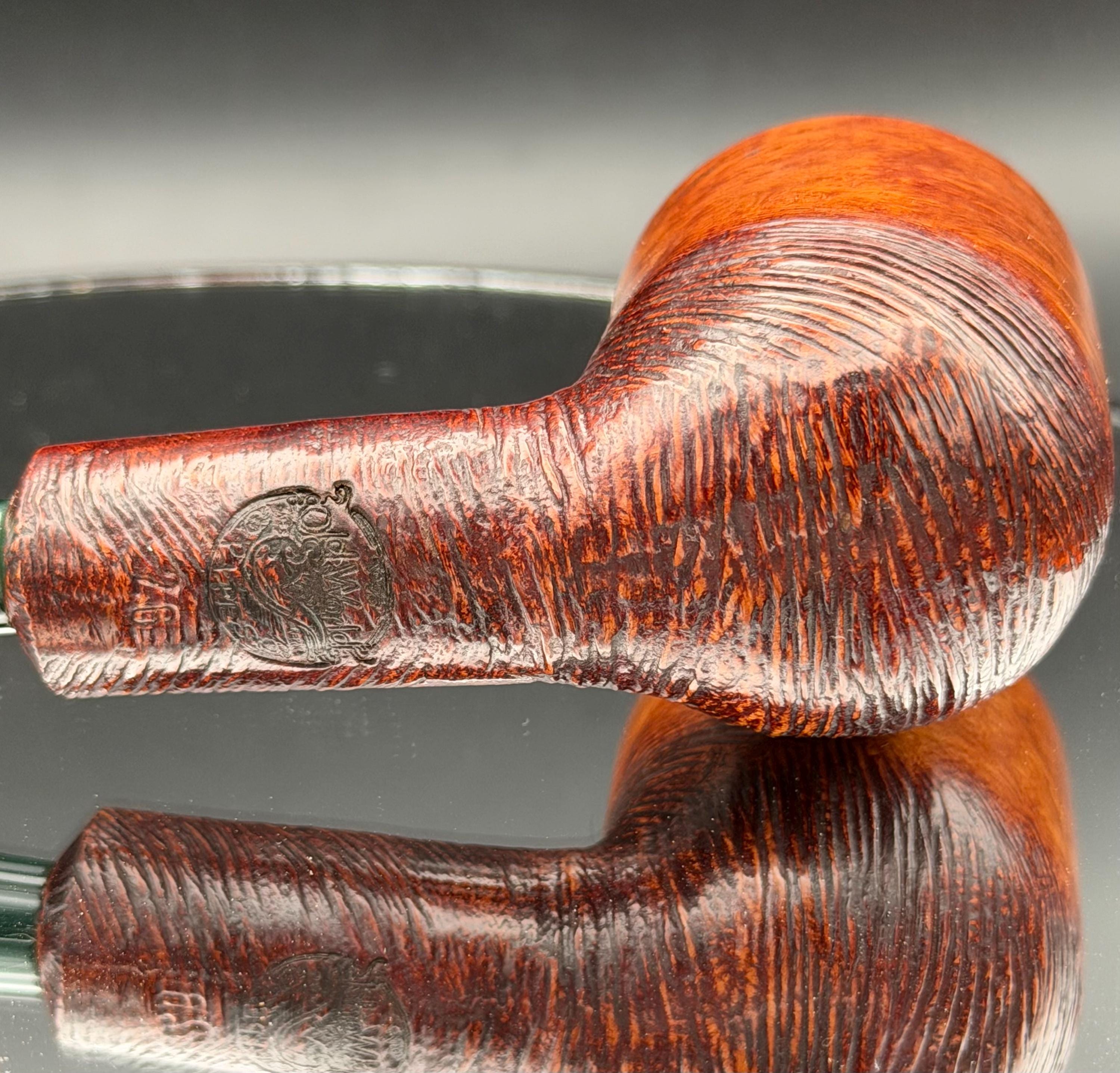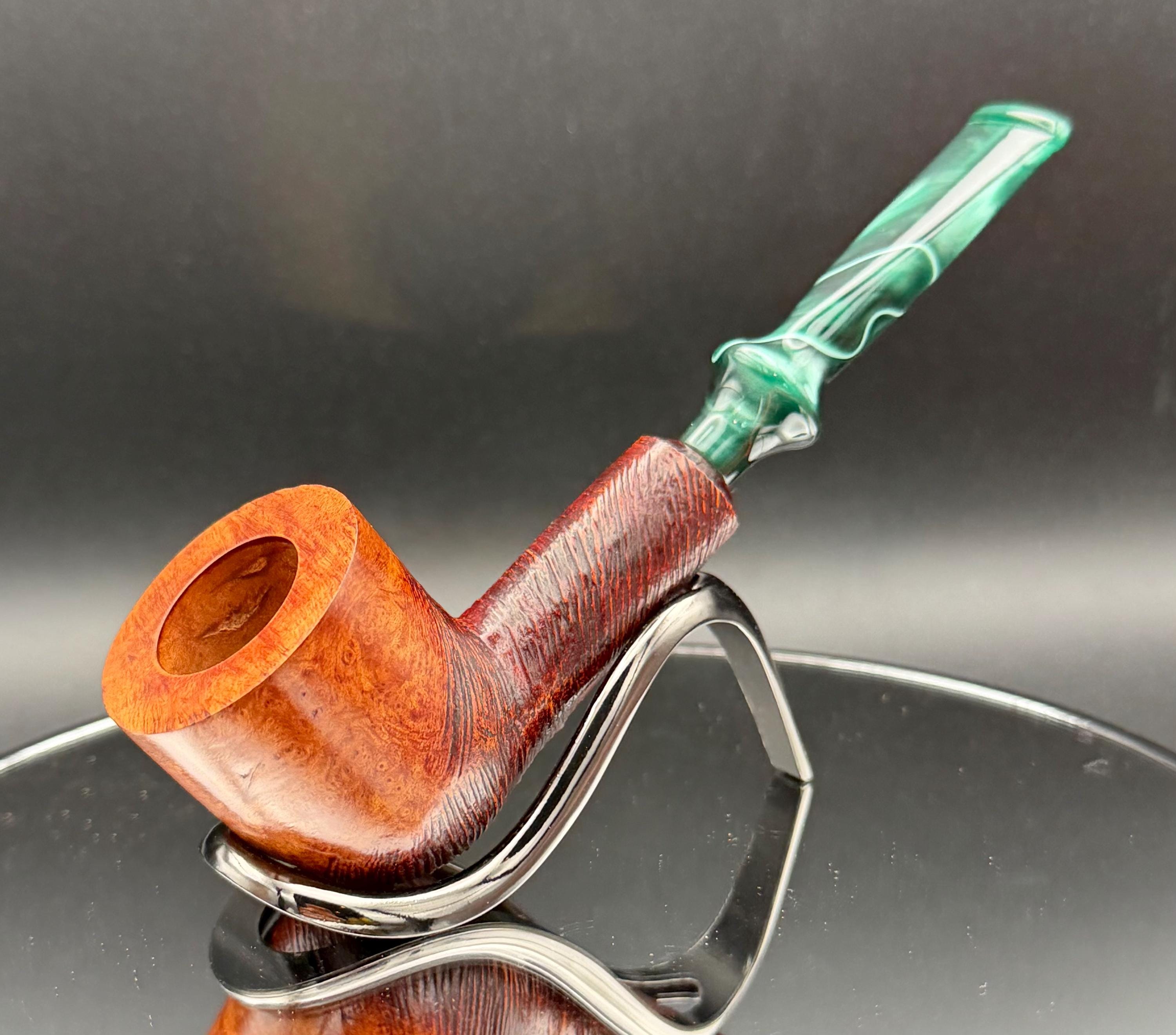 This is a handmade briar pipe that has been hand sanded, carved and polished/ partially rusticated .A nice Acrylic custom made stem was machined to fit perfectly . Non filtered. A very nice daily smoker. 7/8”x1.5” bowl