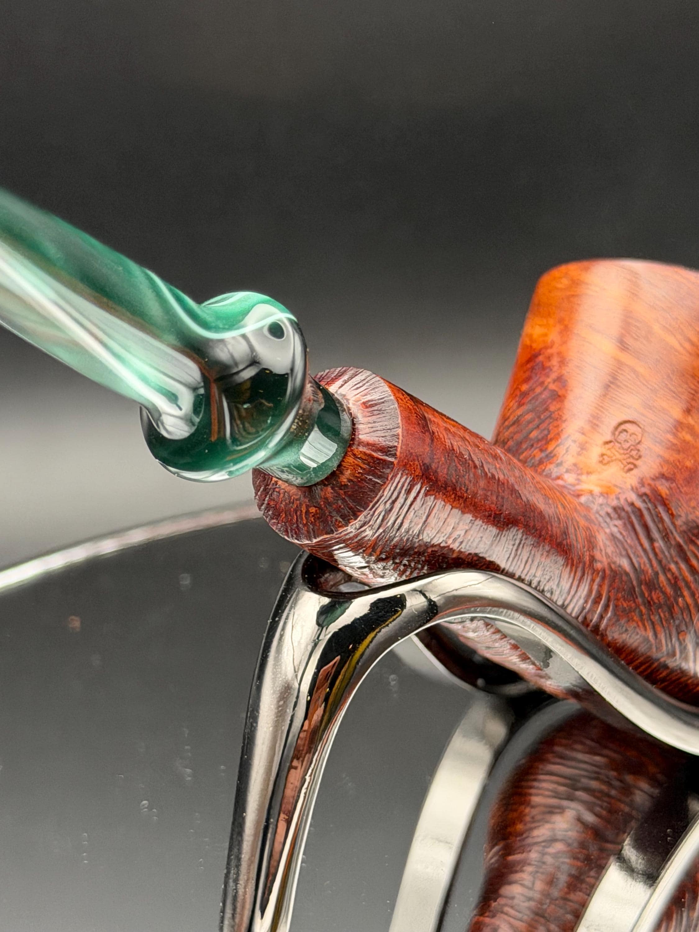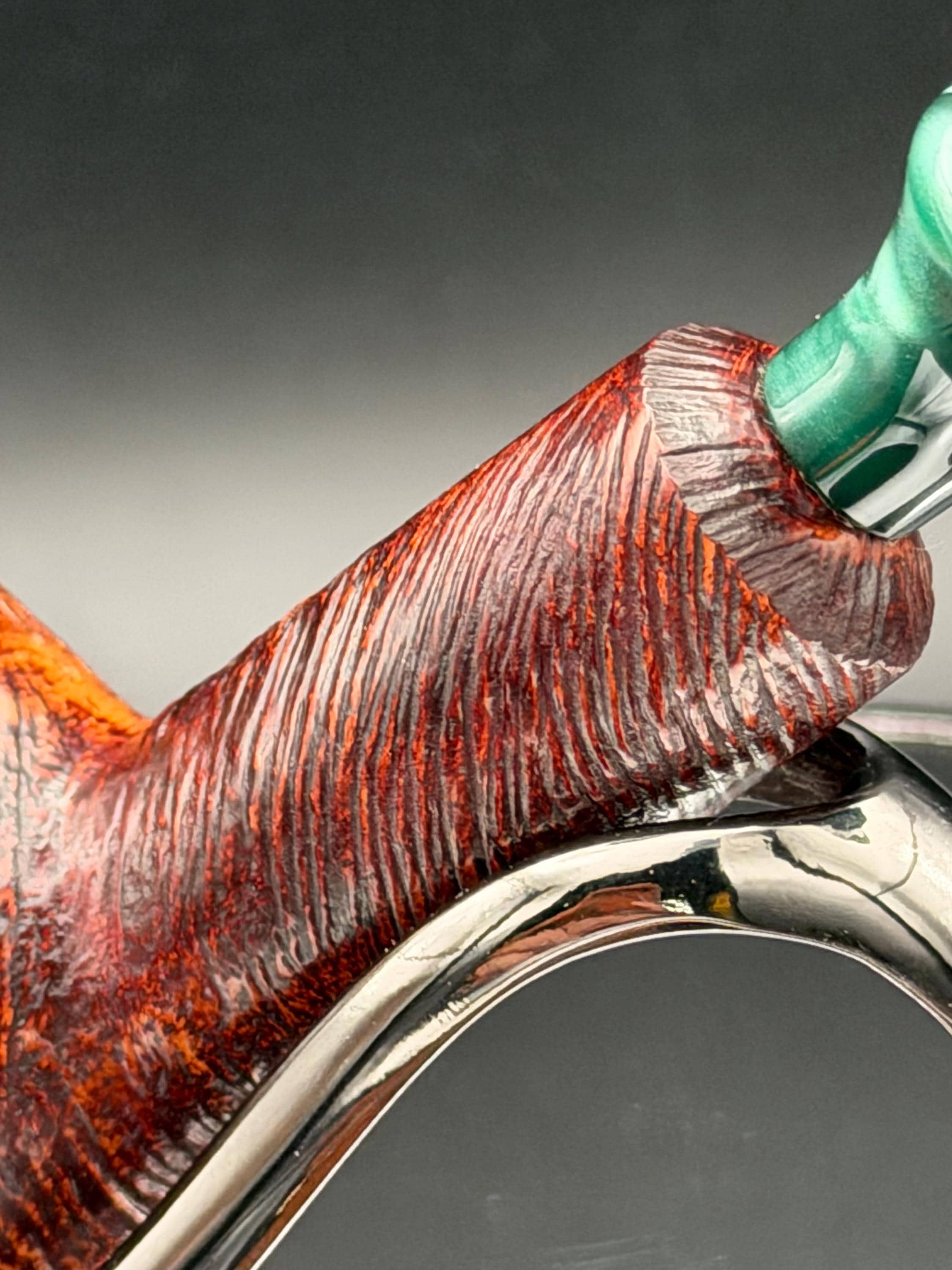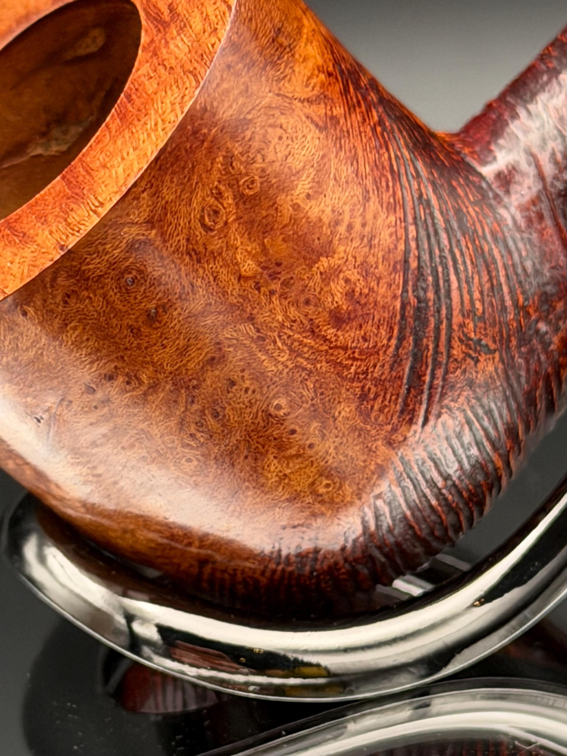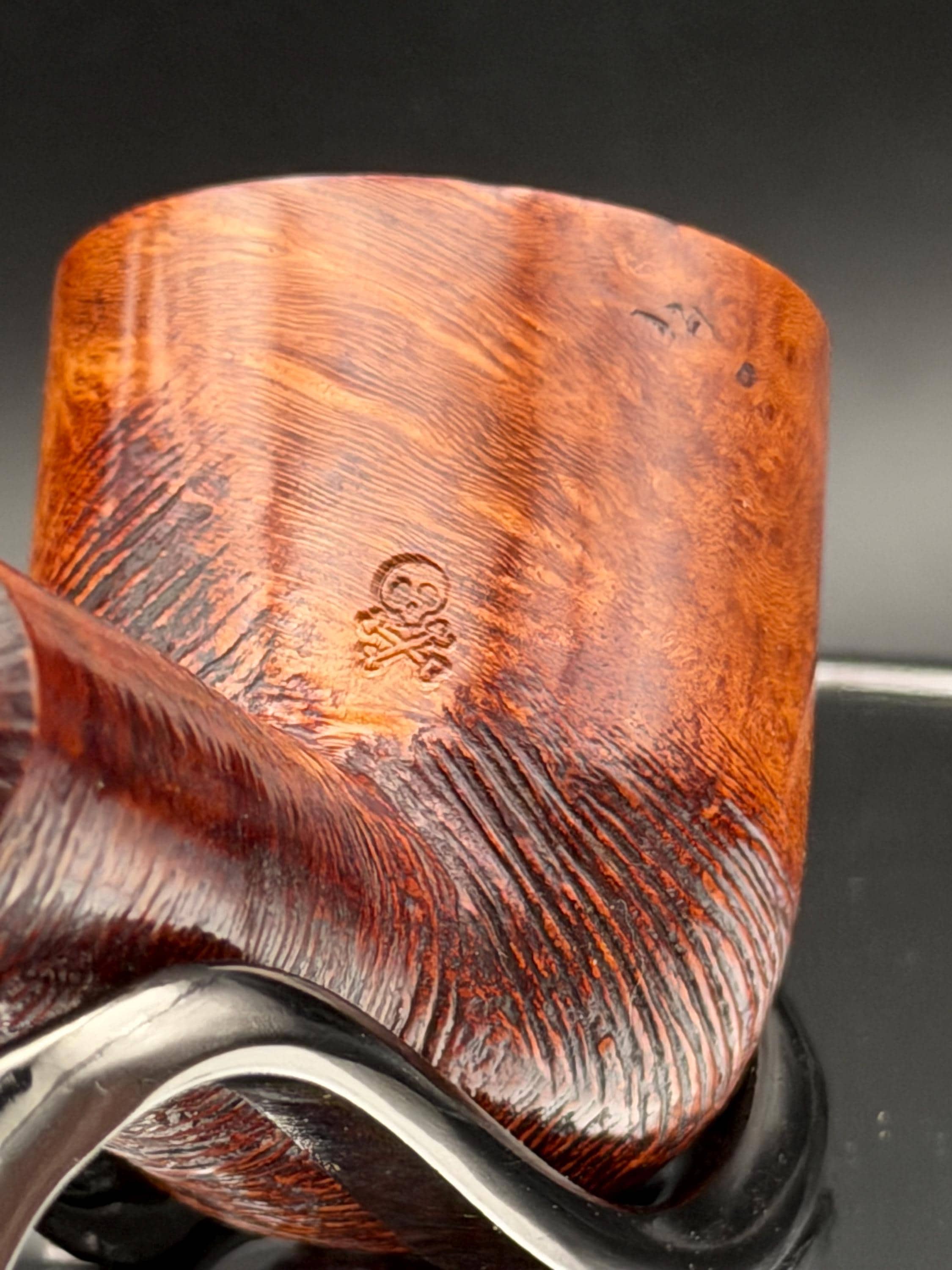 This is a handmade briar pipe that has been hand sanded, carved and polished/ partially rusticated .A nice Acrylic custom made stem was machined to fit perfectly . Non filtered. A very nice daily smoker. 7/8”x1.5” bowl