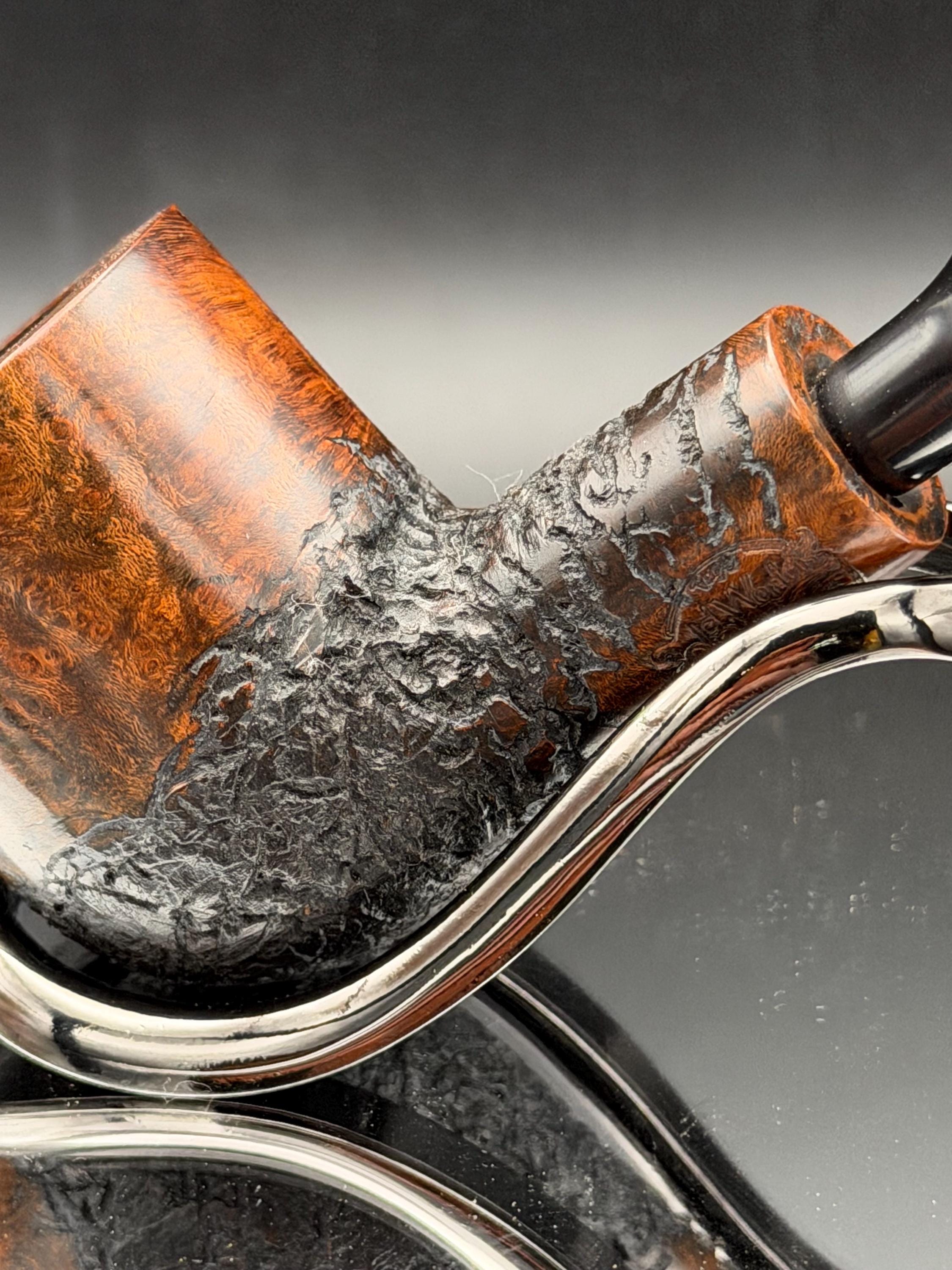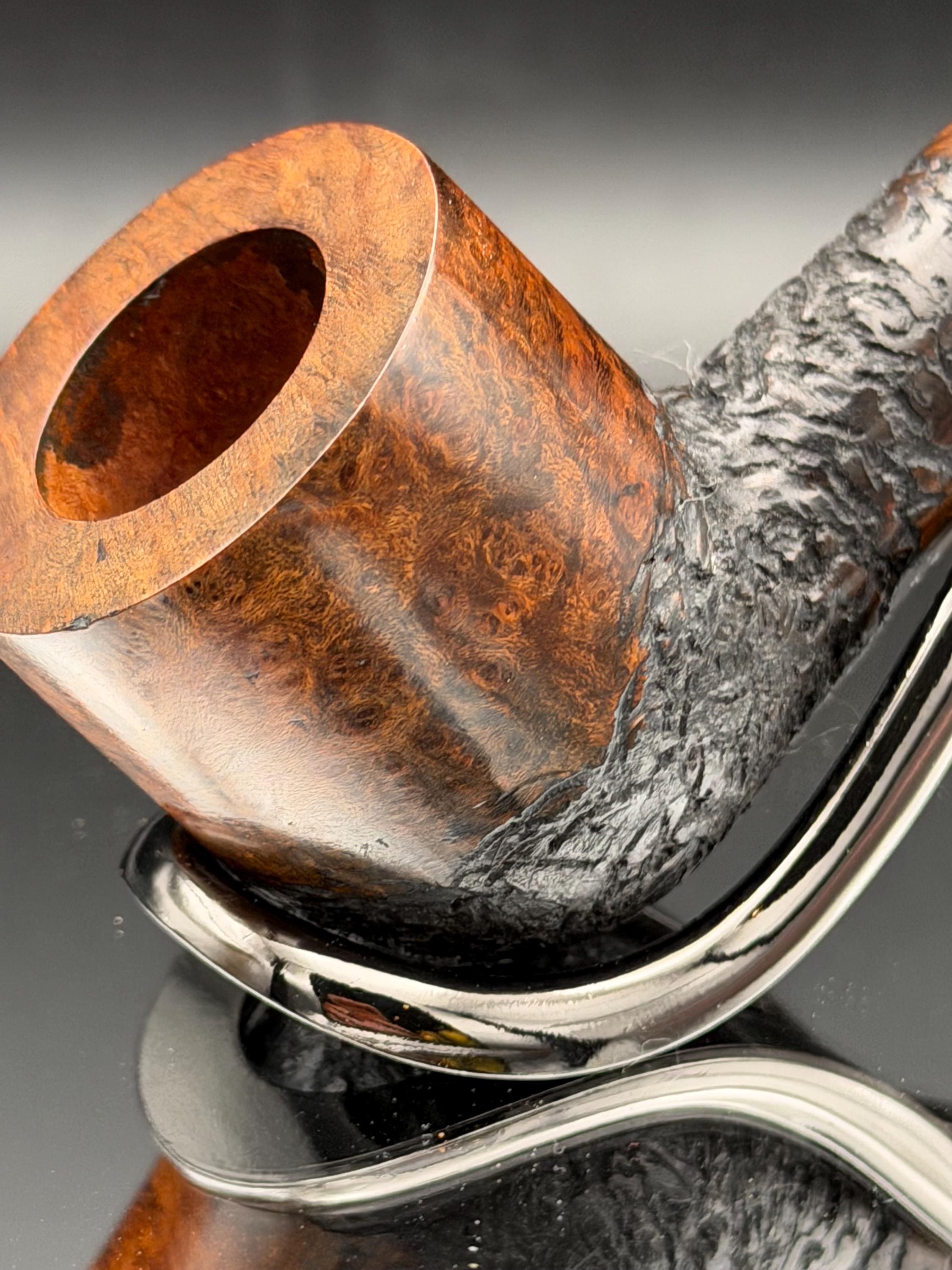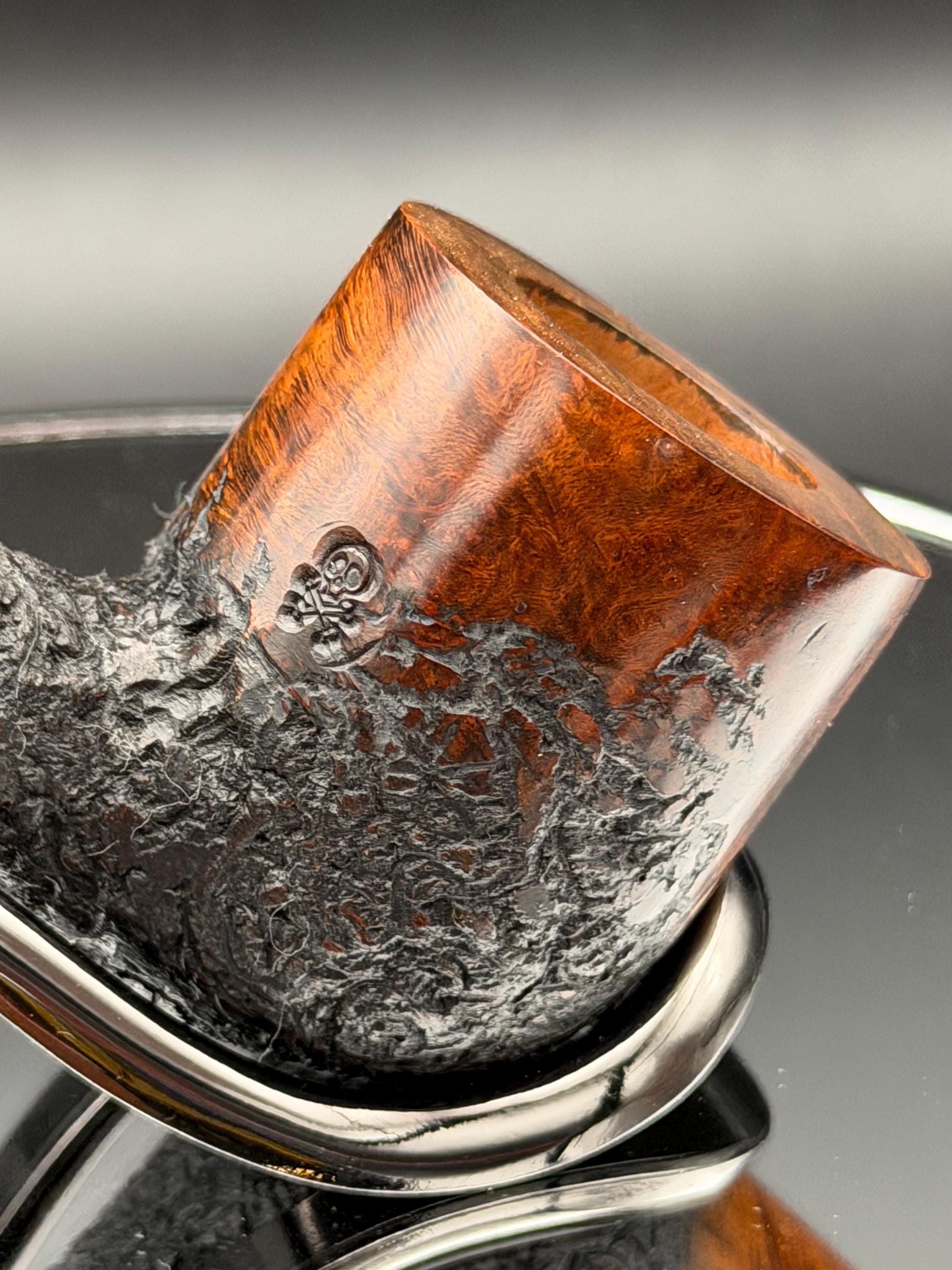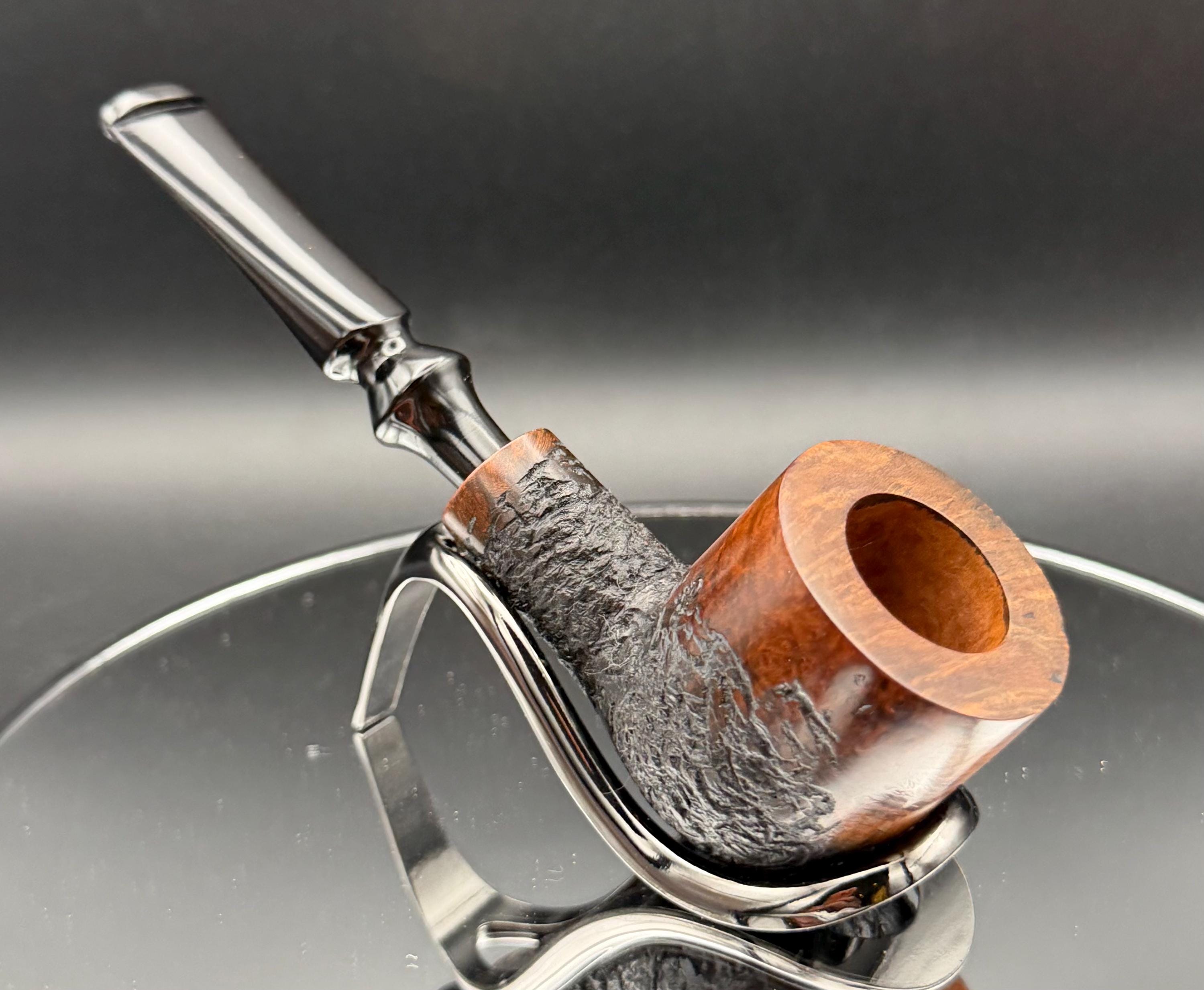 This is a handmade briar pipe that has been carved and polished right here at my shop. A nice custom vulcanite stem has been built for this one. These are built to be beautiful but also for every day smoking. This is a medium pipe perfect for the pocket. This is a part of my rustic series. 7/8x1.5†bowl for a nice long smoke!