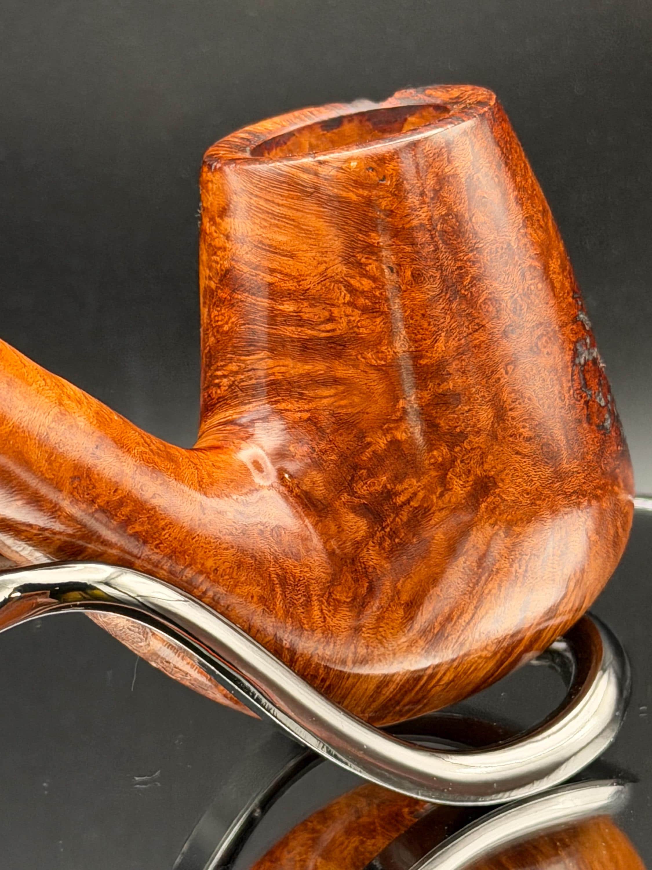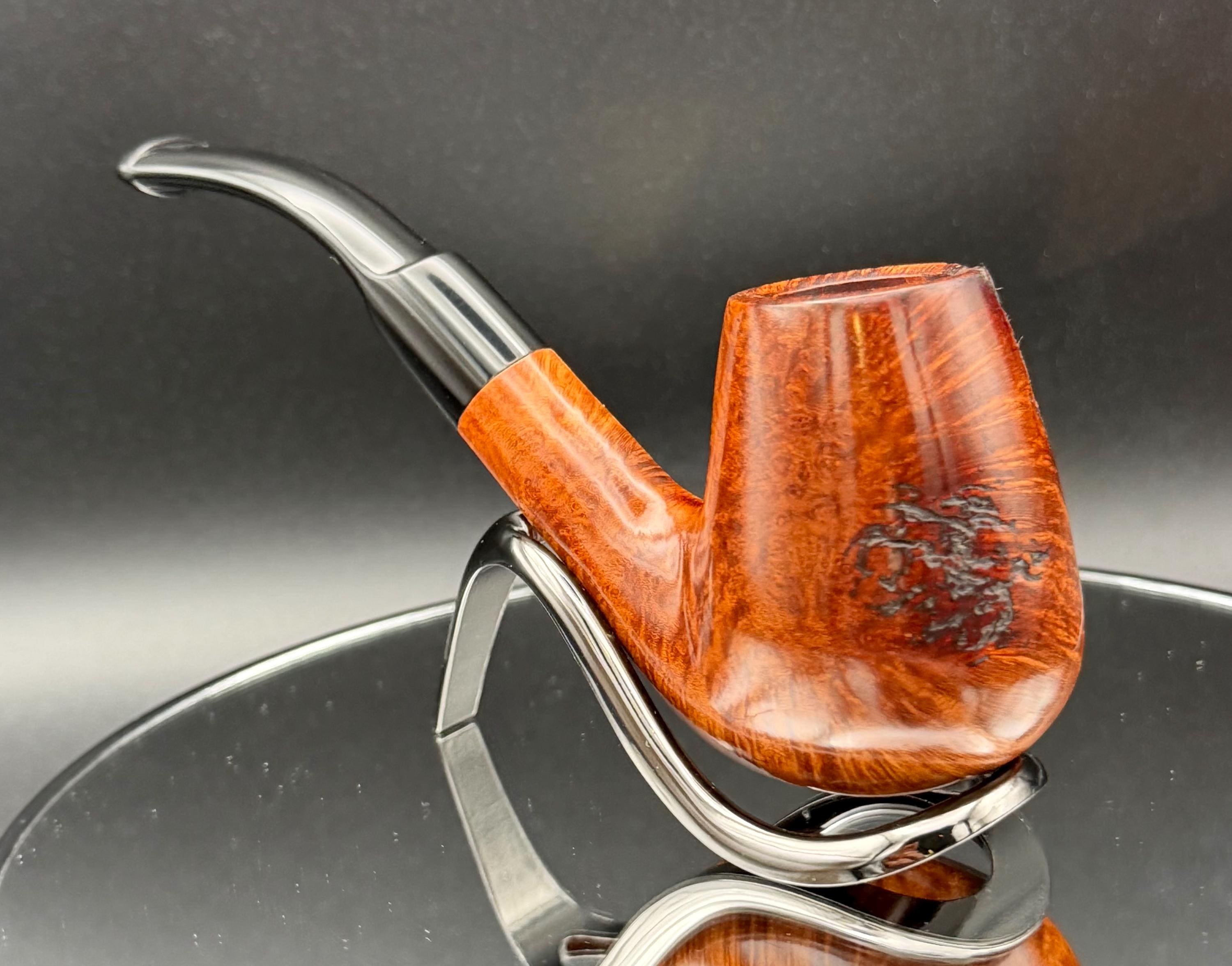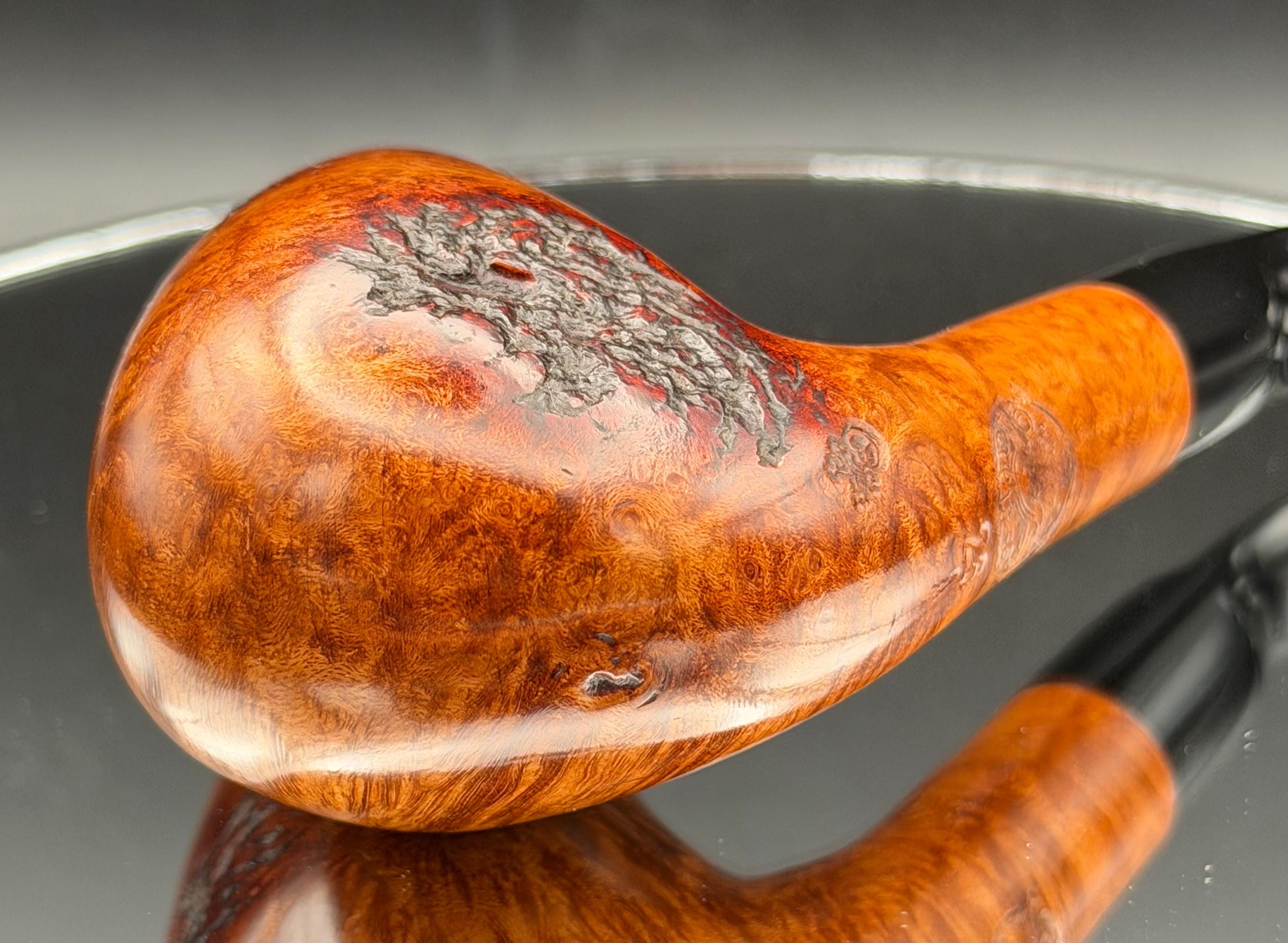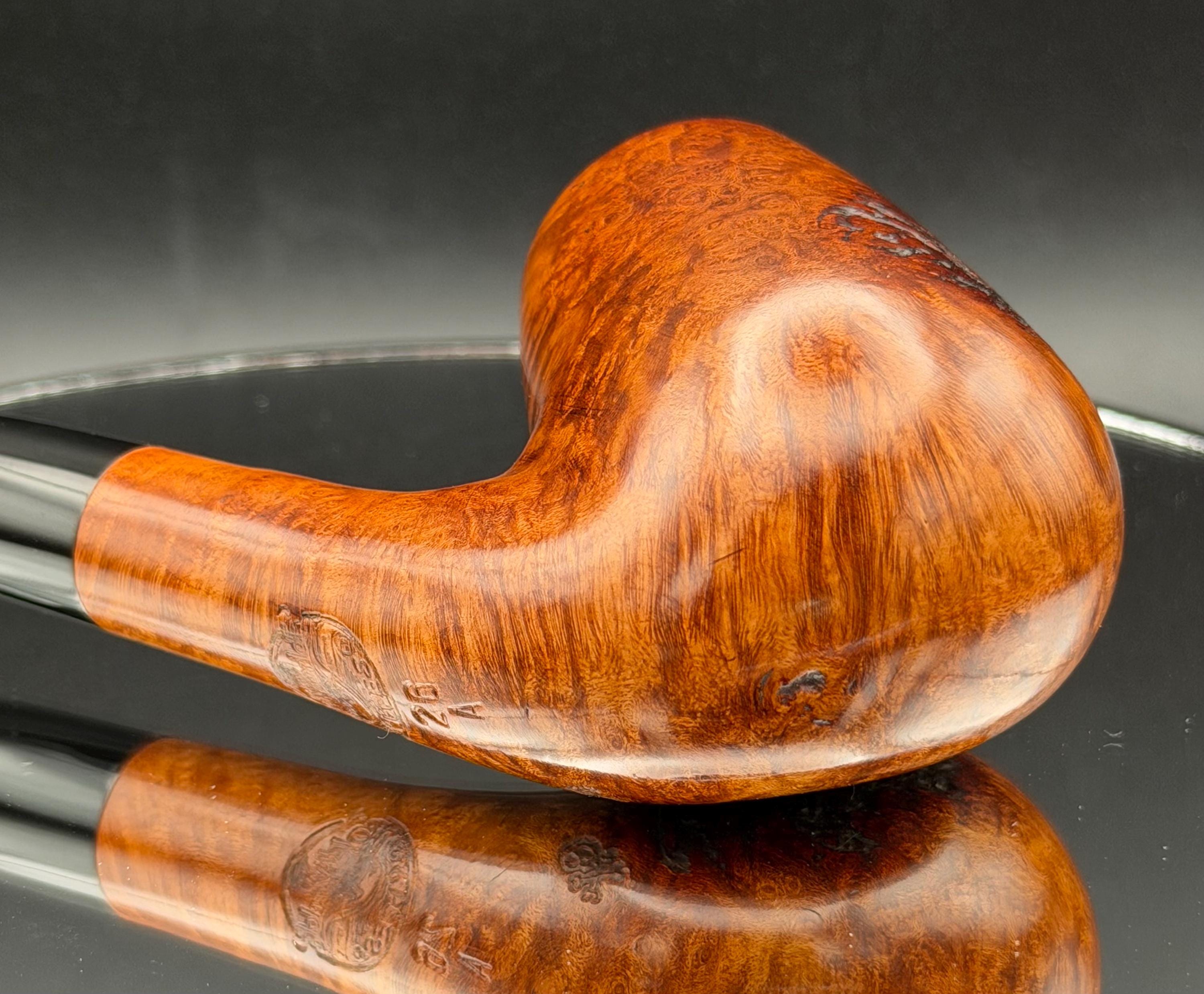This is a handmade briar pipe that has been carved rusticated sanded and polished by hand. It has a nice Vulcanite custom made stem machined to fit perfectly. This one is non filtered. A very nice daily smoker. Made to look rustic but a little polished. 7/8x1.5 chamber