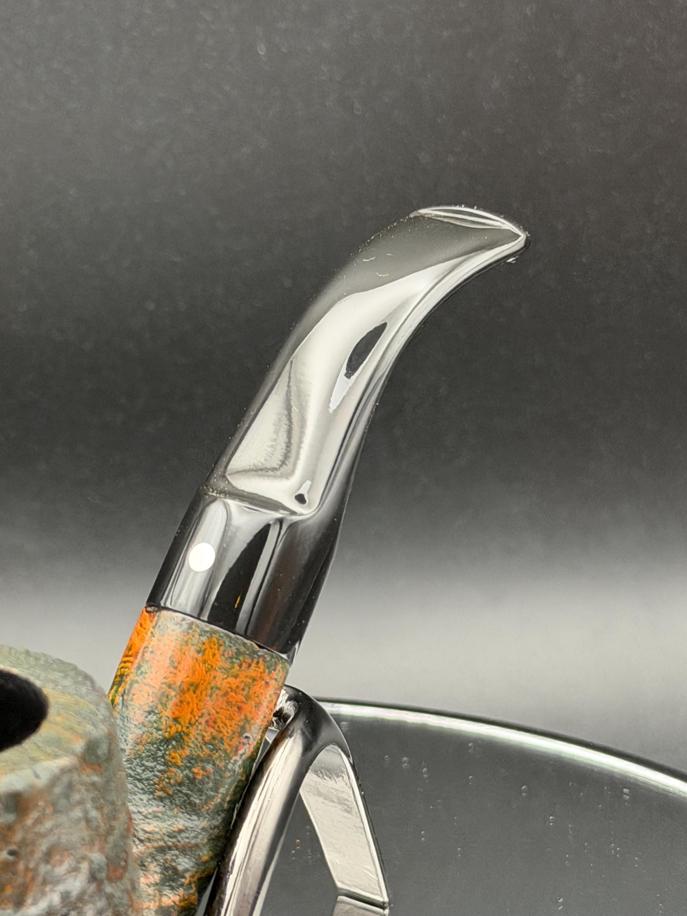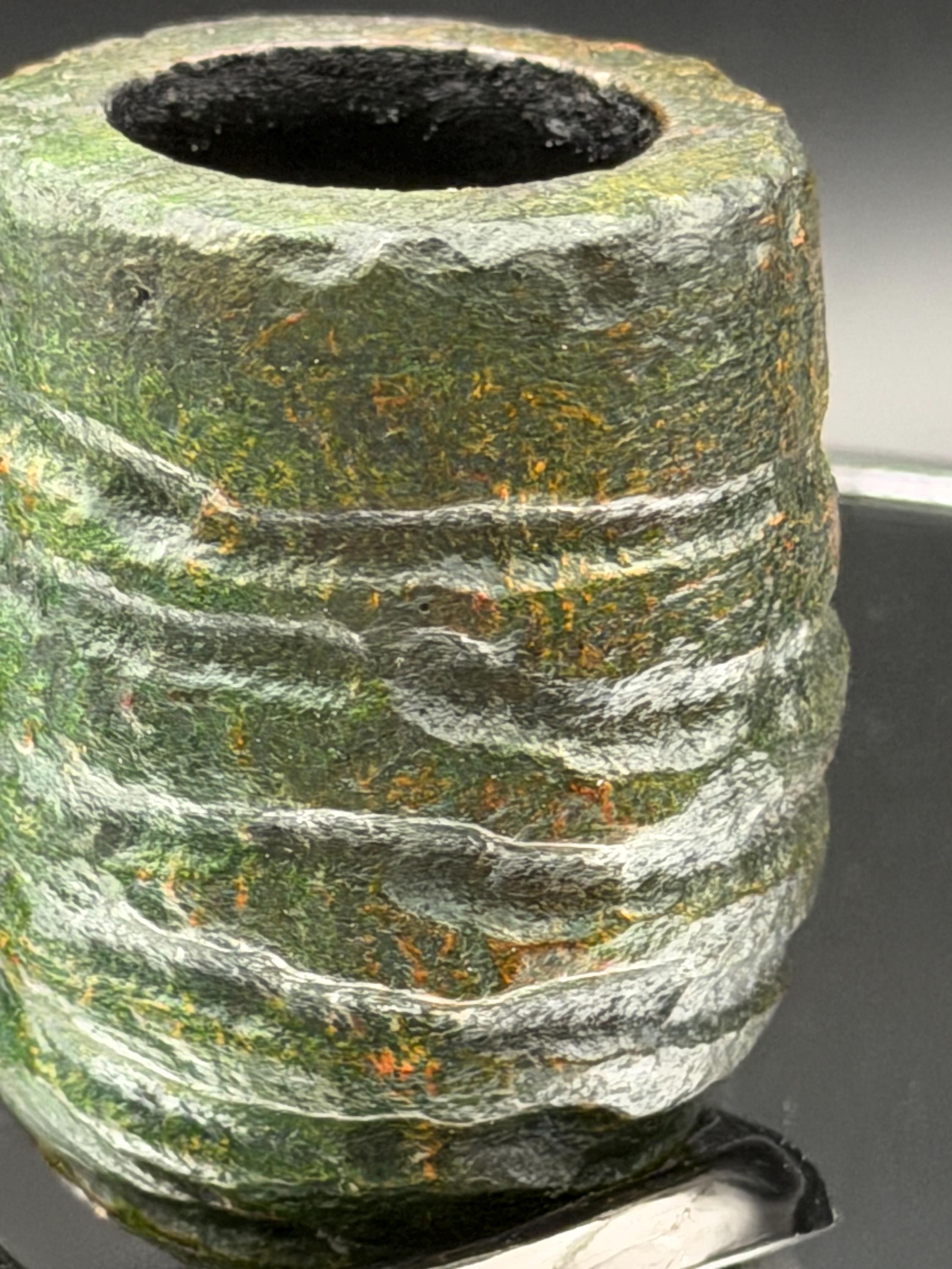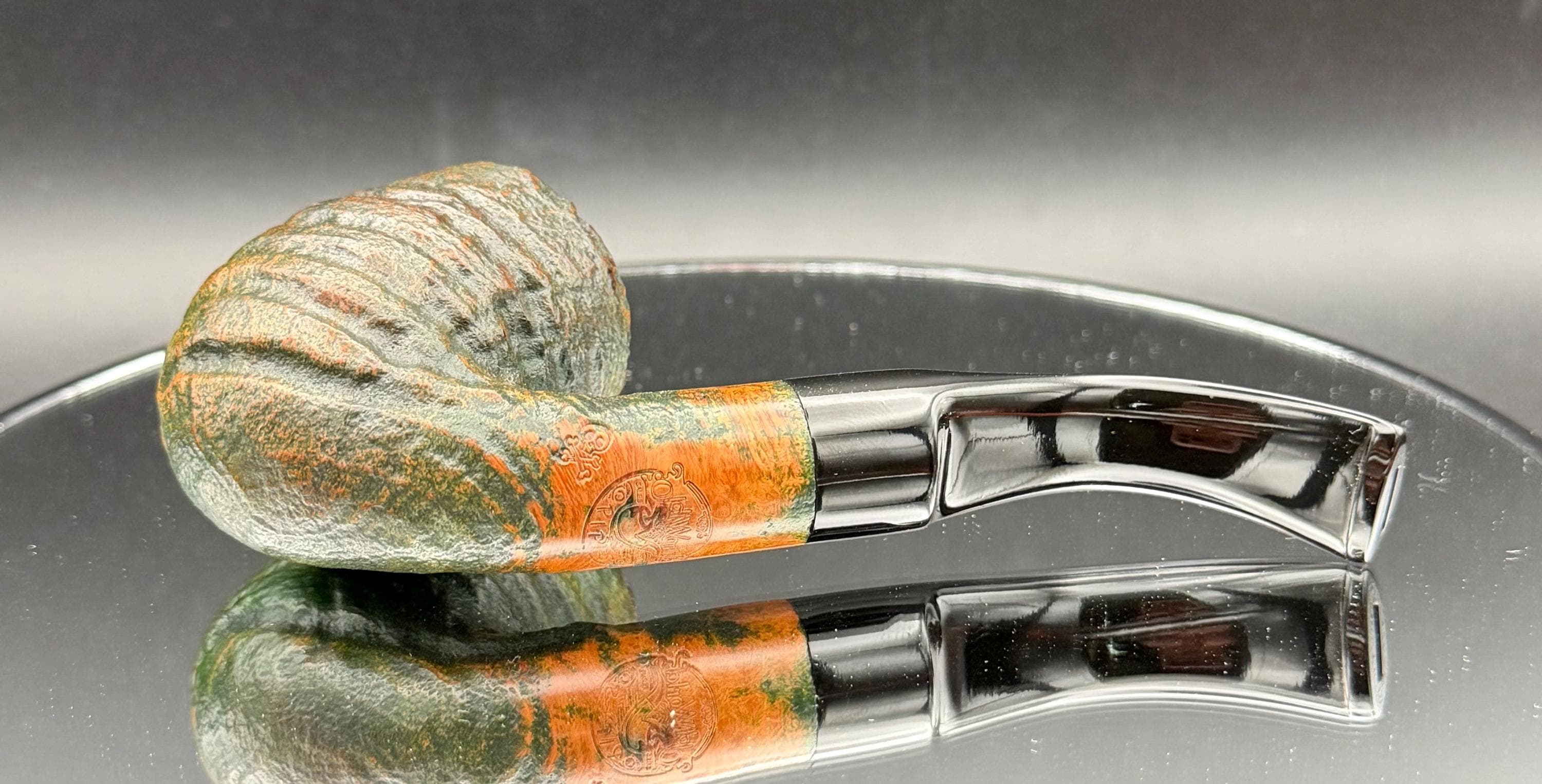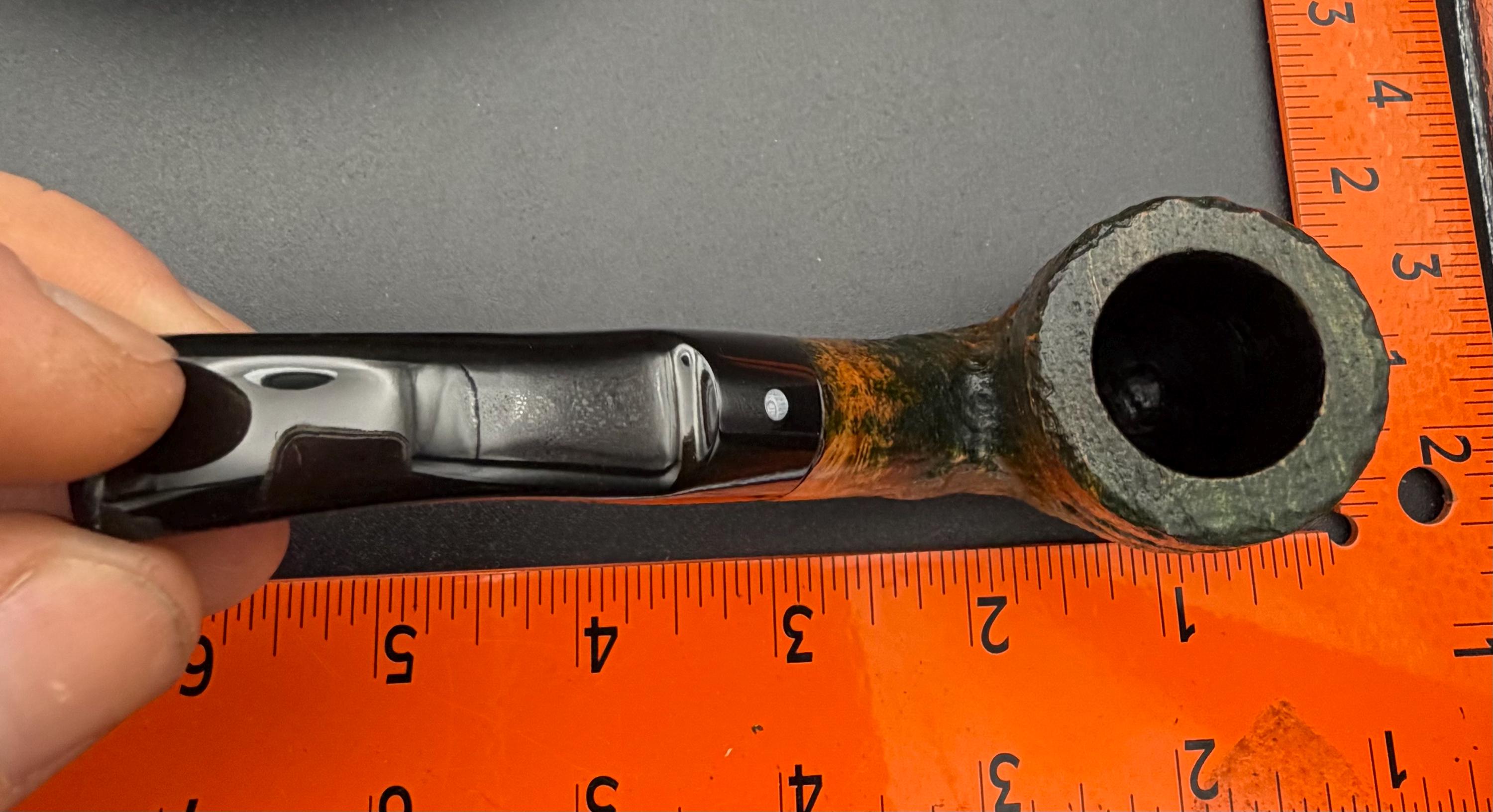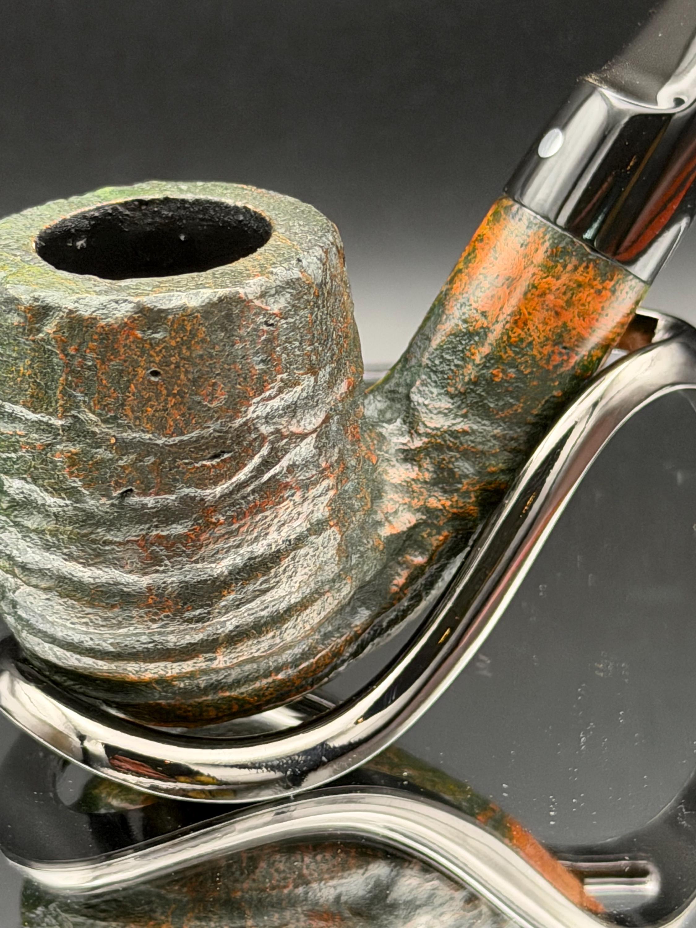 This is a handmade briar pipe that has been carved, rusticated, sandblasted, sanded,oiled, and polished by hand. It has a nice hand formed custom made vulcanite stem machined to fit perfectly. This one is non filtered. A very nice daily smoker. Made to look rustic but a little polished. 7/8x1.5 chamber and has a carbon coating for a starter