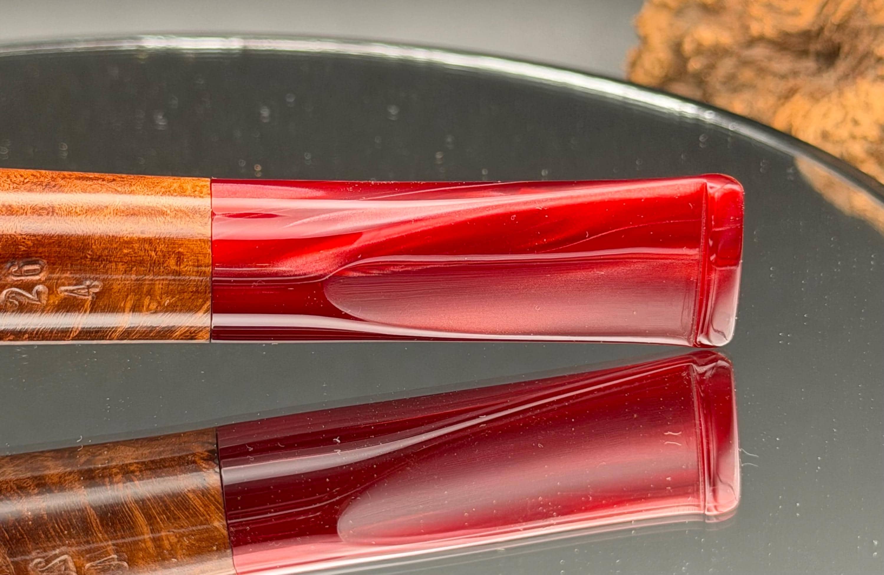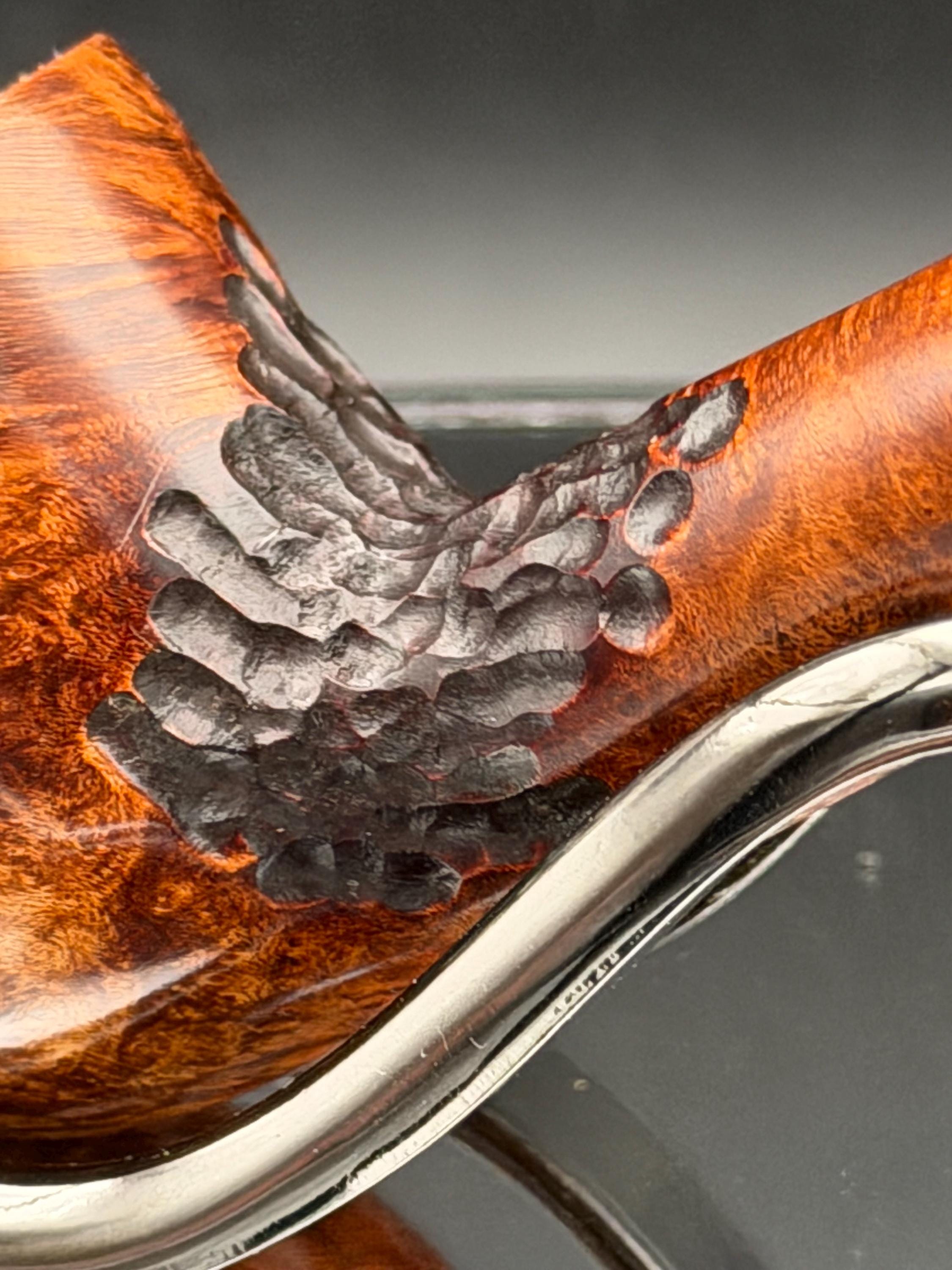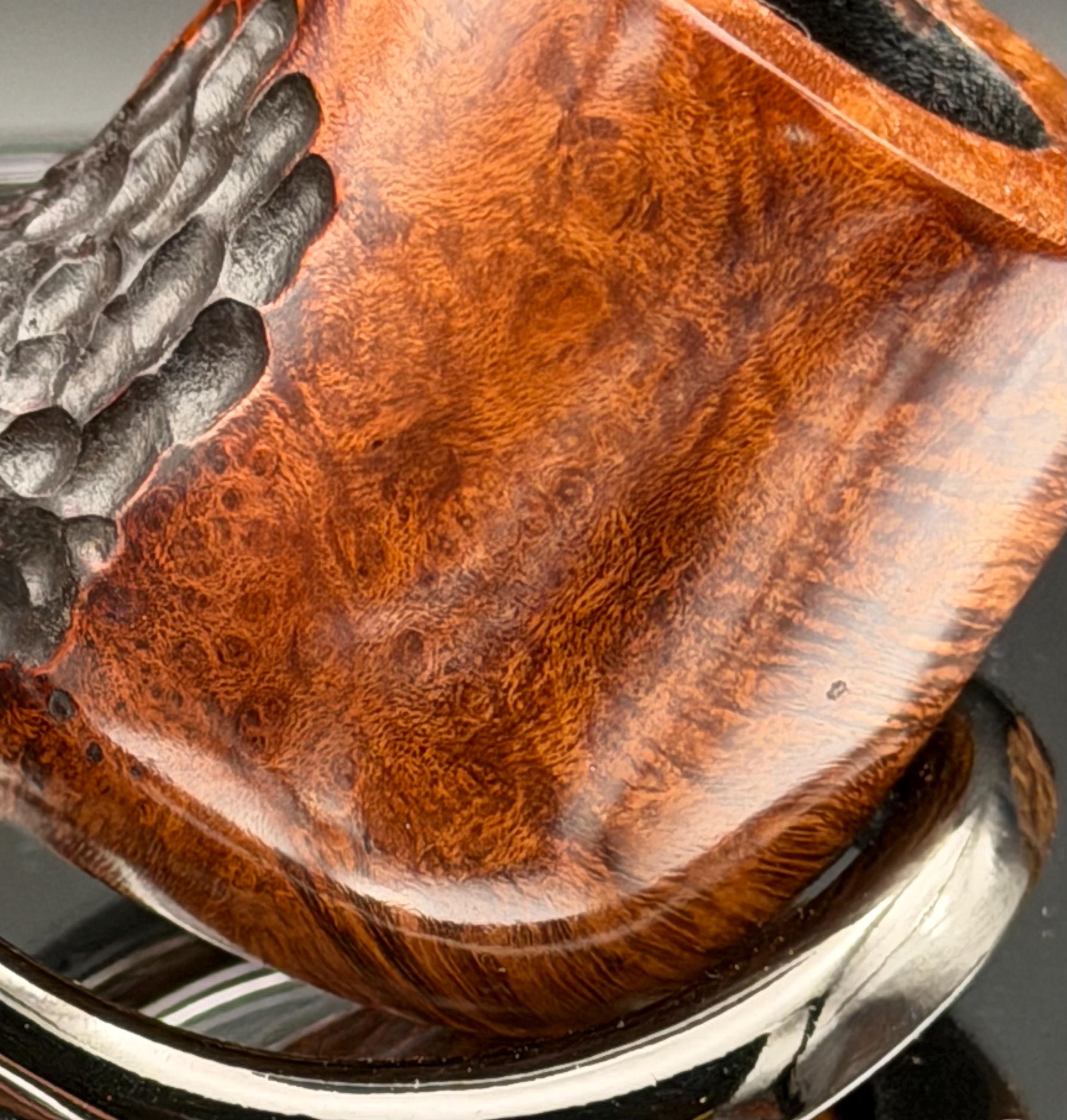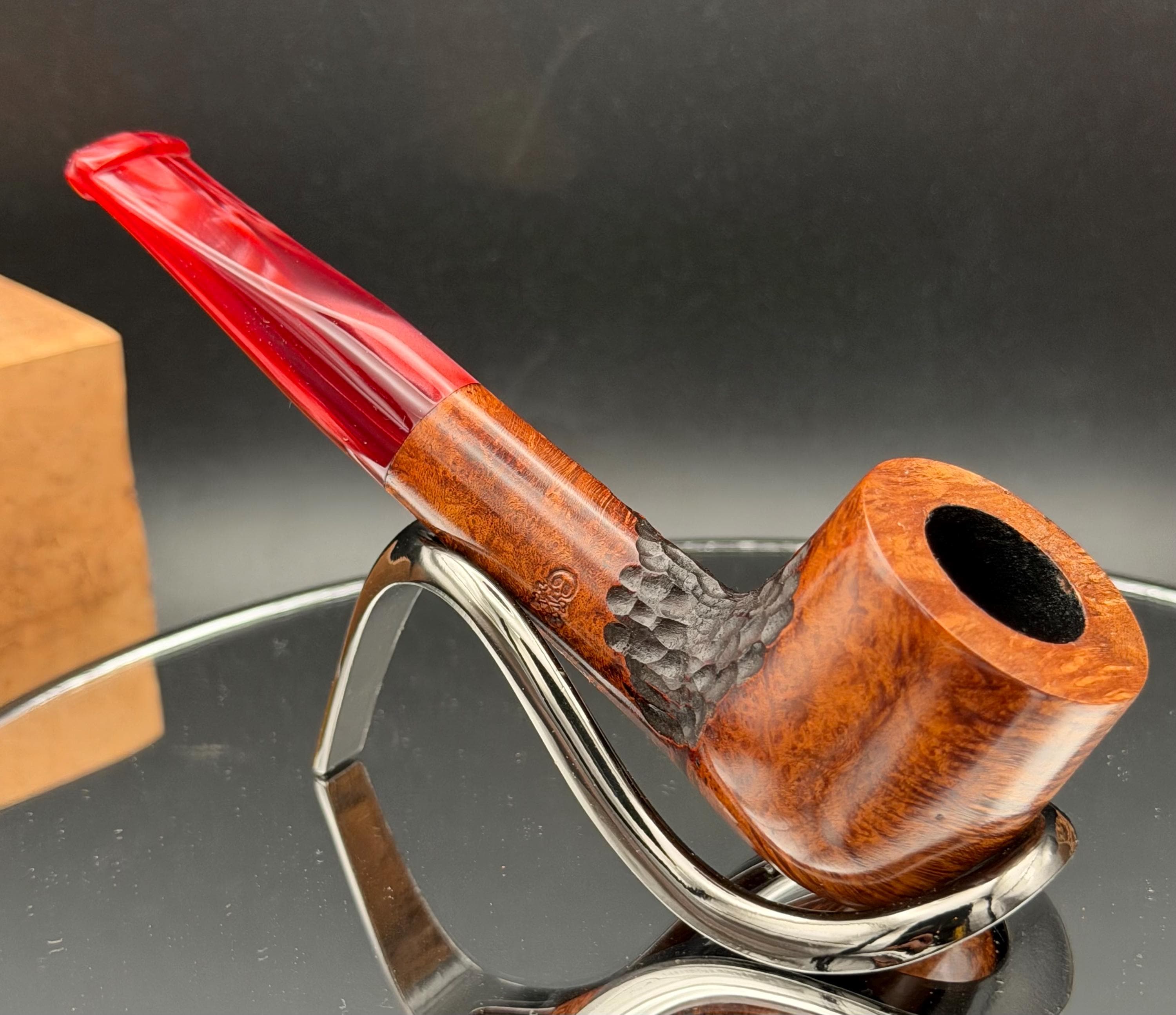 This is a handmade briar pipe that has been carved, sanded and polished by hand for several hours right here at my shop. A nice custom acrylic stem has been built for this one. These are built to be beautiful but also for every day smoking. This is a medium pipe perfect for the pocket. This one has a smaller 3/4” x 1 1/4”” bowl for a quicker smoke and the bowl has a carbon coating for a nice starter cake.